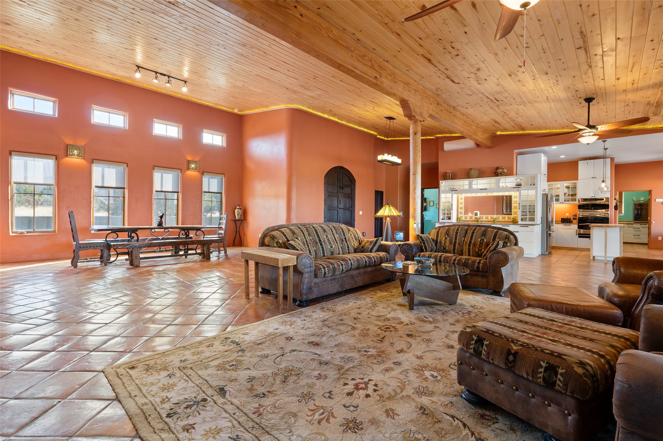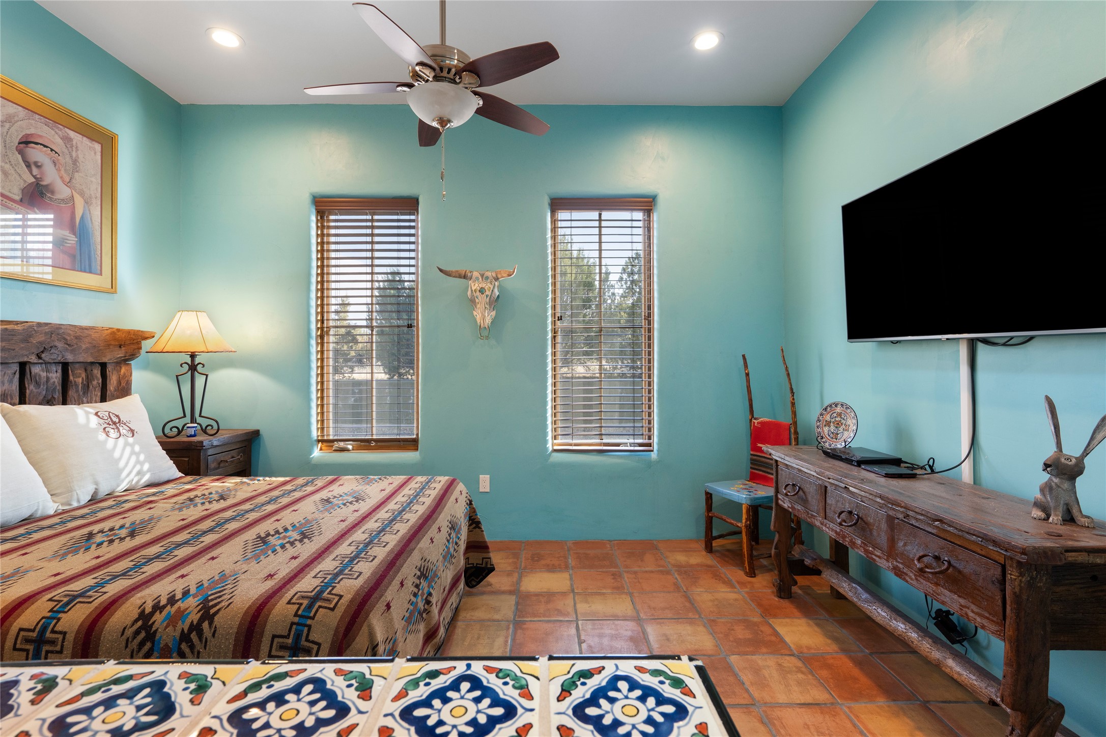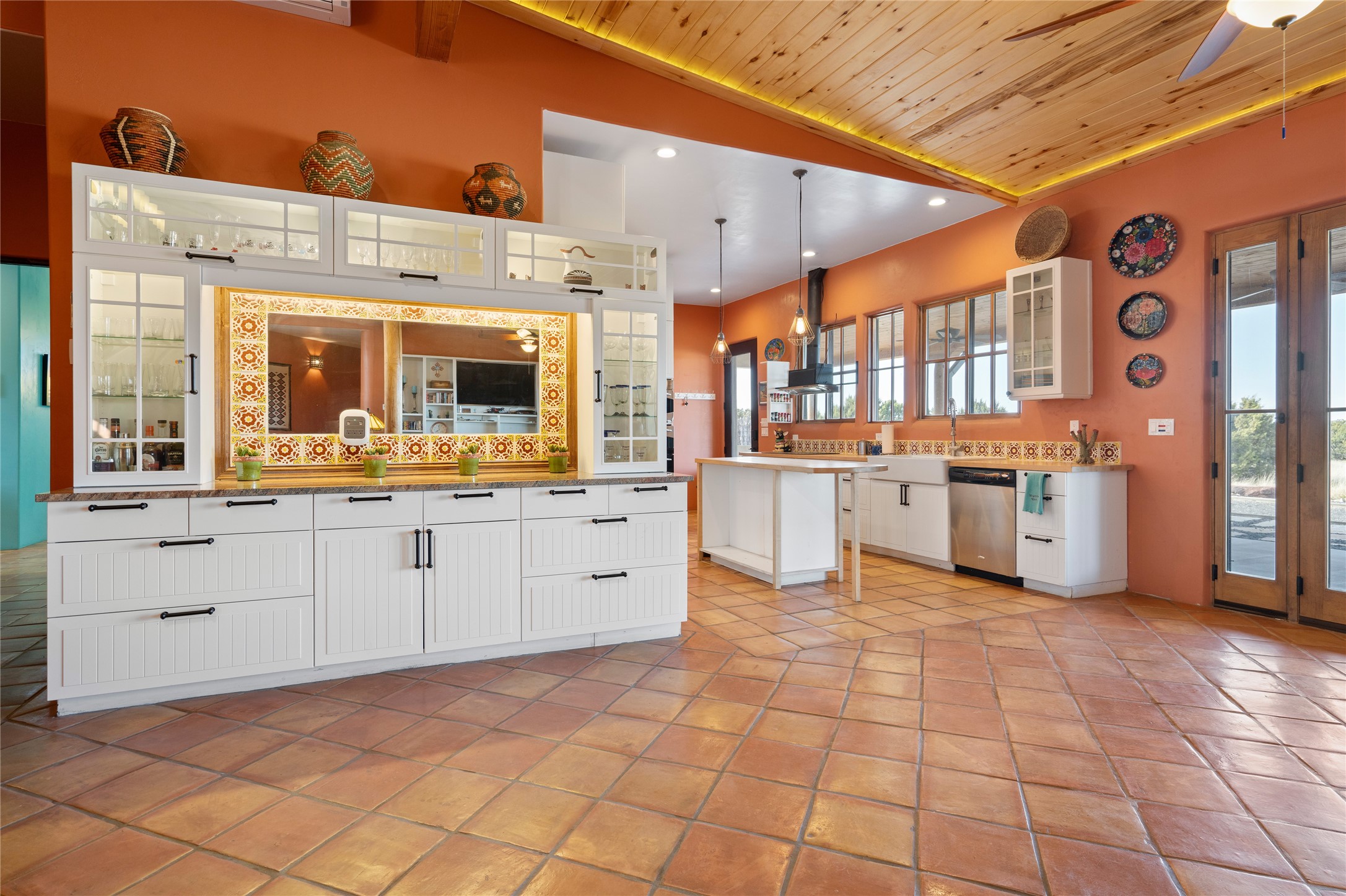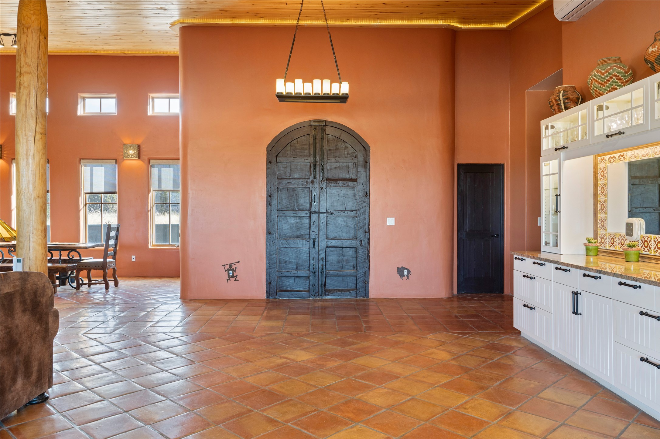 This stunning 3 bedroom, 4 bath sanctuary boasts 42 serene acres situated at the foot of the rugged Ortiz mountains with drop dead gorgeous views of the Sangre de Cristos. High ceilings and an open concept kitchen/living area accented with beam ceilings and Saltillo tiles provide the main dwelling with a cozy, yet spacious rustic elegance. High ceilings in the living and dining area flow beautifully to the expansive portal, making this an ideal home for entertaining.The tranquil primary bedroom boasts a large walk-in closet and an ensuite bathroom that features separate shower and tub. The split floor plan places the second and third bedrooms at the far end of the house creating nice separation between living areas.The quonset hut serves as two buildings in one. One portion is a guest suite, complete with bathroom, baseboard heating, wood burning stove, kitchenette, and a loft area great for rest or play (current owners found it ideal for rocking out on the drums and also hosting visitors). The other half is a massive garage, with high ceilings ideal for use as a shop or storage.Other features include a large laundry room, RV hookup, bocce court, and a mile-long walking loop around the grounds great for a leisurely stroll or an exciting dirt bike track!Your sanctuary awaits!! This stunning 3 bedroom, 4 bath property boasts 42 serene acres situated at the foot of the rugged Ortiz mountains with drop dead gorgeous views of the Sangre de Cristos. High ceilings and an open concept kitchen/living area accented with beam ceilings and Saltillo tiles provide the main dwelling with a cozy, yet spacious rustic elegance. High ceilings in the living and dining area flow beautifully to the expansive portal, making this an ideal home for entertaining.The tranquil primary bedroom boasts a large walk-in closet and an ensuite bathroom that features separate shower and tub. The split floor plan places the second and third bedrooms at the far end of the house creating nice separation between living areas.The quonset hut serves as two buildings in one. One portion is a guest suite, complete with bathroom, baseboard heating, wood burning stove, kitchenette, and a loft area great for rest or play (current owners found it ideal for rocking out on the drums and also hosting visitors). The other half is a massive garage, with high ceilings ideal for use as a shop or storage.Other features include a large laundry room, RV hookup, bocce court, and a mile-long walking loop around the grounds great for a leisurely stroll or an exciting dirt bike track!There is no well at the property. Property is priced to accommodate buyer installing a well if buyer desires.