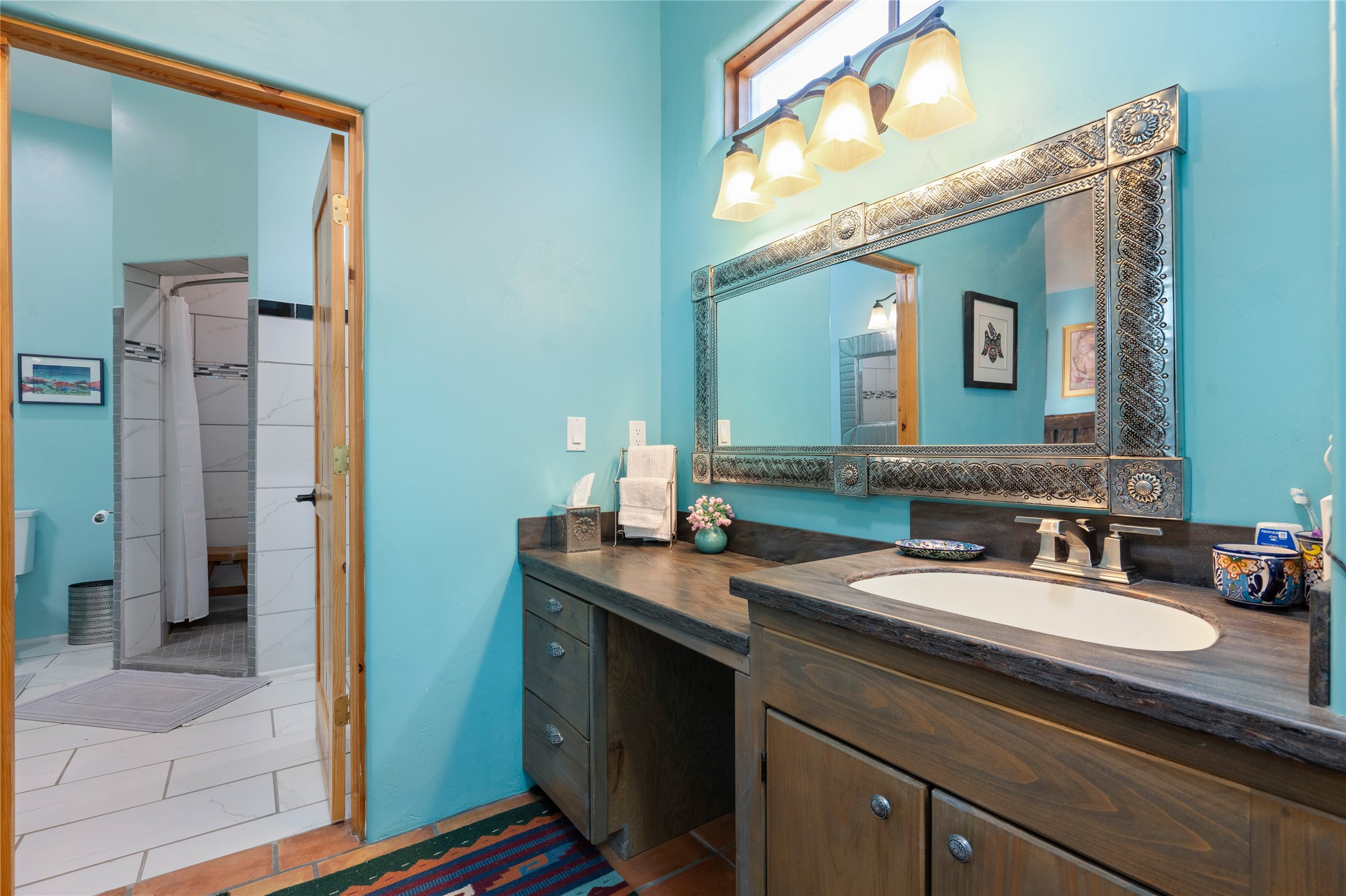 Explore and then live on the Turquoise Trail, aka South Highway 14. This is the “back way” from Santa Fe to Albuquerque, and is a beautiful way to travel the less beaten path. Most lots come with acreage of at least an acre, and many with more. The wide open spaces have less building restrictions than you’ll find in the City of Santa Fe, and horses are generally welcome.