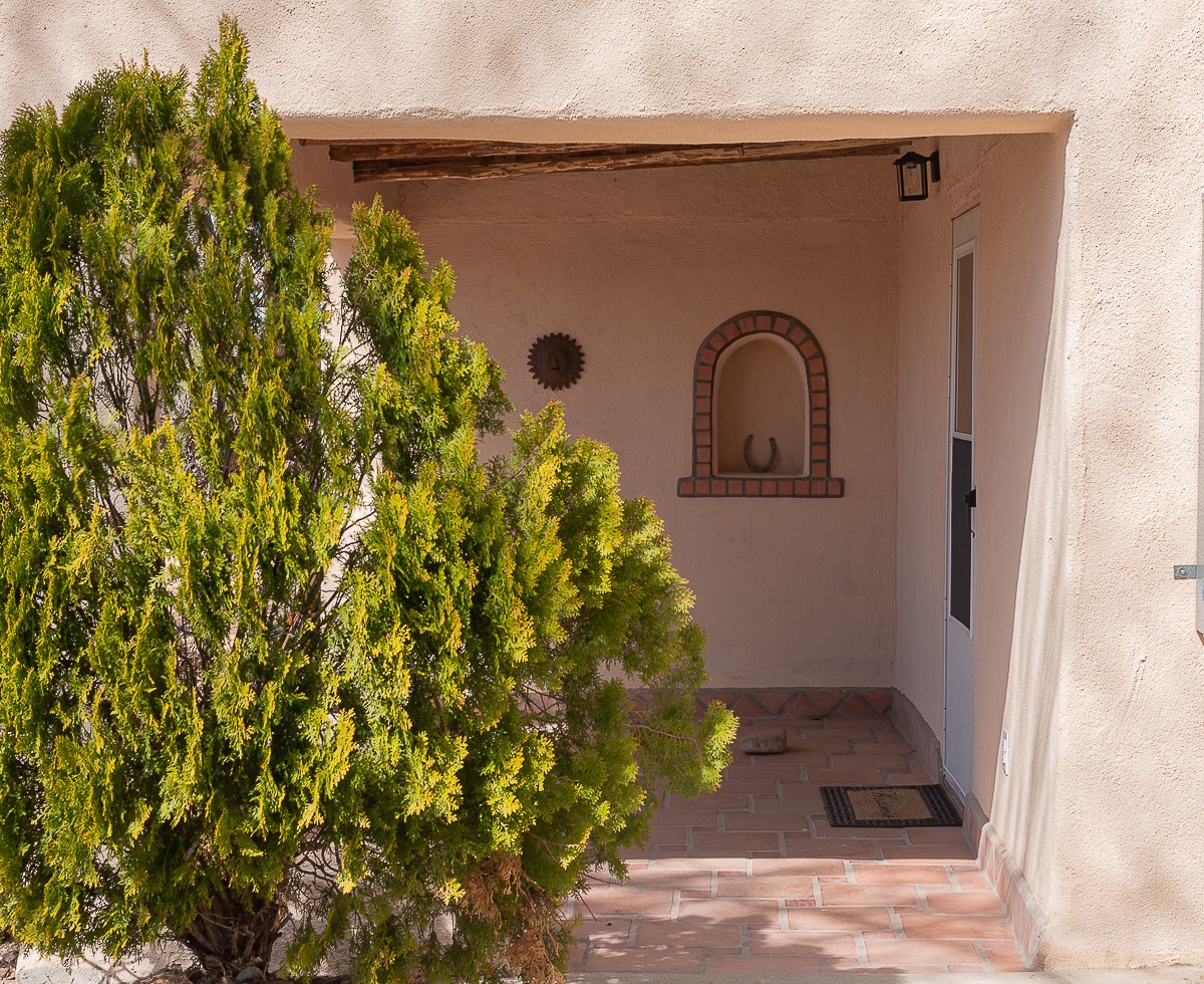 Nestled in the heart of Pojoaque Valley, this charming classic adobe home blends timeless character with modern upgrades.Step inside to find brand-new Florida tile porcelain flooring throughout, fresh paint, and new light fixtures that brighten every space. The kitchen shines with new quartz countertops and all-new appliances, including a refrigerator, dishwasher, stove, washing machine, and dryer. Stay comfortable year-round with a new mini-split system, updated electric, and a brand-new advanced treatment unit septic system.The spacious bedrooms boast large closets, with a walk-in closet in the primary suite. A custom built-in bookshelf adds character and function to the secondary, which could be used as a bedroom or dedicated office.Outside, a fenced-in yard provides privacy and space to enjoy the serene surroundings. The property includes a shared well in the backyard (serving two neighboring homes) and a covered carport for convenience.Located just 20 minutes from Los Alamos, Santa Fe, and Espaola, this home offers the perfect balance of peaceful living with easy access to work, dining, and entertainment. Don't miss this rare opportunity to own a beautifully updated adobe home in an unbeatable location!This is an owner/broker property.