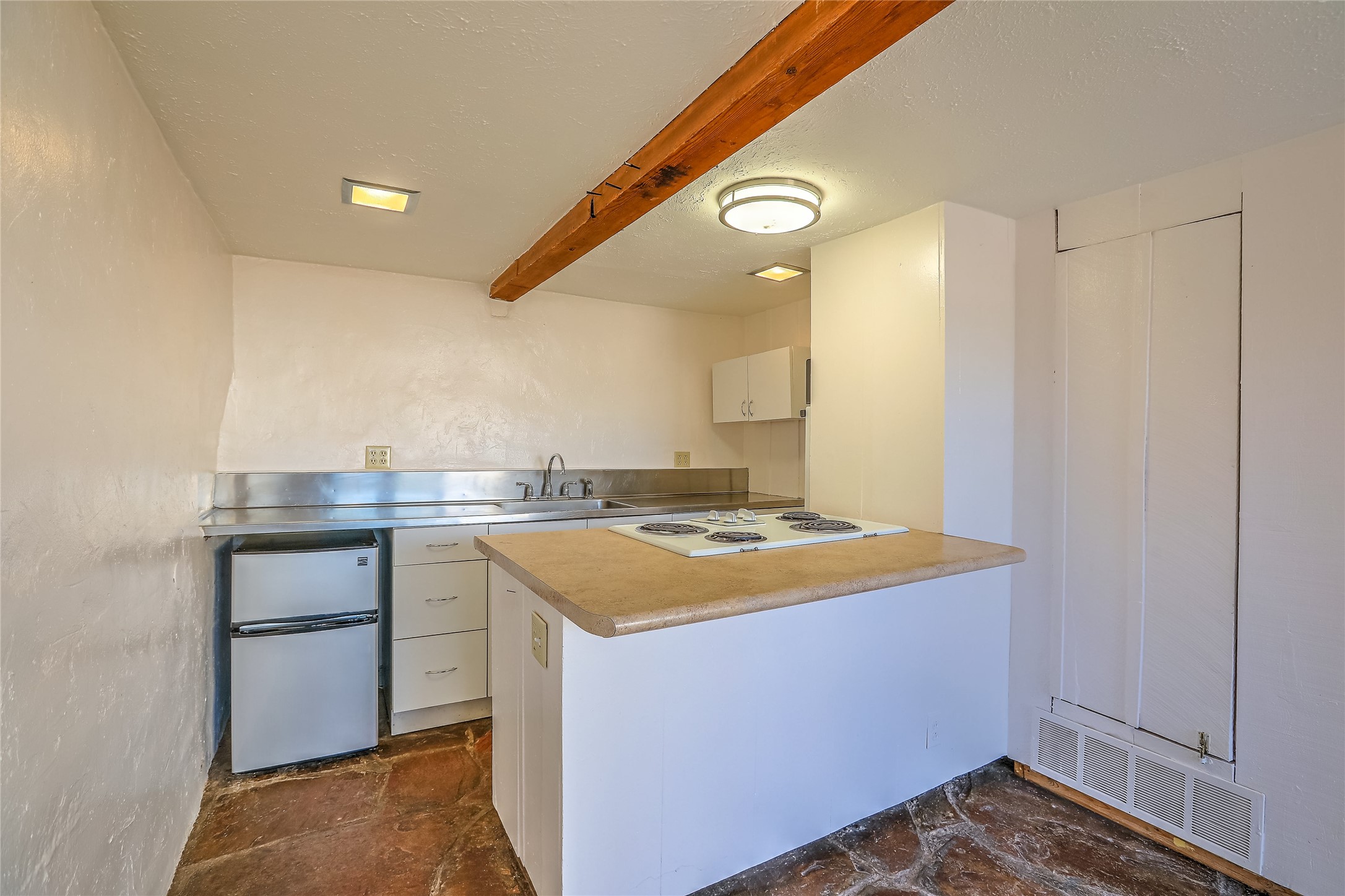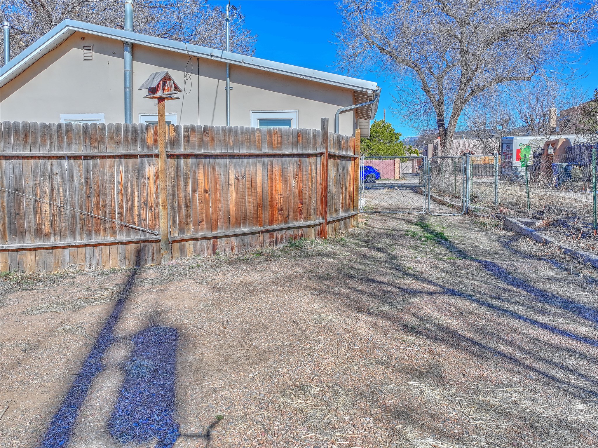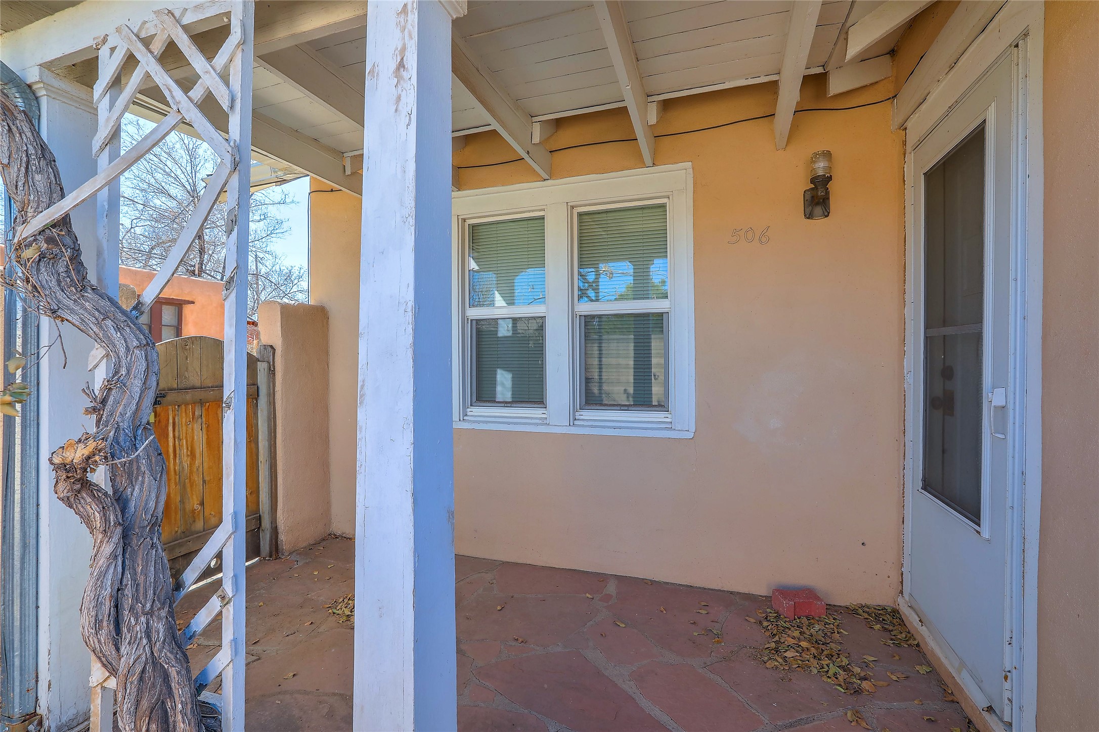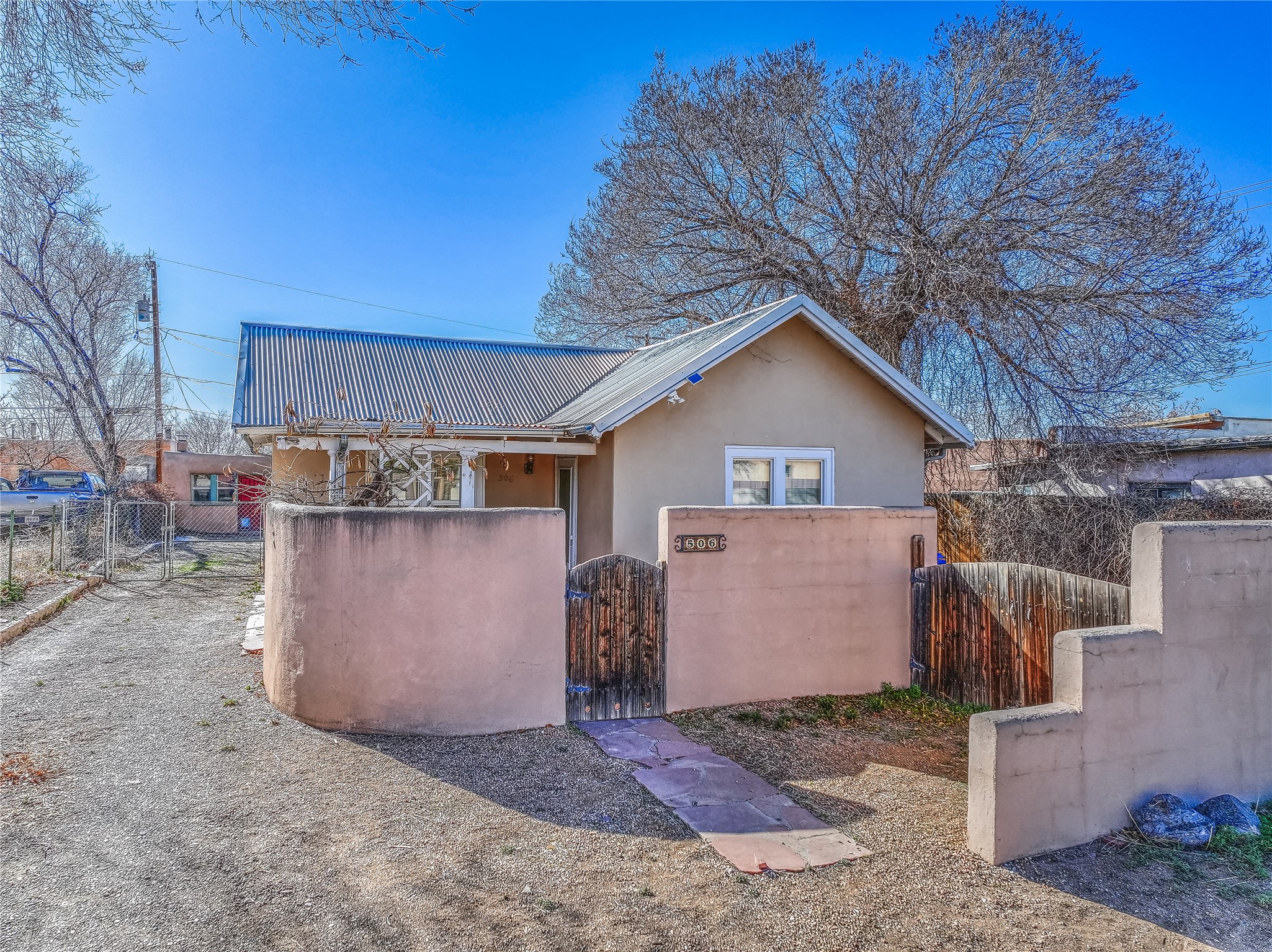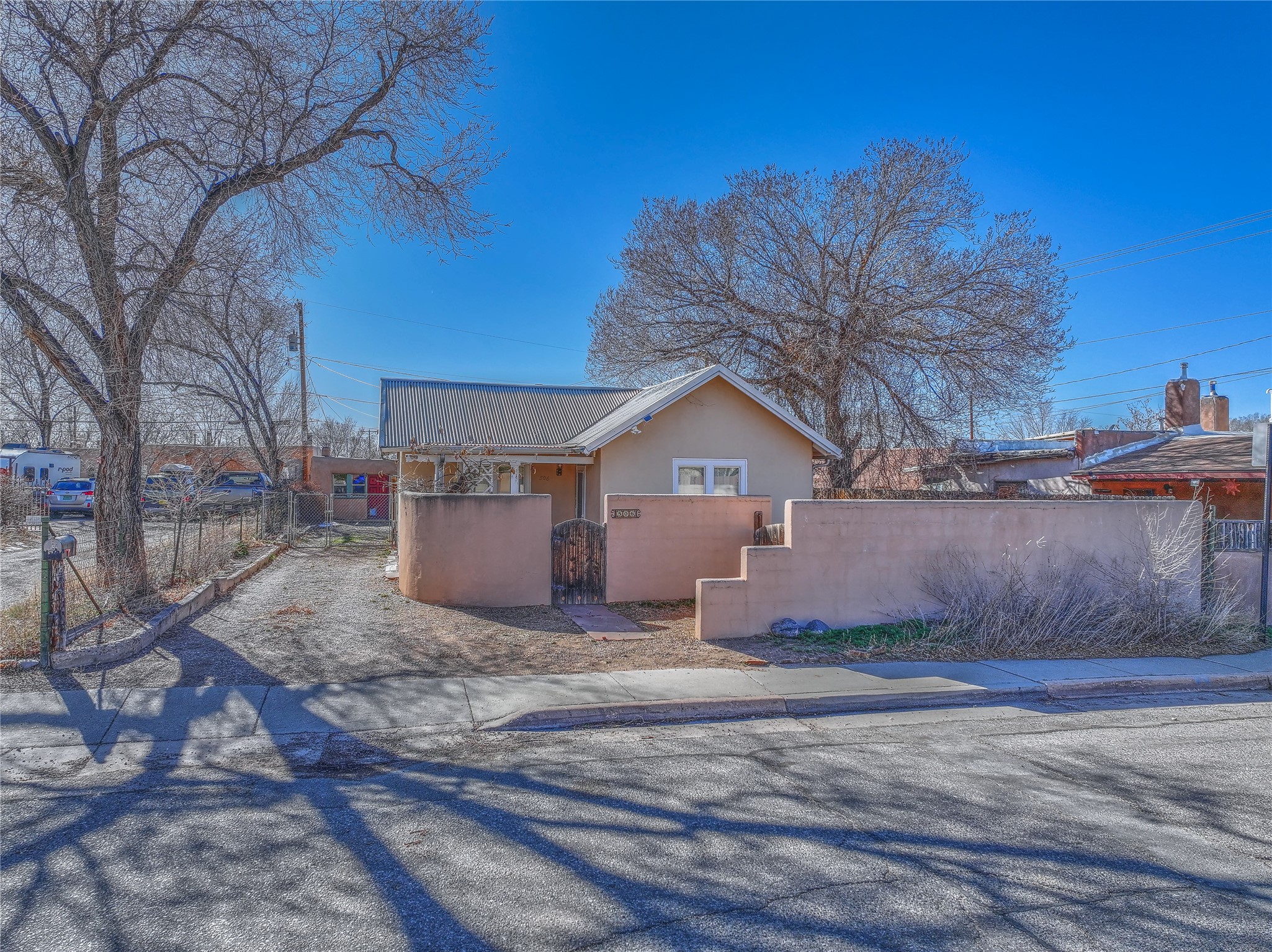 New Price Improvement!!! Embrace the charm of a 1930's gem just minutes from the Plaza! This delightful main house features two inviting bedrooms and one bath, where classic wood floors accentuate the warm living and dining spaces. Cooking enthusiasts will love the thoughtfully updated kitchen, while recent upgrades to the roof, plumbing, and electrical systems provide reliability. Step outside to enjoy the fenced yard, ensuring privacy between the houses, and make the most of the adorable casita that offers an additional bedroom, bath, and an inviting open layout with a kiva fireplace. With plentiful off-street parking and a bonus basement for extra storage, this property perfectly blends character and functionality in a fantastic location!