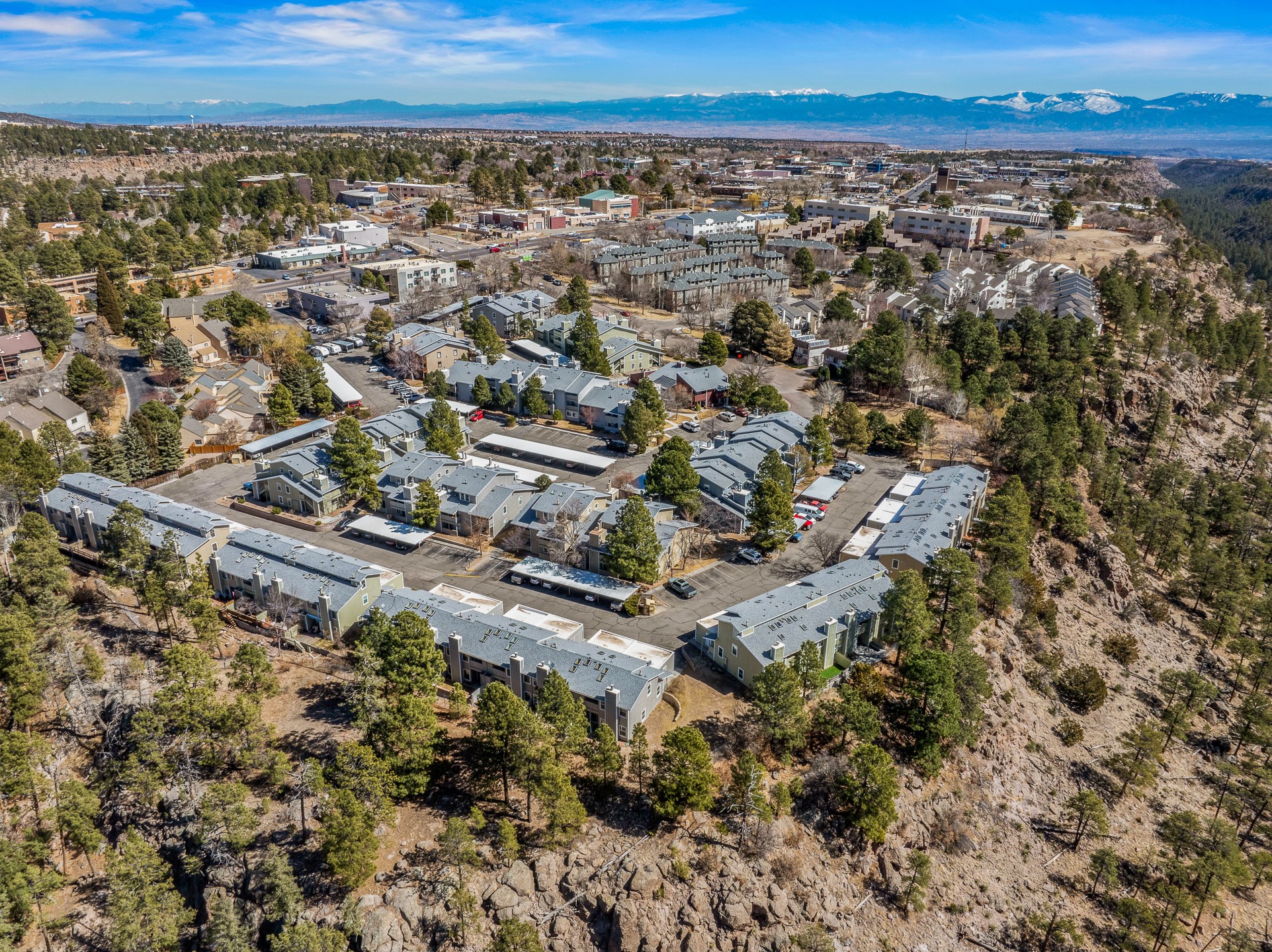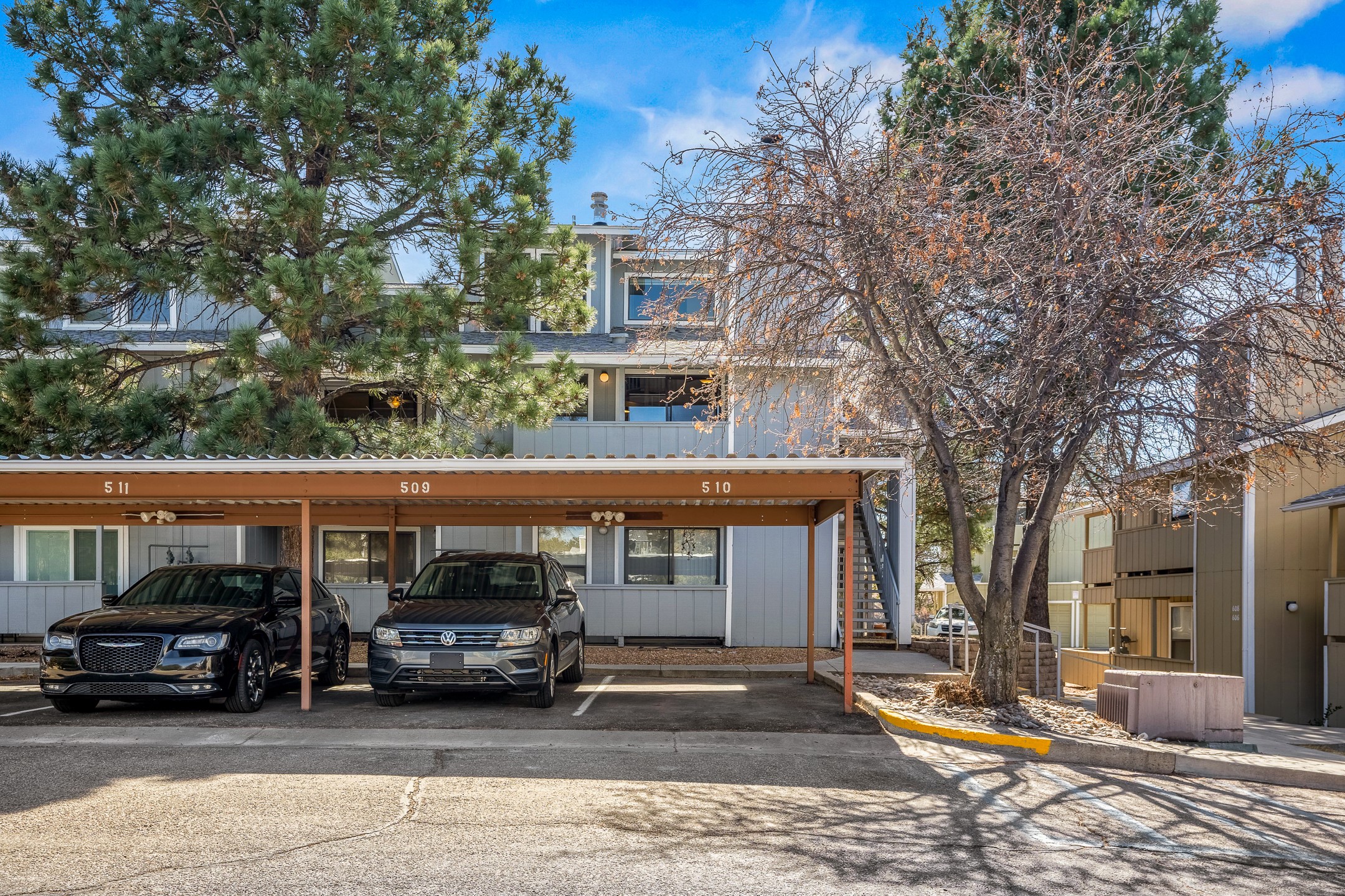 Renovated Downtown Condo with a Luxurious Feel, 2 Bedrooms + Loft, New Kitchen, New Furnace & Air Conditioning, New Paint & Flooring Throughout, Pool, Exercise Room, and More!!! Welcome to 505 Oppenheimer #510! This downtown Ridge Park condo has been tastefully renovated and upgraded and is move-in ready! The new kitchen features quartz countertops, undermount sink, stainless steel dishwasher and range, barstool seating, and modern soft-close white cabinets. The living room features a wood-burning fireplace, lofted ceilings, and a balcony to enjoy your morning coffee. Luxury vinyl plank flooring flows throughout the living room, kitchen, guest bedroom/home office, and primary bedroom for a low-maintenance, high-end look. The primary bedroom suite includes a balcony, walk-in closet, and en suite bathroom featuring a new vanity with a quartz countertop. The upstairs loft provides flexibility, as it can be used as an office, additional living space, or an additional bedroom suite, as it includes an attached walk-in closet with built-in organizers and an additional updated bathroom with a matching quartz countertop. A new furnace and central air conditioning will provide comfort throughout all four seasons, as well as peace of mind. Additional features include in-unit laundry, storage room, and a designated carport. Ridge Park features an in-ground outdoor pool, exercise room, and exterior building maintenance. Located just one block away from Ashley Pond and downtown Los Alamos, you will enjoy the conveniences of condo and downtown living. Schedule your showing today before this one is gone!