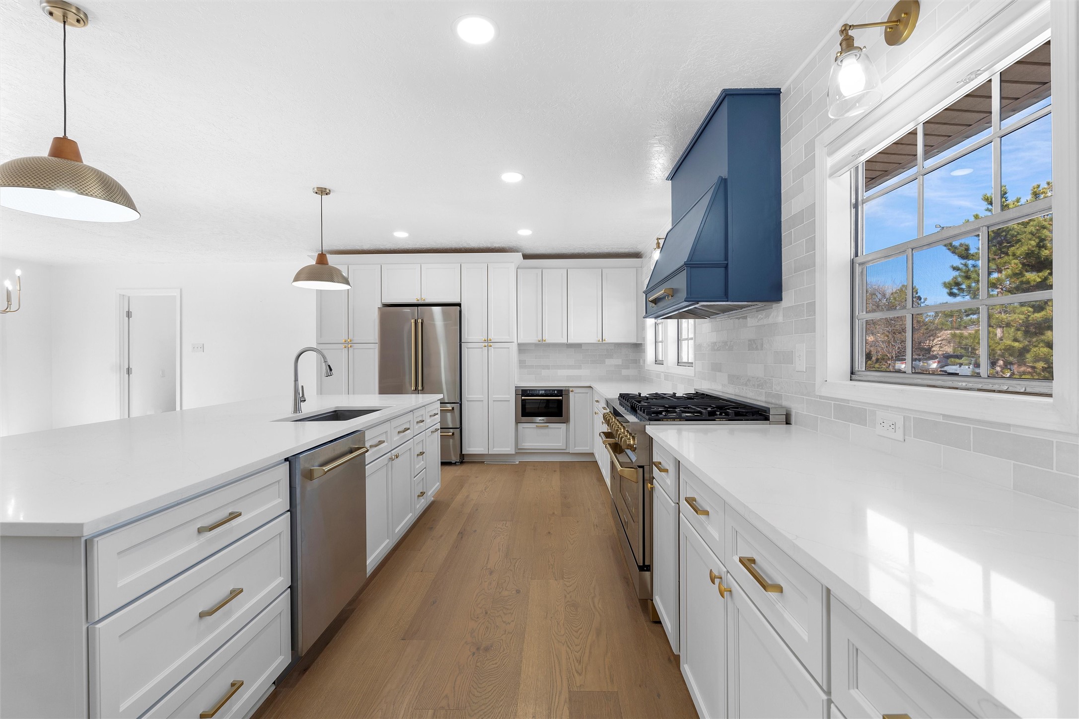 Welcome to this beautifully renovated home located on the desirable Barranca Mesa! With an expansive open concept design, this home offers a seamless flow between the living and dining spaces. Numerous windows bring in an abundance of natural sunlight, creating a warm and inviting atmosphere. The gourmet kitchen with large center island is a cook's dream, featuring premium, brand new, Zline appliances. Boasting six bedrooms, this property provides ample room for families or guests. The lower level features a versatile basement with its own kitchenette and private entrance--ideal for rental potential, a guest suite, or additional living space. Other updates include new ceiling fans in and doors to the bedrooms, and sleek, new vanities and toilets in all three bathrooms. Enjoy year-round comfort with central air conditioning in the summer, and a large, heated garage in the winter. The enormous lot provides plenty of room for outdoor activities; landscaping and gardening become more enjoyable with new sprinkler systems in both the front and backyard. If you are searching for a home with modern upgrades with endless possibilities, this could be the home for you!