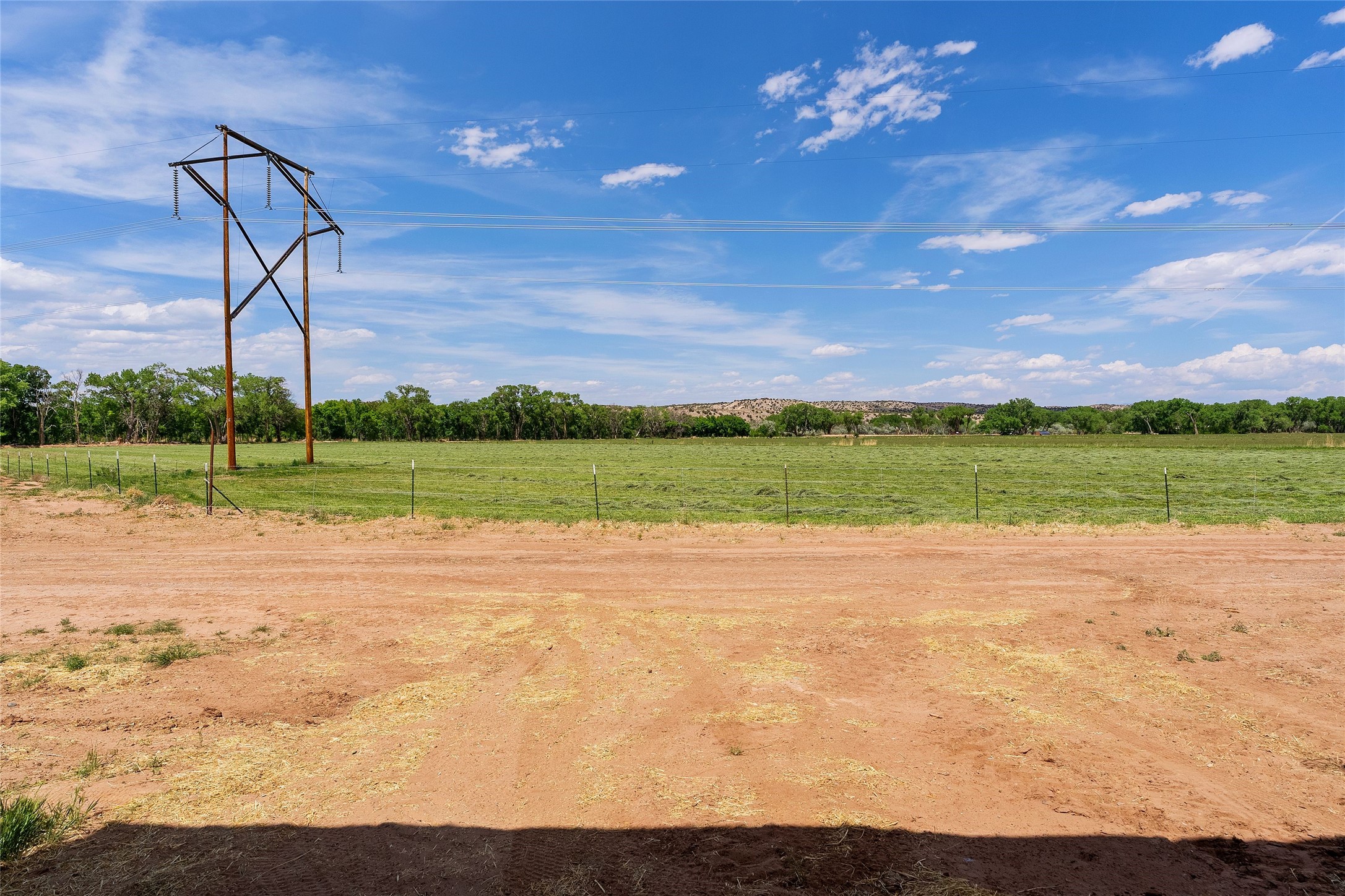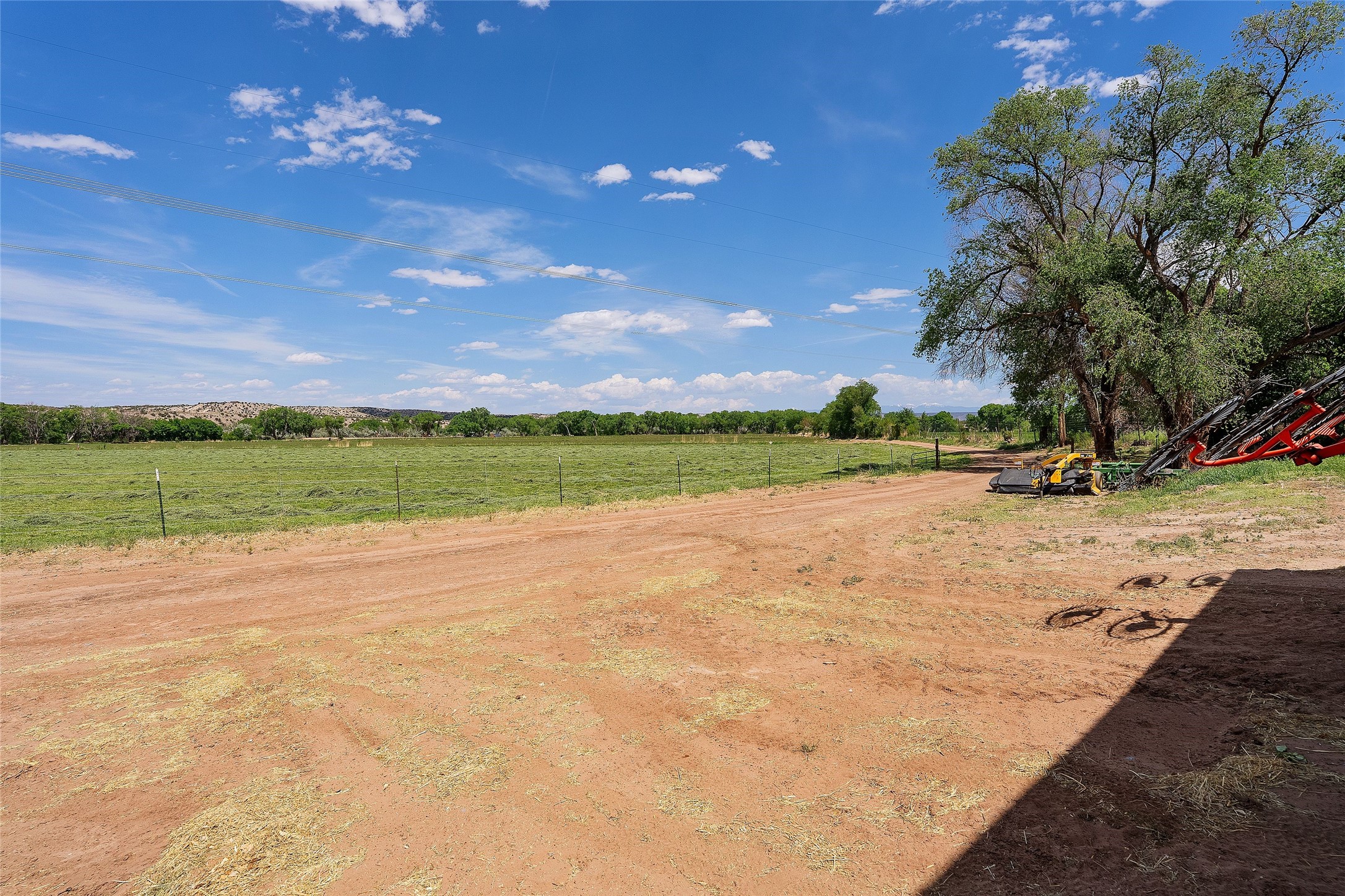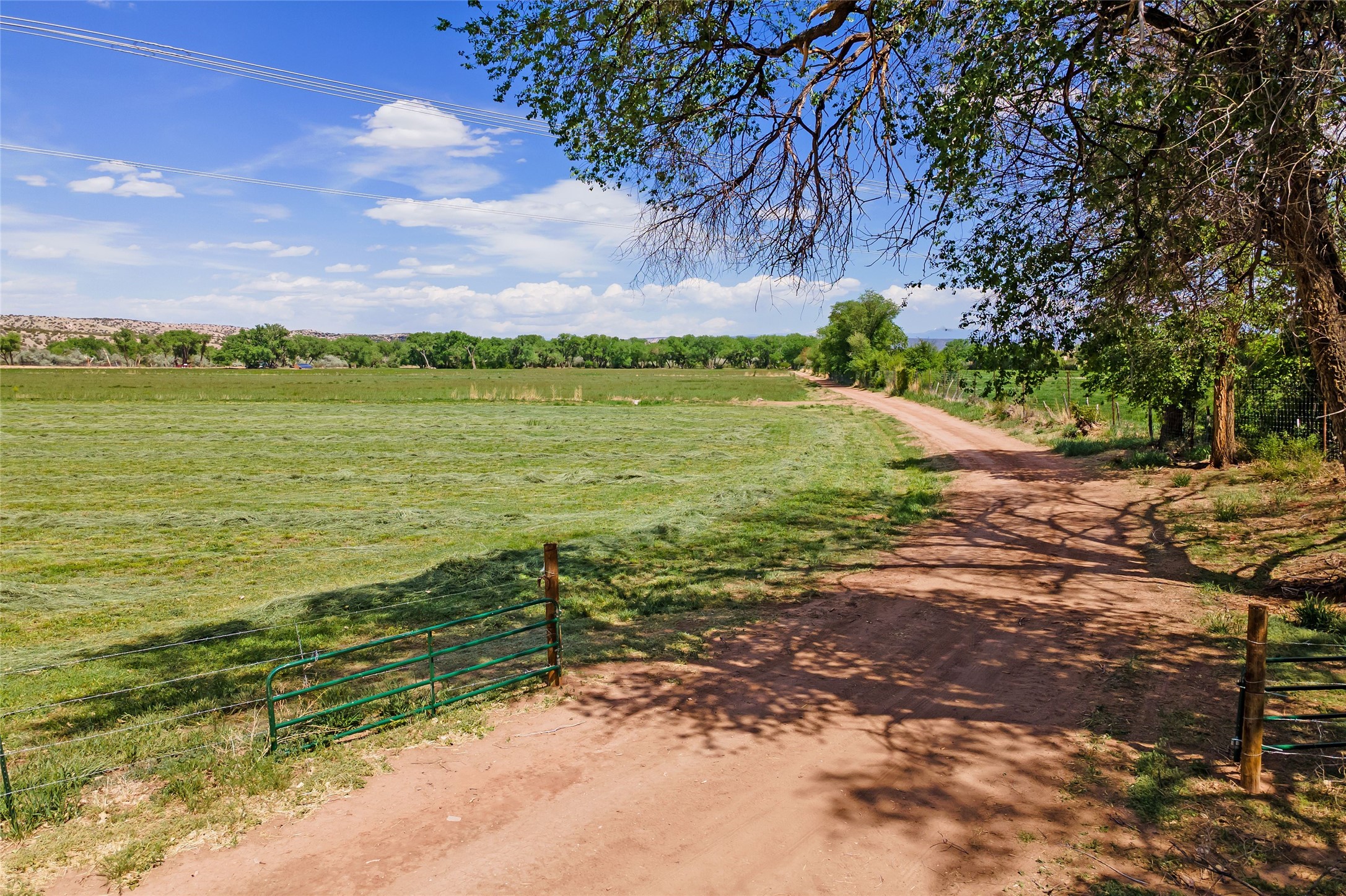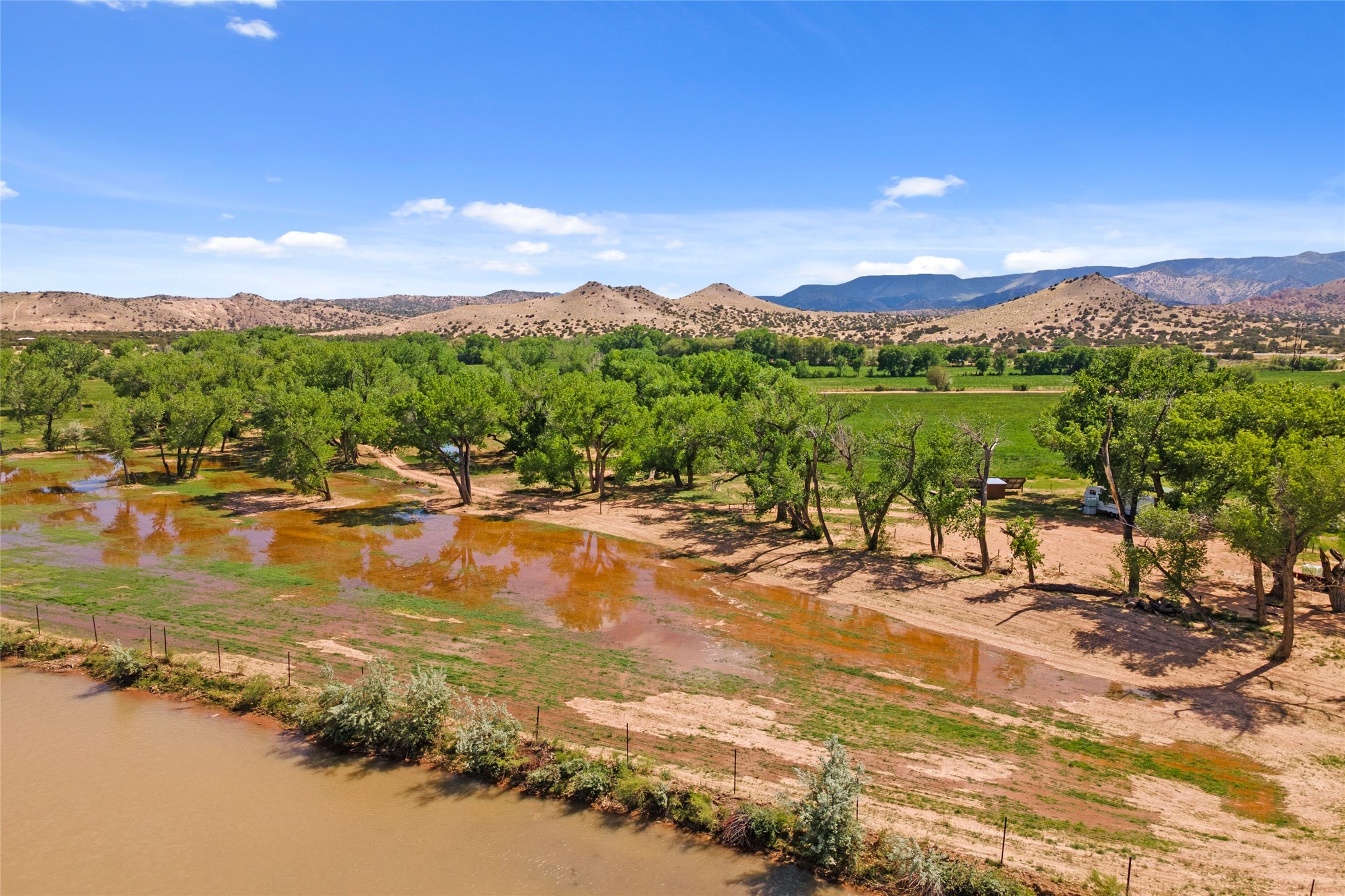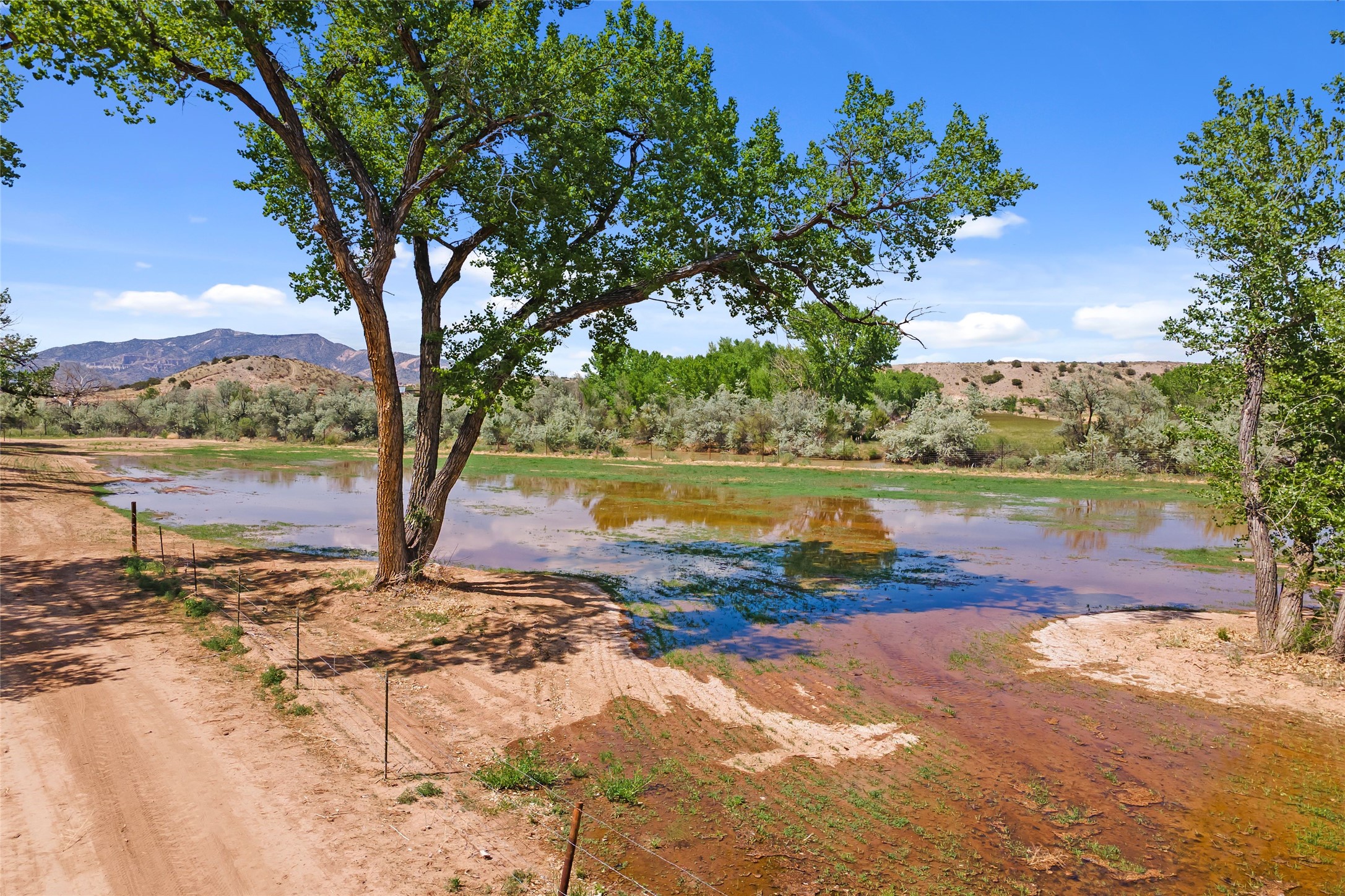 Ideal setting in the Rio Chama Valley for homesite and equestrian facilities with river frontage and stunning views in all directions including barrancas and surrounding mountain ranges. Nestled into a bosque lined with cottonwood trees, willows and native grasses, the property has easy access to riding trails and the Carson National Forest Land. Located just south of Abiquiu, this 53+ acre fertile crop producing farmland with water rights has excellent income potential. Laser-levelled fields, extensive irrigation systems, gates and fencing, solar panels, equipment and storage barn and outbuildings are among the improvements made to this land.