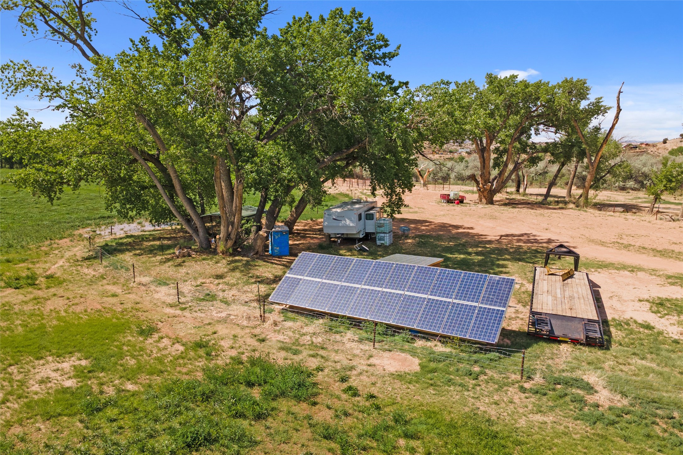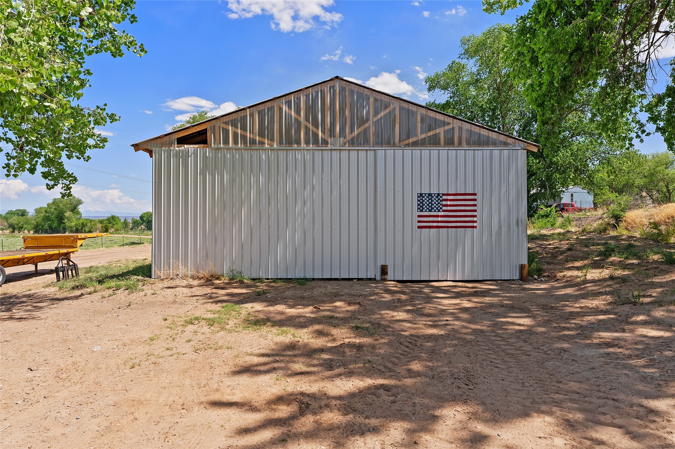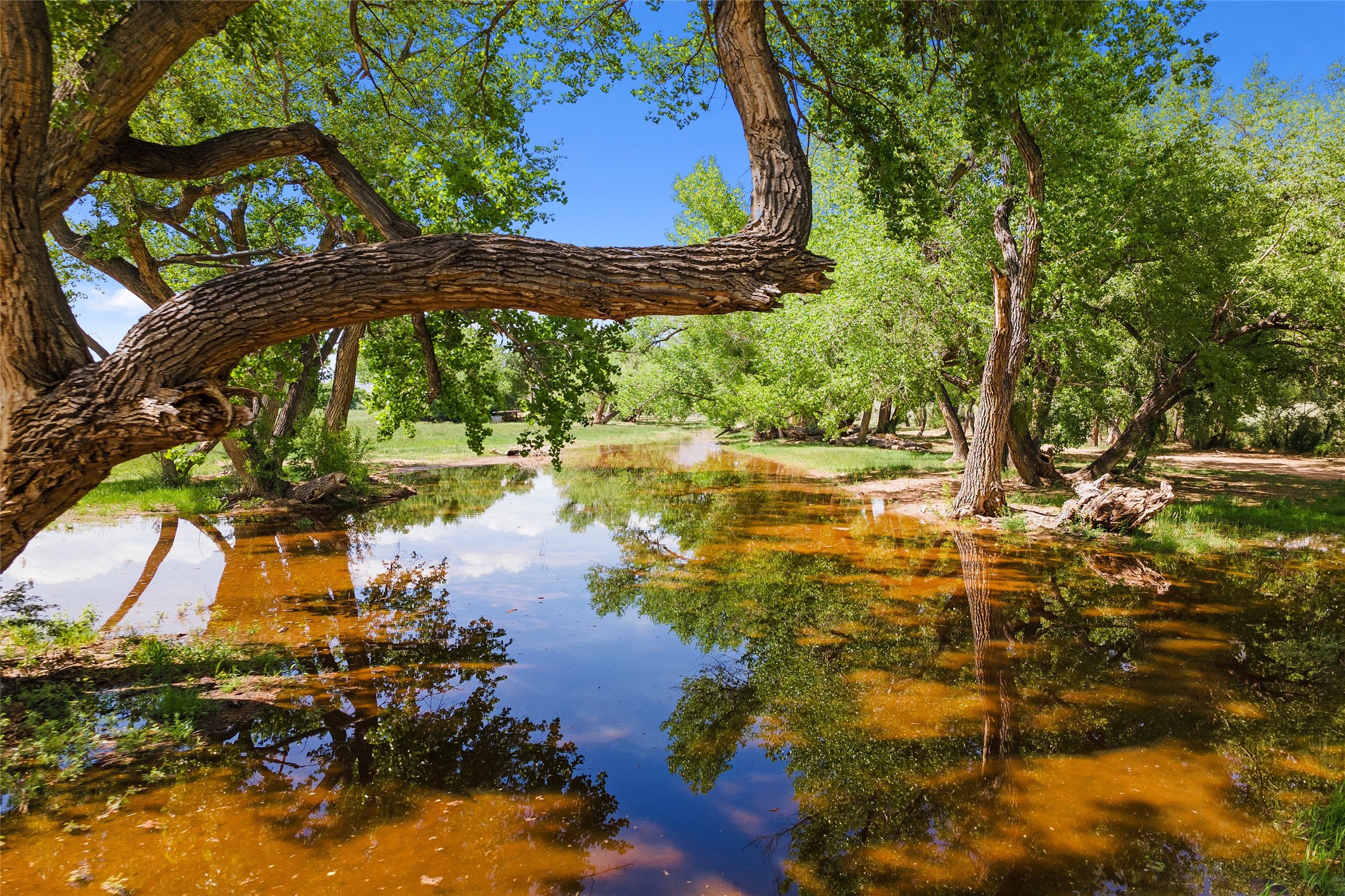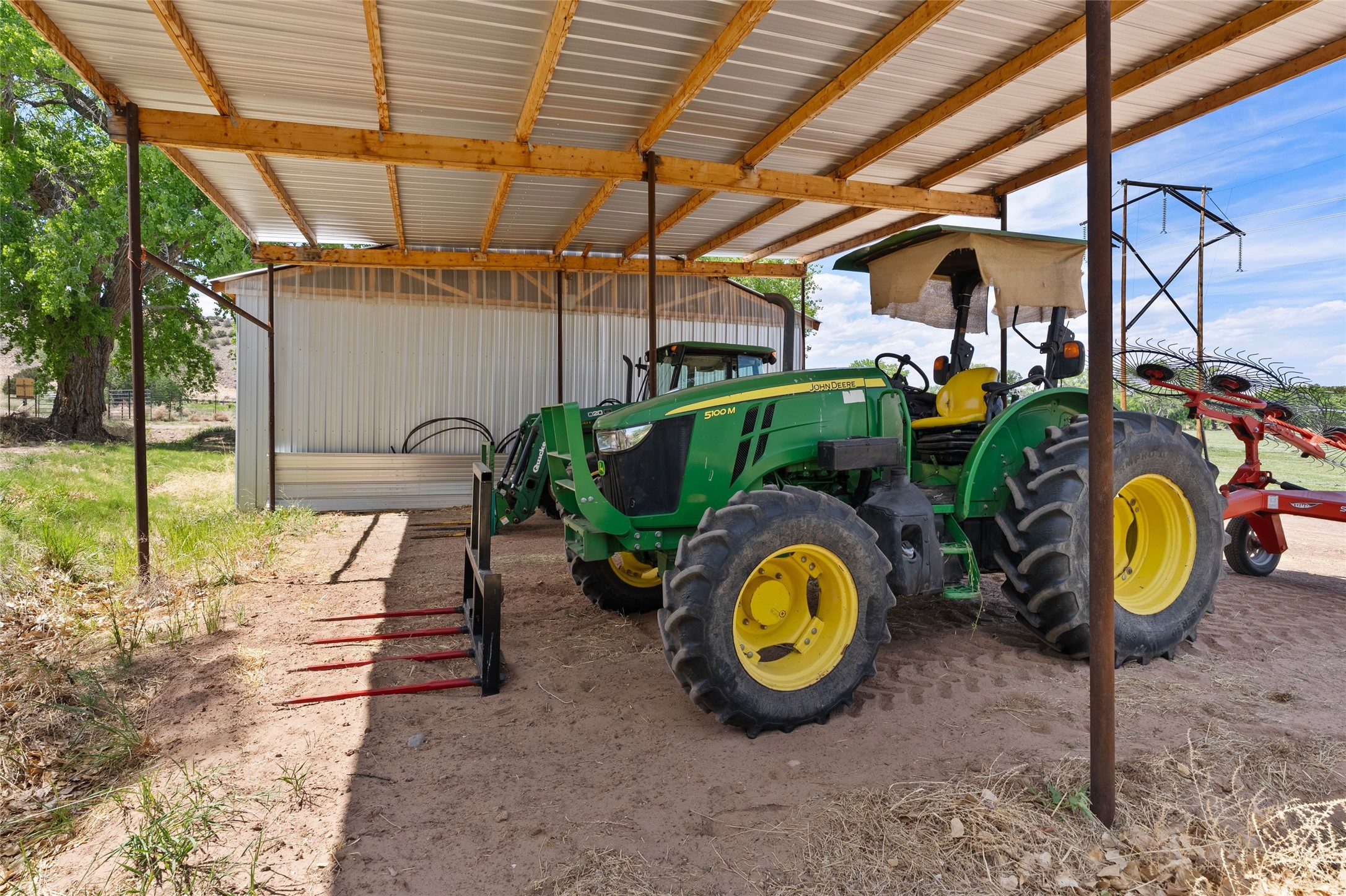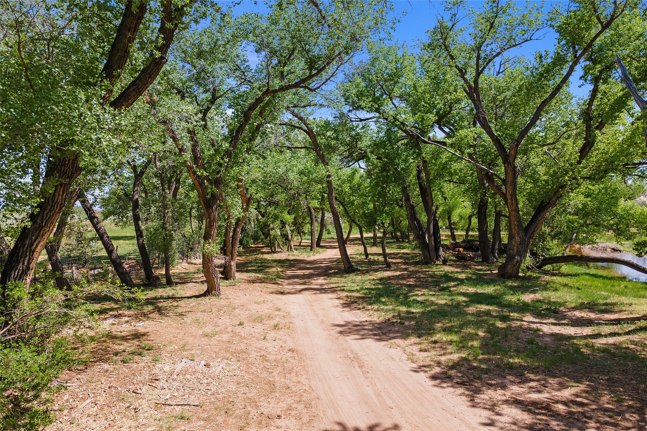 Ideal setting in the Rio Chama Valley for homesite and equestrian facilities with river frontage and stunning views in all directions including barrancas and surrounding mountain ranges. Nestled into a bosque lined with cottonwood trees, willows and native grasses, the property has easy access to riding trails and the Carson National Forest Land. Located just south of Abiquiu, this 53+ acre fertile crop producing farmland with water rights has excellent income potential. Laser-levelled fields, extensive irrigation systems, gates and fencing, solar panels, equipment and storage barn and outbuildings are among the improvements made to this land.