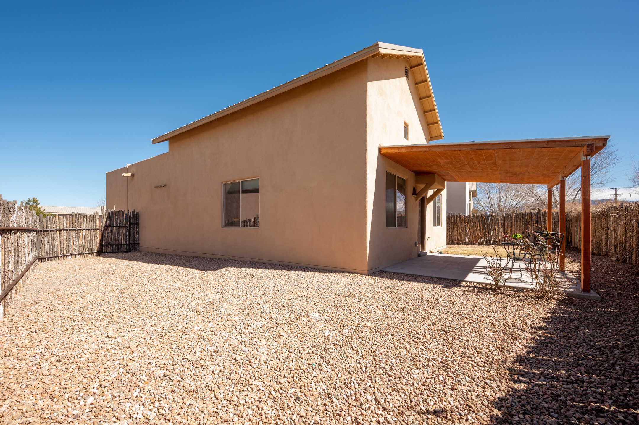 **OWNER FINANCING AVAILABLE** Discover comfort and contemporary living in this beautifully maintained single-story home offering 1,308 square feet of well-designed space. Featuring three bedrooms and two full bathrooms, this residence blends style and function with soaring ceilings and expansive windows that fill the home with natural light. The open-concept layout showcases a modern kitchen complete with stainless steel appliances and a generous island--perfect for cooking, gathering, and entertaining. The spacious primary suite includes a private bathroom and a walk-in closet, while two additional bedrooms and a full hallway bath provide flexibility for guests, a home office, or creative space. Eco-conscious upgrades include a solar photovoltaic system, an on-demand water heater, and an electric vehicle charger in the attached garage. Recent improvements such as fresh interior paint, a new sewer line pump, and a thoroughly inspected roof ensure peace of mind. Step outside into a large, private backyard enclosed by striking coyote fencing, offering a peaceful space for relaxation or family gatherings. Ideally located just minutes from shopping, the vibrant heart of downtown Santa Fe, and cultural hotspots like Meow Wolf, this home offers the best of both convenience and serenity. Whether you're commuting, traveling, or exploring the area, everything is close at hand. With its mix of thoughtful amenities, sustainable features, and prime location, this charming home is a rare find that offers both modern comforts and a sense of retreat.