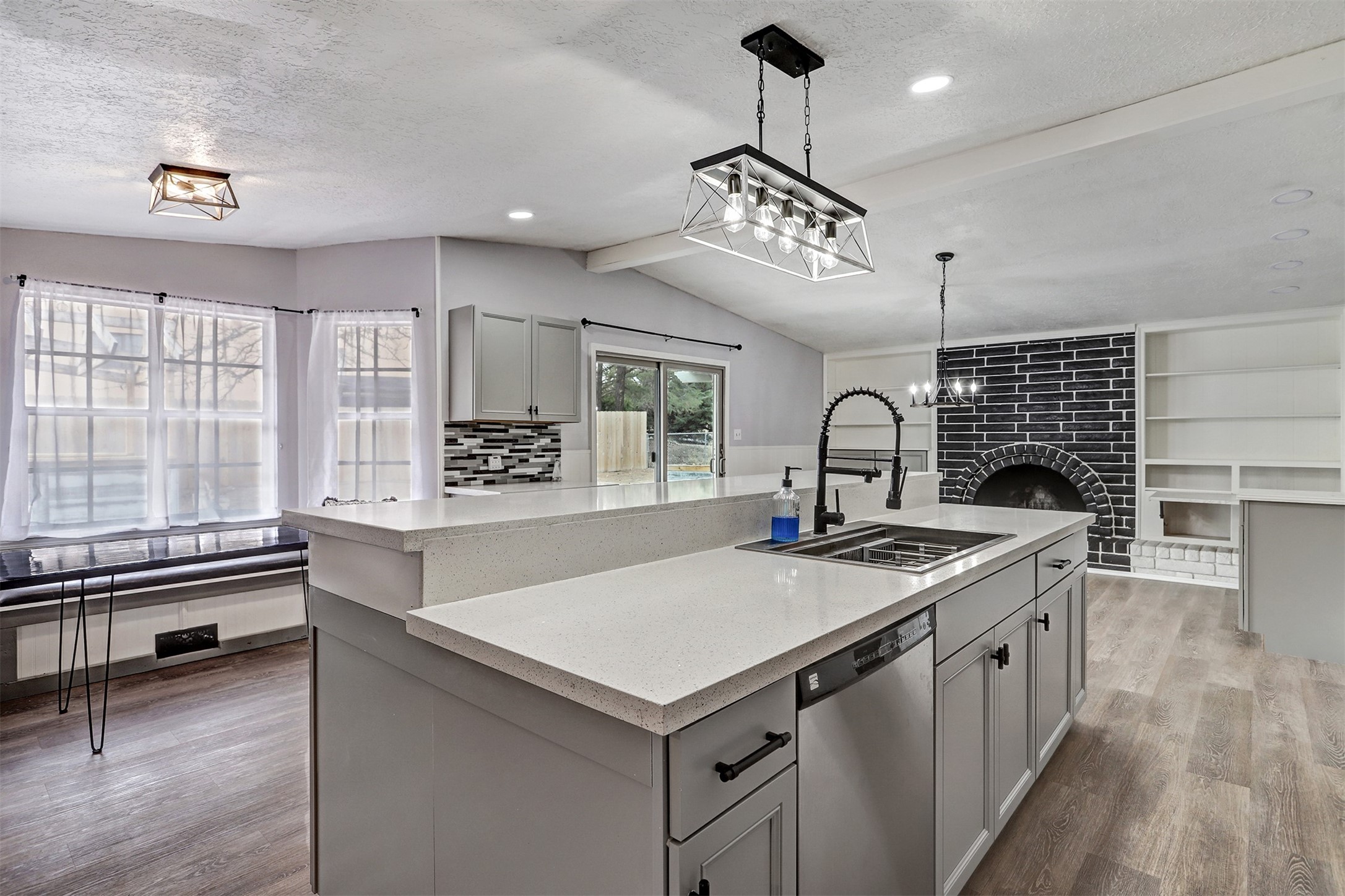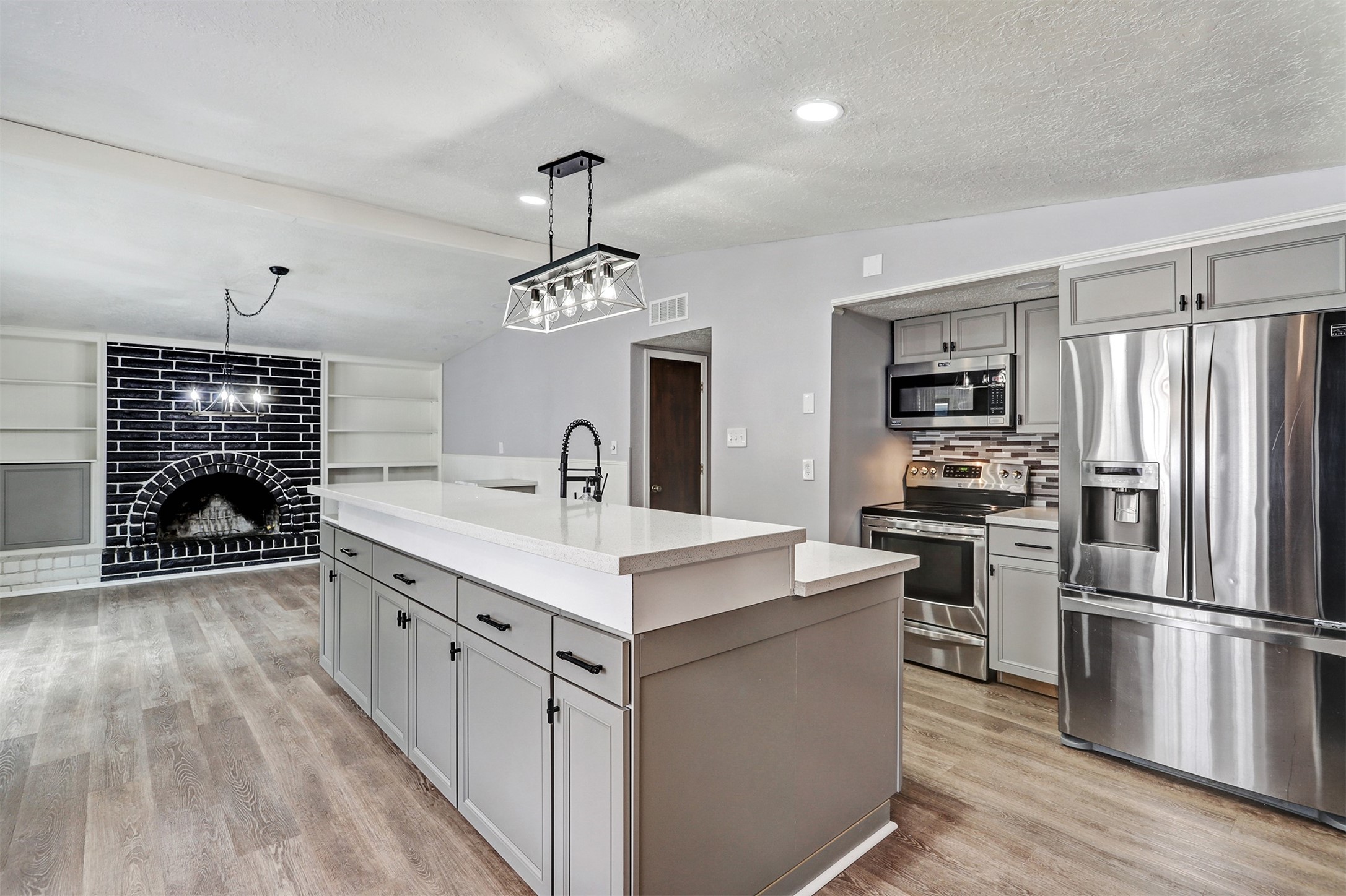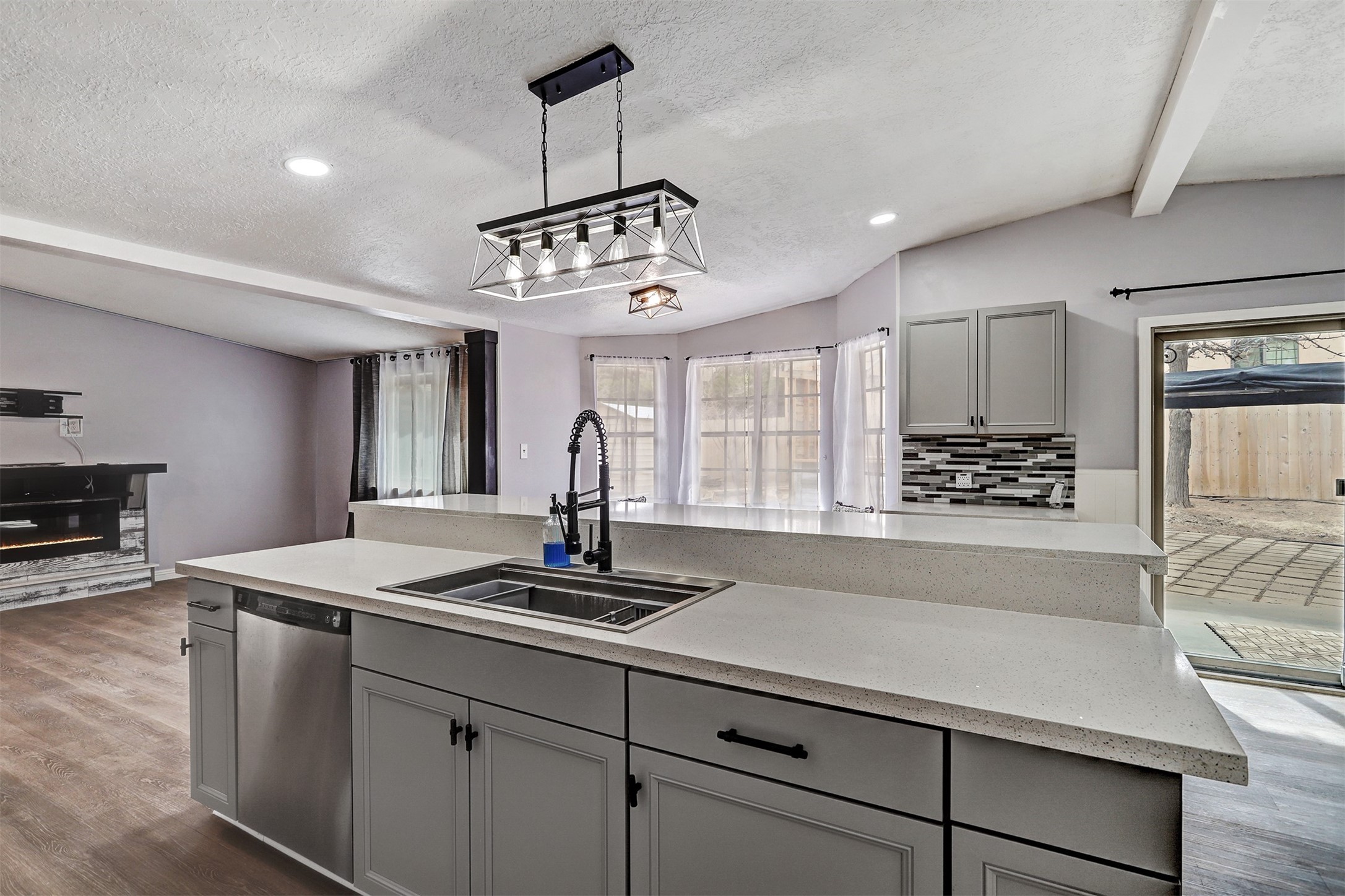 Welcome to this beautifully updated home situated on a spacious .344-acre lot. This common White Rock floor plan has been updated to better utilize the space and improve aesthetics. As you step inside, you'll immediately notice the attention to detail, from the remodeled kitchen to the open family room including an electric fireplace, creating a cozy atmosphere for gatherings and relaxation. The kitchen features quartz countertops, stainless appliances, and ample storage. You'll love entertaining in its inviting atmosphere. The dining room or second living space boasts a lovely brick wood-burning fireplace. The home has plank flooring, and every closet is equipped with built-in organization to maximize storage and keep everything neat and tidy. The master suite is a true retreat, complete with a built-in armoire. For convenience, a designated laundry room keeps everything organized, while the two-car garage and carport (permitted) provide ample parking. Outside, the playset and hot tub convey with the property, offering year-round entertainment and relaxation. The hot tub includes its own television, so you can unwind while enjoying your favorite shows or movies. The home also features drip irrigation in the front yard flower beds, central air conditioning, and smart thermostats. The hot water heater and furnace were replaced in 2017. The majority of the windows and the sliding patio doors are Anderson. Don't miss out on this stunning home with all the right upgrades and amenities. Schedule a showing today!