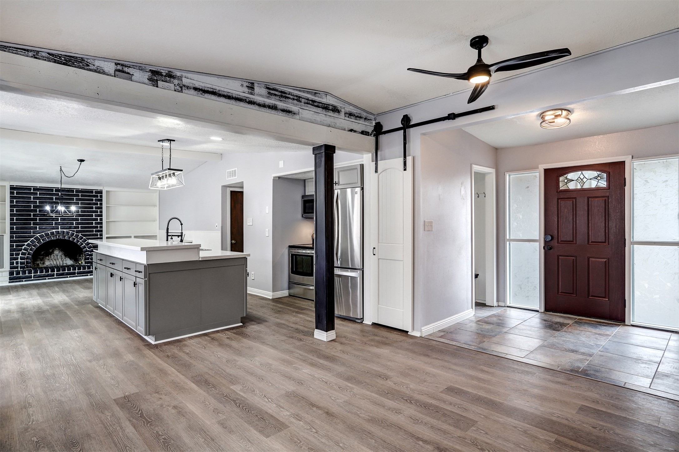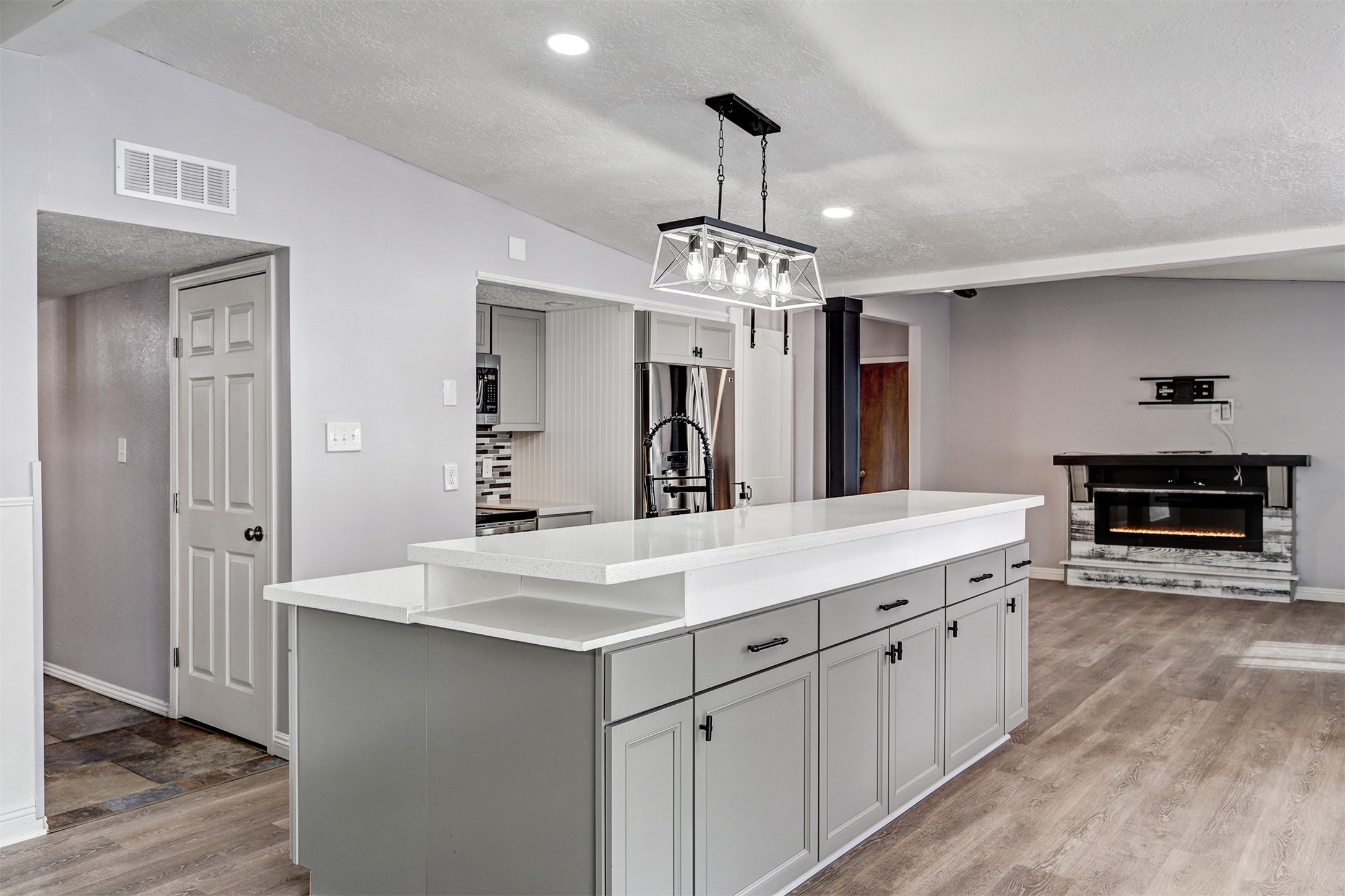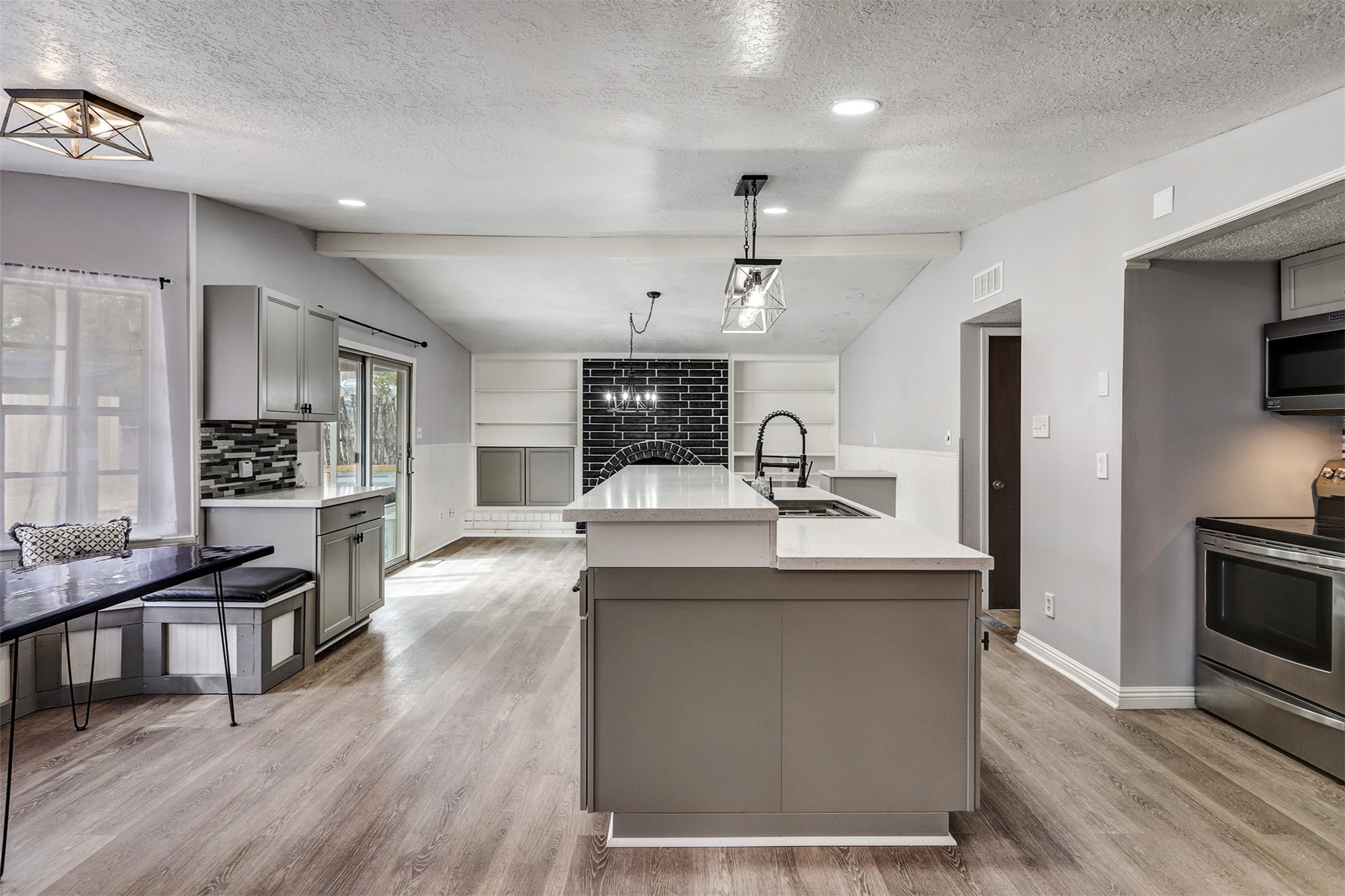 Welcome to this beautifully updated home situated on a spacious .344-acre lot. This common White Rock floor plan has been updated to better utilize the space and improve aesthetics. As you step inside, you'll immediately notice the attention to detail, from the remodeled kitchen to the open family room including an electric fireplace, creating a cozy atmosphere for gatherings and relaxation. The kitchen features quartz countertops, stainless appliances, and ample storage. You'll love entertaining in its inviting atmosphere. The dining room or second living space boasts a lovely brick wood-burning fireplace. The home has plank flooring, and every closet is equipped with built-in organization to maximize storage and keep everything neat and tidy. The master suite is a true retreat, complete with a built-in armoire. For convenience, a designated laundry room keeps everything organized, while the two-car garage and carport (permitted) provide ample parking. Outside, the playset and hot tub convey with the property, offering year-round entertainment and relaxation. The hot tub includes its own television, so you can unwind while enjoying your favorite shows or movies. The home also features drip irrigation in the front yard flower beds, central air conditioning, and smart thermostats. The hot water heater and furnace were replaced in 2017. The majority of the windows and the sliding patio doors are Anderson. Don't miss out on this stunning home with all the right upgrades and amenities. Schedule a showing today!
