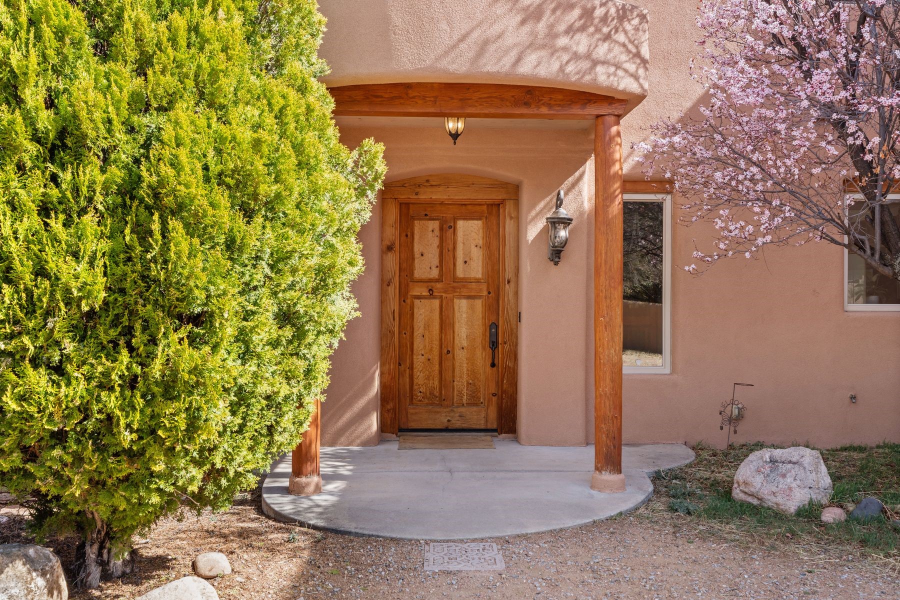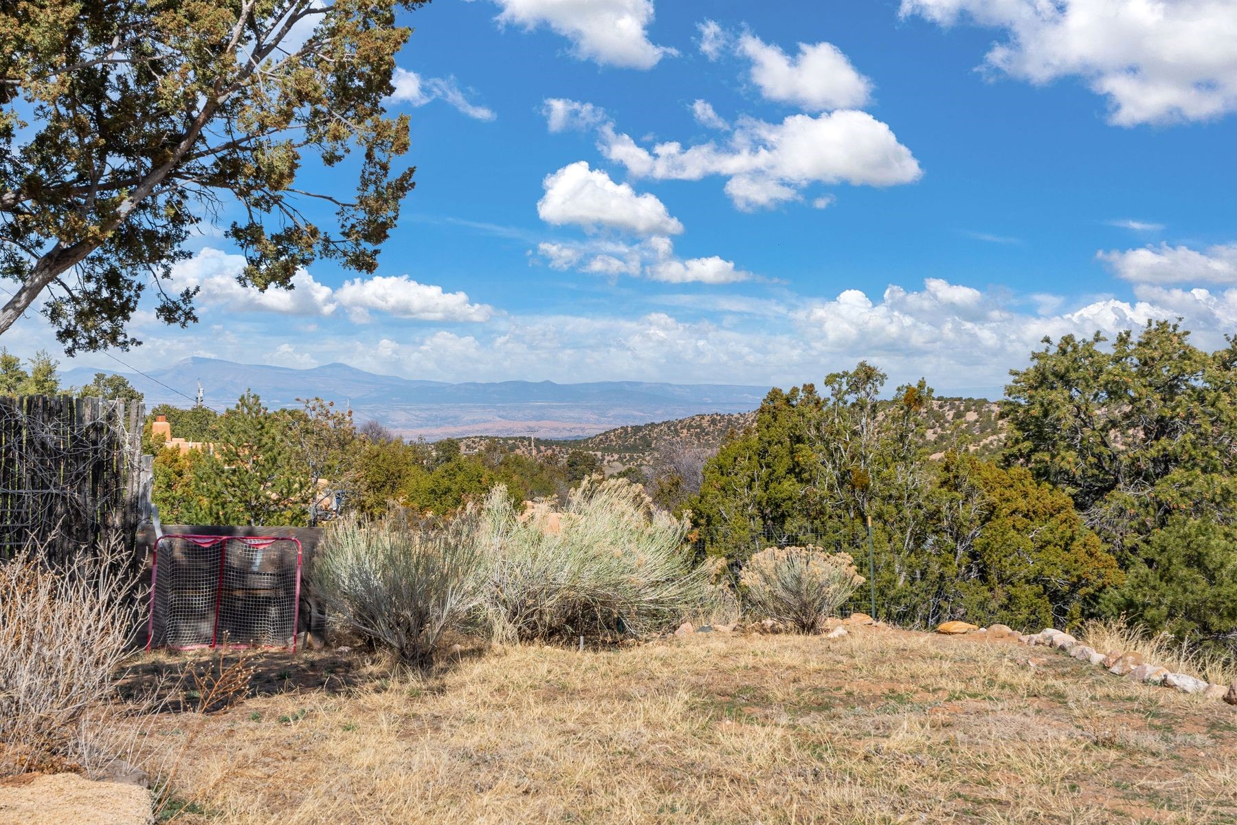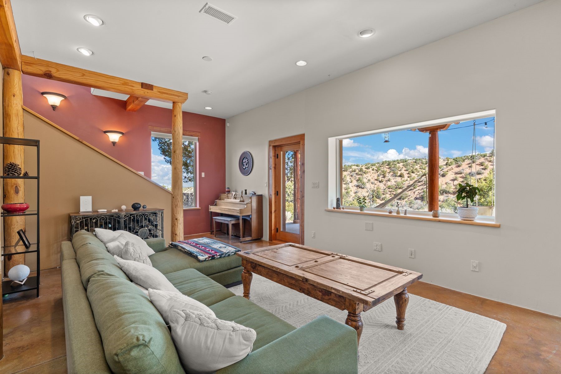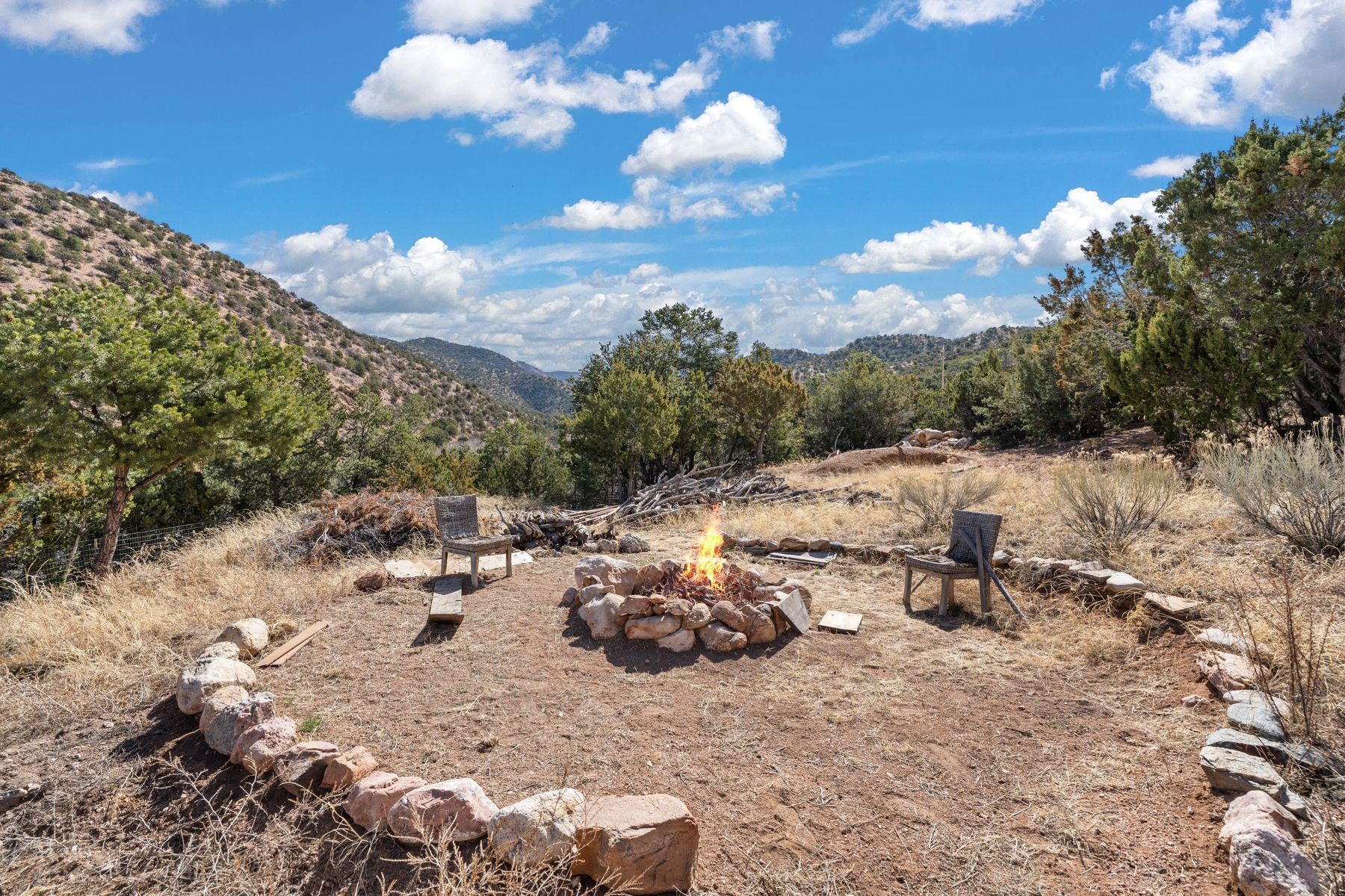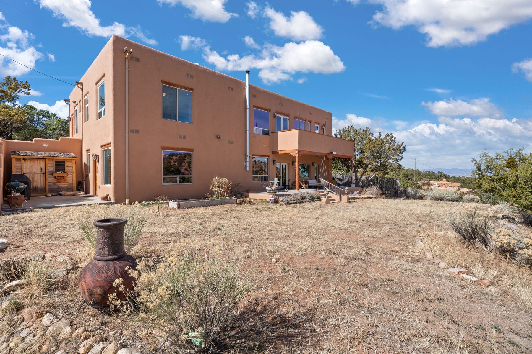 Sited in the heart of the mountains, this amazing approx. 3,394 sq. ft. home offers unparalleled privacy, Jemez and sunset views, and year-round natural beauty. Situated on a secluded 0.7-acre lot, the property is located near the river that flows year-round, lush surroundings, and abundant wildlife--truly a nature lover's or hiker's dream.Built in 2001 and thoughtfully remodeled by DreamStyle, this home blends modern comforts with rustic charm. Inside, stained concrete floors, radiant heat, and a wood-burning stove in the kitchen create a warm and inviting atmosphere. A new boiler ensures energy efficiency, while some newly replaced windows maximize natural light and showcase the stunning landscape.The main house features a spacious main floor with a powder room and an open flow to the outdoors, where a large portal and hot tub offer a perfect retreat. Upstairs, you'll find two bedrooms, an office space, a versatile den/living room, and an balcony with new decking--ideal for enjoying the mountain views.Adding to the home's versatility, an attached guesthouse with its own private entrance, kitchen, bedroom, and living area provides the perfect space for guests, a studio, an office, or a rental opportunity. The guesthouse can be fully integrated with the main home or closed off for complete privacy.Recent upgrades include new stucco (completed last summer), several new windows and doors. The property has duct system, allowing for AC installation if desired. Outside, the lush backyard features fruit trees (plum and apricot), a traditional acequia, and a storage shed.Perfectly suited for remote workers (Starlink-ready for internet), artists, and outdoor enthusiasts, this tranquil retreat is just minutes to The Santa Fe Opera, Four Seasons Resort, Tesuque Village Market, and less than 15 miles from Santa Fe.This is mountain living at its finest--secluded, serene, and surrounded by natural beauty.