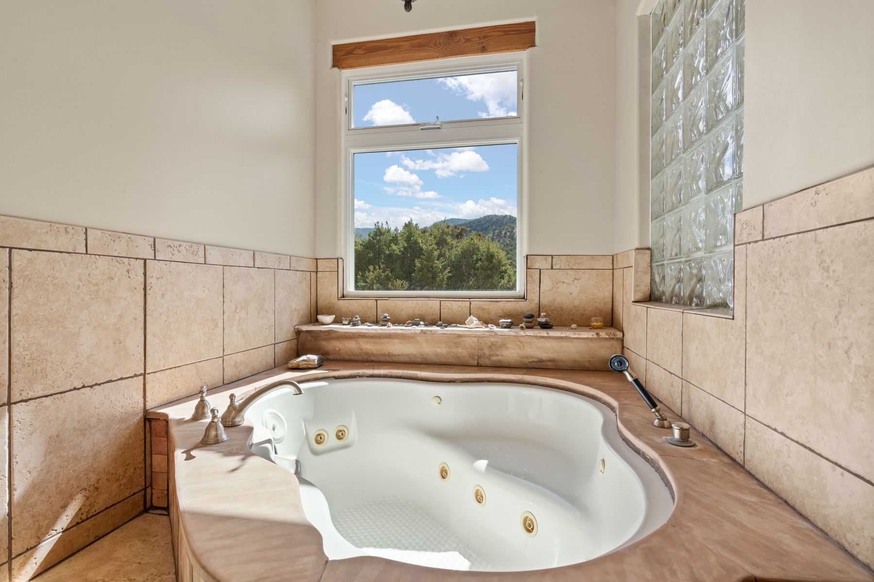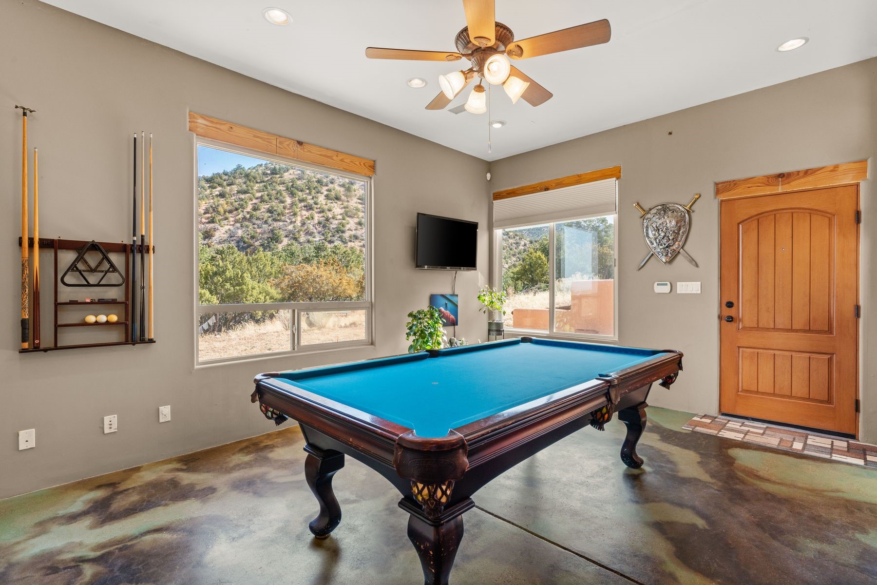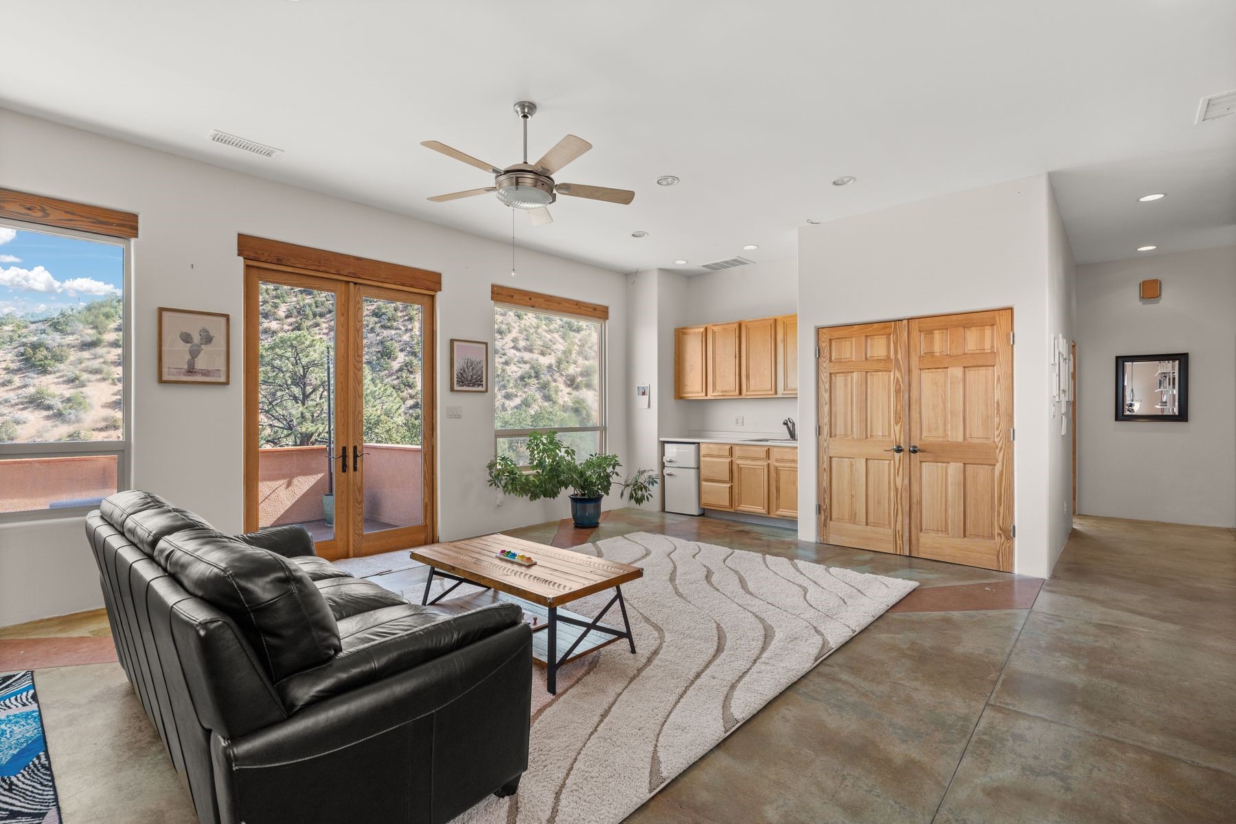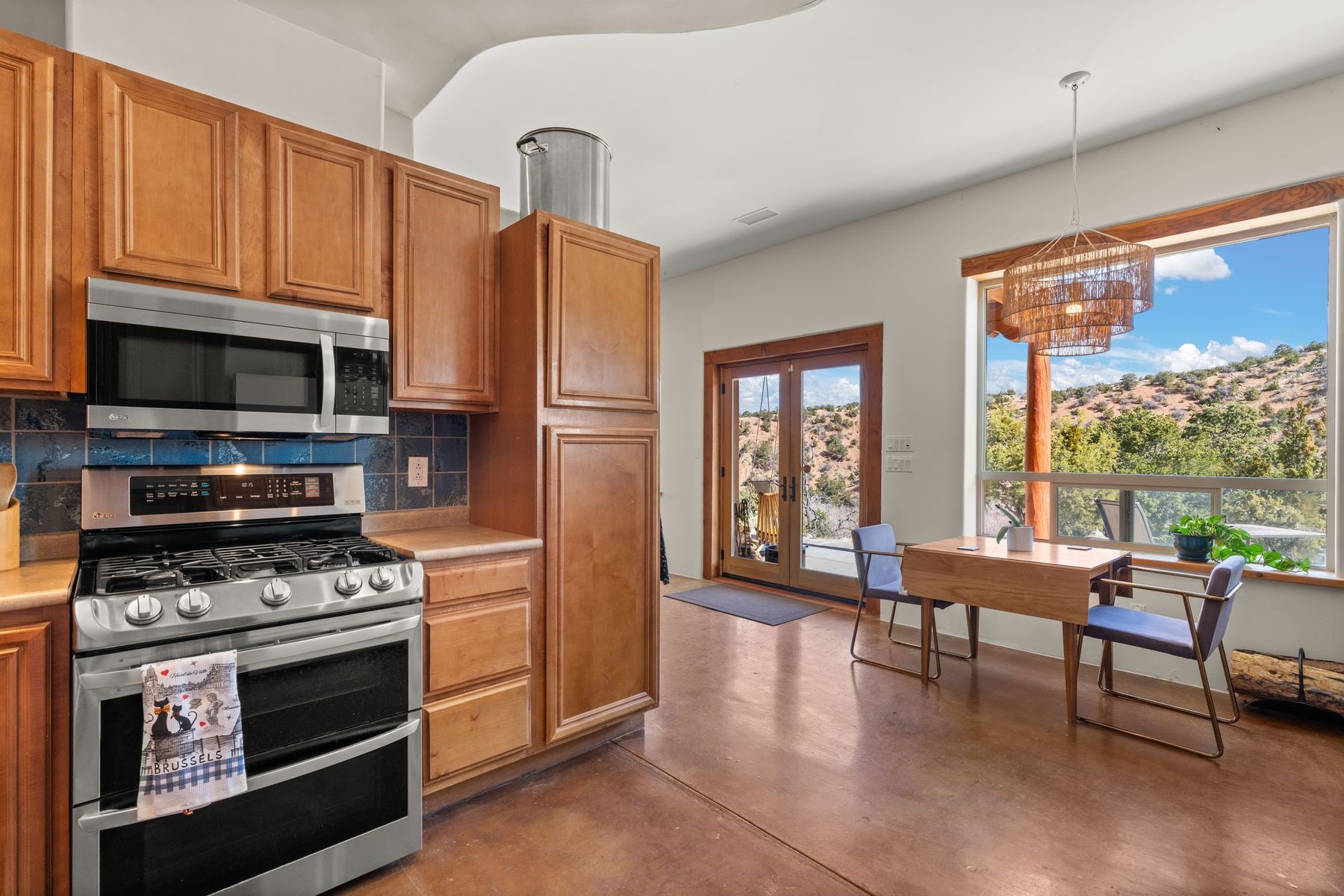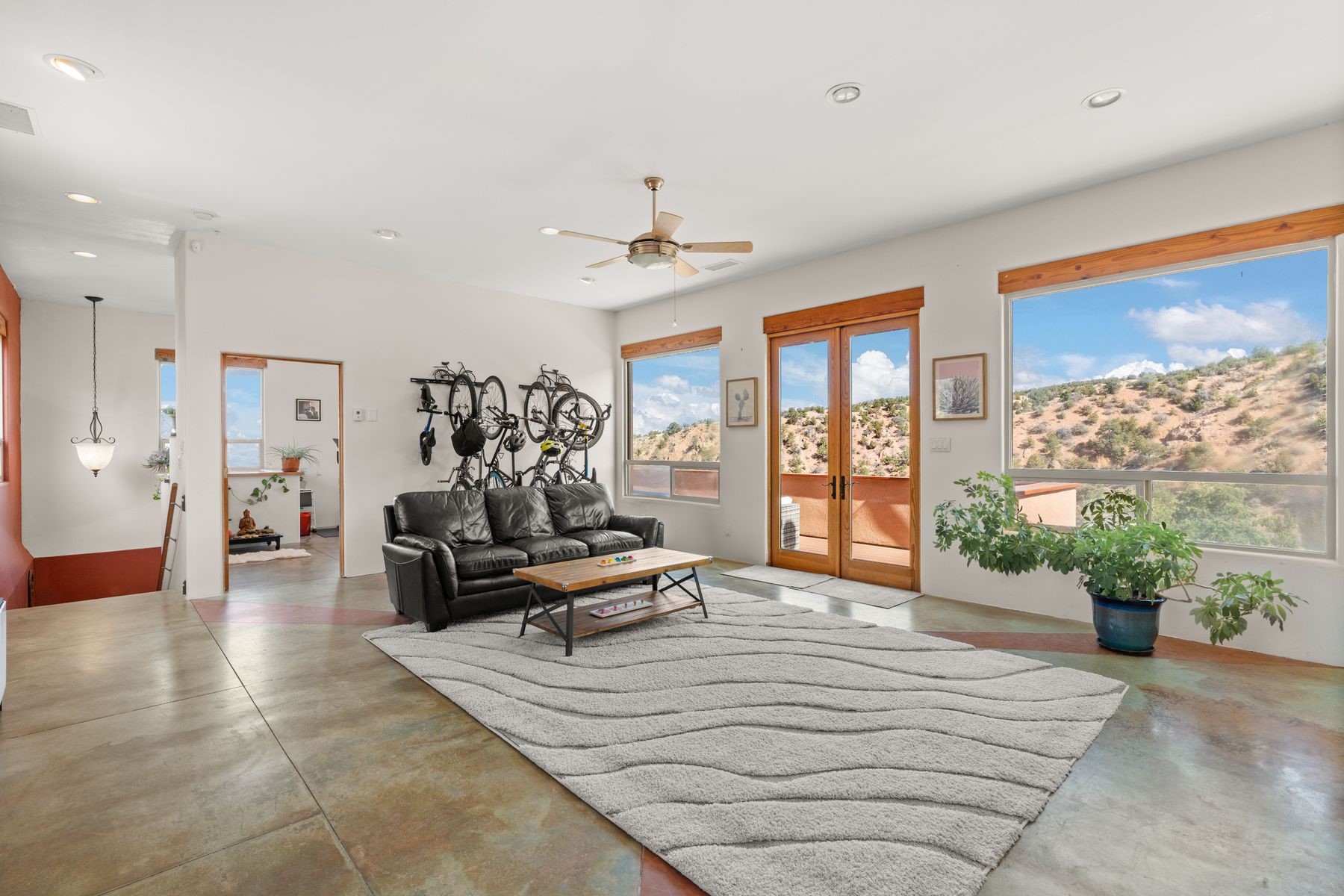 Sited in the heart of the mountains, this amazing approx. 3,394 sq. ft. home offers unparalleled privacy, Jemez and sunset views, and year-round natural beauty. Situated on a secluded 0.7-acre lot, the property is located near the river that flows year-round, lush surroundings, and abundant wildlife--truly a nature lover's or hiker's dream.Built in 2001 and thoughtfully remodeled by DreamStyle, this home blends modern comforts with rustic charm. Inside, stained concrete floors, radiant heat, and a wood-burning stove in the kitchen create a warm and inviting atmosphere. A new boiler ensures energy efficiency, while some newly replaced windows maximize natural light and showcase the stunning landscape.The main house features a spacious main floor with a powder room and an open flow to the outdoors, where a large portal and hot tub offer a perfect retreat. Upstairs, you'll find two bedrooms, an office space, a versatile den/living room, and an balcony with new decking--ideal for enjoying the mountain views.Adding to the home's versatility, an attached guesthouse with its own private entrance, kitchen, bedroom, and living area provides the perfect space for guests, a studio, an office, or a rental opportunity. The guesthouse can be fully integrated with the main home or closed off for complete privacy.Recent upgrades include new stucco (completed last summer), several new windows and doors. The property has duct system, allowing for AC installation if desired. Outside, the lush backyard features fruit trees (plum and apricot), a traditional acequia, and a storage shed.Perfectly suited for remote workers (Starlink-ready for internet), artists, and outdoor enthusiasts, this tranquil retreat is just minutes to The Santa Fe Opera, Four Seasons Resort, Tesuque Village Market, and less than 15 miles from Santa Fe.This is mountain living at its finest--secluded, serene, and surrounded by natural beauty.