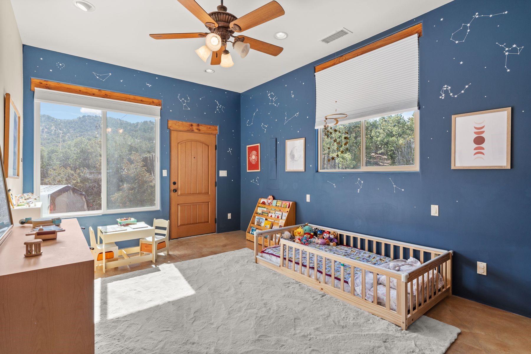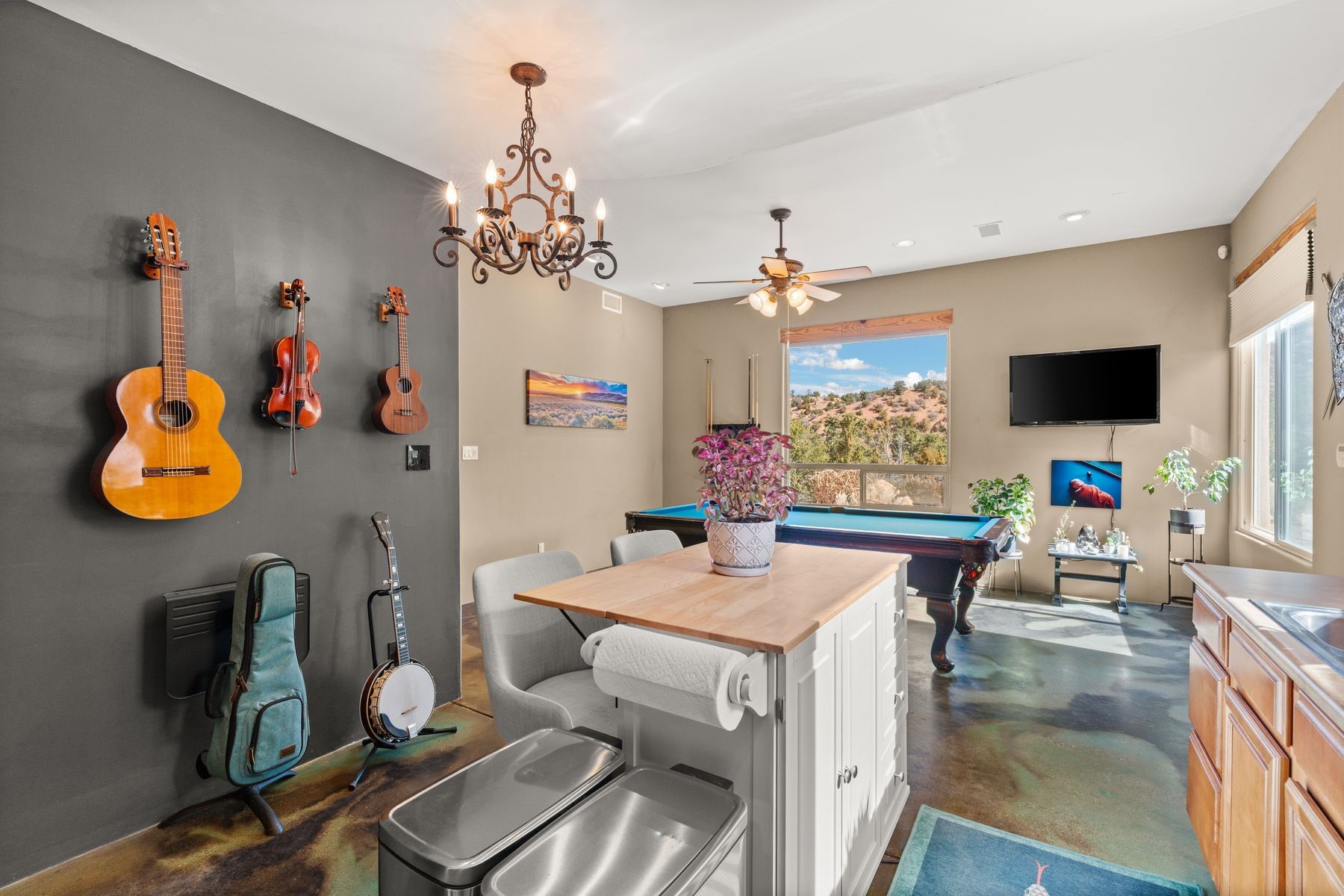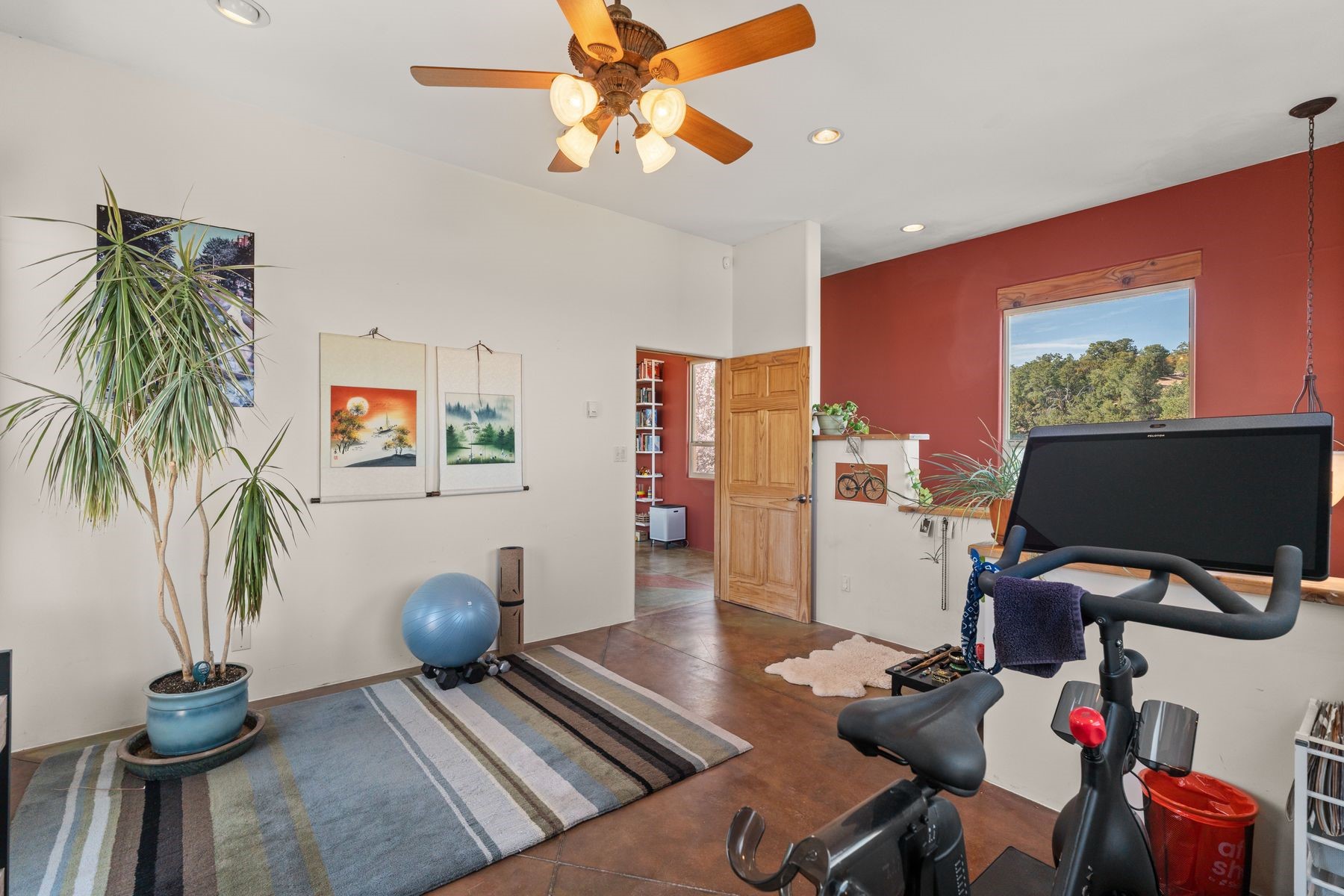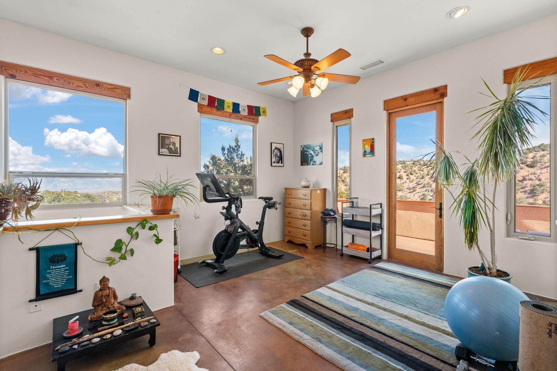 Sited in the heart of the mountains, this amazing approx. 3,394 sq. ft. home offers unparalleled privacy, Jemez and sunset views, and year-round natural beauty. Situated on a secluded 0.7-acre lot, the property is located near the river that flows year-round, lush surroundings, and abundant wildlife--truly a nature lover's or hiker's dream.Built in 2001 and thoughtfully remodeled by DreamStyle, this home blends modern comforts with rustic charm. Inside, stained concrete floors, radiant heat, and a wood-burning stove in the kitchen create a warm and inviting atmosphere. A new boiler ensures energy efficiency, while some newly replaced windows maximize natural light and showcase the stunning landscape.The main house features a spacious main floor with a powder room and an open flow to the outdoors, where a large portal and hot tub offer a perfect retreat. Upstairs, you'll find two bedrooms, an office space, a versatile den/living room, and an balcony with new decking--ideal for enjoying the mountain views.Adding to the home's versatility, an attached guesthouse with its own private entrance, kitchen, bedroom, and living area provides the perfect space for guests, a studio, an office, or a rental opportunity. The guesthouse can be fully integrated with the main home or closed off for complete privacy.Recent upgrades include new stucco (completed last summer), several new windows and doors. The property has duct system, allowing for AC installation if desired. Outside, the lush backyard features fruit trees (plum and apricot), a traditional acequia, and a storage shed.Perfectly suited for remote workers (Starlink-ready for internet), artists, and outdoor enthusiasts, this tranquil retreat is just minutes to The Santa Fe Opera, Four Seasons Resort, Tesuque Village Market, and less than 15 miles from Santa Fe.This is mountain living at its finest--secluded, serene, and surrounded by natural beauty.