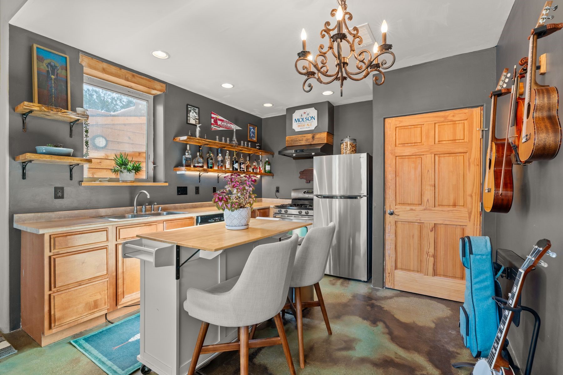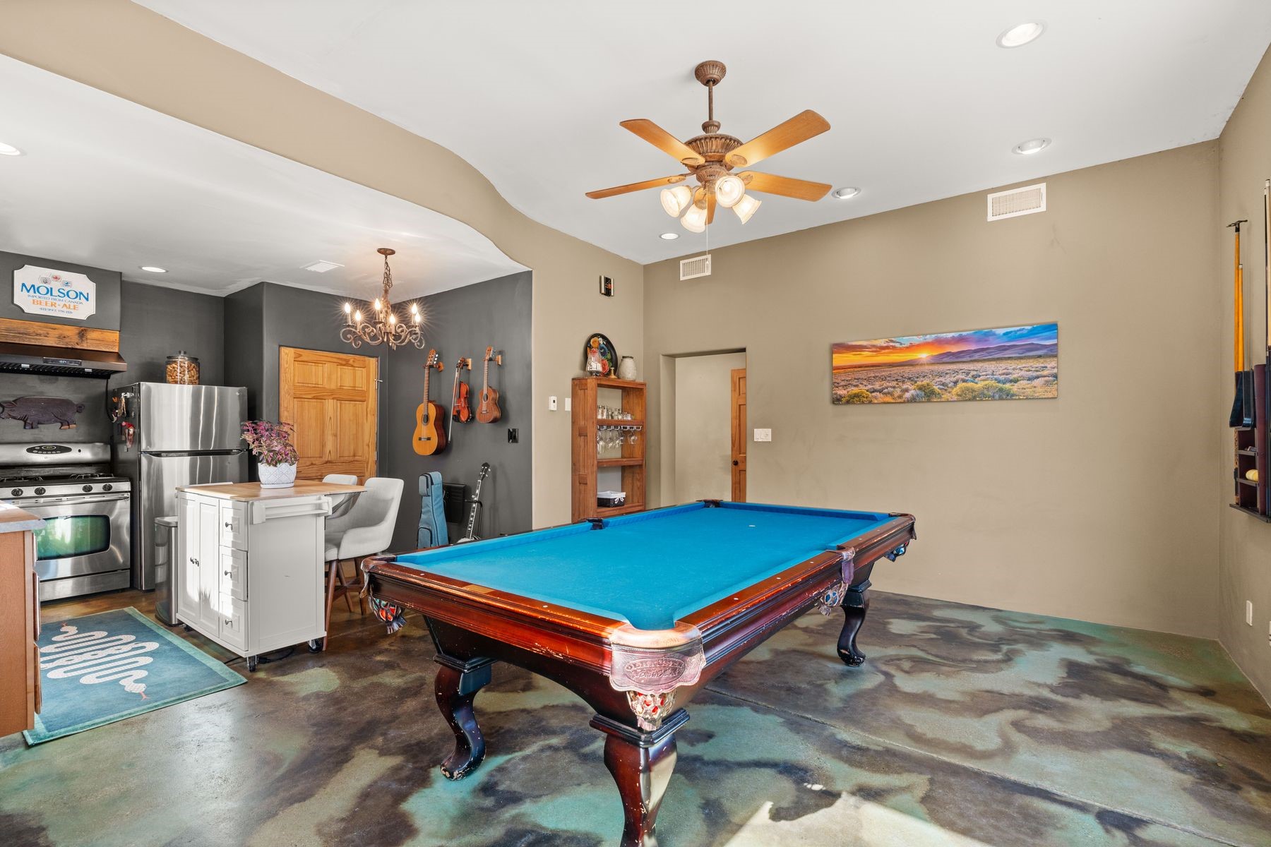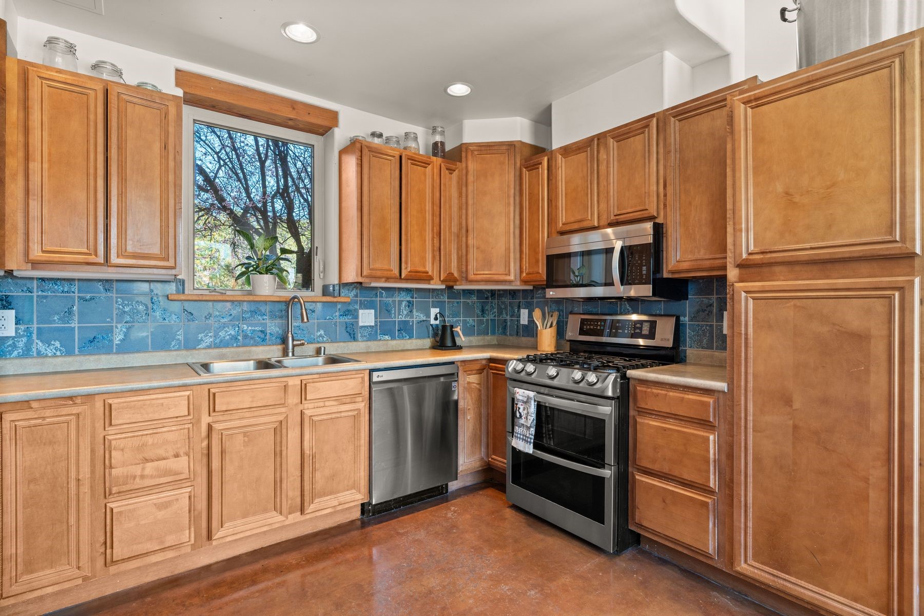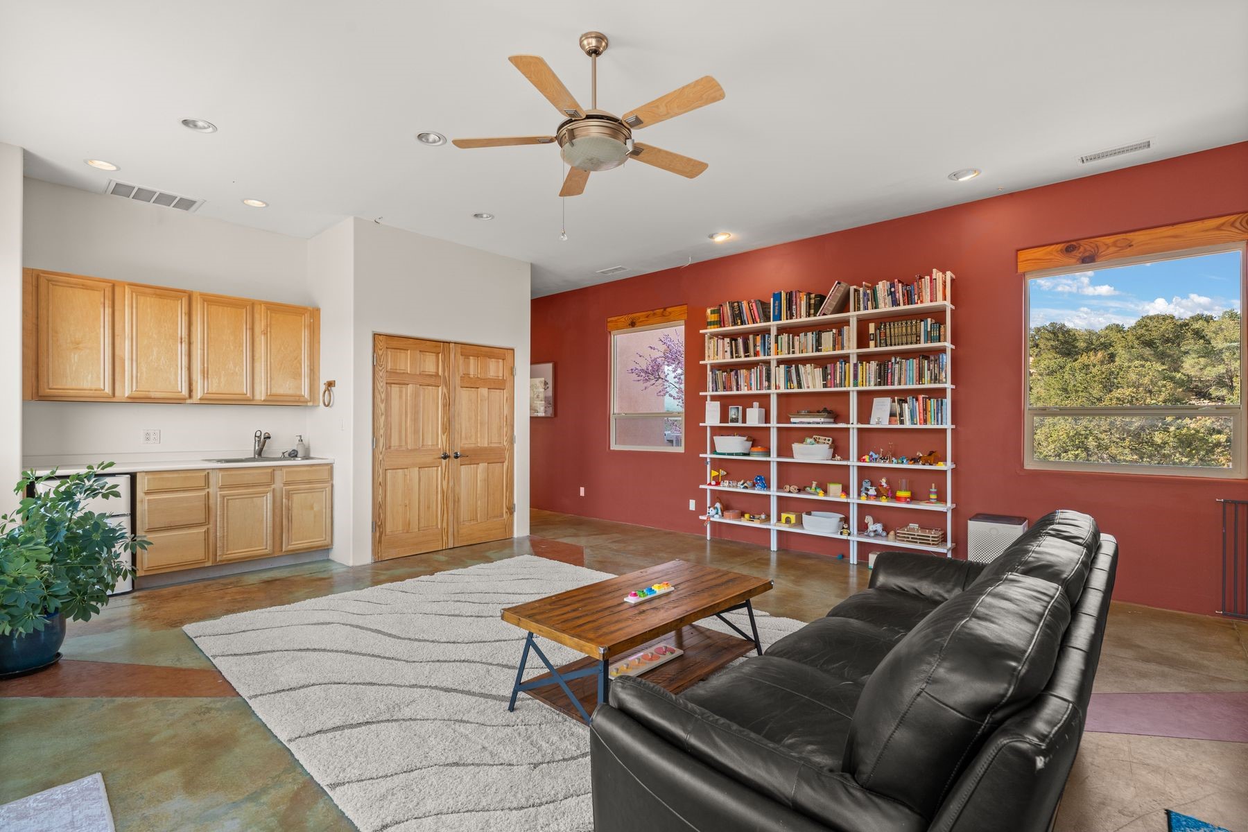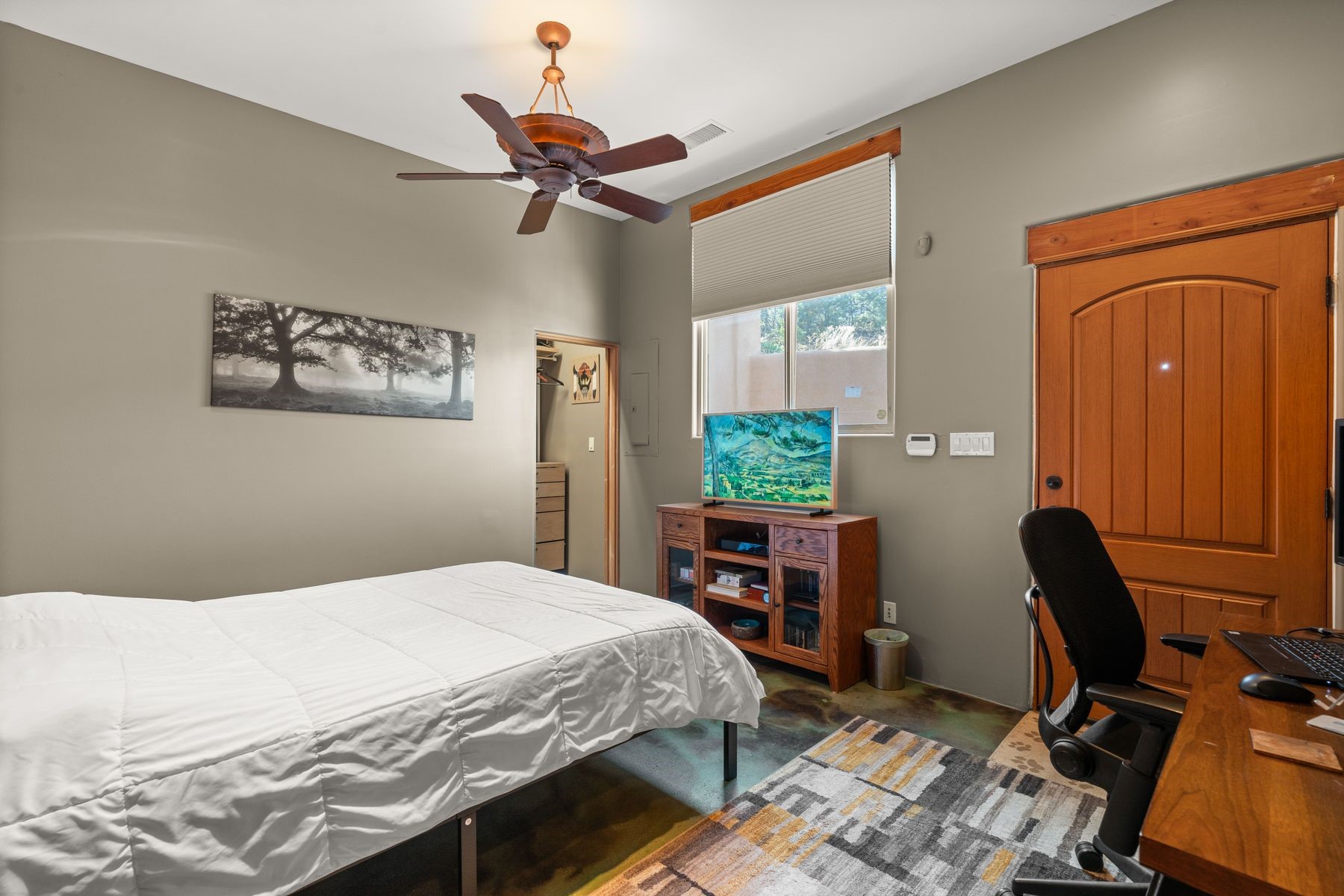 Sited in the heart of the mountains, this amazing approx. 3,394 sq. ft. home offers unparalleled privacy, Jemez and sunset views, and year-round natural beauty. Situated on a secluded 0.7-acre lot, the property is located near the river that flows year-round, lush surroundings, and abundant wildlife--truly a nature lover's or hiker's dream.Built in 2001 and thoughtfully remodeled by DreamStyle, this home blends modern comforts with rustic charm. Inside, stained concrete floors, radiant heat, and a wood-burning stove in the kitchen create a warm and inviting atmosphere. A new boiler ensures energy efficiency, while some newly replaced windows maximize natural light and showcase the stunning landscape.The main house features a spacious main floor with a powder room and an open flow to the outdoors, where a large portal and hot tub offer a perfect retreat. Upstairs, you'll find two bedrooms, an office space, a versatile den/living room, and an balcony with new decking--ideal for enjoying the mountain views.Adding to the home's versatility, an attached guesthouse with its own private entrance, kitchen, bedroom, and living area provides the perfect space for guests, a studio, an office, or a rental opportunity. The guesthouse can be fully integrated with the main home or closed off for complete privacy.Recent upgrades include new stucco (completed last summer), several new windows and doors. The property has duct system, allowing for AC installation if desired. Outside, the lush backyard features fruit trees (plum and apricot), a traditional acequia, and a storage shed.Perfectly suited for remote workers (Starlink-ready for internet), artists, and outdoor enthusiasts, this tranquil retreat is just minutes to The Santa Fe Opera, Four Seasons Resort, Tesuque Village Market, and less than 15 miles from Santa Fe.This is mountain living at its finest--secluded, serene, and surrounded by natural beauty.