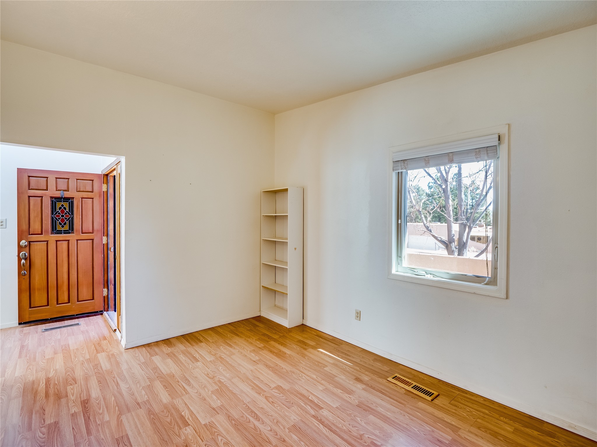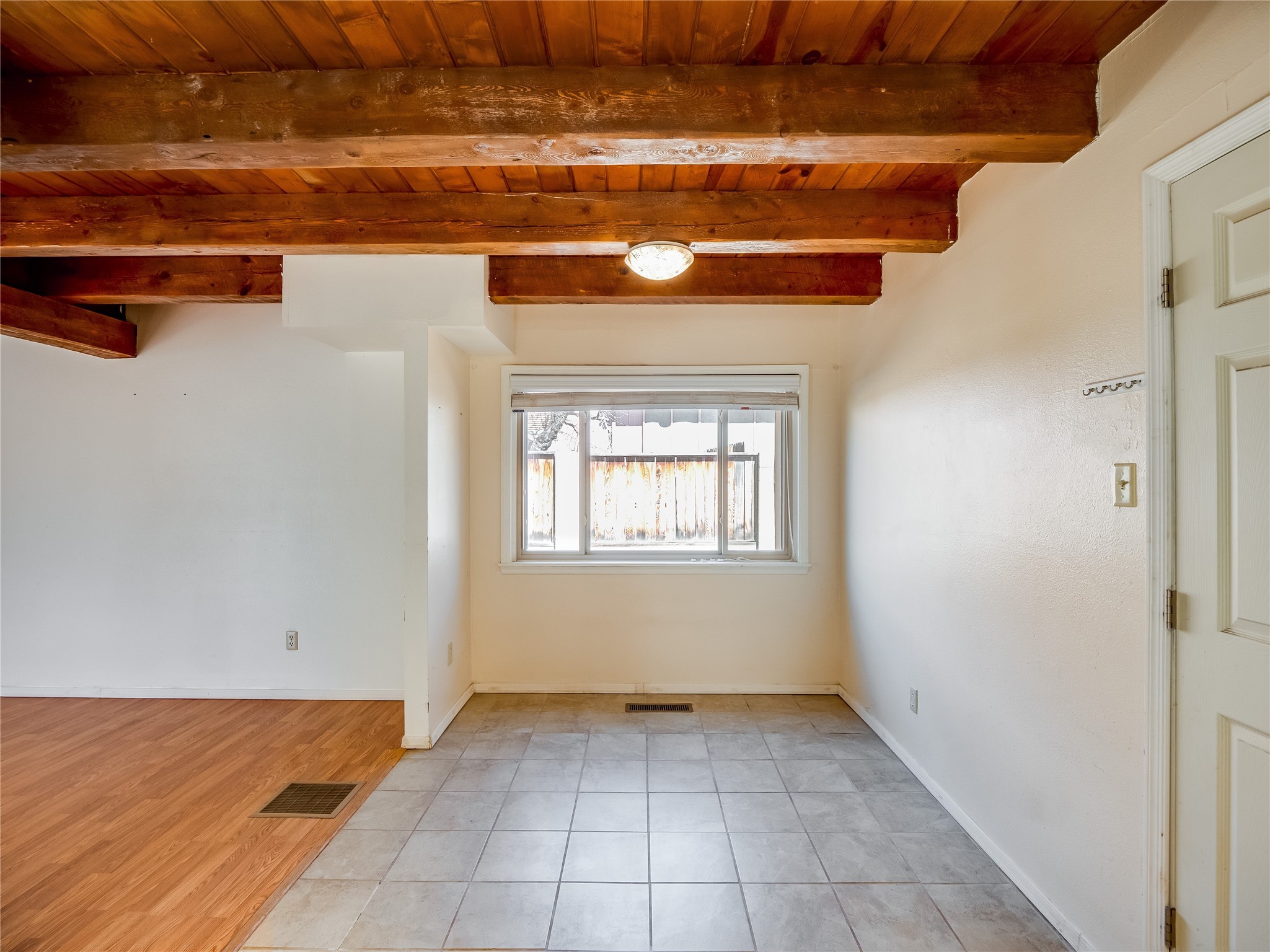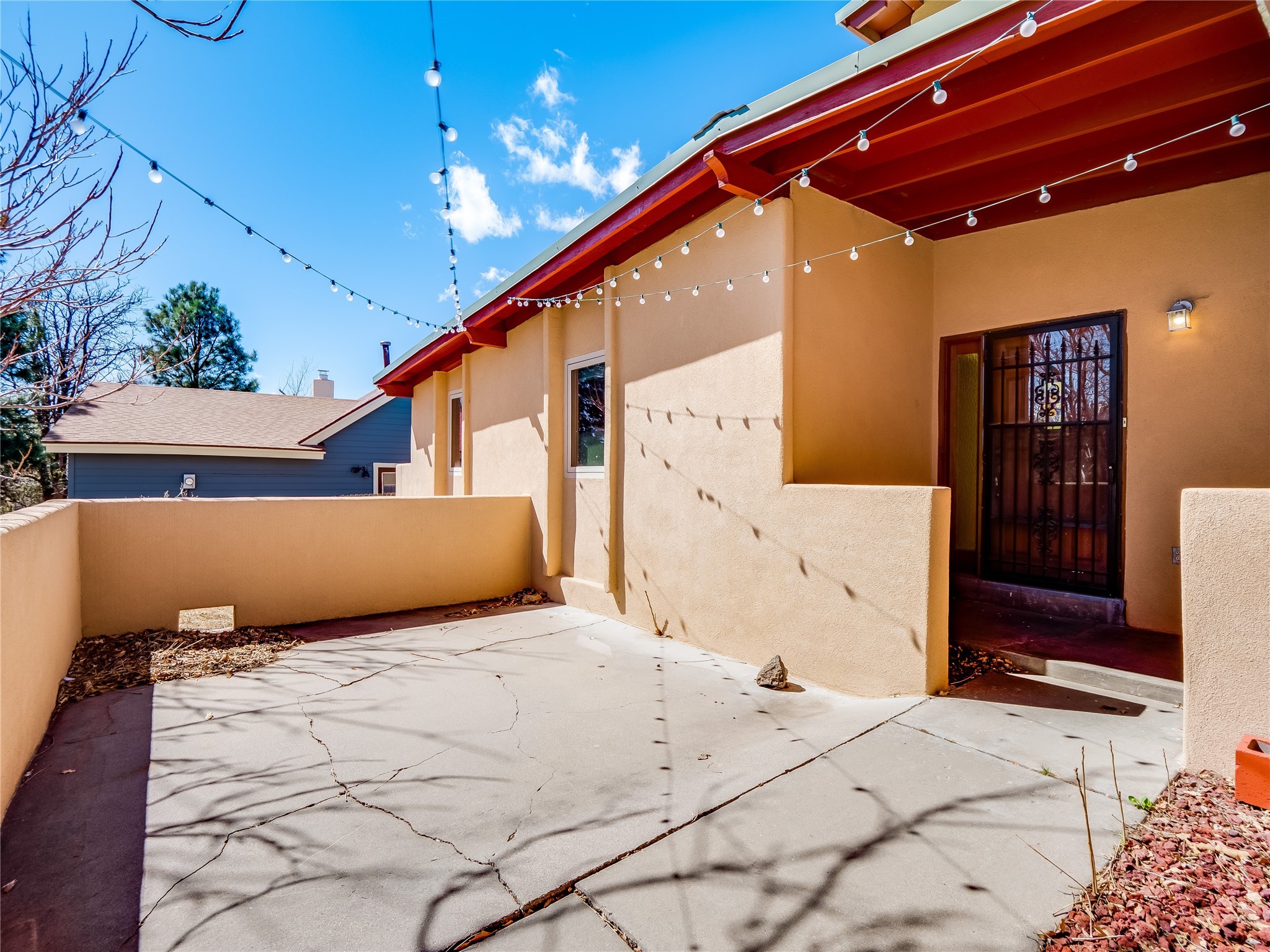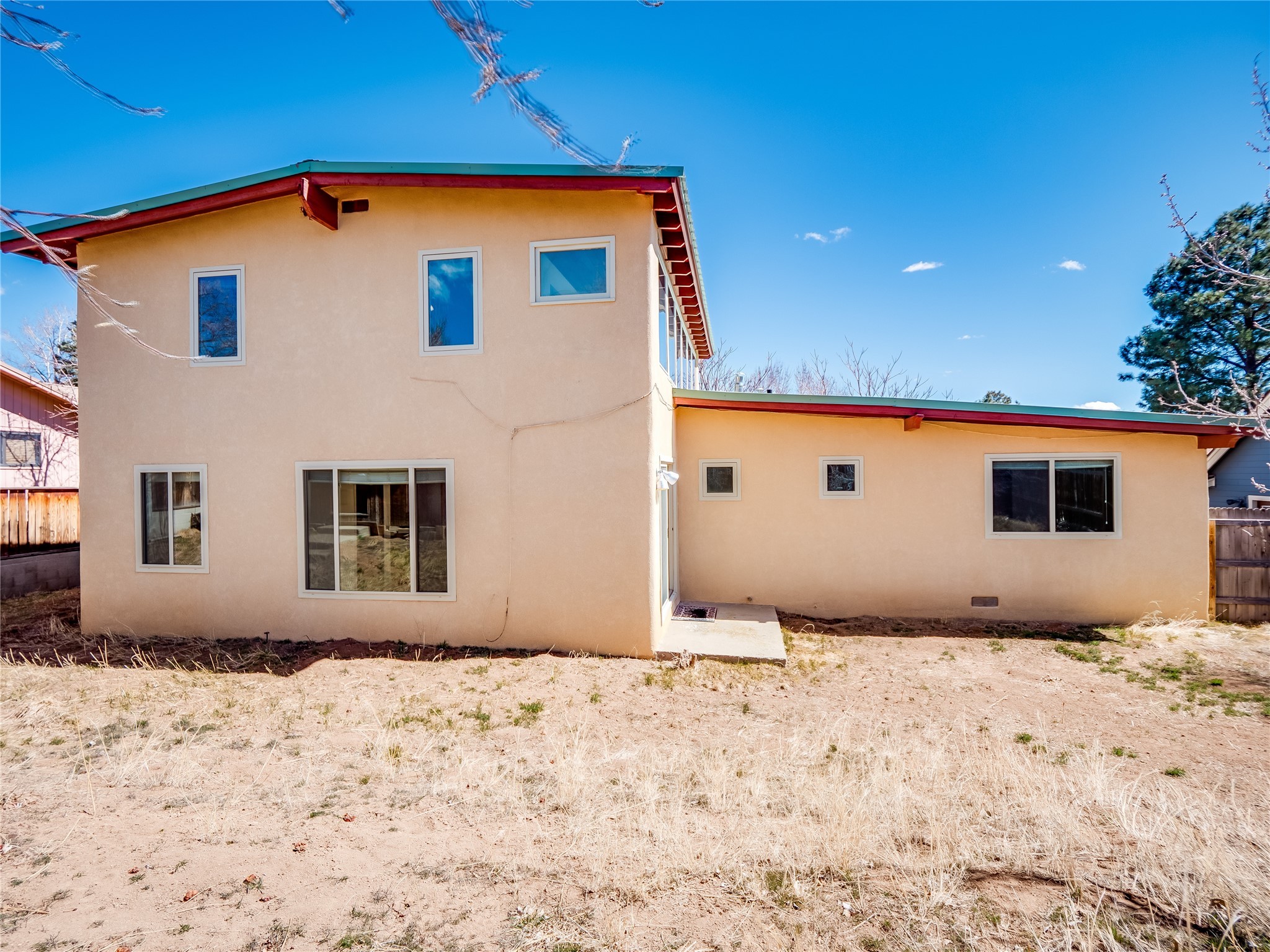 Located in a North Mesa neighborhood, this charming two-story home offers a perfect blend of warmth and character. A low-maintenance front yard with mature trees and a gated front courtyard welcomes you into this inviting residence. Once inside you'll find wood laminate floors that flow throughout the home, complemented by vaulted wood-beamed ceilings and large windows that fill the space with natural light. To the left, a versatile bonus room/den awaits. The bright and airy living room features a partial dropped wood-beamed ceiling that extends into the main living areas, along with sliding doors that lead to the backyard. Adjacent to the living room is another cozy bonus space--ideal for an office or reading nook--with access to the side yard. The intimate dining area is perfectly situated next to the kitchen and features a deep storage closet for added convenience. The kitchen boasts rich wood cabinetry, tile floors, a stylish tiled backsplash, a stainless steel refrigerator, and a brand-new electric cooktop. An additional open space in the kitchen offers the flexibility for a dining nook or a coffee or beverage bar. From here, you'll also find access to the two-car garage. Down the hallway, a guest bath, a spacious guest bedroom, and a guest en-suite provide comfortable accommodations for family and visitors. The conveniently located laundry room adds to the home's practical design. Upstairs, another guest bedroom awaits, along with the expansive primary en-suite, which features double walk-in closets and a well-appointed bath with dual sink vanities and a tiled shower/tub combination. The home has seen significant updates in 2017, including a new metal roof, stucco, windows, garage door, hot water heater, and furnace, offering peace of mind and energy efficiency. The large fenced-in backyard features mature fruit trees and ample space to design your dream outdoor oasis. Close to schools, parks, horse stables, and scenic trails, this unique home could be yours!