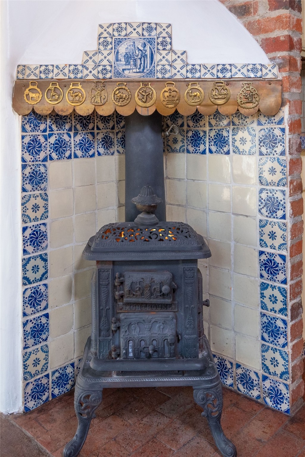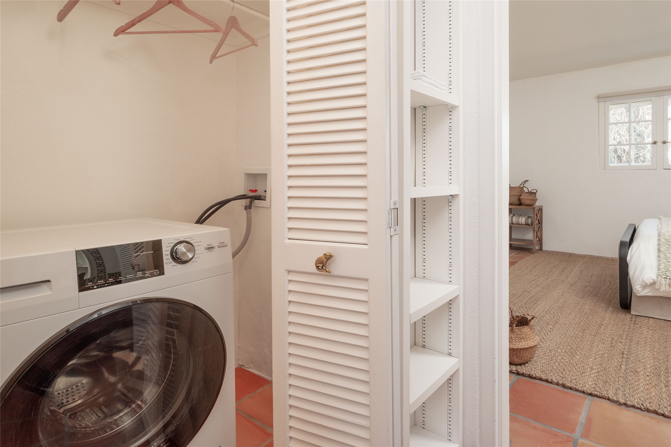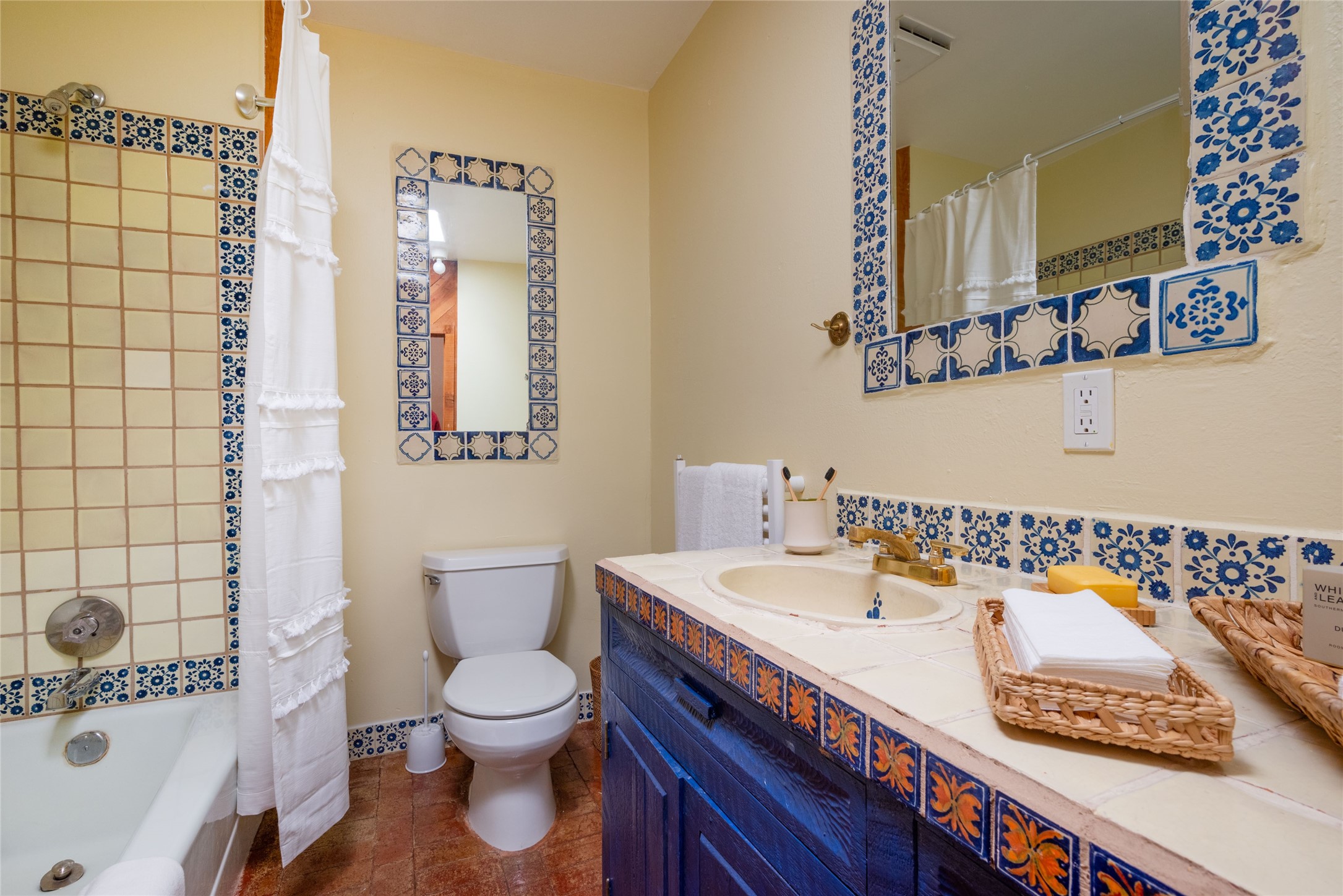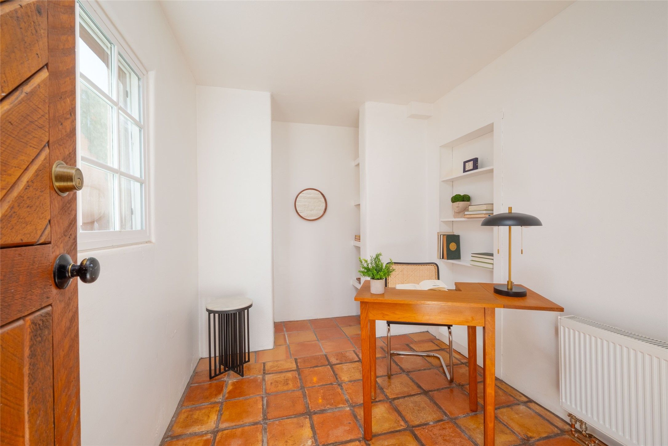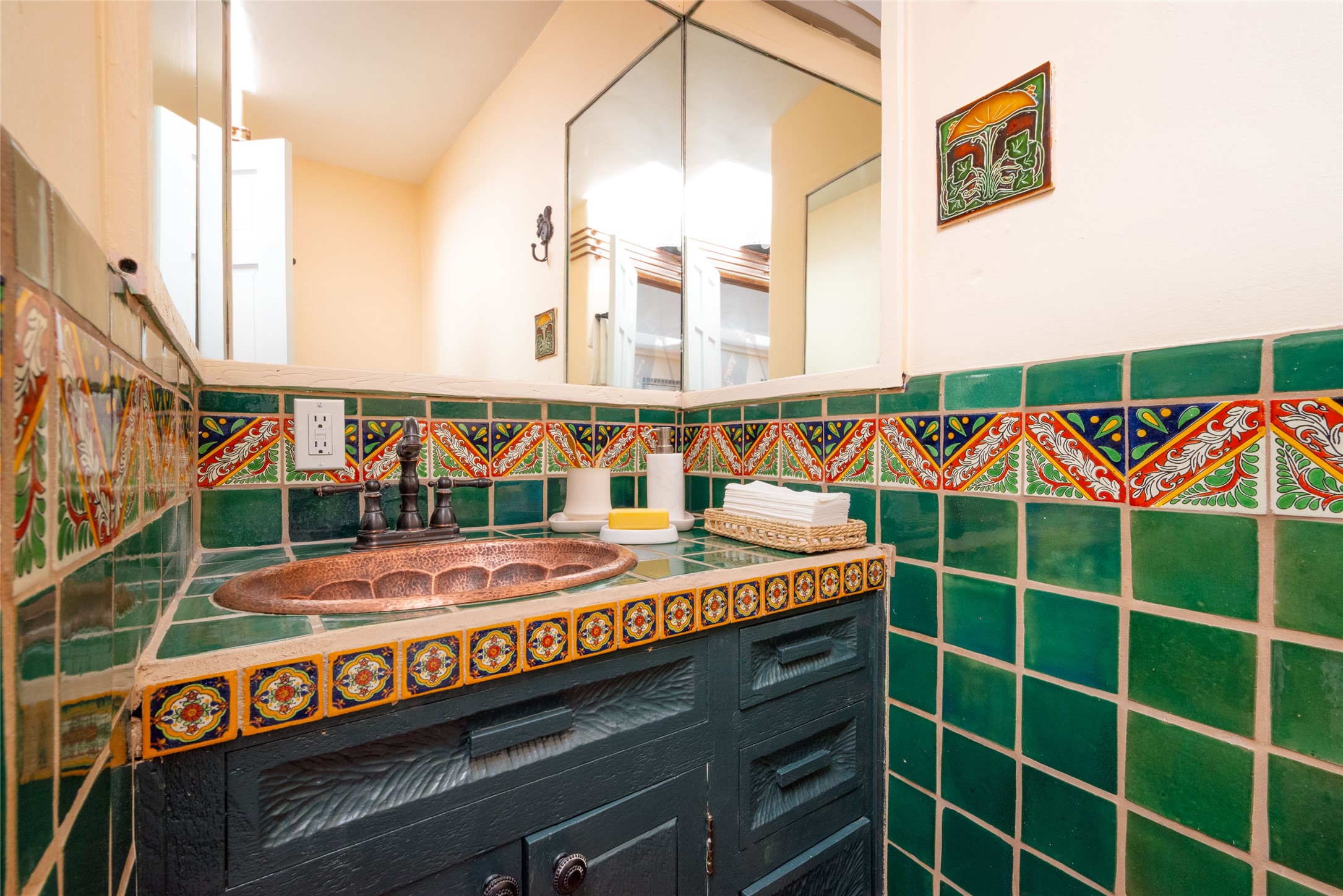 Upon entering the antique hand carved front doors, one is welcomed by a generous courtyard lined with multiple French doors filling the house with sunlight from morning to dusk. The beautiful bright hallway separates a private bedroom wing (2 bedrooms, 2 baths), laundry room, and office from the living room, breakfast nook and dining room area. The house has authentic New Mexican brick floors throughout and a traditional kiva fireplace surrounded by antique tiles. From the courtyard, an antique gate opens to hand-built stone walls, a year-round heated greenhouse, a terraced backyard filled with cactus and perennial gardens and apple trees. A tiled chapel sits high on the top of the property, offering views of the historic Lorenzo neighborhood. High above the house is the casita with 11 foot ceilings made of authentic split cedar latillas. There is a full kitchen, bath, bedroom and 2 kiva fireplaces. The living room and bedroom are accented by an expansive full length covered porch. The casita/guest house is surrounded by native New Mexican woodlands: pinon, juniper, cypress, chamisa, desert broom, purple aster and many other species, attracting birds and butterflies. The grounds are lined with brick walkways. The property is fully walled and fenced along the property lines, providing a private escape with plenty of room to explor and relax. The European style heaters were installed in 2025.