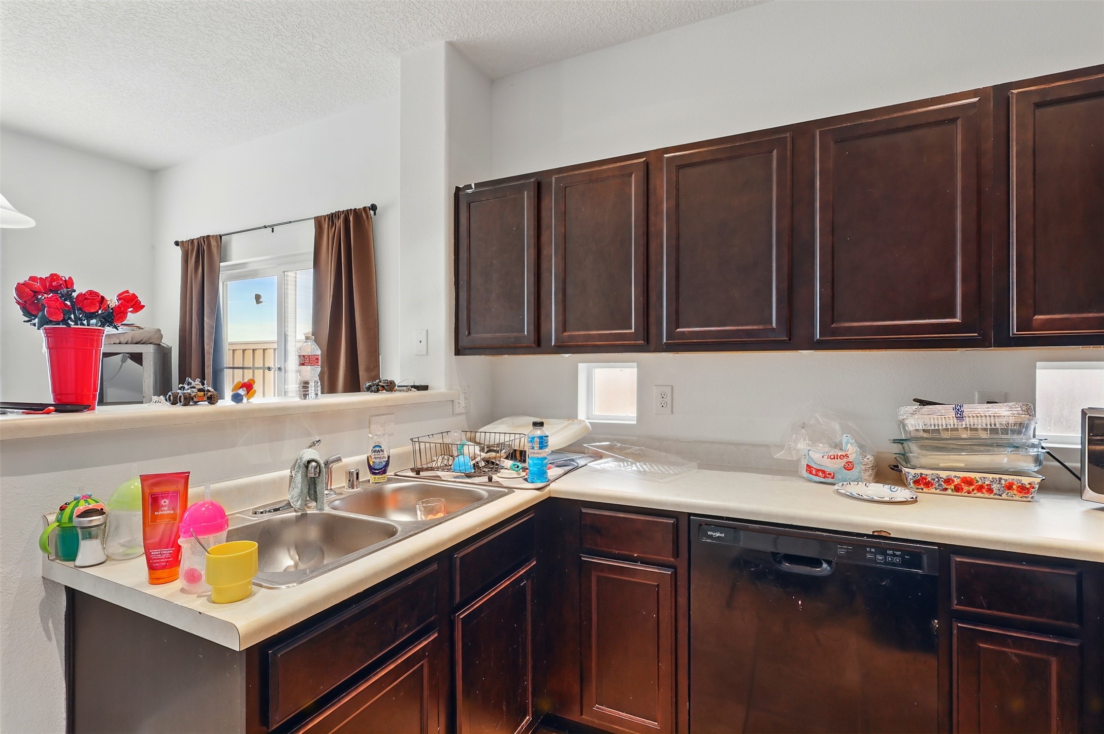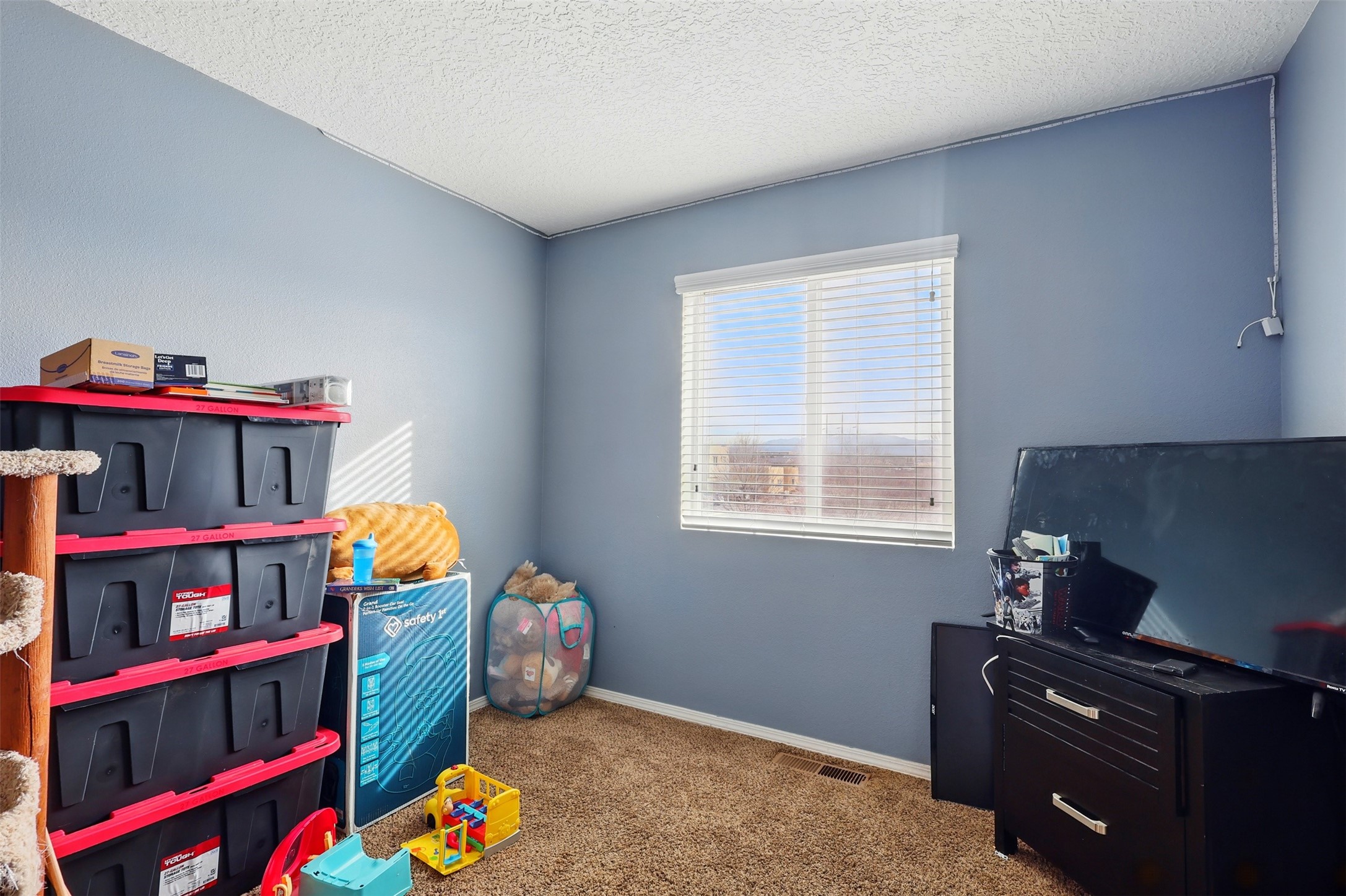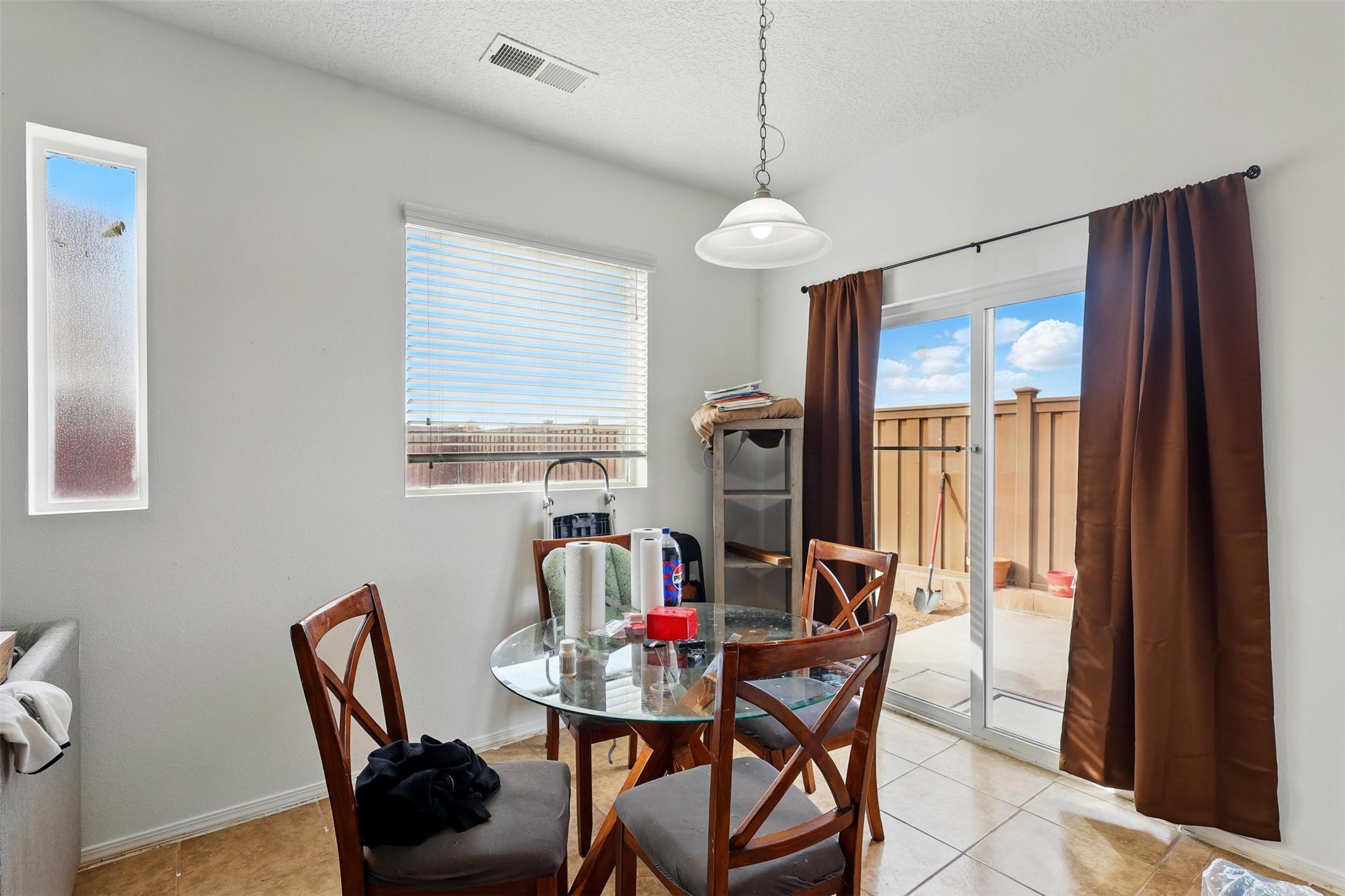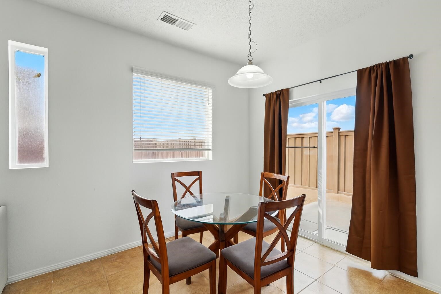 Discover this charming home in Turquoise Trail, Santa Fe! Featuring 3 bedrooms, 2 with en suite baths, plus a convenient downstairs half-bath. Dishwasher and range replaced May 2024. Microwave replaced March 2025. New carpet was installed 4/25/2025. The garage has been temporarily converted into a second living area but can easily be restored. Enjoy a prime location near I-25 and a community with private parks, playgrounds, and ample guest parking. Opportunity knocks. Will you answer?