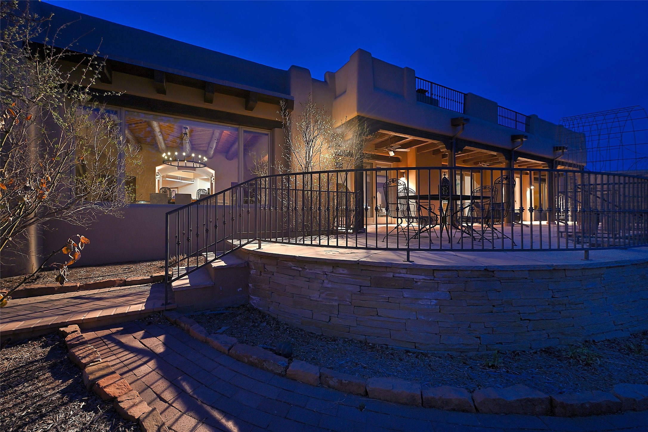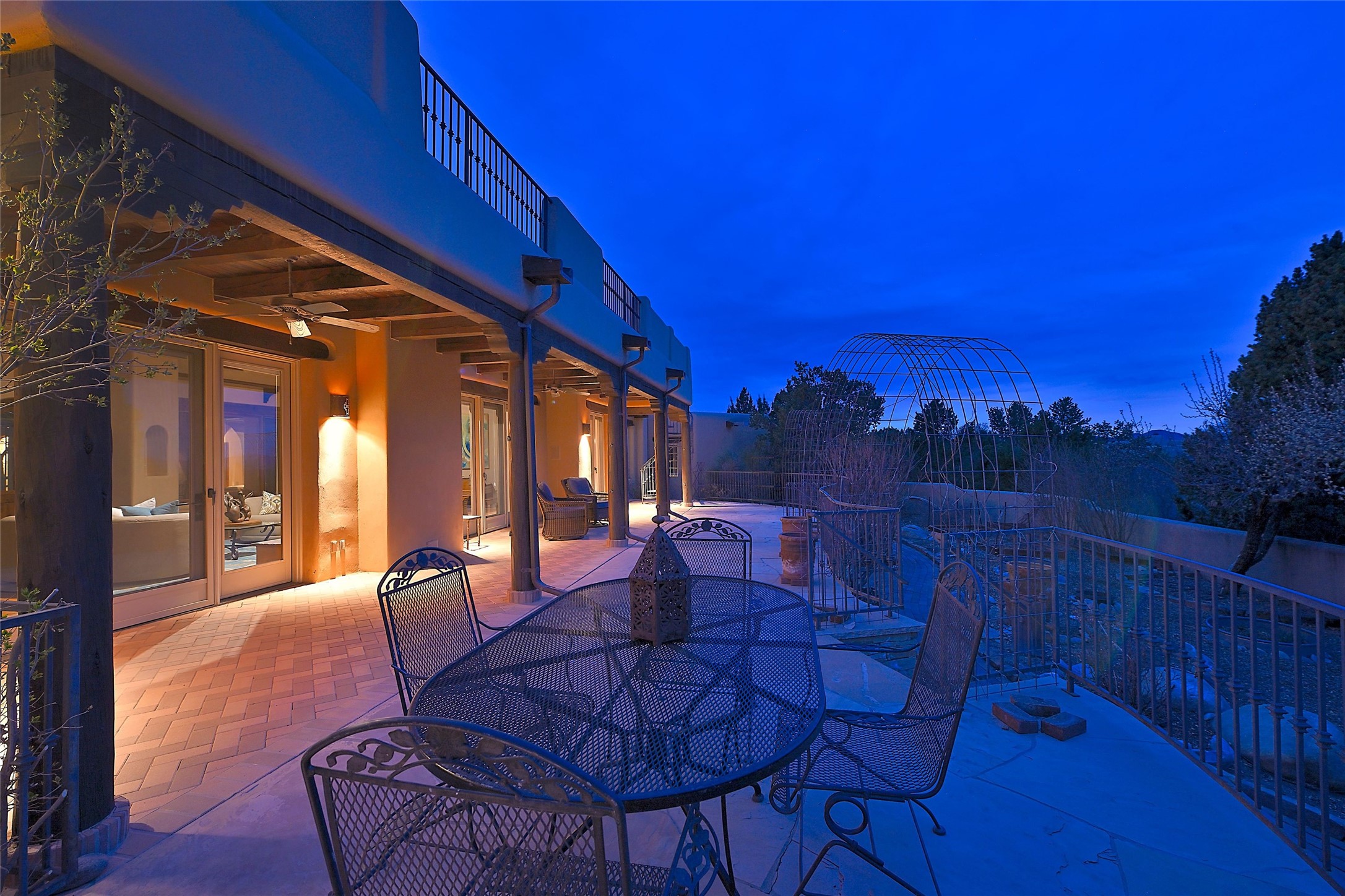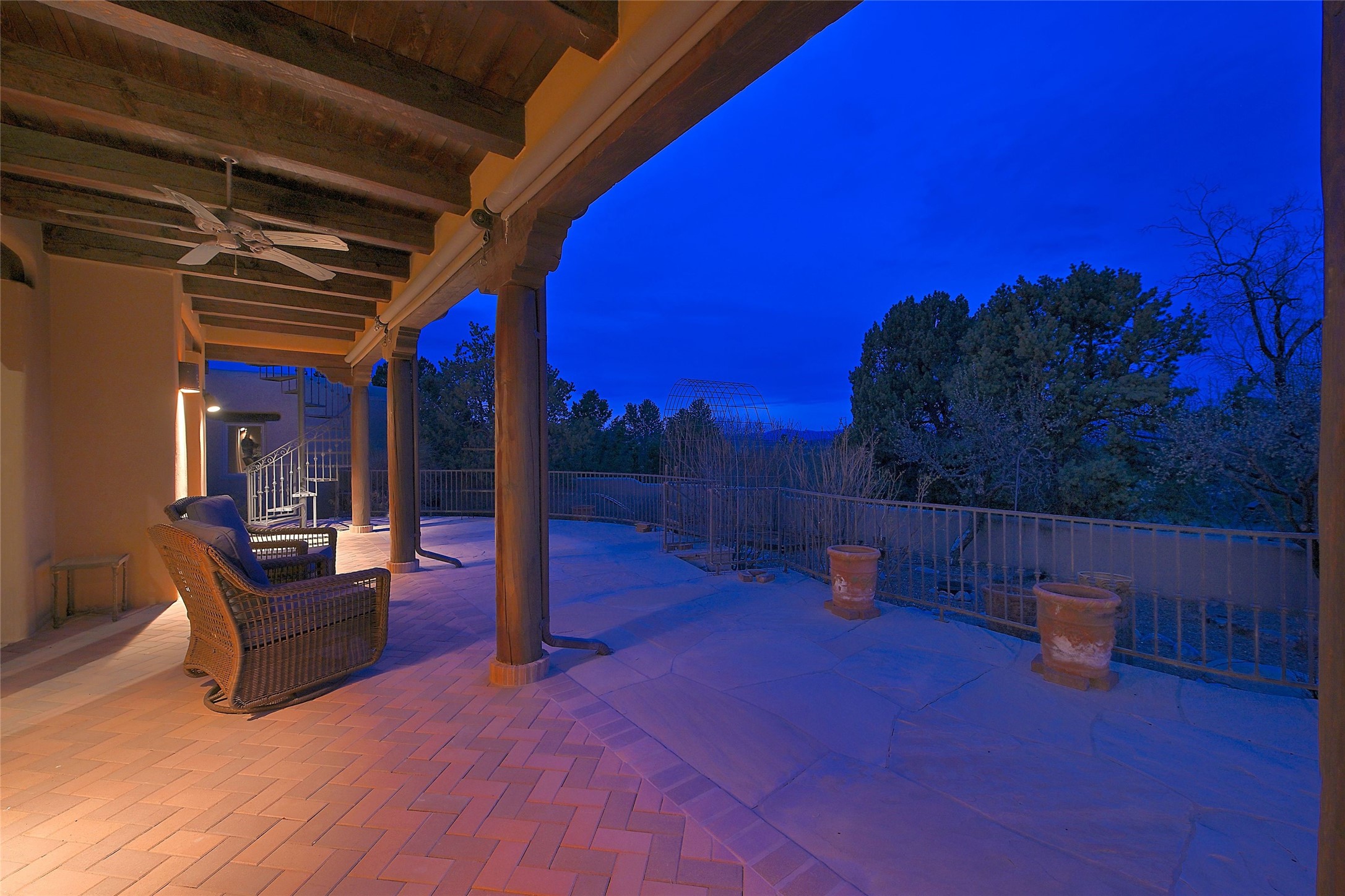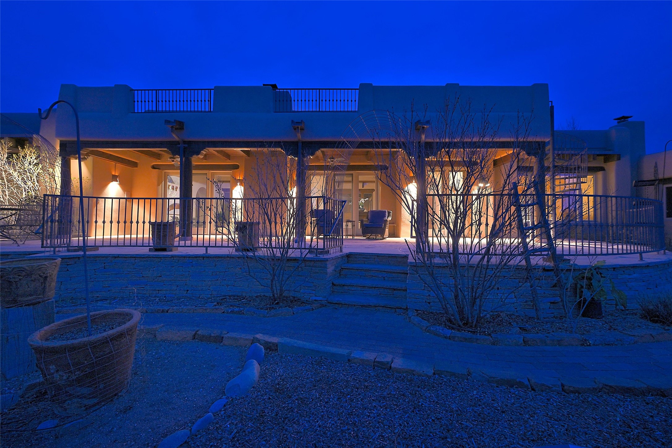 The Grande Dame of las Campanas. Set on an expansive 5 acre double lot, this property offers unparalleled privacy and security. Substantial gates open to reveal a stunning courtyard meticulously designed to create a welcoming impression with natural, elegant landscaping. Stepping through the stately front doors you're greeted by the soaring ceilings of the expansive great room seamlessly connecting to the vast patio beyond. Adjacent to the great room lies the charming formal dining room. A step beyond is the extra-large game and media room. The kitchen has enough room for two to cook and friends to gather, with a charming breakfast nook opening to the courtyard. The estate boasts four bedrooms each with en-suite baths. The primary bedroom is a private retreat with accompanying bath and an extensive two sides walk-in closet. Steps away is the home's library ready for a collection of books or artifacts. the comfortable seating area offers a peaceful place to read, work or just relax. For those who opt to join the club at Las Campanas with its world class amenities, memberships are available. Or just enjoy the serenity of a beautifully cared for community.