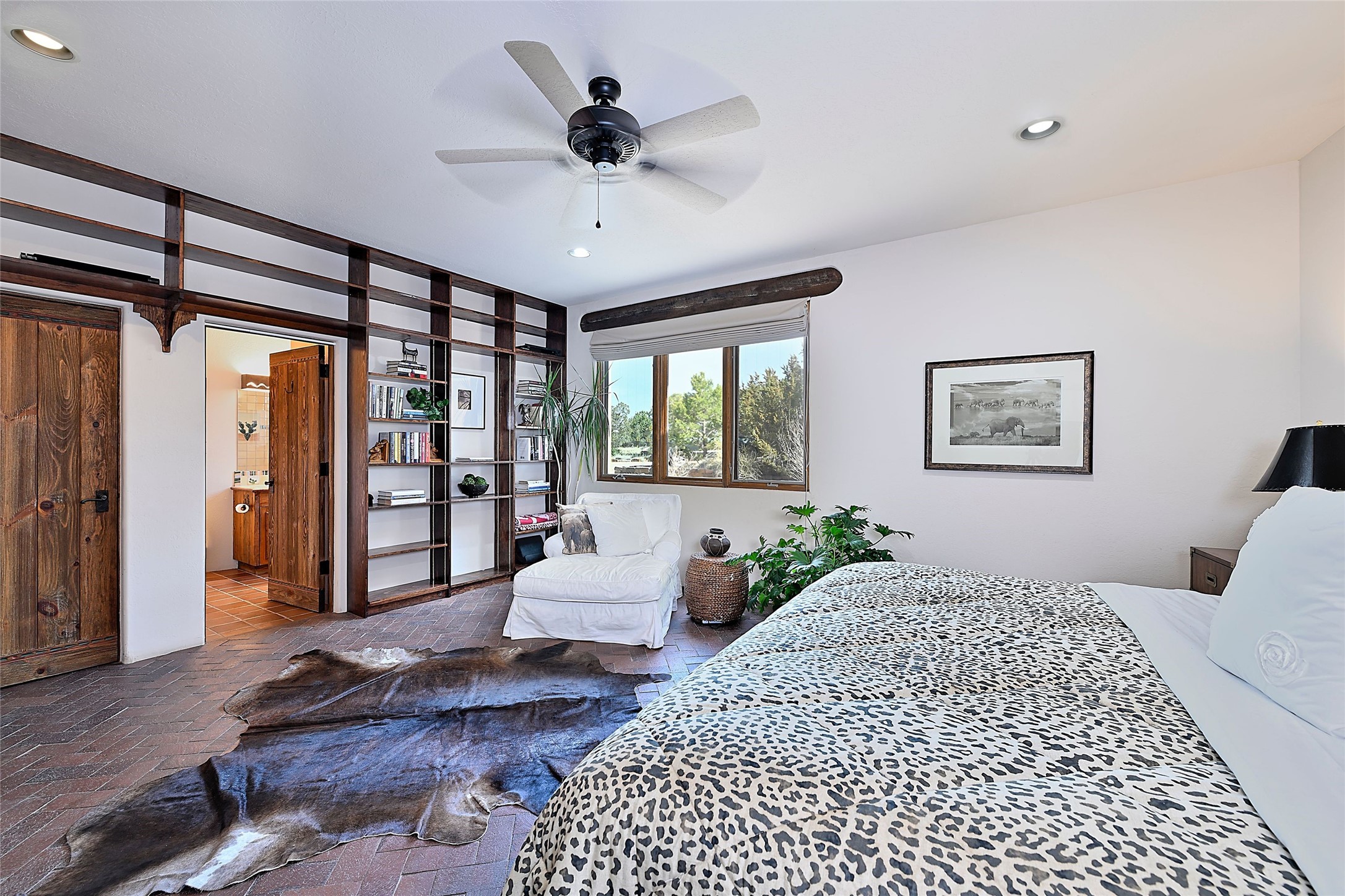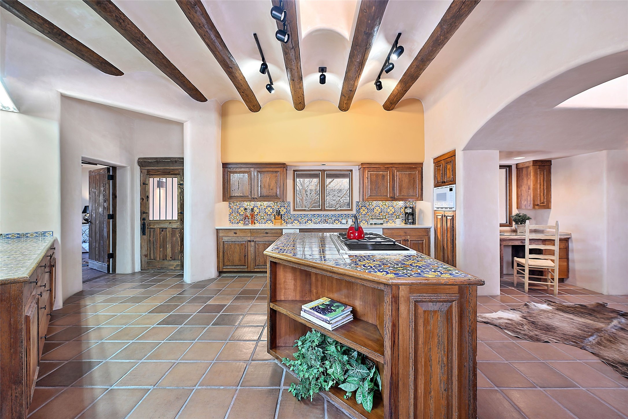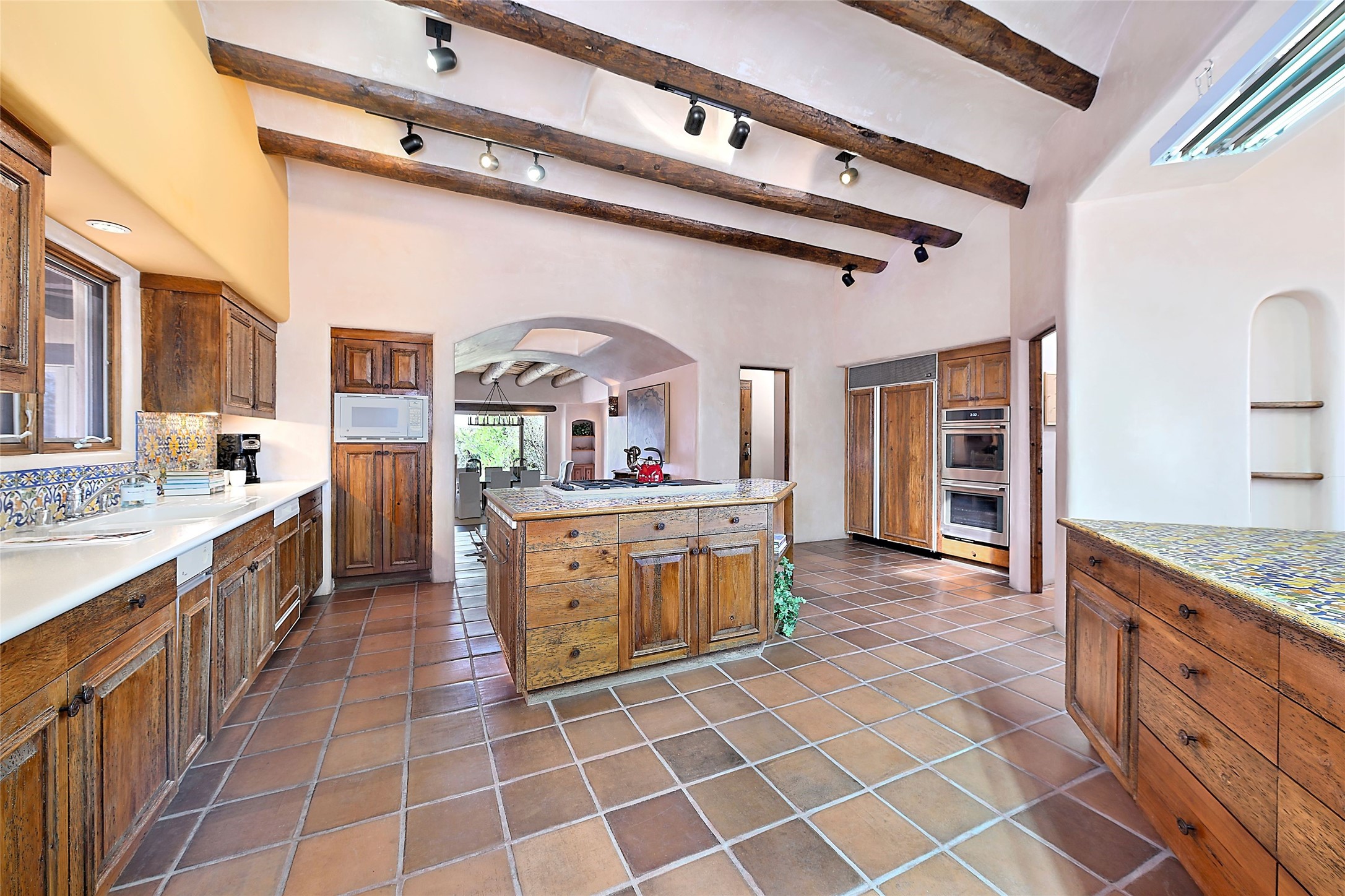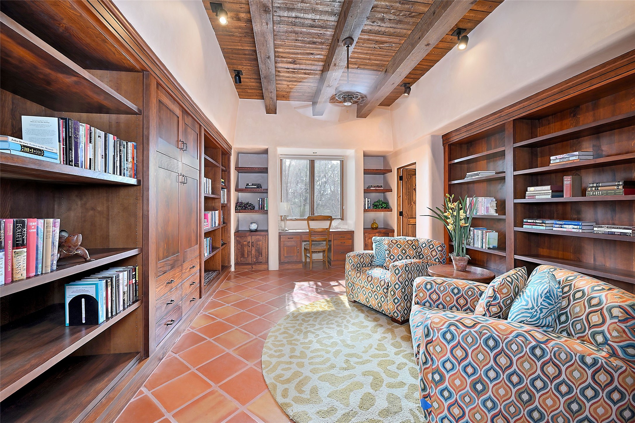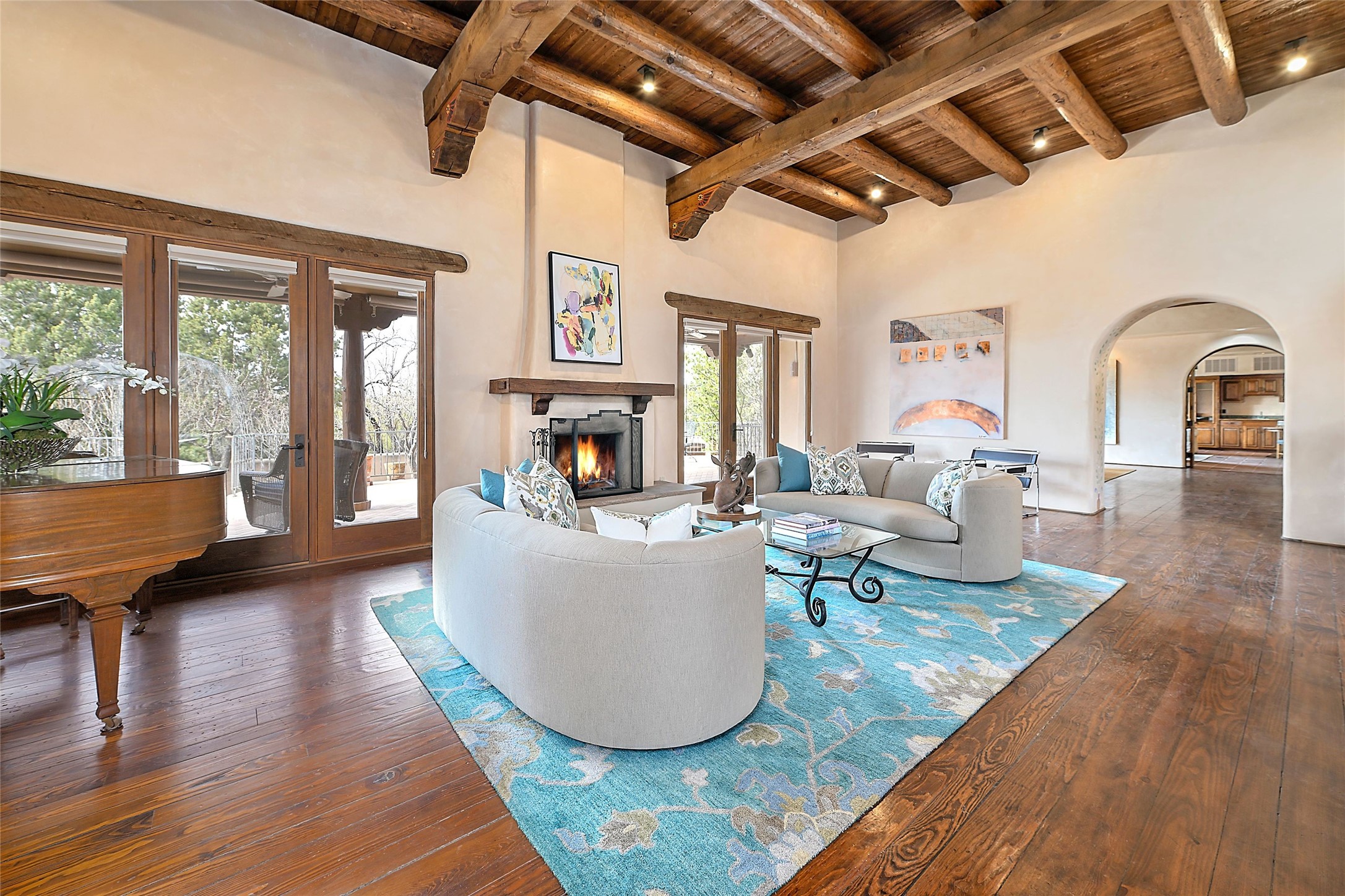 The Grande Dame of las Campanas. Set on an expansive 5 acre double lot, this property offers unparalleled privacy and security. Substantial gates open to reveal a stunning courtyard meticulously designed to create a welcoming impression with natural, elegant landscaping. Stepping through the stately front doors you're greeted by the soaring ceilings of the expansive great room seamlessly connecting to the vast patio beyond. Adjacent to the great room lies the charming formal dining room. A step beyond is the extra-large game and media room. The kitchen has enough room for two to cook and friends to gather, with a charming breakfast nook opening to the courtyard. The estate boasts four bedrooms each with en-suite baths. The primary bedroom is a private retreat with accompanying bath and an extensive two sides walk-in closet. Steps away is the home's library ready for a collection of books or artifacts. the comfortable seating area offers a peaceful place to read, work or just relax. For those who opt to join the club at Las Campanas with its world class amenities, memberships are available. Or just enjoy the serenity of a beautifully cared for community.