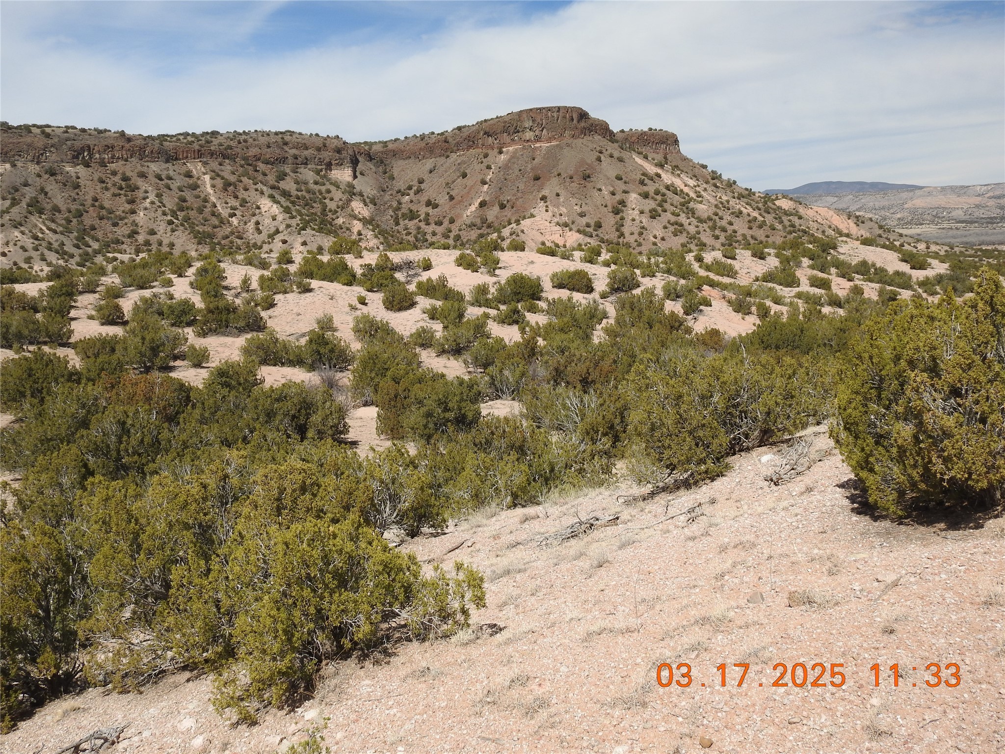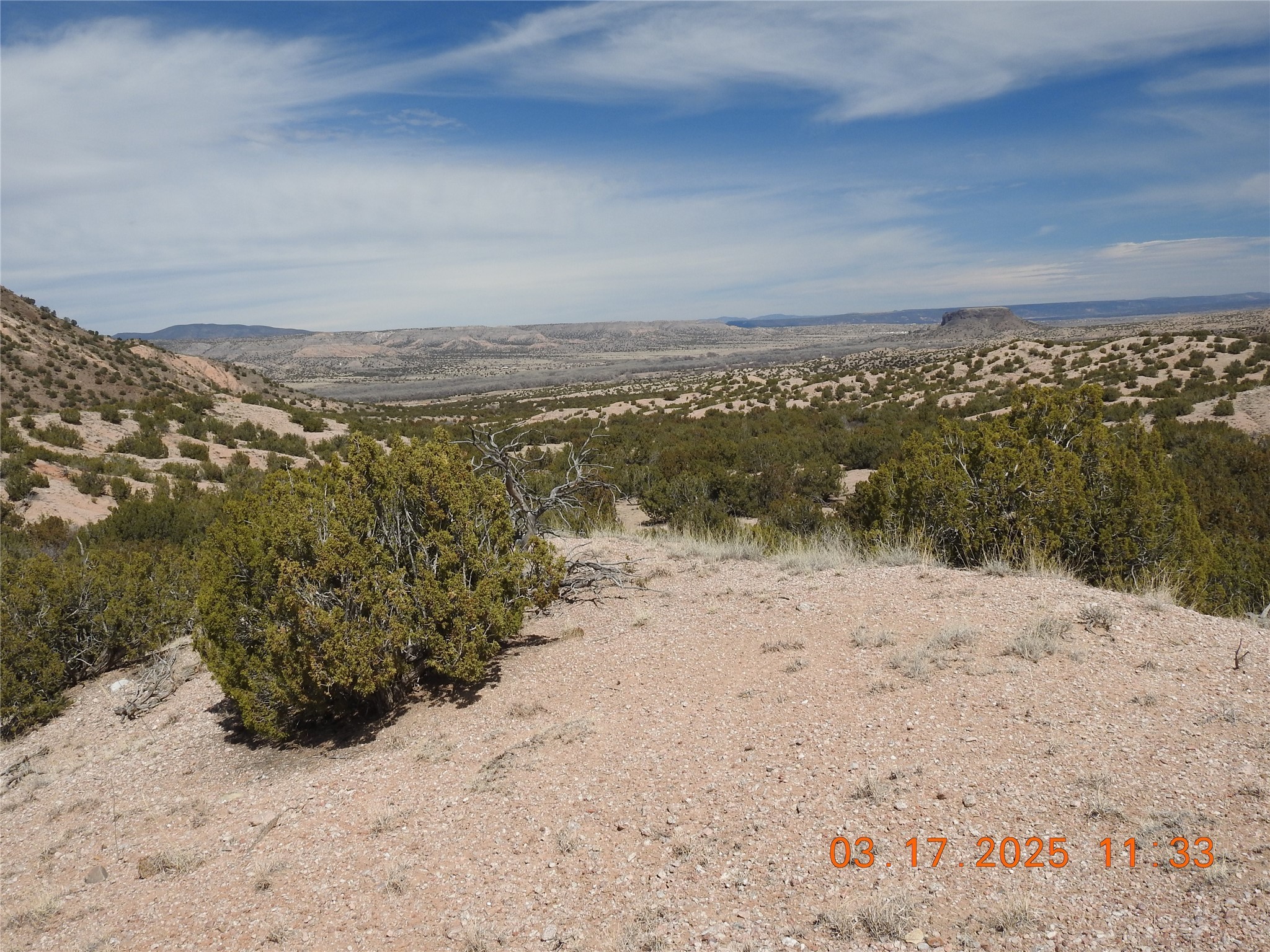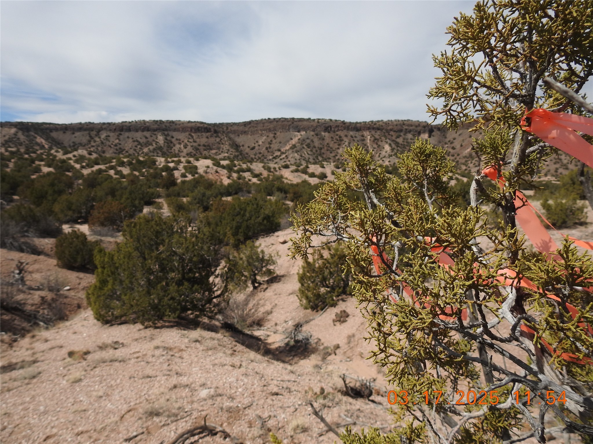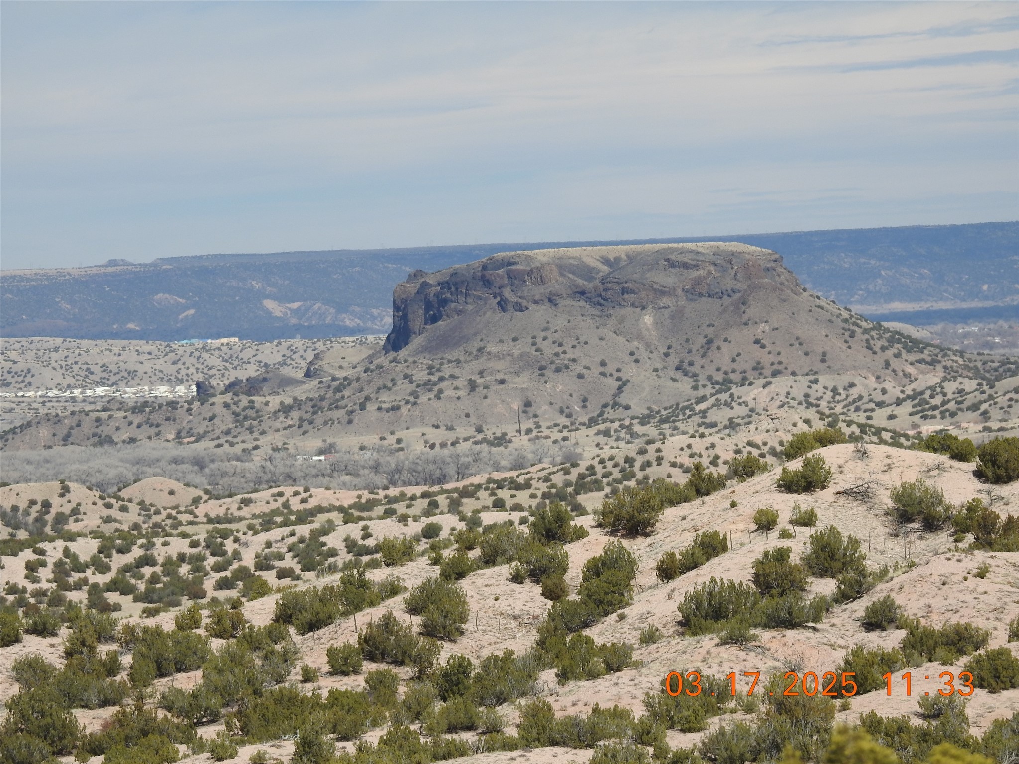 This 4.4 acre parcel is an off the grid lot. Its surrounded by BLM land so has access. BLM will not restrict access, however you may need a permit from them to build vehicle access. Views from this parcel are dramatic, you can see Black Mesa to the north, Buckman Mesa to the west and lots of surrounding barranca views. This area was ocean/lake bottom for millions of years and was more than likely the southern boundary of a huge lake which dried up around 250,000 years ago. Terrain is a gravel hill w/ limestone outcrops and juniper tree cover. Two drains cross the parcel and native wildlife are all comfortable living here. See attached docs for a map.