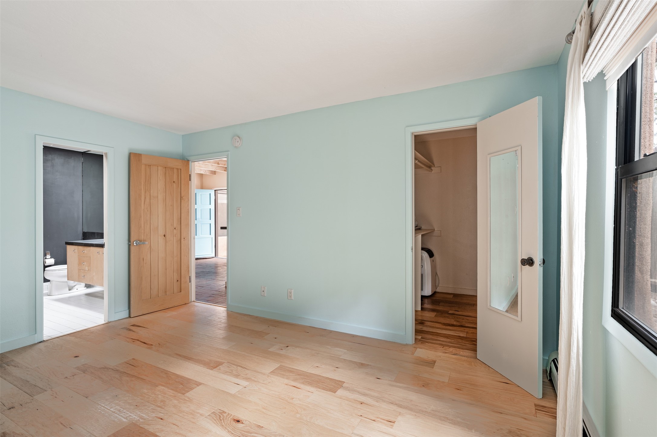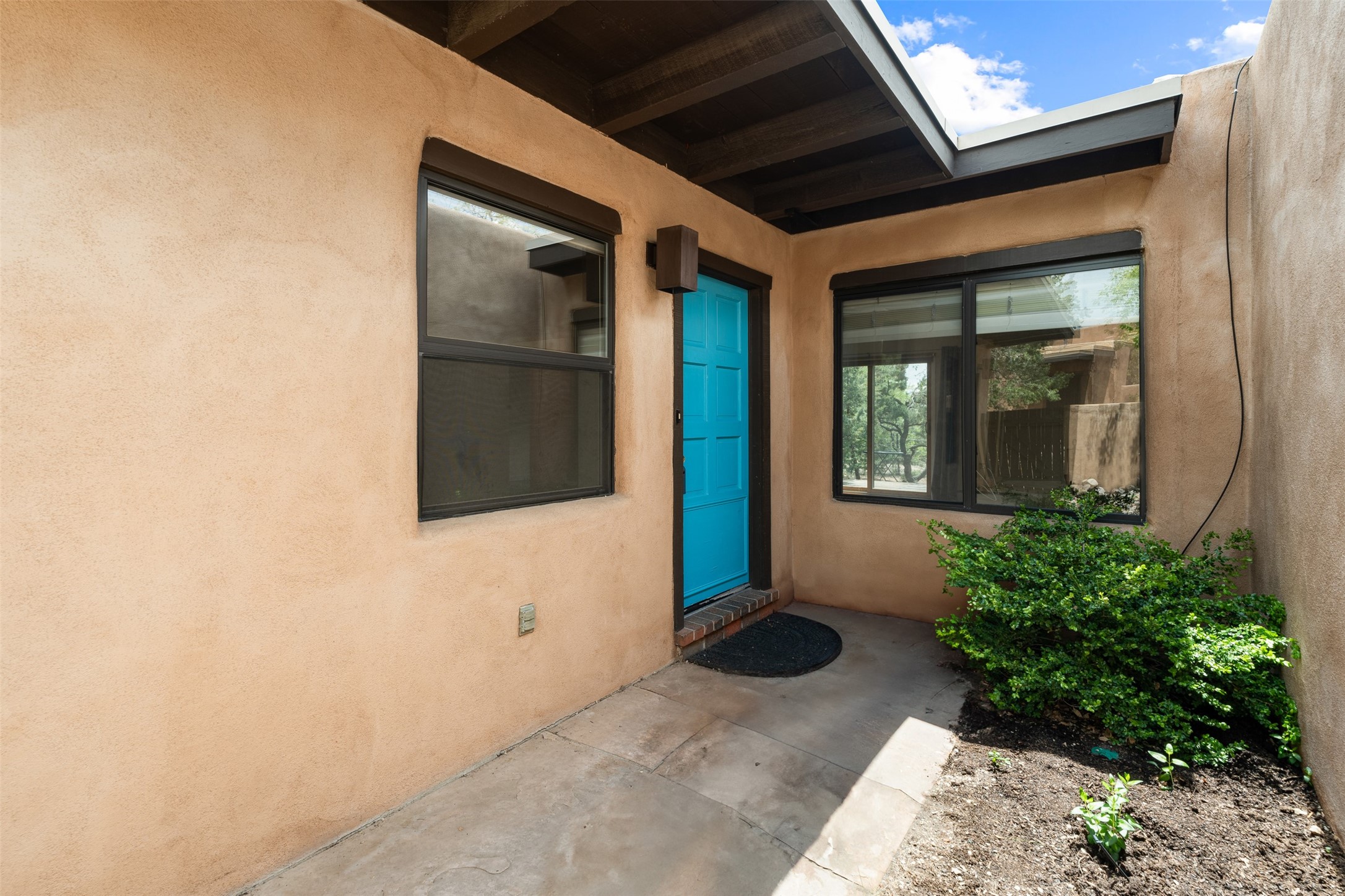 Tucked away at the top of the historic Old Taos Highway, this charming 2-bedroom, 1-bath condo offers quintessential Santa Fe living in a serene, wooded setting. With a peaceful patio nestled among the pines, this home blends natural tranquility with authentic Southwestern style.Inside, you'll find an inviting open-concept layout with a cozy kiva fireplace as the focal point. Brick and wood floors add warmth and character throughout, while radiant baseboard heating ensures year-round comfort. The kitchen and living areas flow seamlessly, ideal for both relaxed living and entertaining.A recently installed TPO roof (just 5 years old) adds peace of mind, and the location offers quick access to both downtown Santa Fe and the Sangre de Cristo foothills. Whether you're looking for a full-time residence, a weekend retreat, or a rental investment, this hidden gem is a must-see.