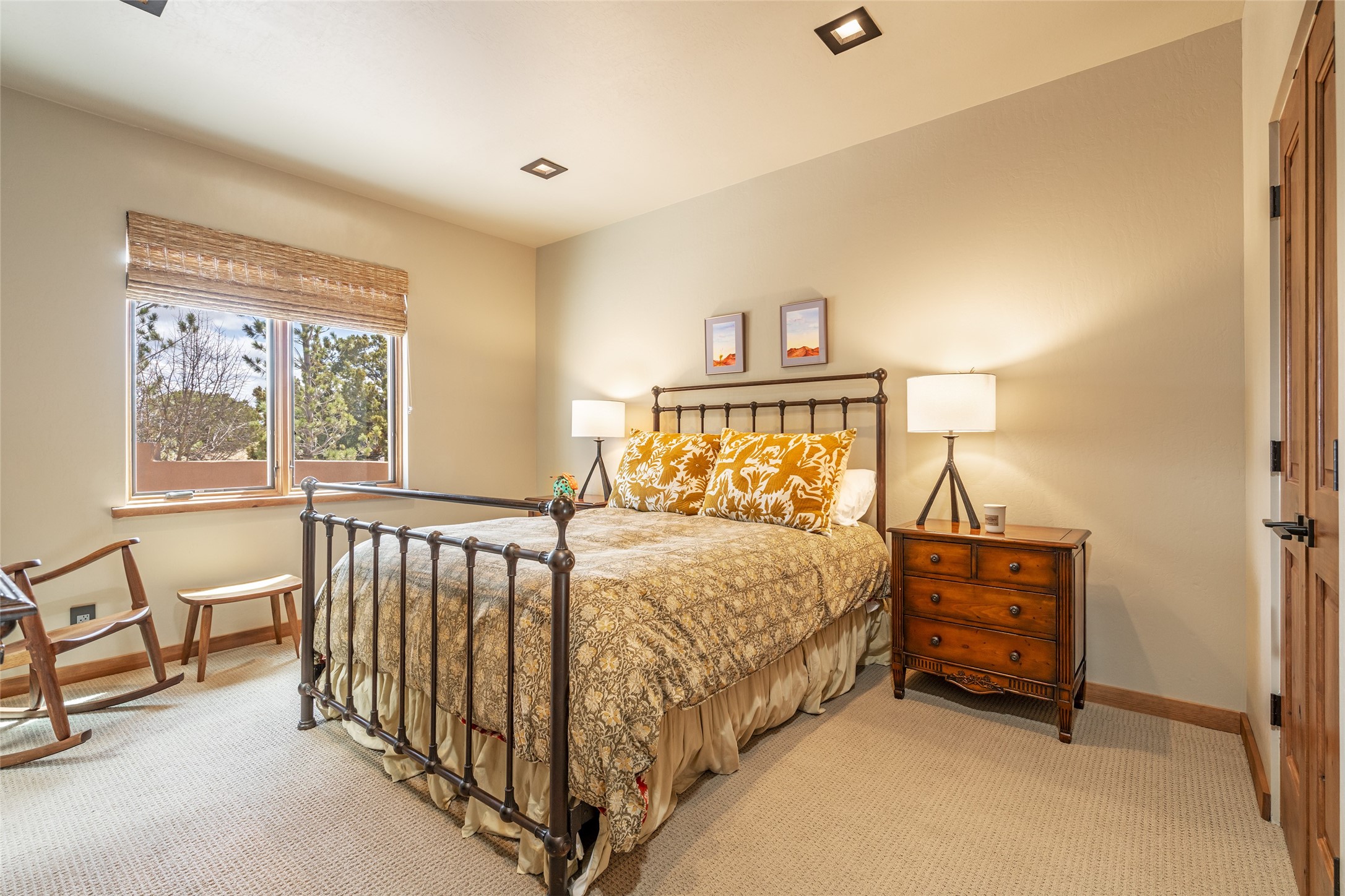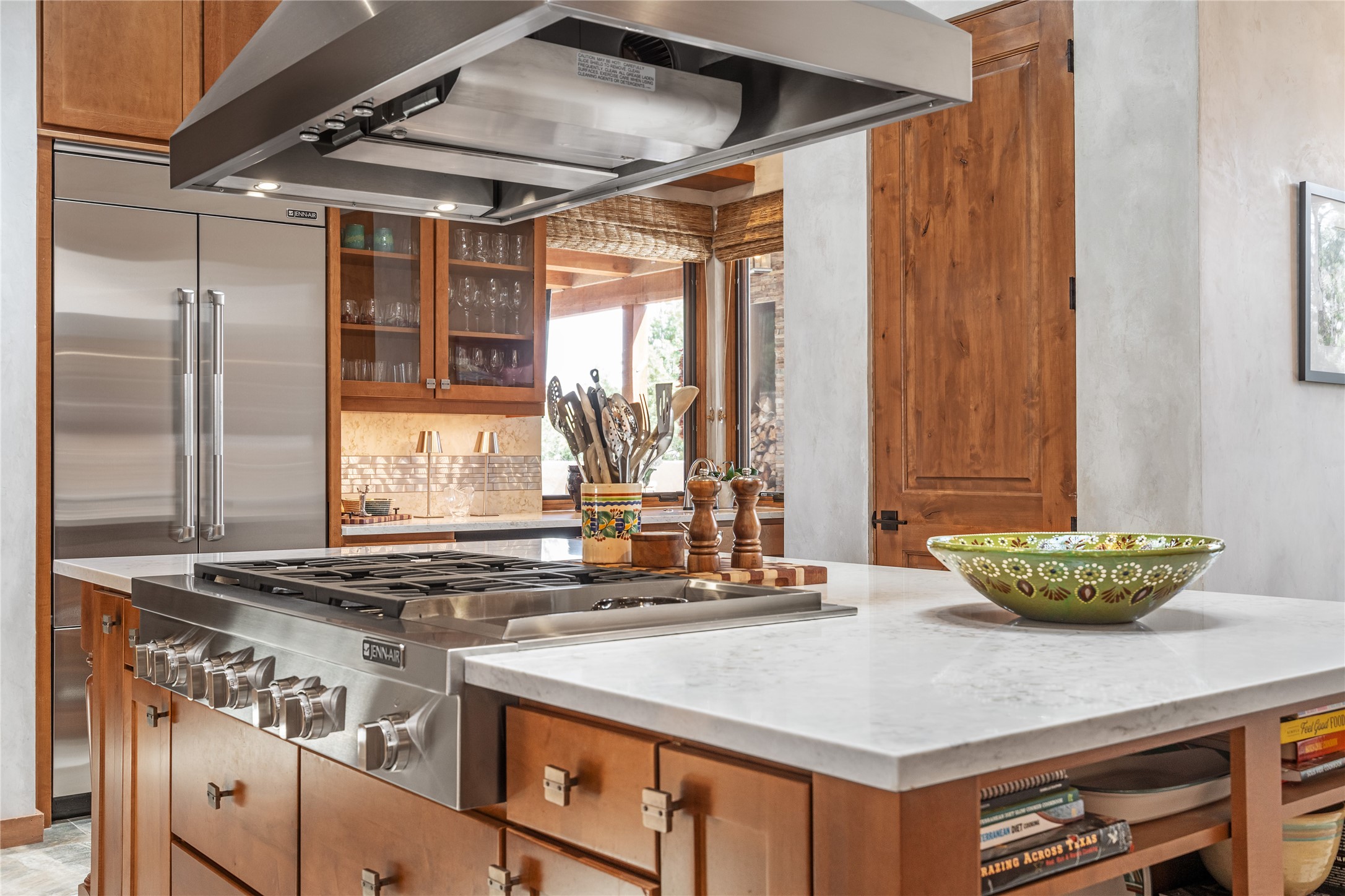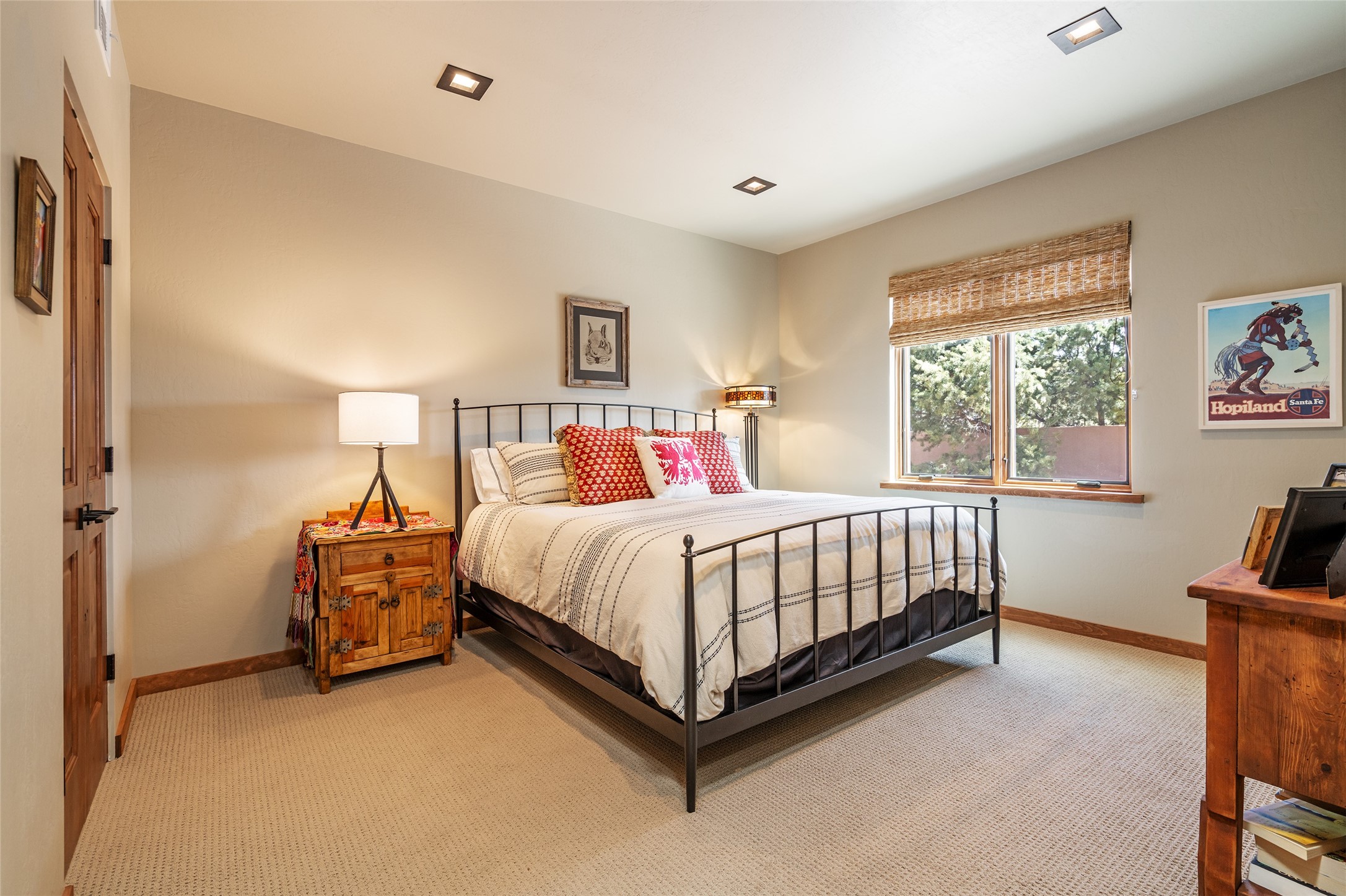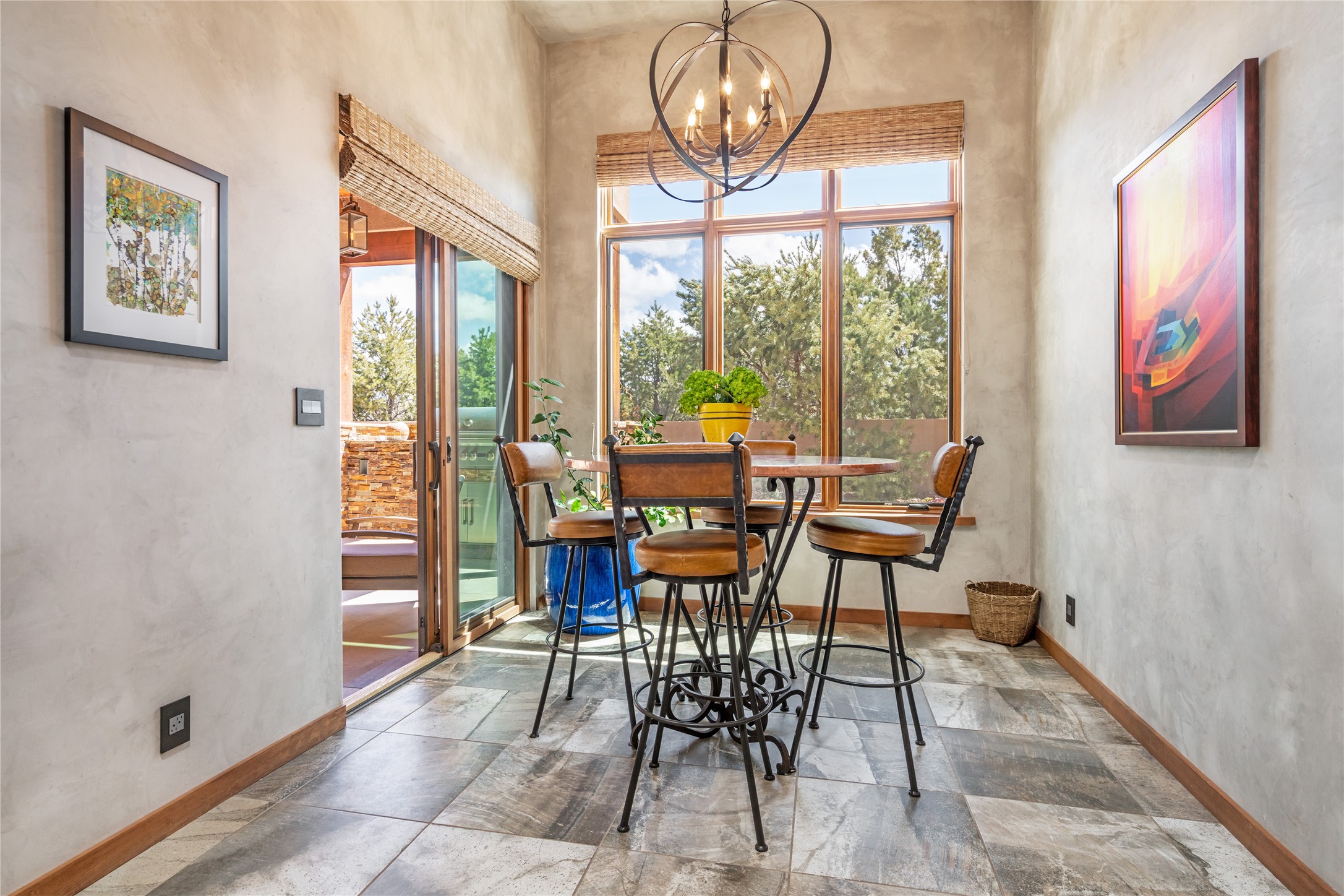 Embrace the beauty of contemporary Pueblo-style architecture in this exquisite 3-bedroom, 3.5-bath home, thoughtfully designed with sophisticated finishes throughout. Nestled on 1.8 acres, this stunning residence is perfectly positioned for privacy and tranquility, offering elegant indoor and outdoor living spaces with Jemez Mountain views.A private entry courtyard with a serene stone water feature sets the tone for the refined interiors. At the heart of the home, the grand chef's kitchen boasts top-tier appliances, custom cabinetry, and an inviting layout ideal for entertaining. The generous primary suite is a true retreat, featuring a cozy gas fireplace, two walk-in closets, office space, a spa-inspired bath, and private portal. The guest wing contains two spacious guest rooms, each with an ensuite bath, providing exceptional comfort and privacy. A large office/den with a separate entrance and its own portal offers the perfect space for work or creative pursuitsOutdoor living is just as inviting, with a spacious rear portal with a large fireplace, built-in gas grill, a second water feature, and plenty of space for dining al fresco while taking in the tranquil surroundings. A three-car direct-entry garage adds to the exceptional features of this property. This home seamlessly blends timeless Southwestern charm with modern sophistication -- an unparalleled sanctuary just waiting to be enjoyed.