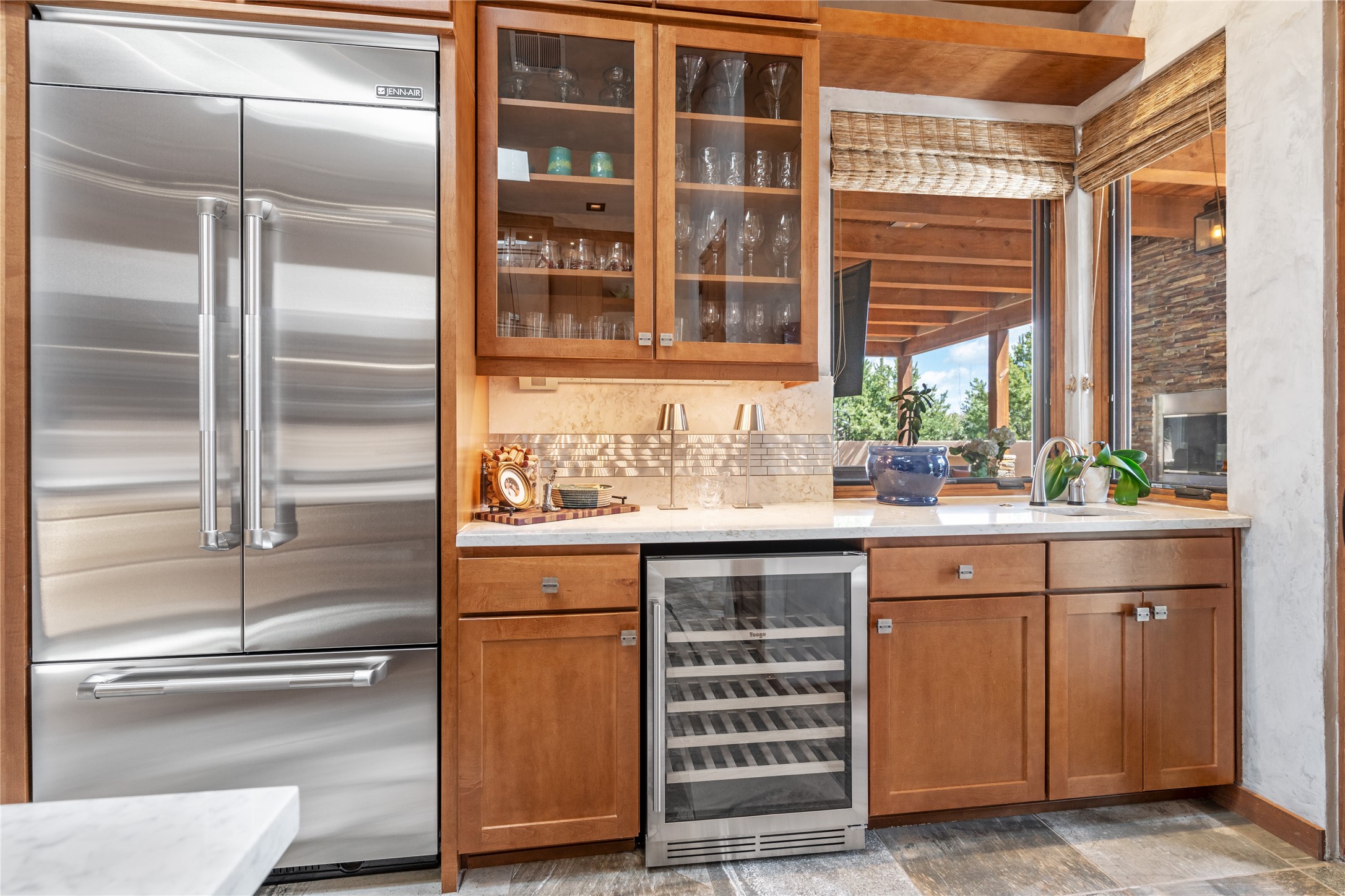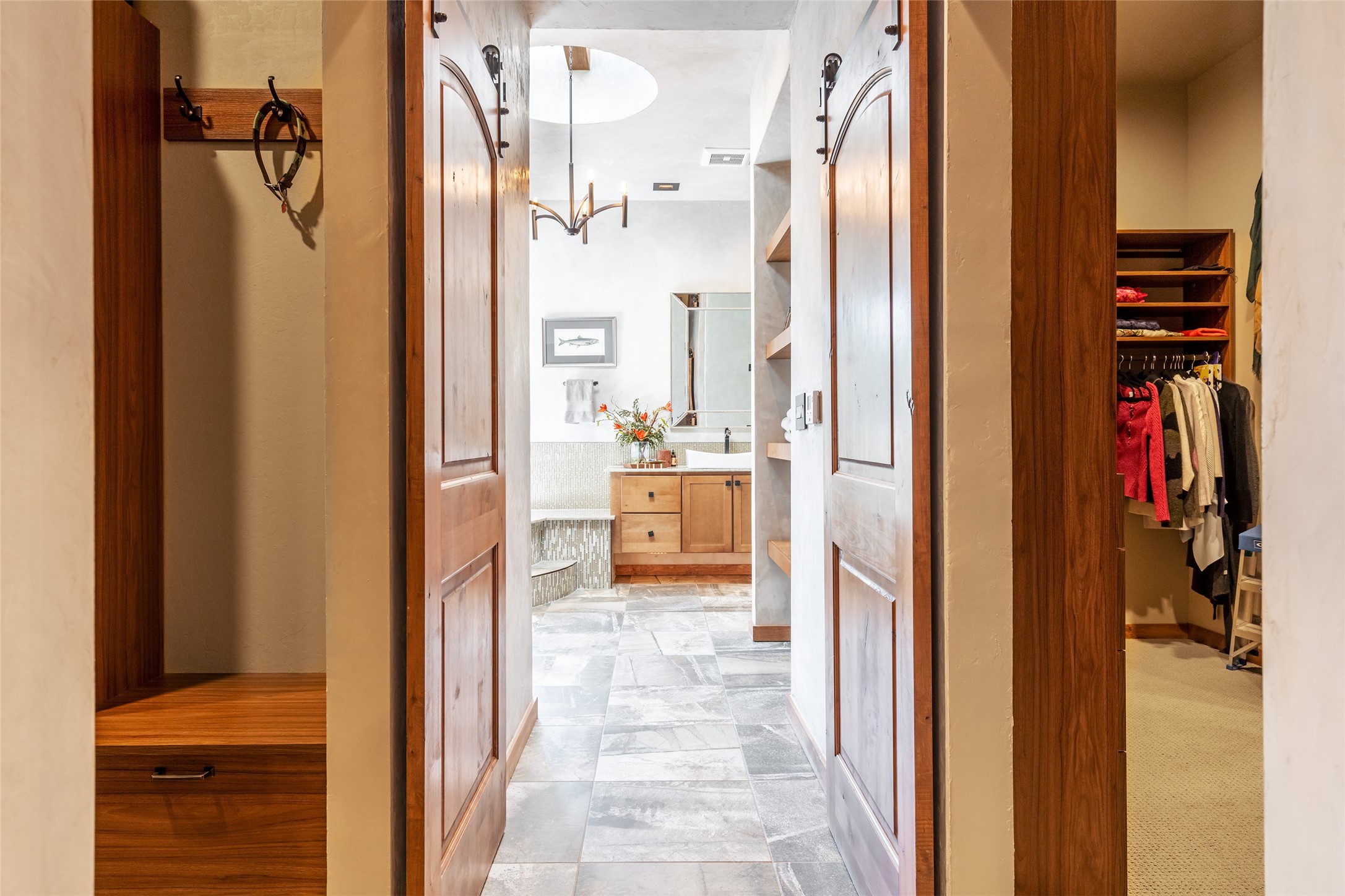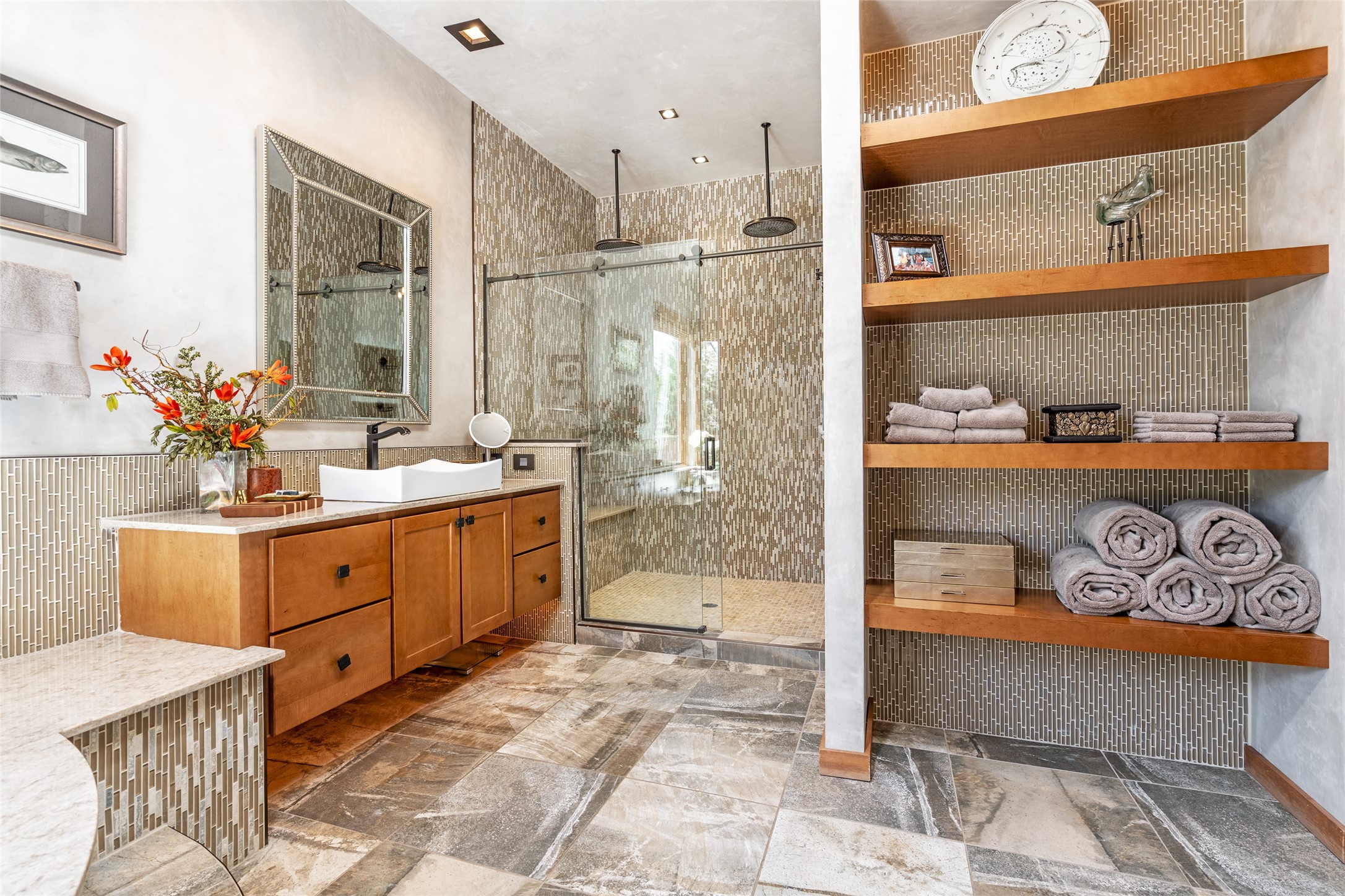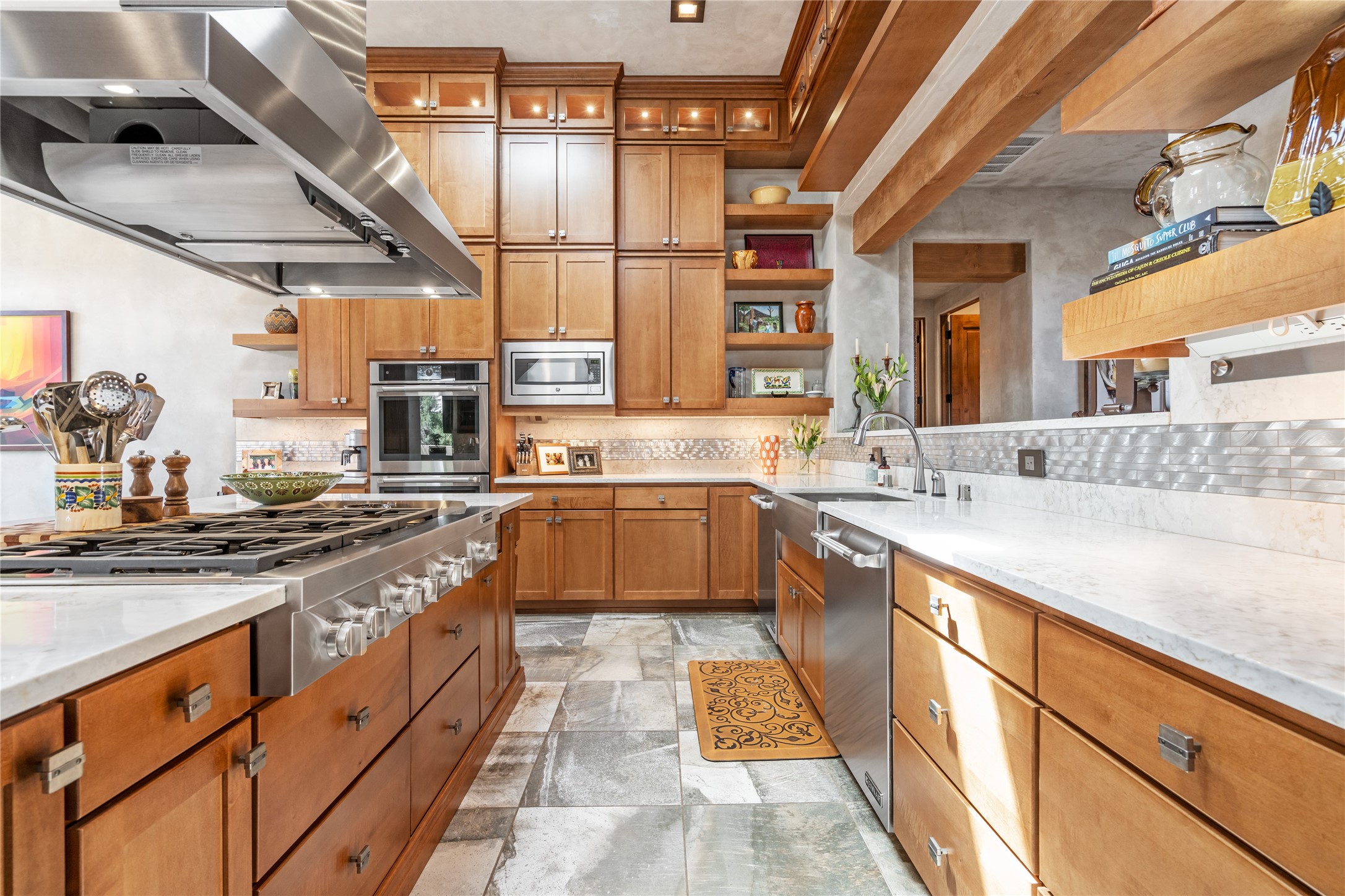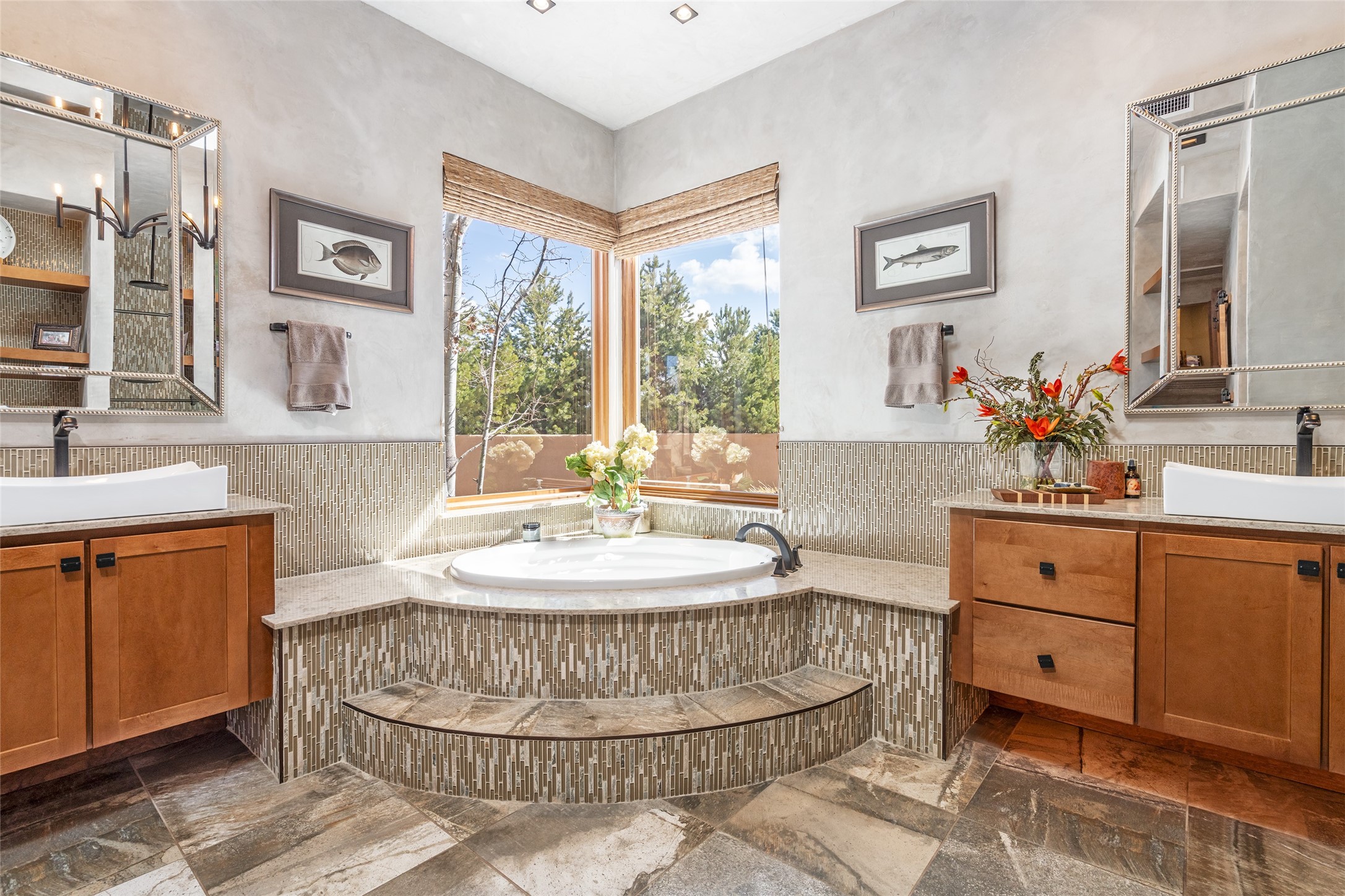 Embrace the beauty of contemporary Pueblo-style architecture in this exquisite 3-bedroom, 3.5-bath home, thoughtfully designed with sophisticated finishes throughout. Nestled on 1.8 acres, this stunning residence is perfectly positioned for privacy and tranquility, offering elegant indoor and outdoor living spaces with Jemez Mountain views.A private entry courtyard with a serene stone water feature sets the tone for the refined interiors. At the heart of the home, the grand chef's kitchen boasts top-tier appliances, custom cabinetry, and an inviting layout ideal for entertaining. The generous primary suite is a true retreat, featuring a cozy gas fireplace, two walk-in closets, office space, a spa-inspired bath, and private portal. The guest wing contains two spacious guest rooms, each with an ensuite bath, providing exceptional comfort and privacy. A large office/den with a separate entrance and its own portal offers the perfect space for work or creative pursuitsOutdoor living is just as inviting, with a spacious rear portal with a large fireplace, built-in gas grill, a second water feature, and plenty of space for dining al fresco while taking in the tranquil surroundings. A three-car direct-entry garage adds to the exceptional features of this property. This home seamlessly blends timeless Southwestern charm with modern sophistication -- an unparalleled sanctuary just waiting to be enjoyed.