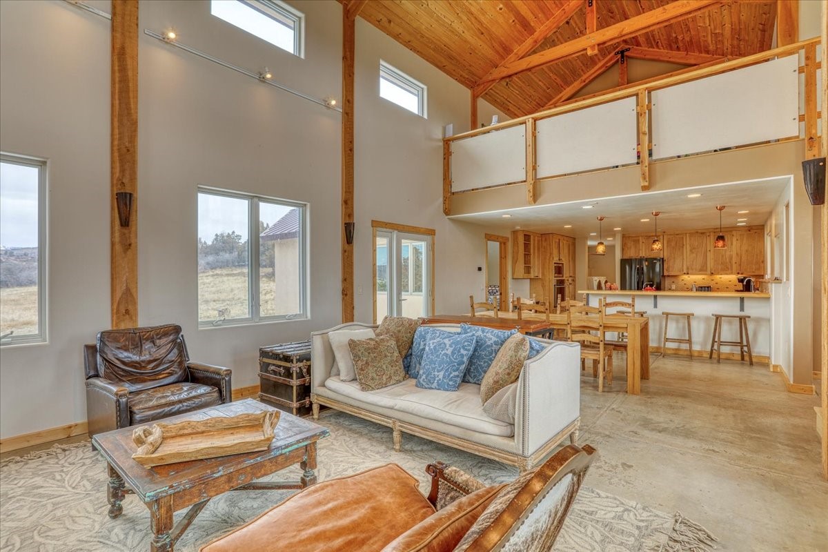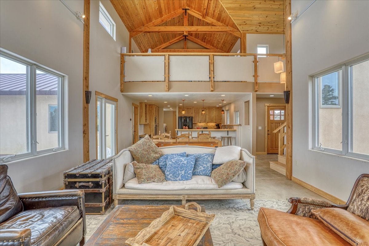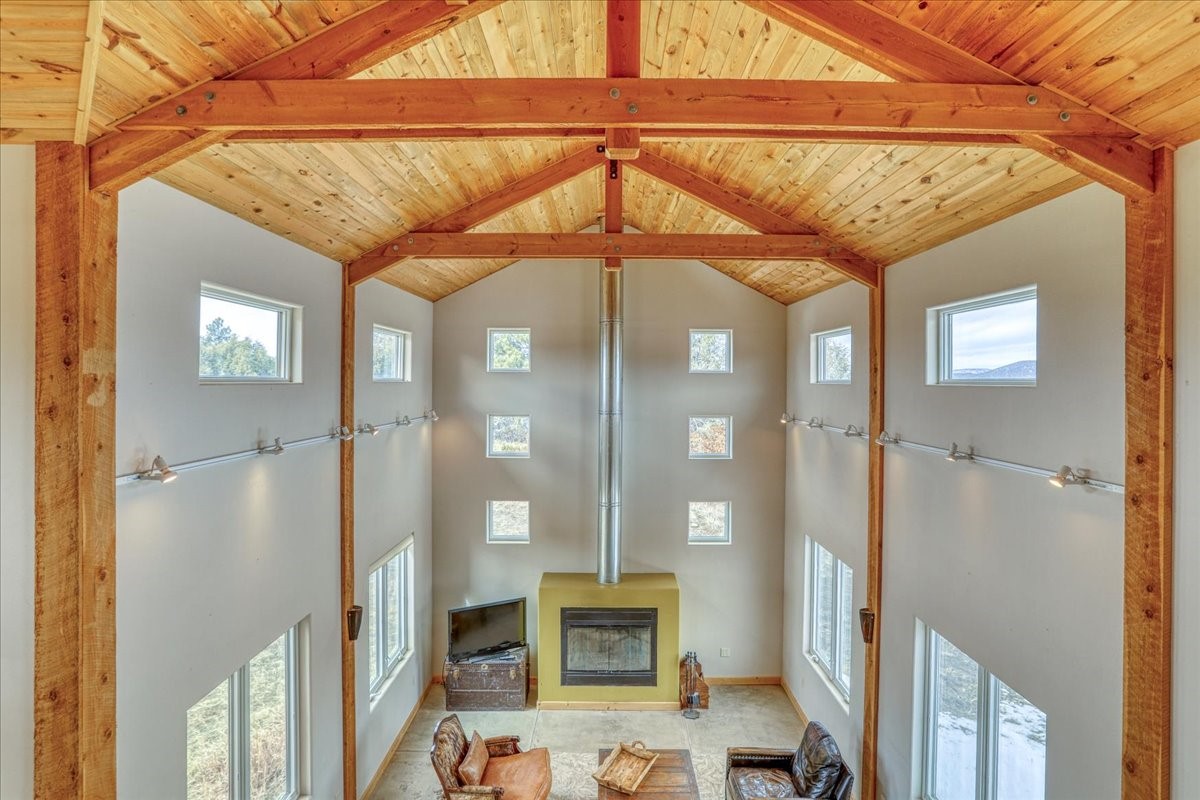 Custom Mountain Retreat on 10 Acres in Chama West Subdivision:Discover this exceptional custom-built mountain home nestled on 10 pristine acres in the coveted Chama West Subdivision of Northern New Mexico. Featuring 2-3 bedrooms and 3 bathrooms, this property showcases superior construction with Structural Insulated Foam Panel (SIPS) technology, ensuring maximum energy efficiency and durability in all seasons.The bright, open floorplan capitalizes on breathtaking mountain vistas through premium Andersen insulated windows and patio doors. Soaring ceilings and abundant natural light complement the exquisite custom cabinetry and fine woodwork throughout. Enjoy cozy evenings by the wood-burning fireplace or relax in the master suite's jetted bathtub with panoramic views.This versatile home offers flexible spaces including a potential studio, office area, spacious walk-in pantry, and dedicated laundry room. The oversized 3-car garage provides ample space for vehicles plus a workshop area. RV enthusiasts will appreciate the special hookups for extended adventures.Perfect for horse lovers, the gently sloping terrain offers ideal riding conditions across your private acreage. Premium features include heated floors, gas cooking, and exceptional storage throughout the property.Located in premier horse country near the Humphries and Sargent Wilderness Areas, this property provides unparalleled access to outdoor recreation including fishing on the renowned Chama and Brazos Rivers. Share your land with abundant wildlife including elk, deer, and wild turkey.Whether as your primary residence or mountain getaway, this meticulously crafted home delivers the authentic Northern New Mexico lifestyle surrounded by unforgettable natural beauty. Tractor may be purchased on a separate bill of sale with the purchase of the property. See video link for interactive map.
