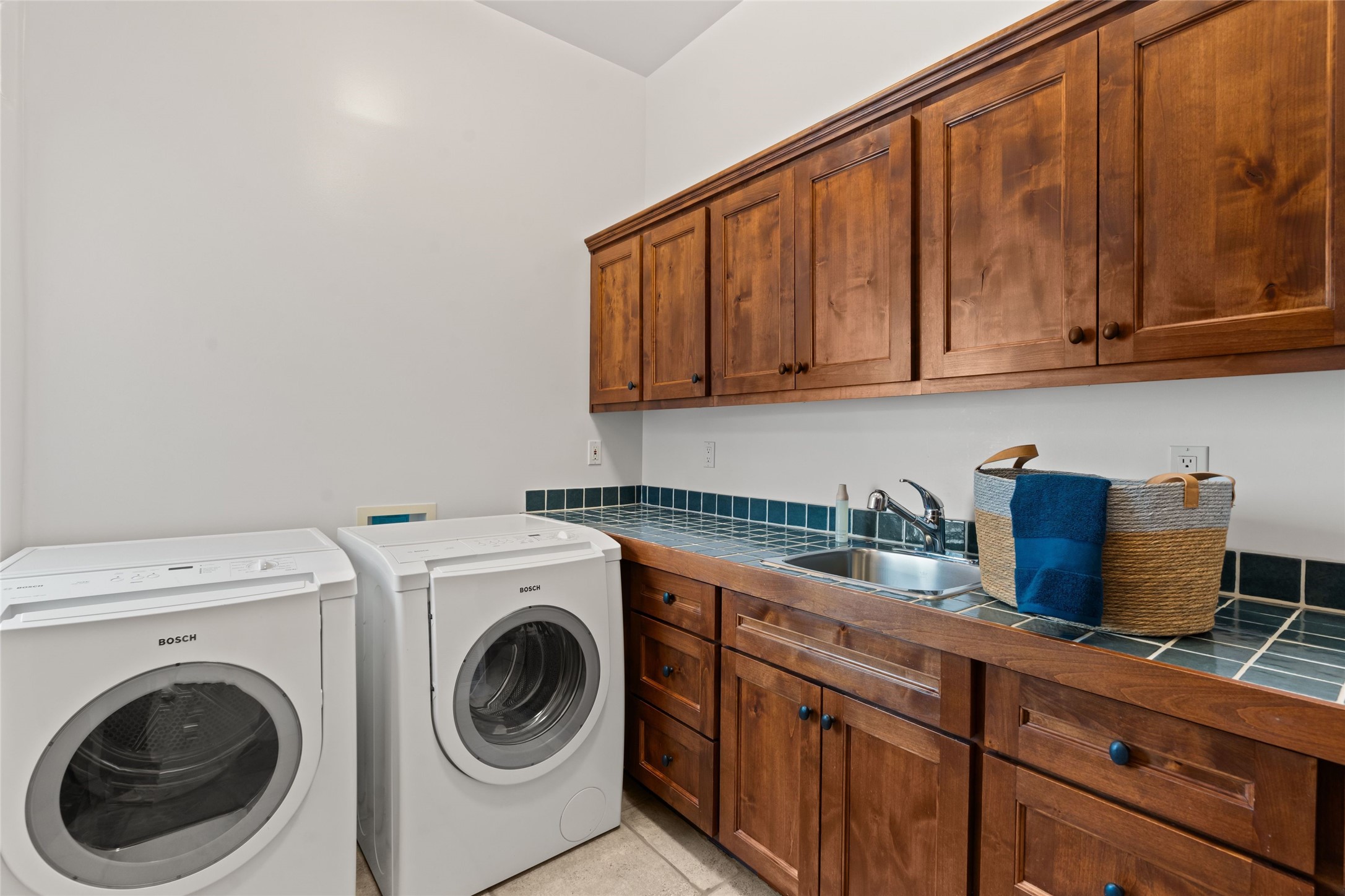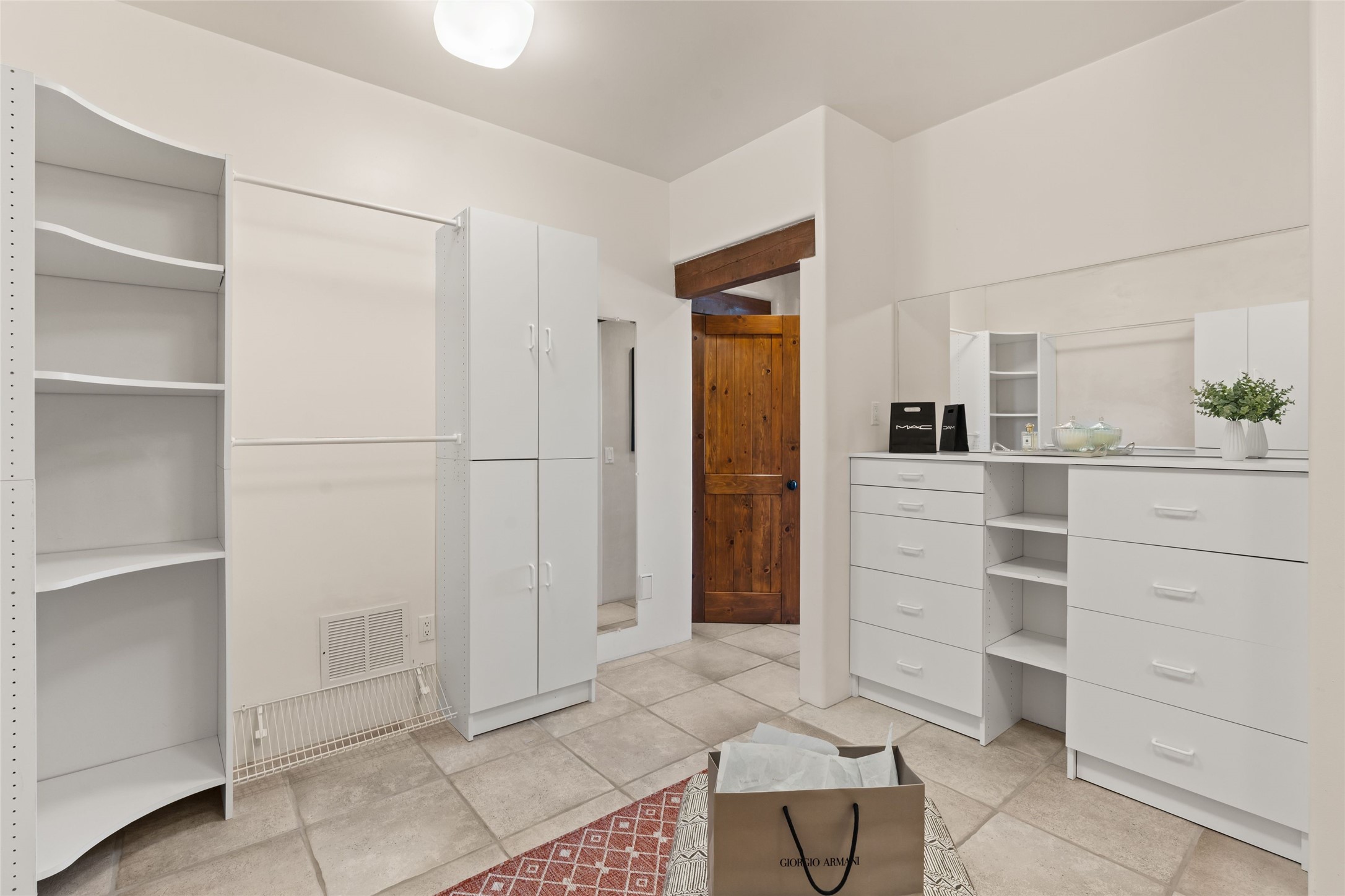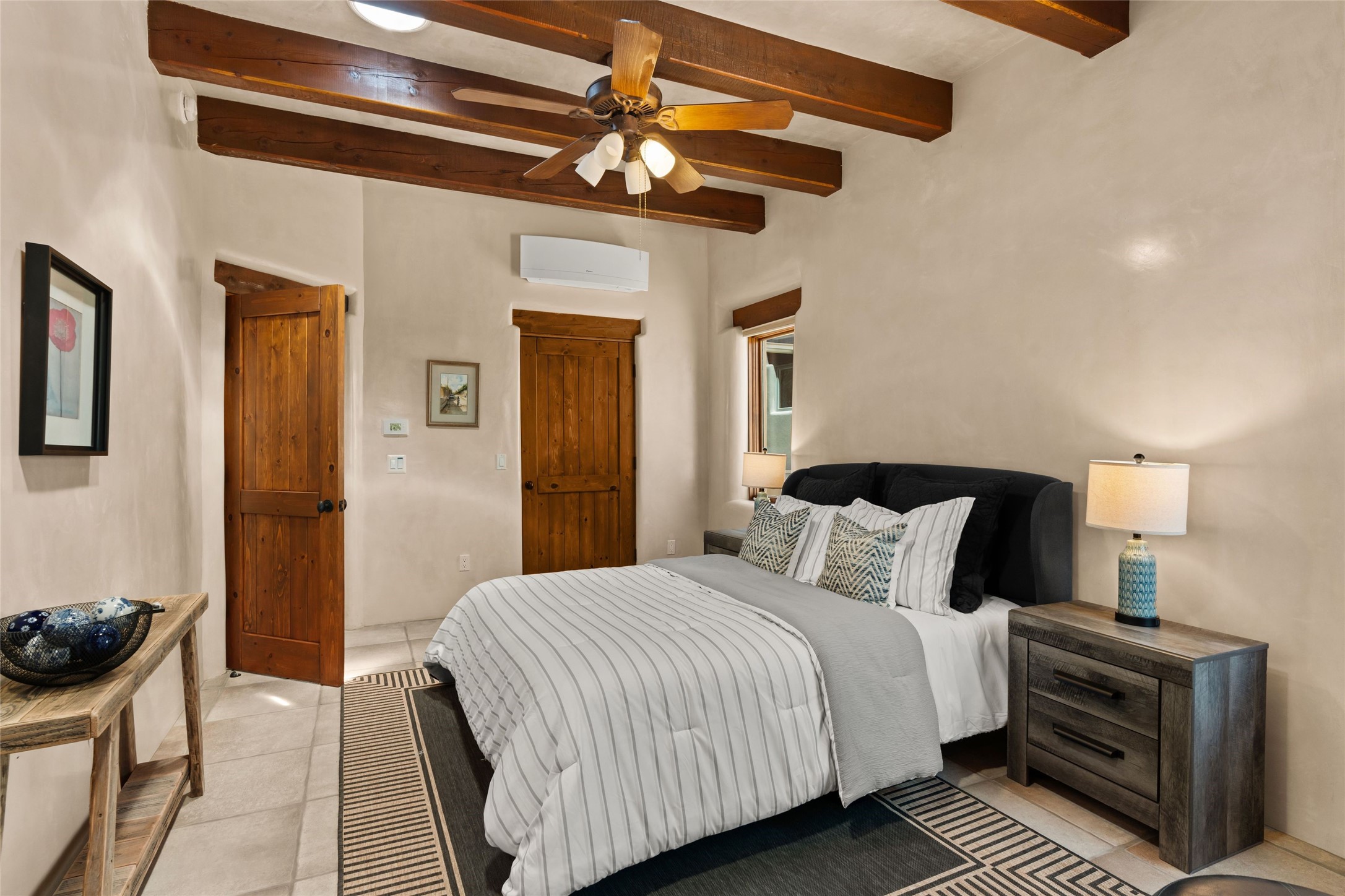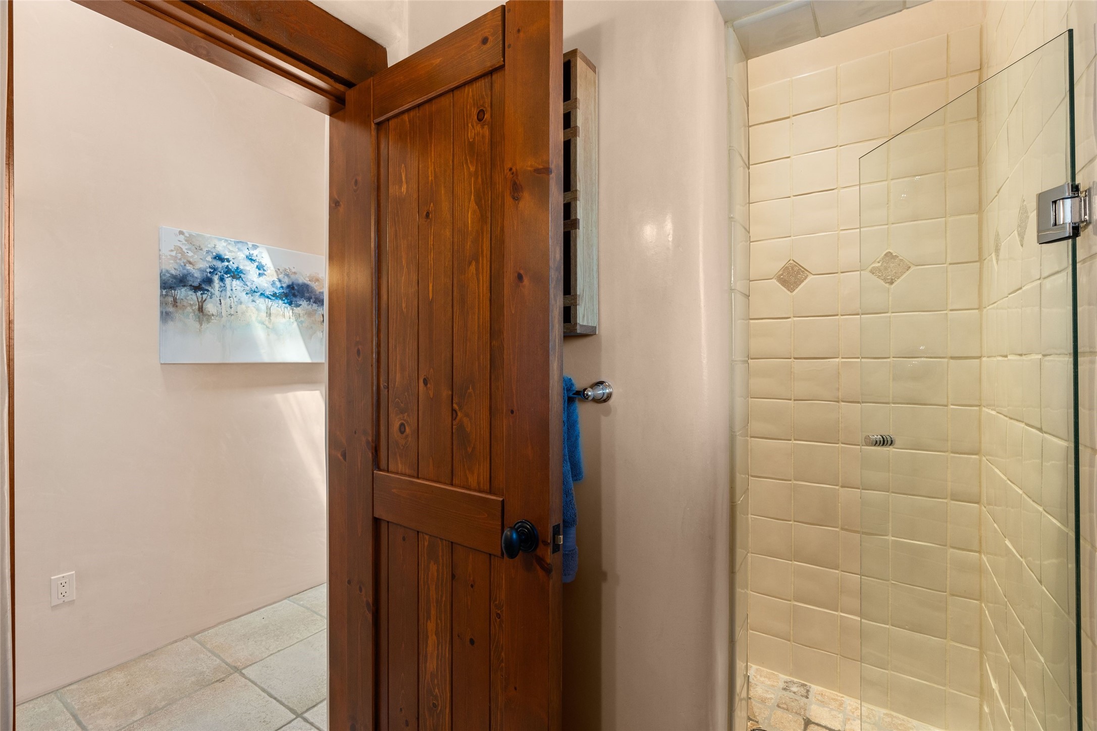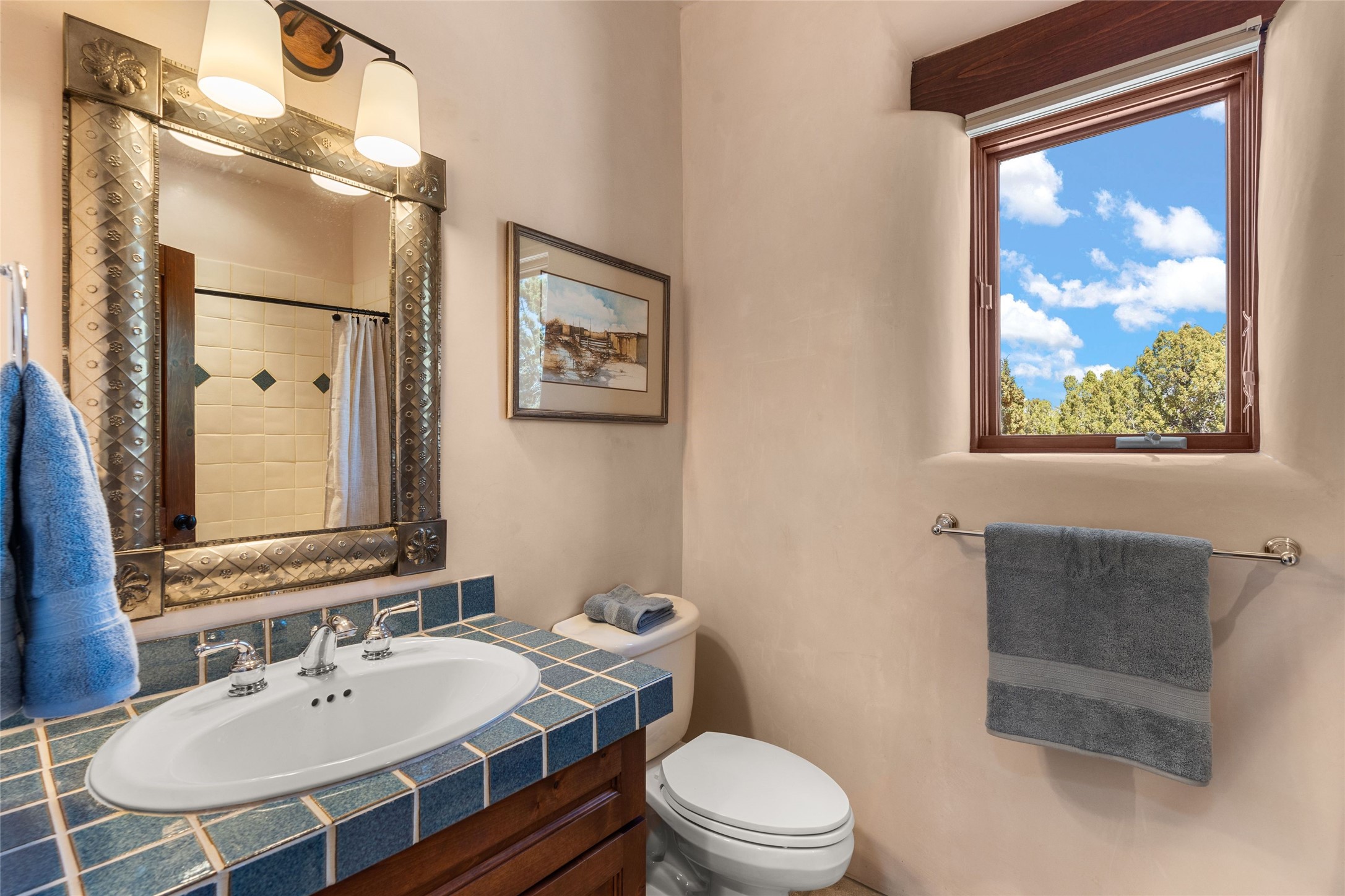 Tucked away on over 5 private acres just south of Las Campanas Drive, this distinctive Santa Fe-style home blends timeless design with sweeping 360-degree mountain views--from the Sangre de Cristo to the Jemez, Sandia, and Ortiz ranges. Built by master craftsman Don Wiles using pumice-crete construction, this 3-bedroom, 3-bath retreat delivers beauty, efficiency, and soul. A gated courtyard and 200 sq ft portal welcome you into a space designed for both comfort and connection to the outdoors. The sunlit living room offers panoramic views, a kiva fireplace, and access to a 1,200 sq ft wraparound portal--complete with a second fireplace for enjoying unforgettable sunsets year-round. The kitchen is both warm and functional, featuring alder cabinetry, a 6-burner Dacor range, separate wall oven, GE Profile fridge, microwave, walk-in pantry, and a cozy breakfast nook framed by bay windows. Throughout the home, plaster walls, ceramic tile floors, and coved ceilings create a soft, organic feel. The spacious primary suite includes double vanities, a generous closet, and a private redwood sauna. Two guest rooms--one ideal as a home office--are served by modern comforts like six Daikin mini-splits (installed in 2019), radiant heat with Wirsbo piping, and built-in speakers in key living areas. Outside, a raised bed garden adds a splash of green to the landscape, while the home's thoughtful layout invites indoor-outdoor living at every turn. Peaceful, energy-efficient, and just minutes from town, this one-of-a-kind property offers the best of Santa Fe living--with the views and quiet to prove it.