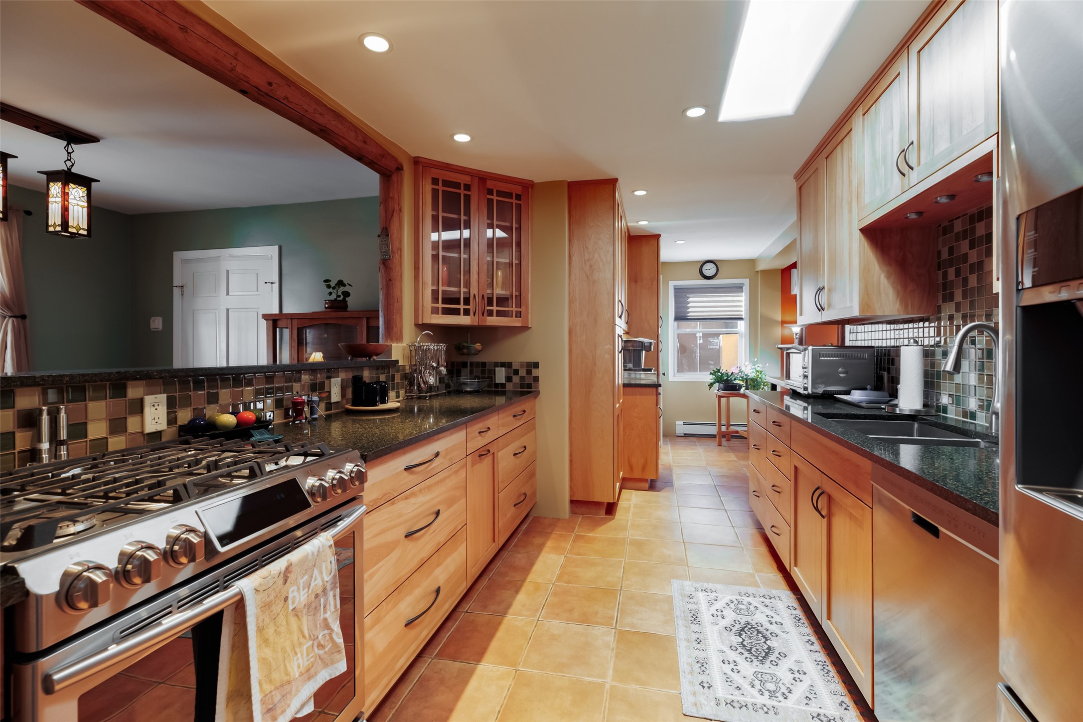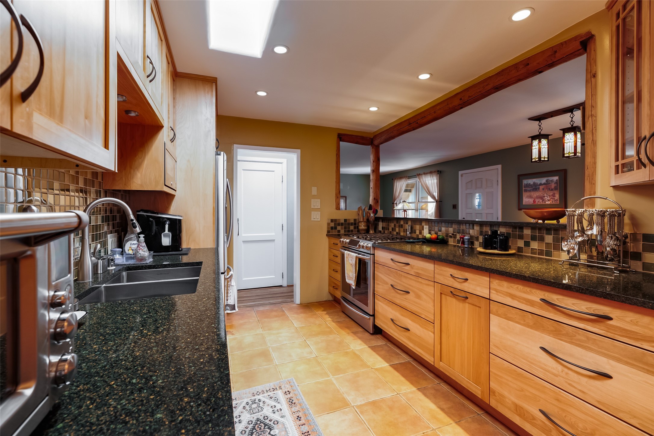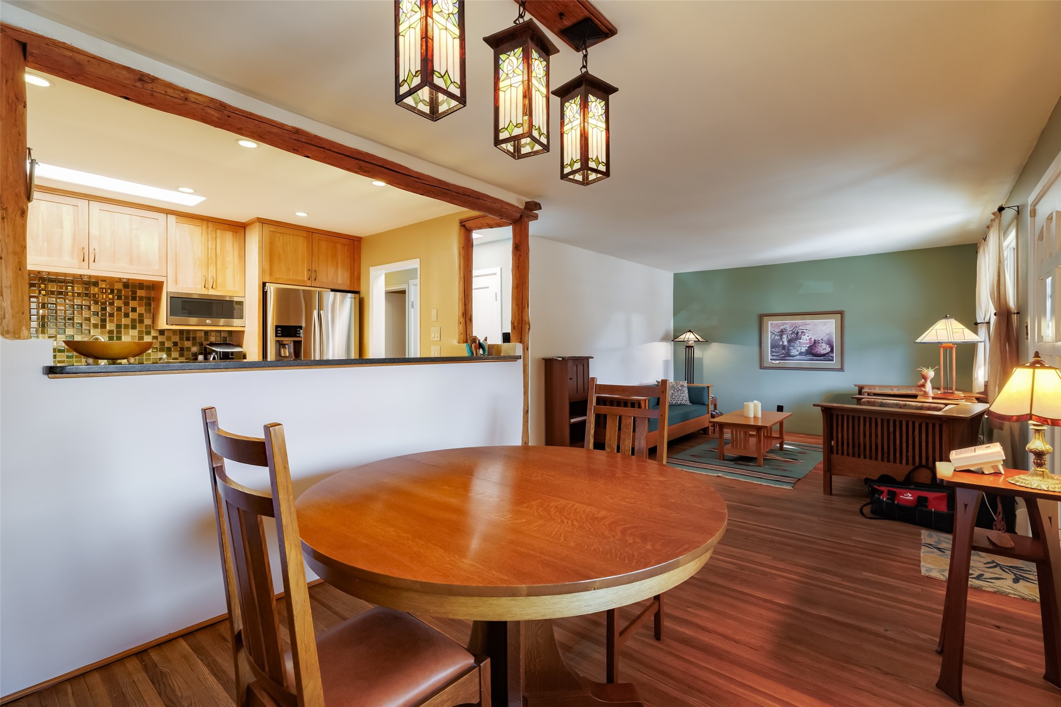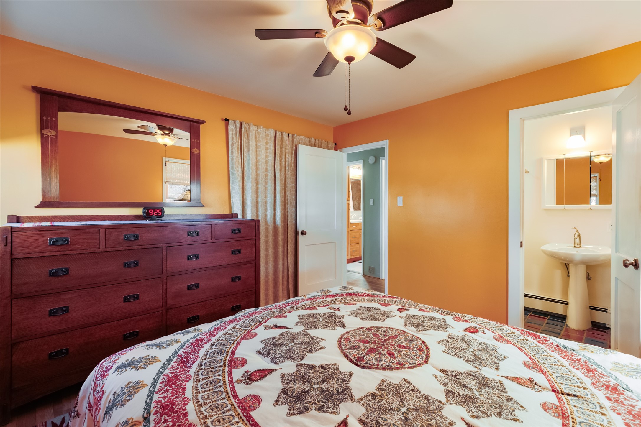 Charming single-level home located in a very Casa Alegra neighborhood. Convenient access to shopping and restaurants and Santa Fe River Trail and Acequia Trail both lead to the rail yard and downtown. Situated on a corner lot, the property features a spacious backyard and a covered portal ideal for outdoor entertaining. With three bedrooms and two bathrooms, and extra room that makes a great office or hobby room. The home also includes a cozy den with a Kiva fireplace. Enjoy year-round comfort with refrigerated air and mini-split cooling, plus the added benefit of solar panels.Key features include beautiful oak wood floors and tile throughout. The kitchen boasts red birch shaker-style cabinets with soft-close drawers and doors, along with pull-out drawers in both lower cabinets and the pantry. A pull-out trash/recycling system enhances convenience. The kitchen, laundry room, and bathrooms feature elegant Cambria quartz countertops. The third bedroom, which offers a private outdoor patio and a separate entrance, also has a spacious closet and could easily serve as a home office.