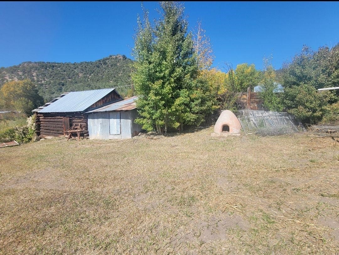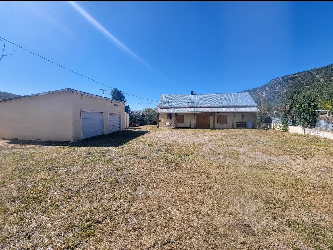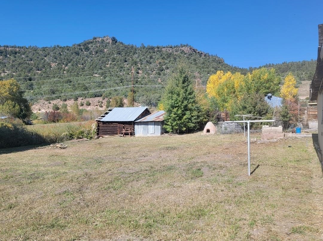 Garage on property- Has electricity, two car garage, one side dirt floor other side concrete. Full wire fencing with metal gate. Water rights for Acequia on west side.