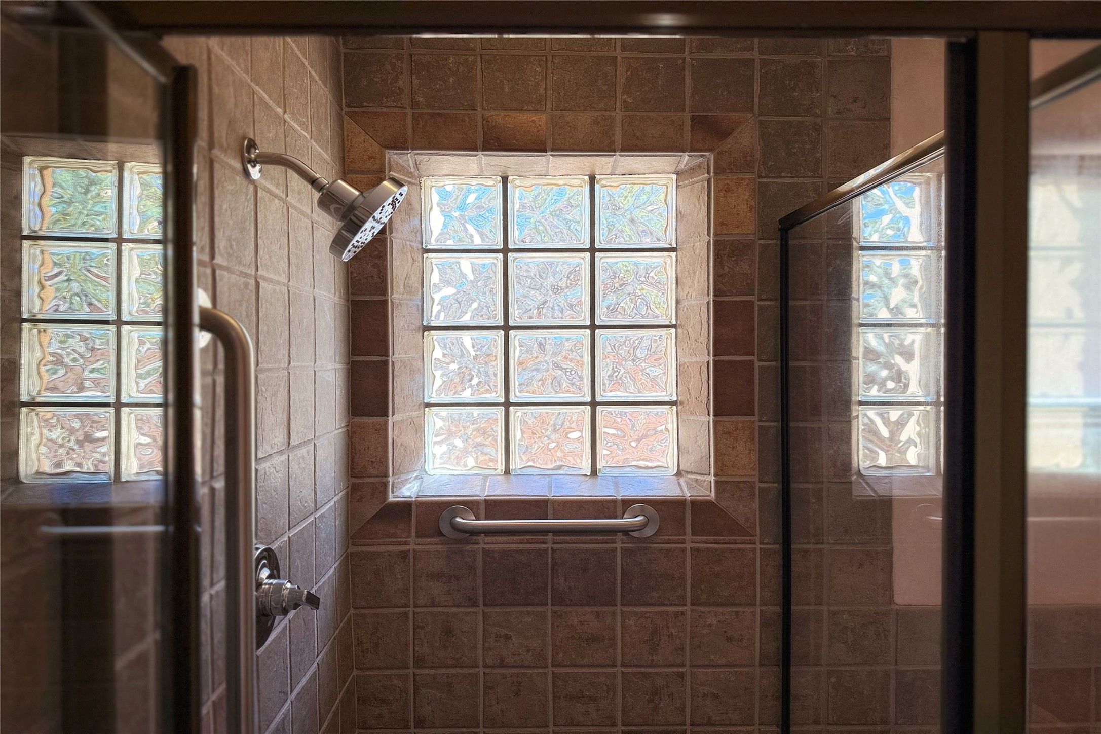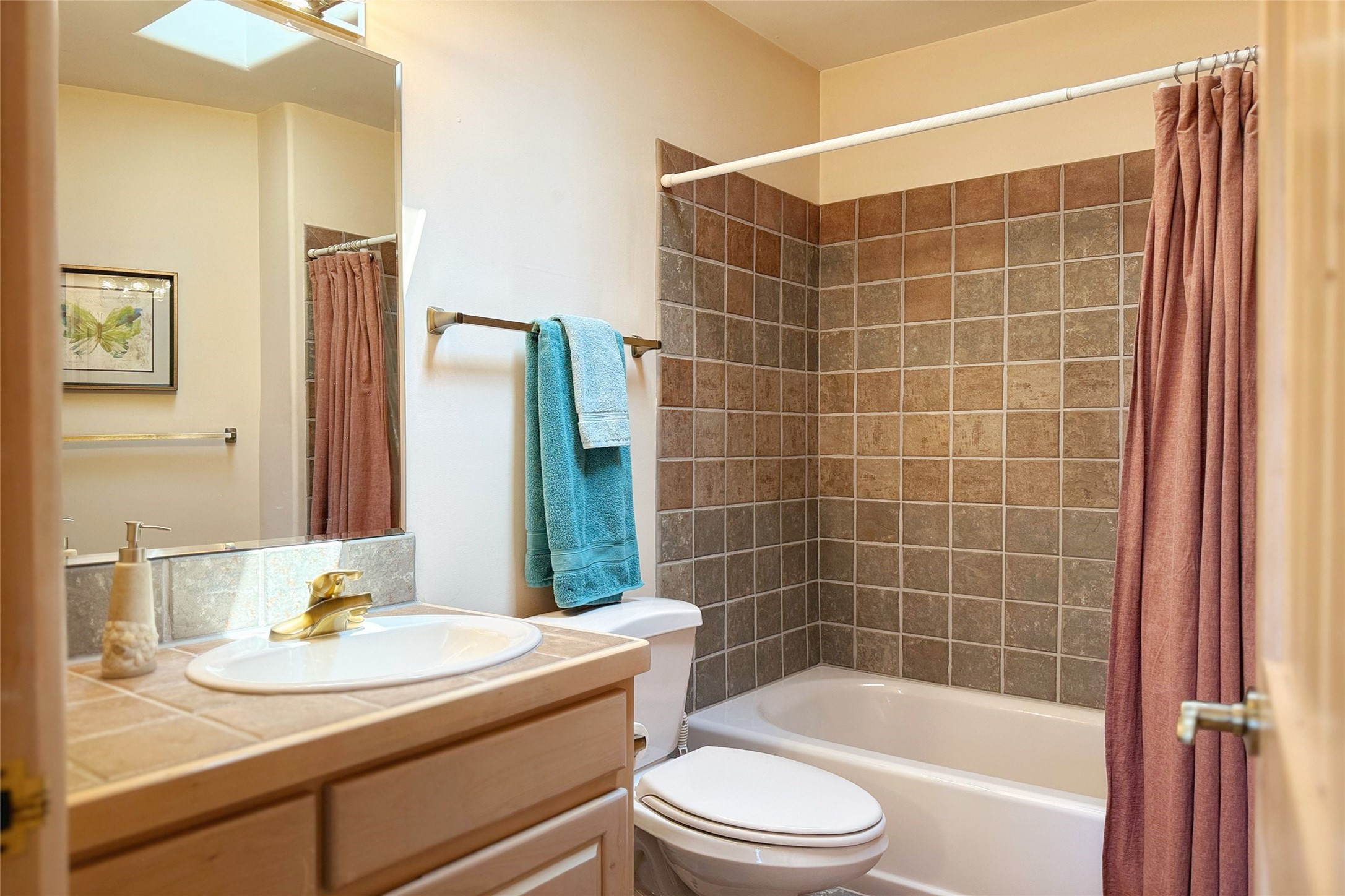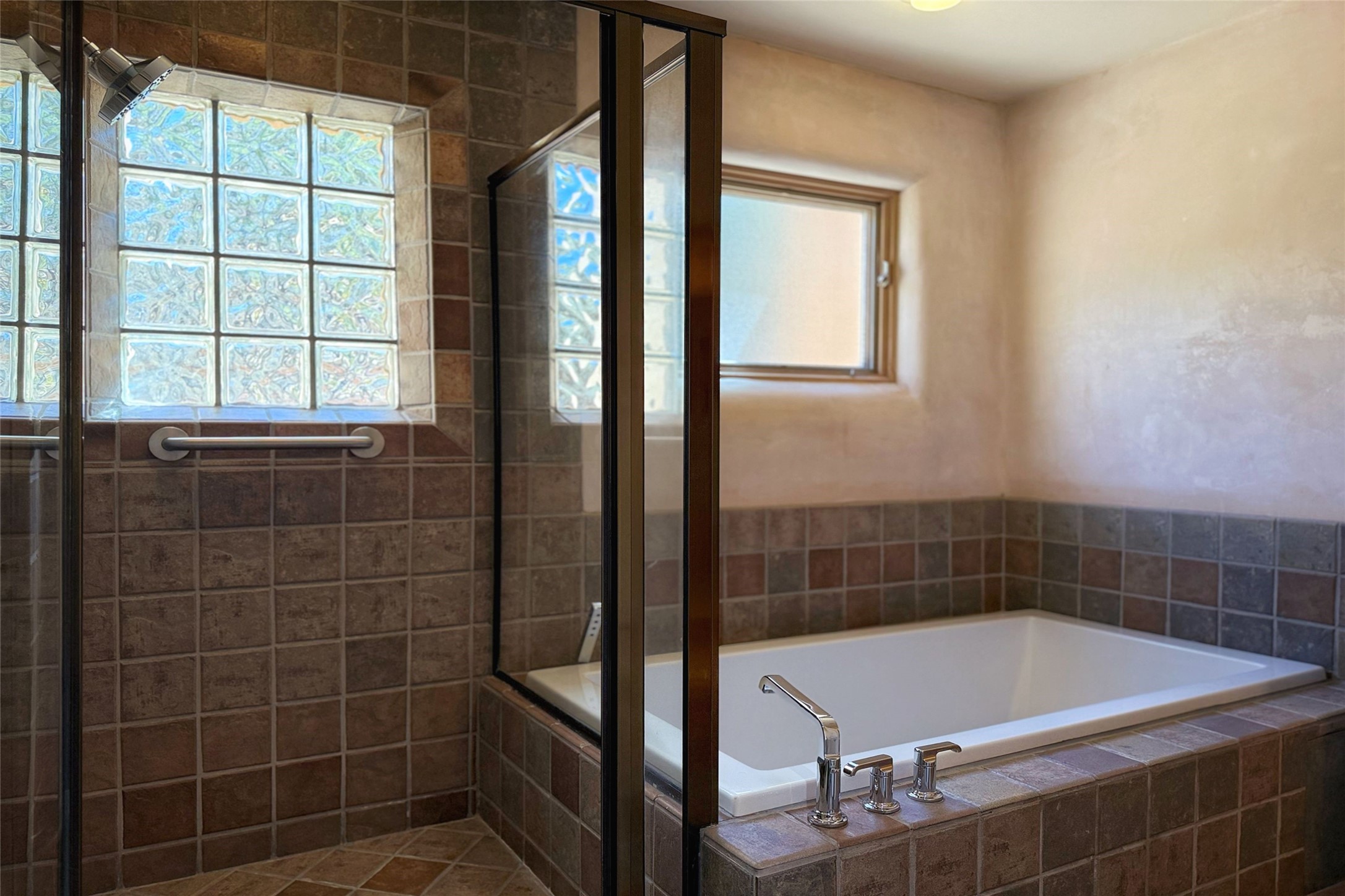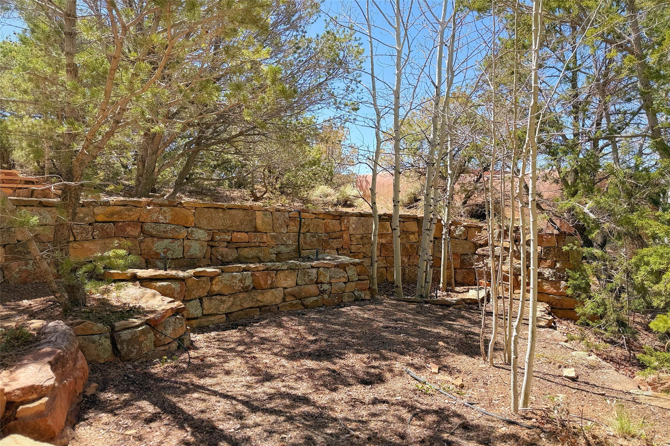 Stunning custom home with circular floor plan, archways and designer touches throughout. The spacious kitchen includes granite countertops, bar seating, walk-in butler's pantry and two new gas ranges. The light filled living area features a gas fireplace and large windows, with adjoining dining room. The primary suite offers a private retreat with a sitting room, soaking tub, bidet, and walk-in shower along with massive closet with built in storage. The best part is the massive sunroom with flagstone floors and a gas fireplace. A plant-lover's dream. Just two minutes to the plaza, yet surrounded by pion, the terraced outdoor landscaping offers nature and seclusion. While the large shaded portal boasts banco seating. Plus a rooftop terrace provides 360 views. Additional highlights include radiant floor heating, a bonus studio/home gym, a Murphy bed in the media roomLocated near walking paths, parks, dining, shops and world renowned galleries, this home combines comfort, style, and convenience. Don't miss this one-of-a-kind property!