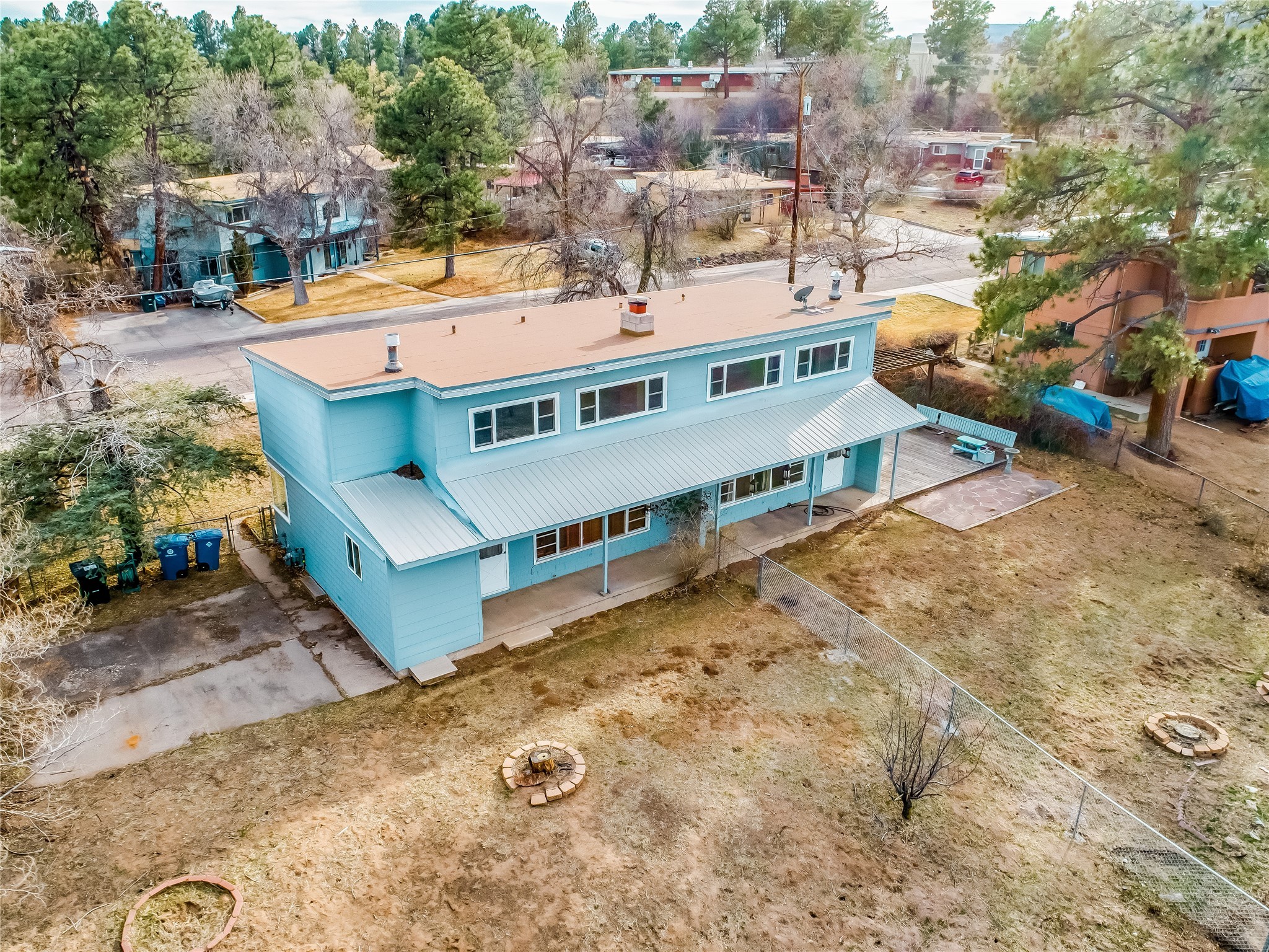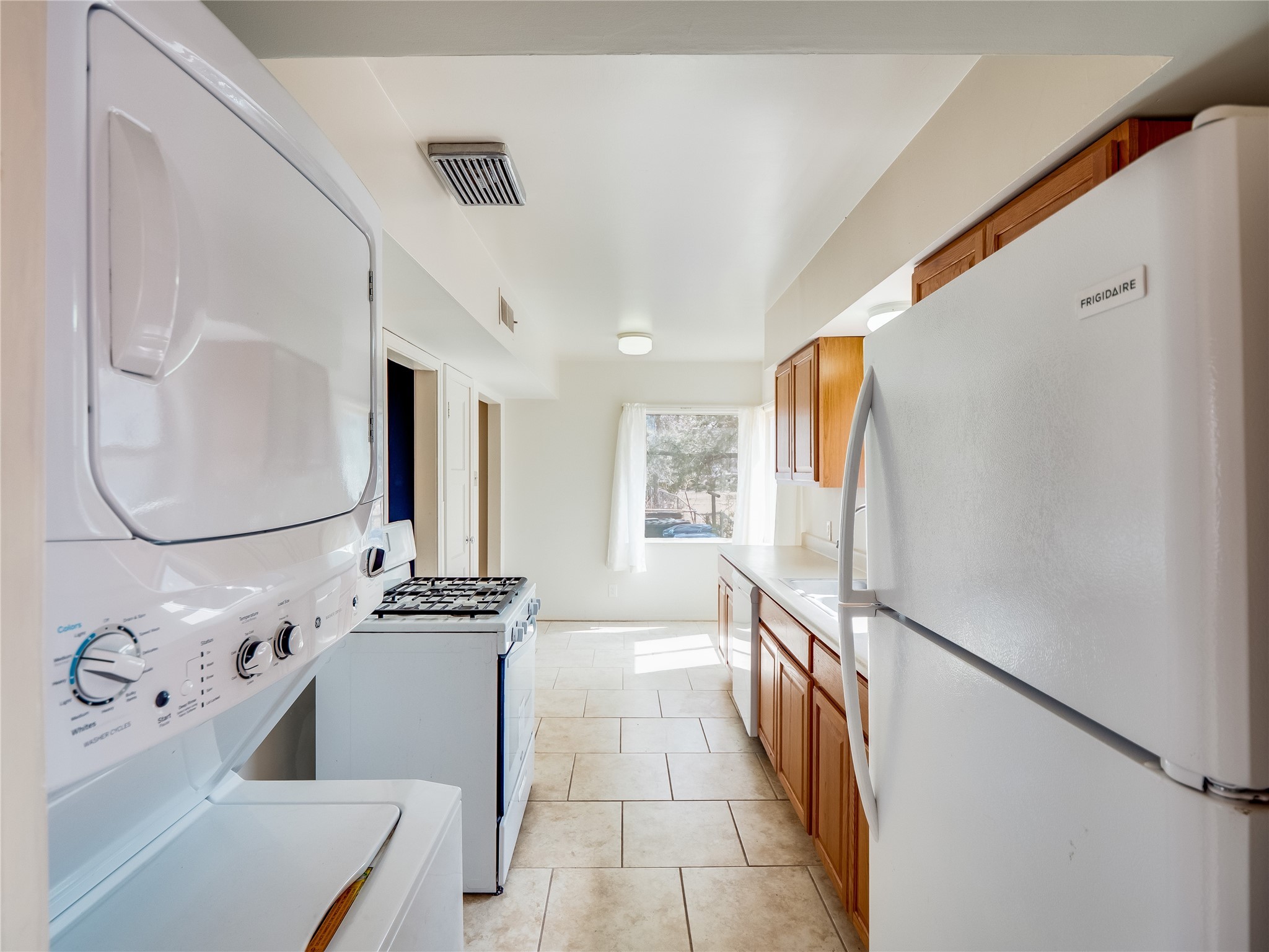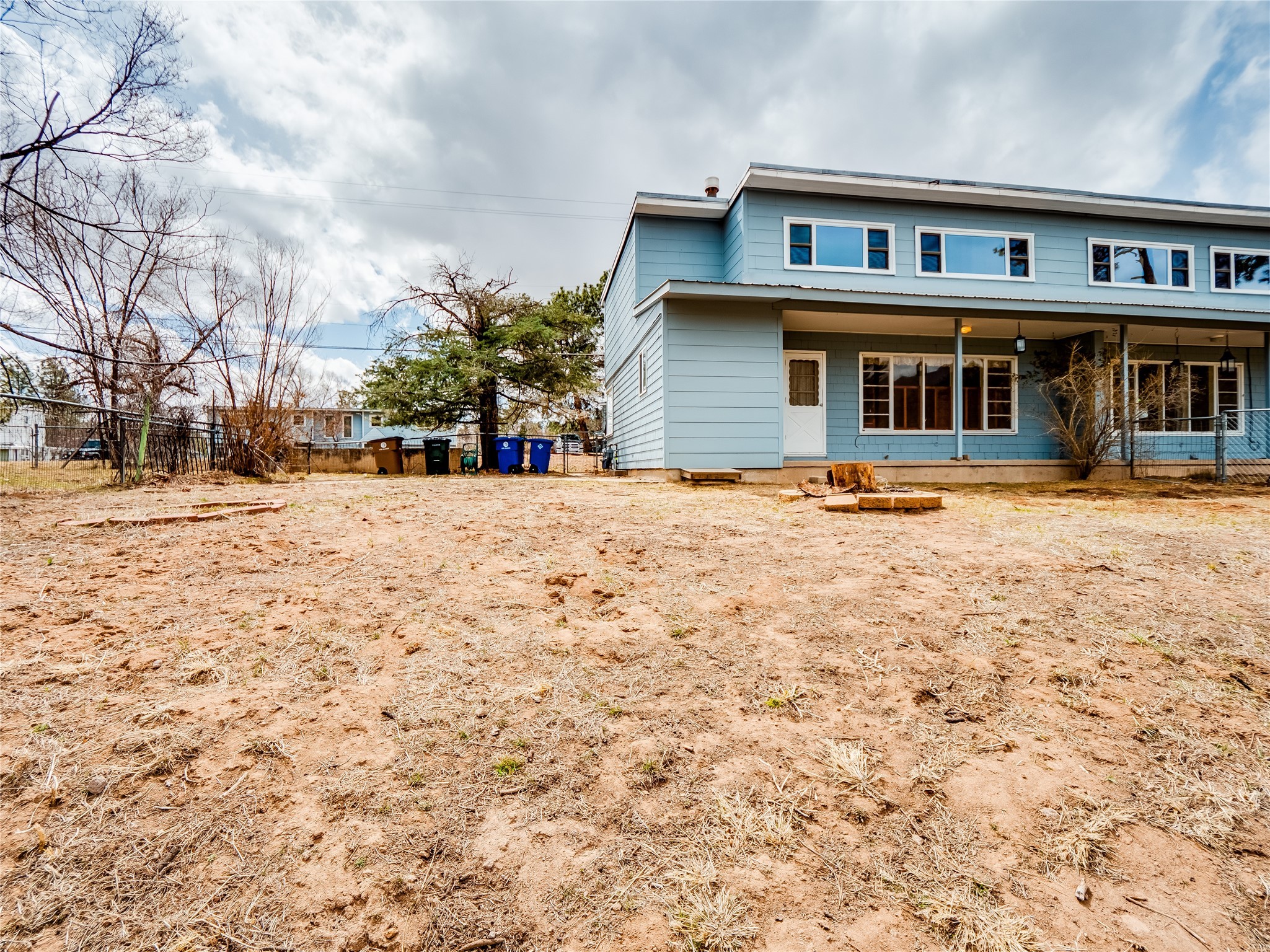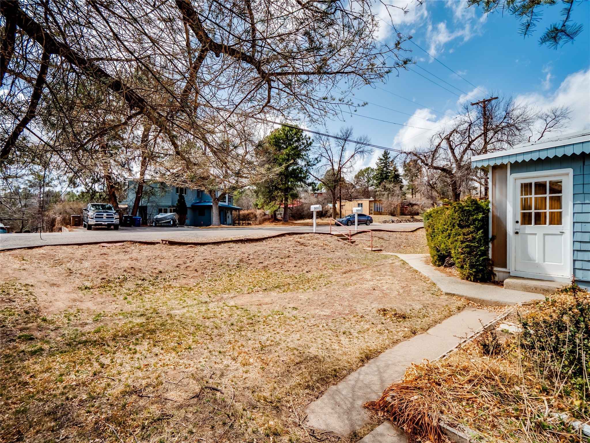 Nestled in the desirable West Area-East, this charming two-story condo offers a unique blend of comfort, convenience, and natural beauty. A designated street-level parking spot provides easy access before descending the stairs to the property, where you're welcomed by a spacious front lawn adorned with mature trees, lush shrubs, and garden beds. Enter into the shared enclosed porch/sunroom--a bright and inviting space perfect for any weather and cultivating your favorite plants. Inside, the tiled entryway features a convenient storage coat closet. Straight ahead, the cozy living and dining area is the heart of the home, featuring a classic brick wood-burning fireplace as its focal point. A wall of windows, adorned with half shutters, allows natural light to fill the space while offering access to the covered backyard porch--ideal for relaxing or entertaining. A bright galley-style kitchen is well-equipped with warm wood cabinets, a pantry closet, and included appliances, including a refrigerator, gas stove, and a washer/dryer combo. Tile flooring extends throughout the kitchen for easy maintenance. Just off this space, a guest bathroom features a walk-in tiled shower for added convenience. Upstairs, you'll find two nicely sized guest bedrooms with beautiful wood flooring. The shared full bathroom includes a single sink vanity, tile flooring, and a tiled shower/tub combination. The large primary bedroom boasts wood floors, a spacious walk-in closet, and plenty of room to create a personal retreat. Head outside to the spacious fenced-in backyard, which slopes gently toward the serene, tree-lined canyon--offering a picturesque and private setting. A storage shed provides extra space for tools and outdoor gear. The side yard features a large concrete patio, perfect for outdoor gatherings or additional seating. Close to downtown parks, trails, shopping, and restaurants, this fantastic condo is a must-see. Don't miss your chance to tour this beautiful property today!