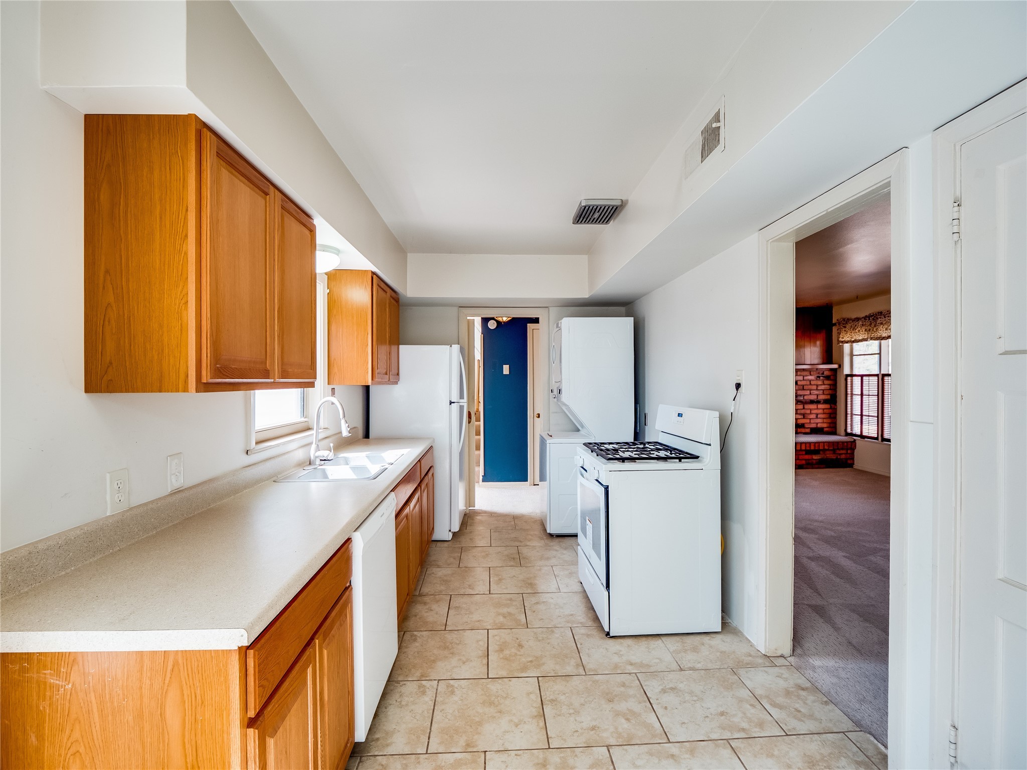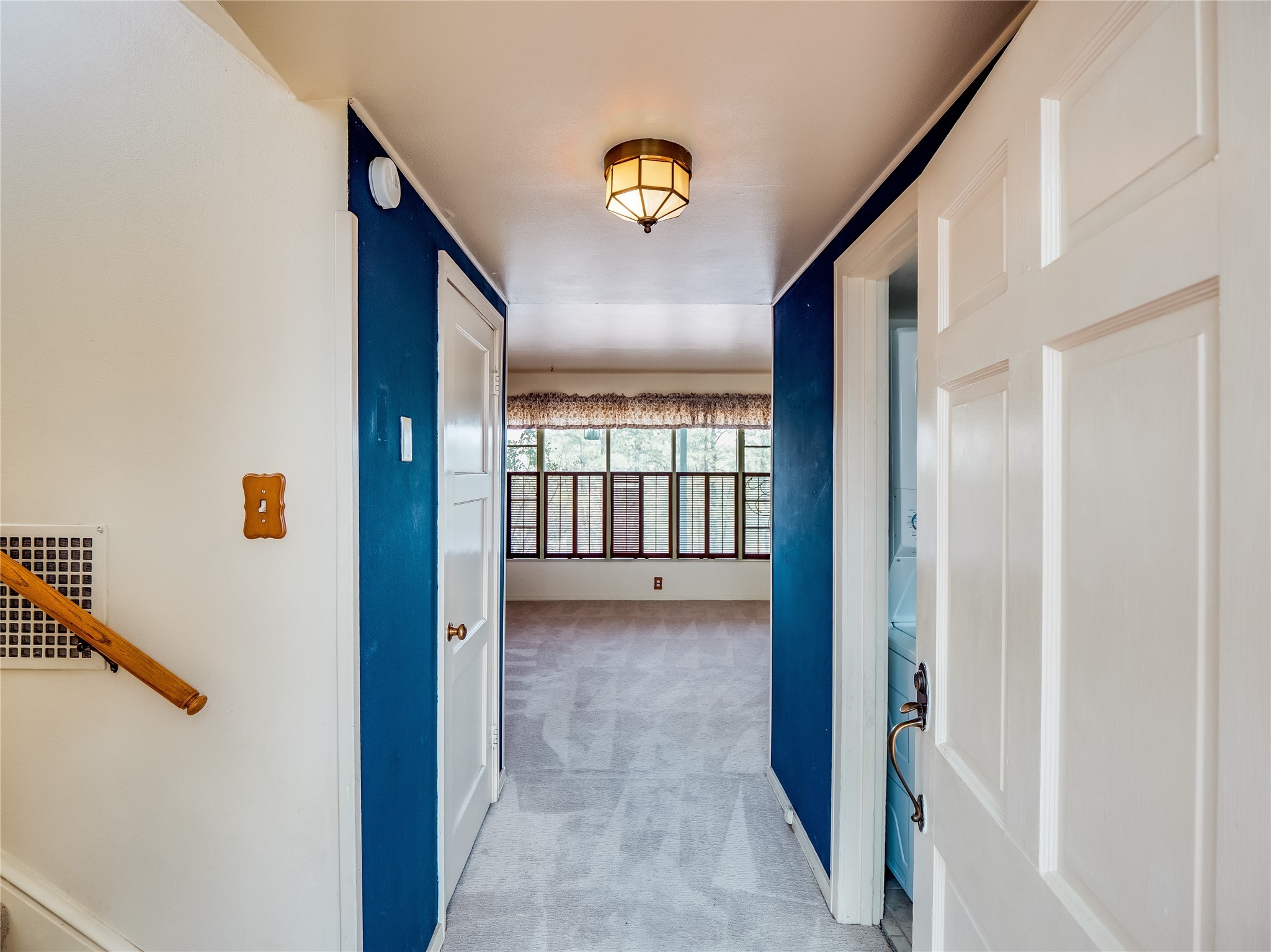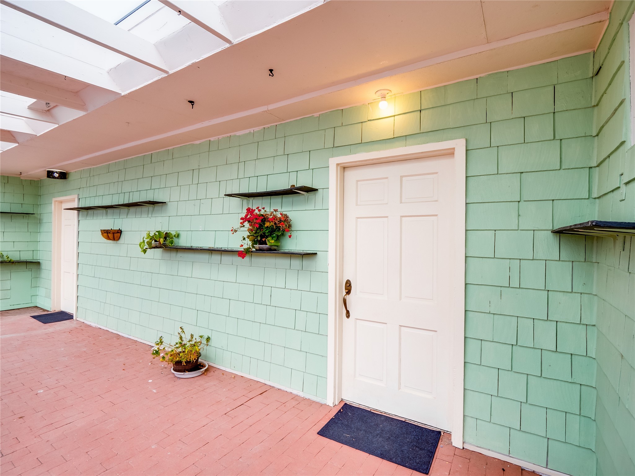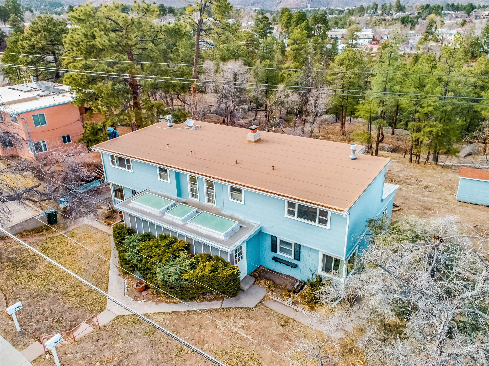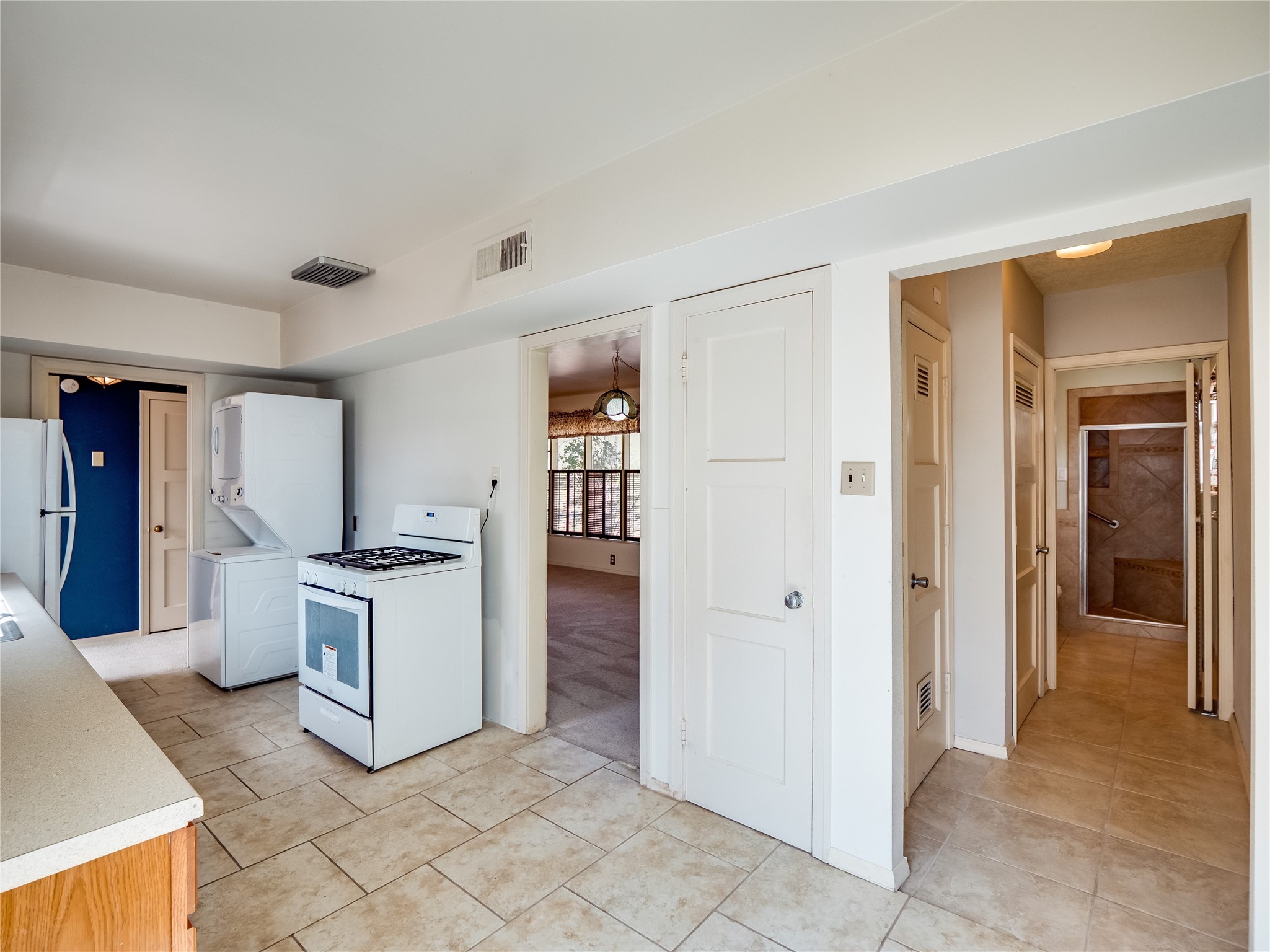 Nestled in the desirable West Area-East, this charming two-story condo offers a unique blend of comfort, convenience, and natural beauty. A designated street-level parking spot provides easy access before descending the stairs to the property, where you're welcomed by a spacious front lawn adorned with mature trees, lush shrubs, and garden beds. Enter into the shared enclosed porch/sunroom--a bright and inviting space perfect for any weather and cultivating your favorite plants. Inside, the tiled entryway features a convenient storage coat closet. Straight ahead, the cozy living and dining area is the heart of the home, featuring a classic brick wood-burning fireplace as its focal point. A wall of windows, adorned with half shutters, allows natural light to fill the space while offering access to the covered backyard porch--ideal for relaxing or entertaining. A bright galley-style kitchen is well-equipped with warm wood cabinets, a pantry closet, and included appliances, including a refrigerator, gas stove, and a washer/dryer combo. Tile flooring extends throughout the kitchen for easy maintenance. Just off this space, a guest bathroom features a walk-in tiled shower for added convenience. Upstairs, you'll find two nicely sized guest bedrooms with beautiful wood flooring. The shared full bathroom includes a single sink vanity, tile flooring, and a tiled shower/tub combination. The large primary bedroom boasts wood floors, a spacious walk-in closet, and plenty of room to create a personal retreat. Head outside to the spacious fenced-in backyard, which slopes gently toward the serene, tree-lined canyon--offering a picturesque and private setting. A storage shed provides extra space for tools and outdoor gear. The side yard features a large concrete patio, perfect for outdoor gatherings or additional seating. Close to downtown parks, trails, shopping, and restaurants, this fantastic condo is a must-see. Don't miss your chance to tour this beautiful property today!