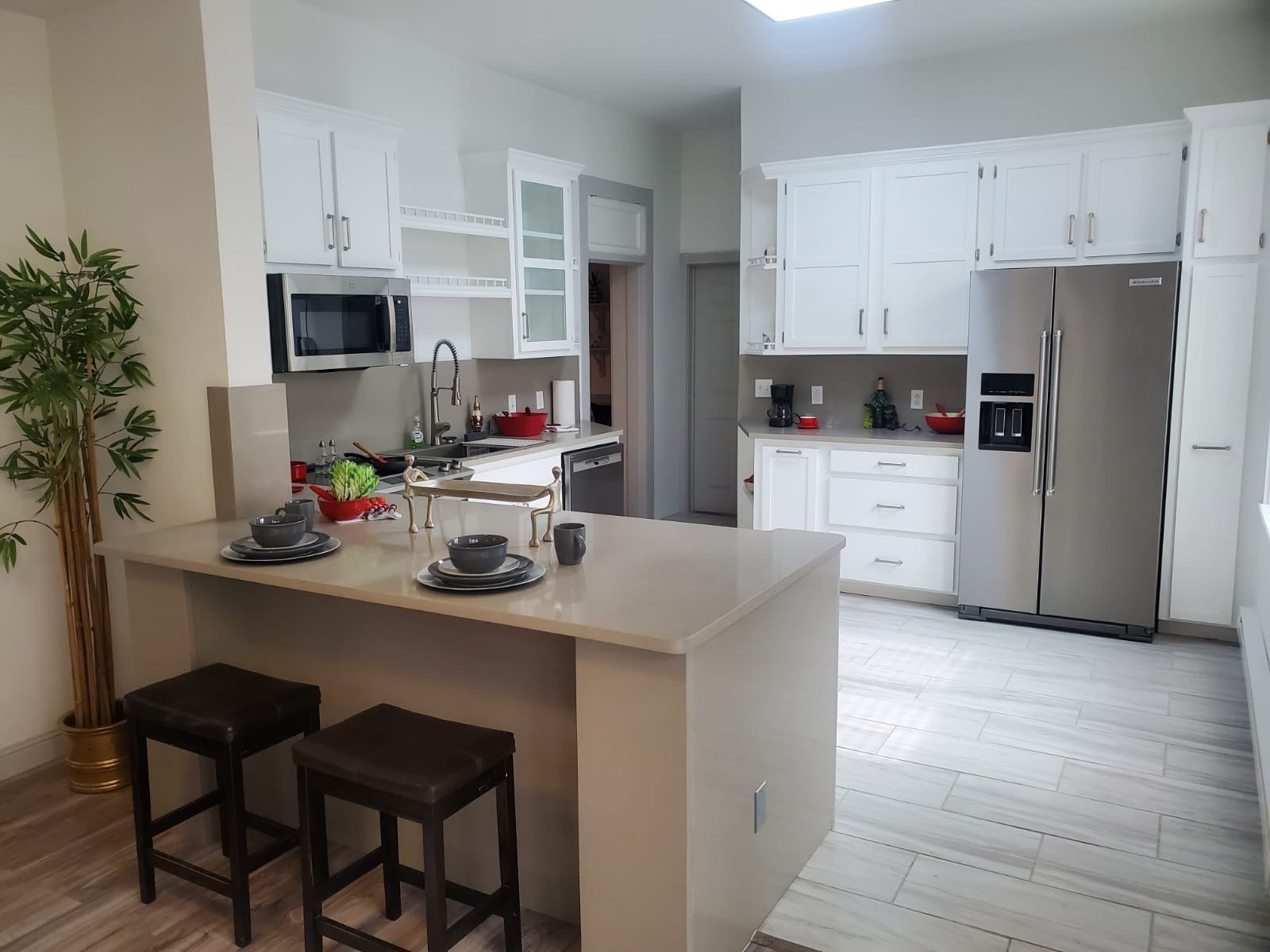 Welcome to your dream home, a stunning blend of elegance and comfort. This beautifully designed residence features an open-concept layout, allowing natural light to flood through large windows, creating a warm and inviting atmosphere. The gourmet kitchen is a chef's delight, showcasing exquisite quartz countertops that wrap around the space, complemented by custom-made glass cabinets that add a touch of sophistication. You'll find a convenient spice rack and a broom closet, making organization effortless and practical.This home boasts two master suites, along with a total of three bedrooms and three full bathrooms, ensuring that every room has its own private space and walk-in closet. Both downstairs and upstairs have laundry rooms which add convenience, and all appliances are new and included with the sale. Step outside to discover front and back porches, as well as side access and backyard access, perfect for enjoying the outdoors. The front of the house features a beautifully designed zero-scape yard, enhancing curb appeal while minimizing maintenance.Located in a desirable neighborhood, this home is just minutes from local amenities, parks, and schools, making it the perfect place to create lasting memories. Only an hour away from Santa Fe ! Don't miss the opportunity to own this exquisite property that truly feels like home. Must see , its rare that a home come this nice and has so many upgrades and is turnkey ready !