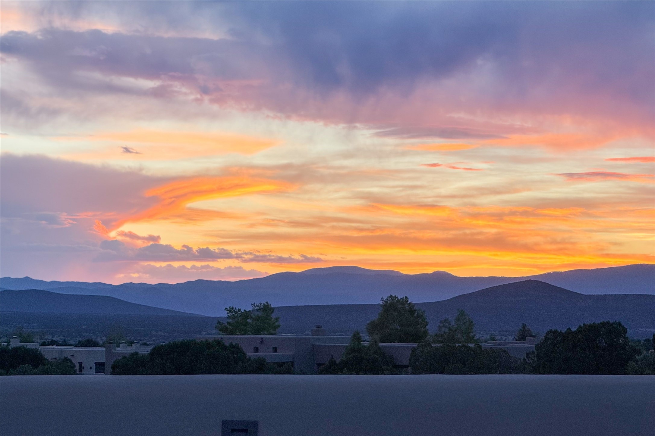 Welcome to 6 Silver Mesa Court, an exceptional property that blends high-end design, thoughtful amenities and layout, and stunning indoor-outdoor living. This elegant home showcases Jemez mountain views, golf course and pond views, and sound system throughout. Highly desirable location with close proximity to the Spa, Racquet & Fitness Center; Driving Range and the Club Hacienda. Step into the inviting front courtyard and enter into the foyer that greets you with a wall-washer skylight. Flow into the great room with 12-foot ceilings, clerestory windows, a stone fireplace, impressive beams, and 6 sets of French doors opening to the wrap around portal. Wind shades around the entire portal make outdoor dining lovely in any weather. Enjoy outdoor entertaining and relax by the fireplace while experiencing incredible views of the Jemez mountain sunsets.This expansive great room combines living and dining spaces and opens to the chef's kitchen complete with a large center island, built-in cutting board, and top-tier appliances including a Viking fridge and gas range. A small office is conveniently located adjacent to the kitchen, along with a laundry/pantry area housing a large wine storage. Tucked behind the kitchen lays a large media/flex room, bedroom with two sets of built-in bunk beds and 3/4 bath. The primary suite is a private sanctuary, complete with its own fireplace and opens to a portal and hot tub. This wing shares a library/study, an office and en-suite guest bedroom. The attached guest casita features a studio layout with a full bath, mini fridge, and private entrance from the interior courtyard. With many guest accommodation options, multiple family rooms, a 360 degree view from the rooftop deck, and a 4 car garage (with a paver driveway) this estate is perfect for large gatherings. Every detail has been curated for comfort, style, and function in this stunning Santa Fe home. A Las Campanas club membership is available for purchase and upon approval.