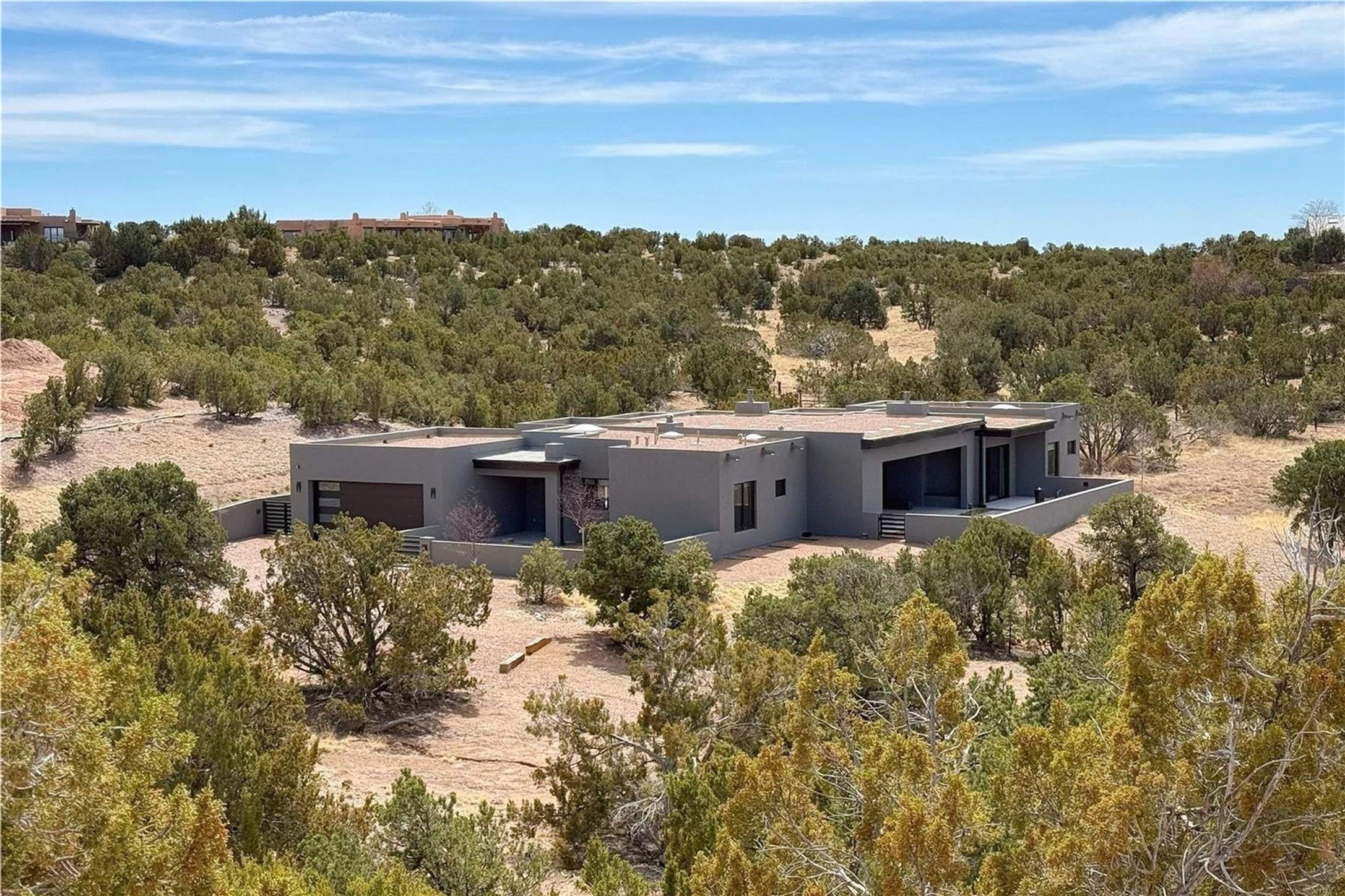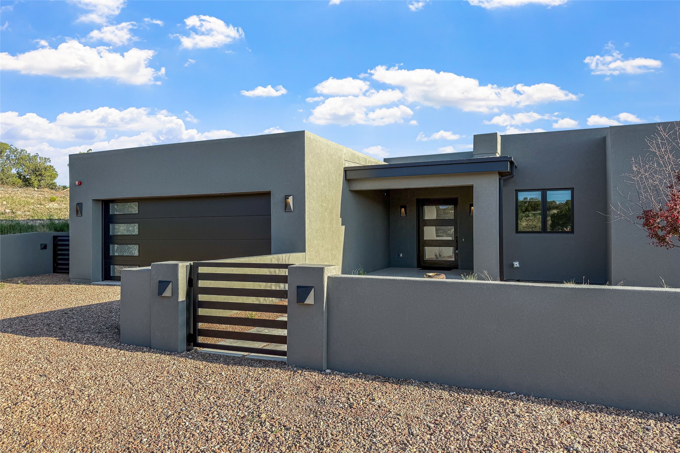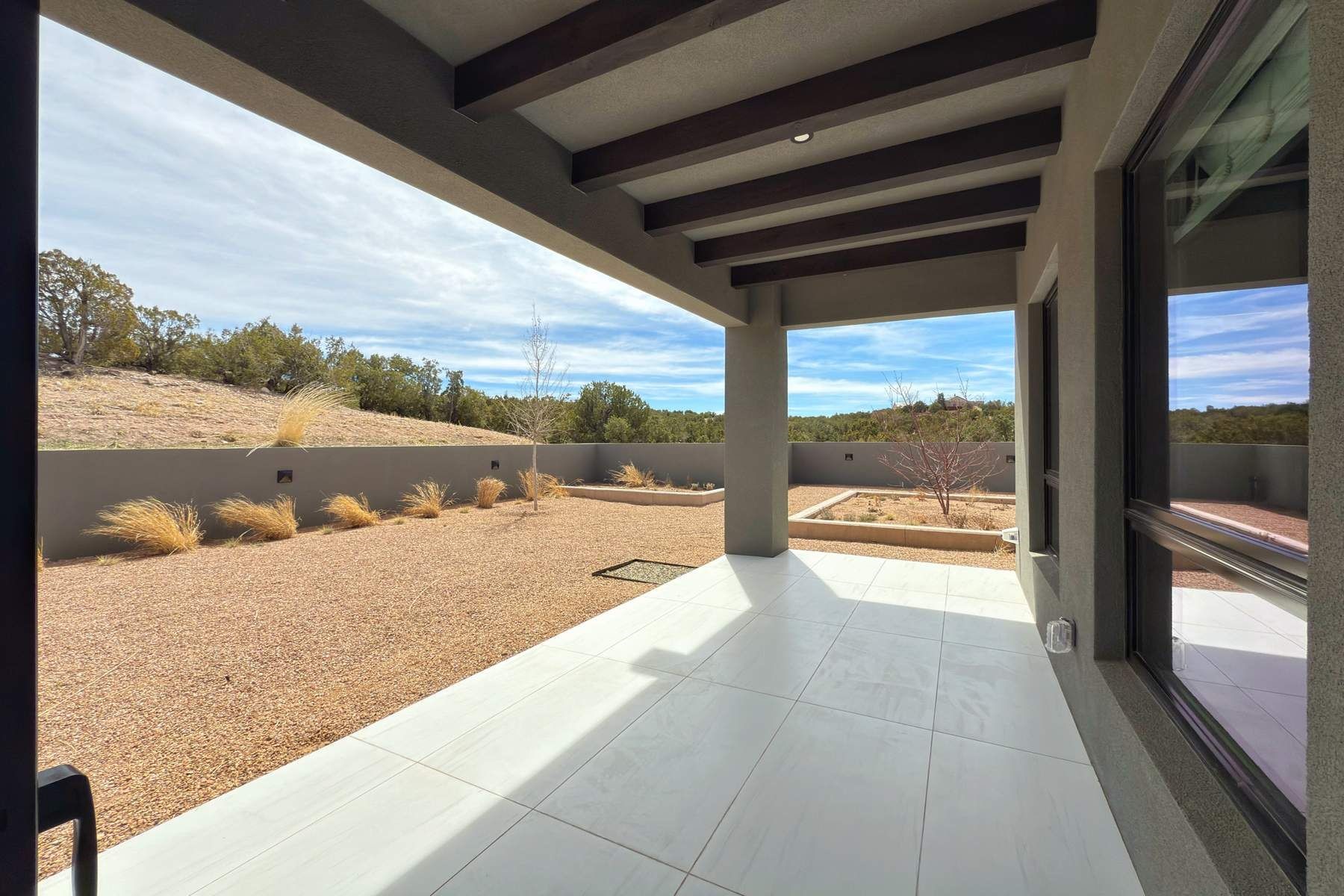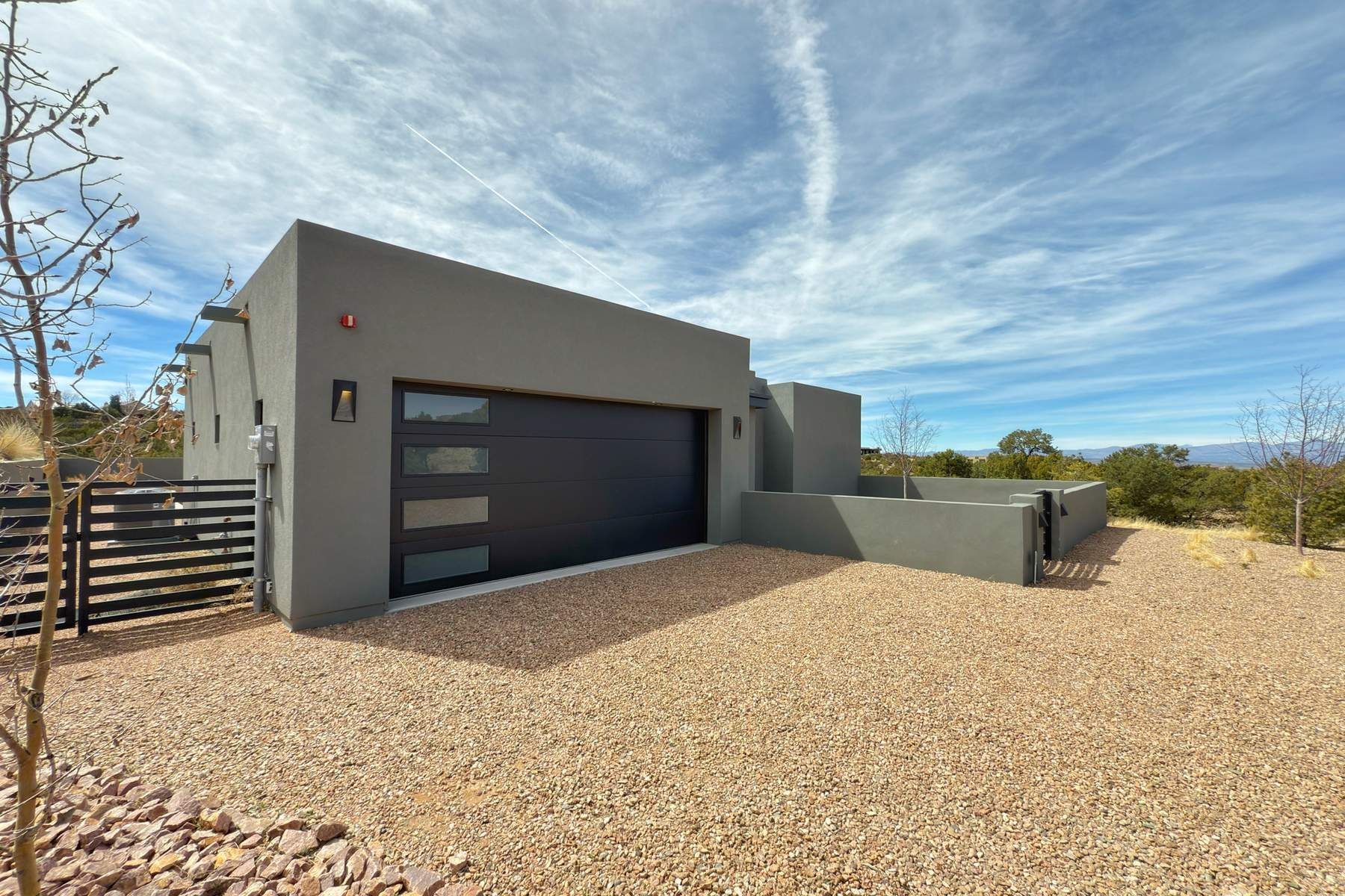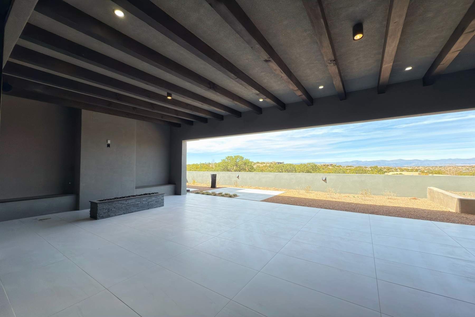 Experience contemporary living in this stunning 2023 home built by David Cordova. Nestled on 2.64 acres in Sundance Ridge. Spanning approximately 2,775 sq. ft., this 3-bedroom, 3-bathroom residence offers seclusion and privacy while being just a 17-minute drive to the Santa Fe Plaza. The living room boasts high ceilings, a beautiful accent wall with a gas fireplace, and built-in shelves, creating a refined yet cozy ambiance. Step outside to take in breathtaking sunset views over the Jemez Mountains from the covered portals and walled outdoor spaces. Entertain with ease in the outdoor kitchen, while the large walk-in butler's pantry with a second refrigerator makes hosting large gatherings a breeze. Or unwind amid the tranquil setting, surrounded by mature trees and nature. Designed for seamless indoor-outdoor living, the primary suite features large sliding doors that open to a private patio, perfect for enjoying the natural surroundings. A gas fireplace with a striking accent wall adds warmth and elegance to the space. A bonus feature is the radiant floor heated garage. More than $100K invested in upgrades--including landscaping, yard walls, garage floor finish, and a custom fountain--makes this better than new. The home has never been occupied and is truly a turn-key property. This exquisite home blends modern comfort with the serenity of Santa Fe's landscape--don't miss the chance to make it yours.