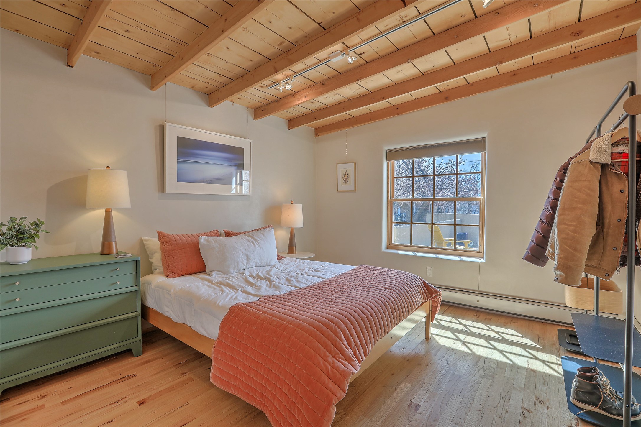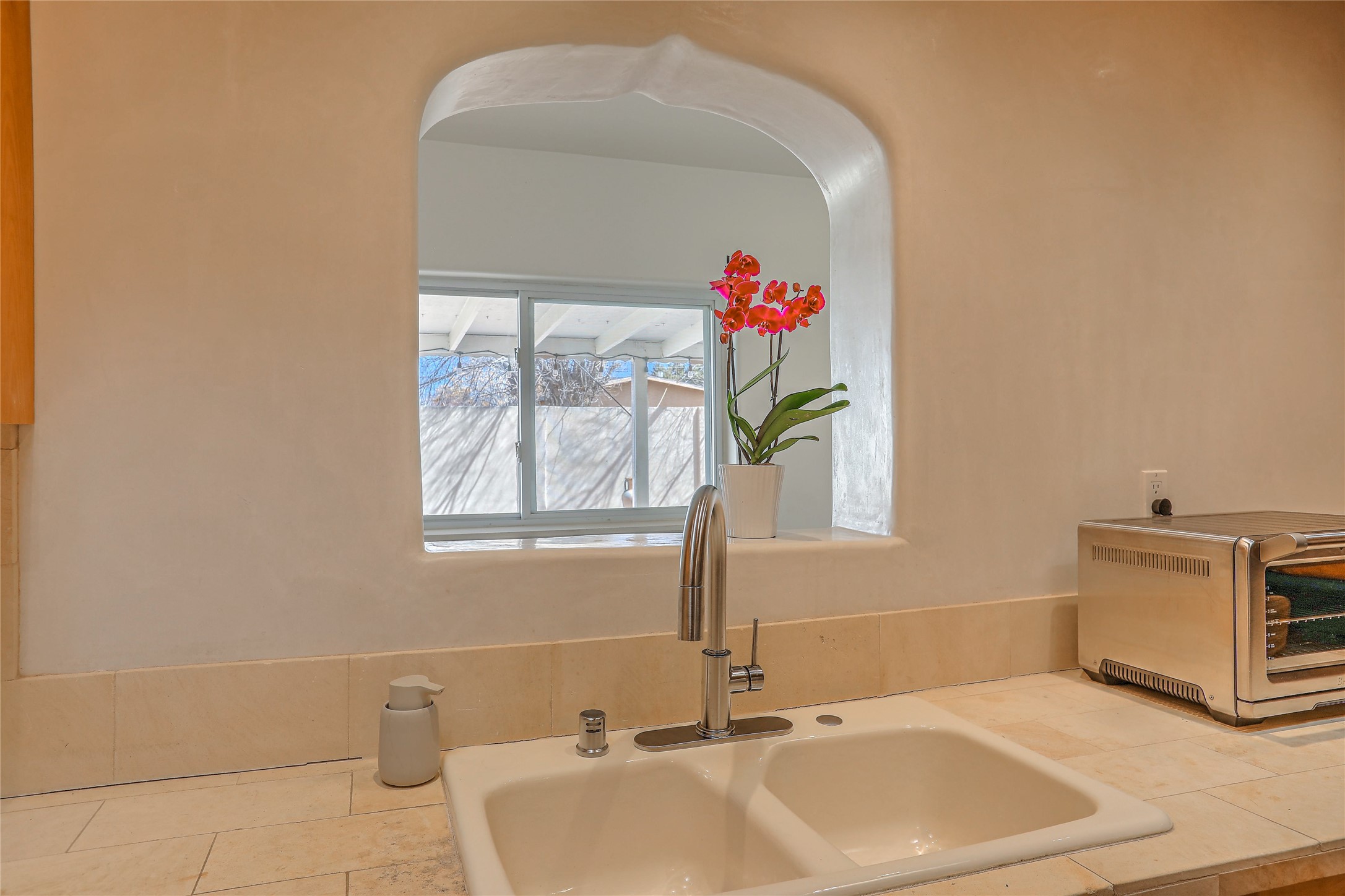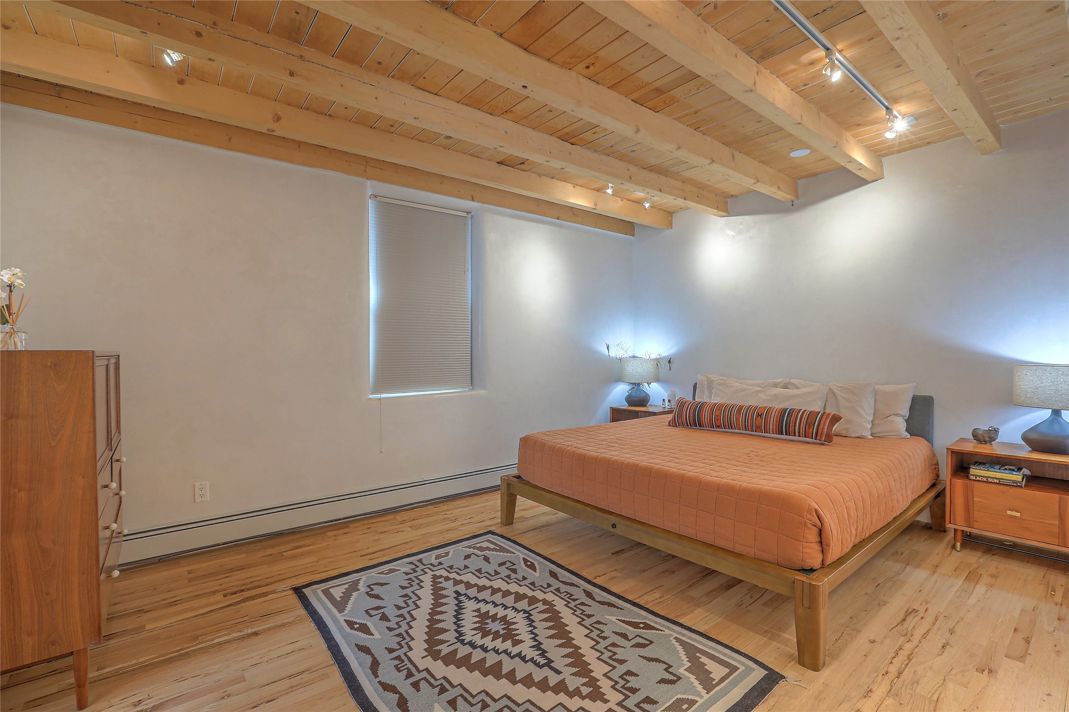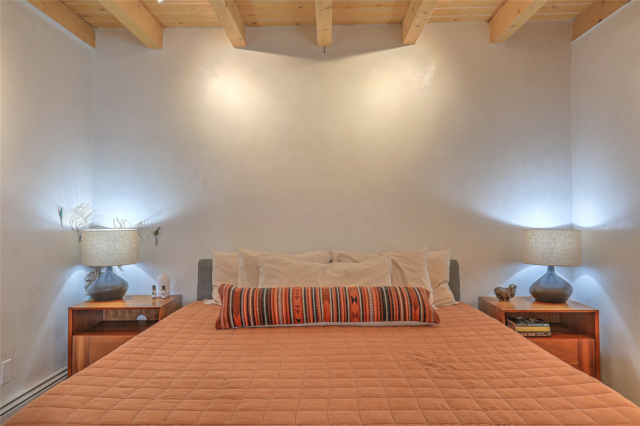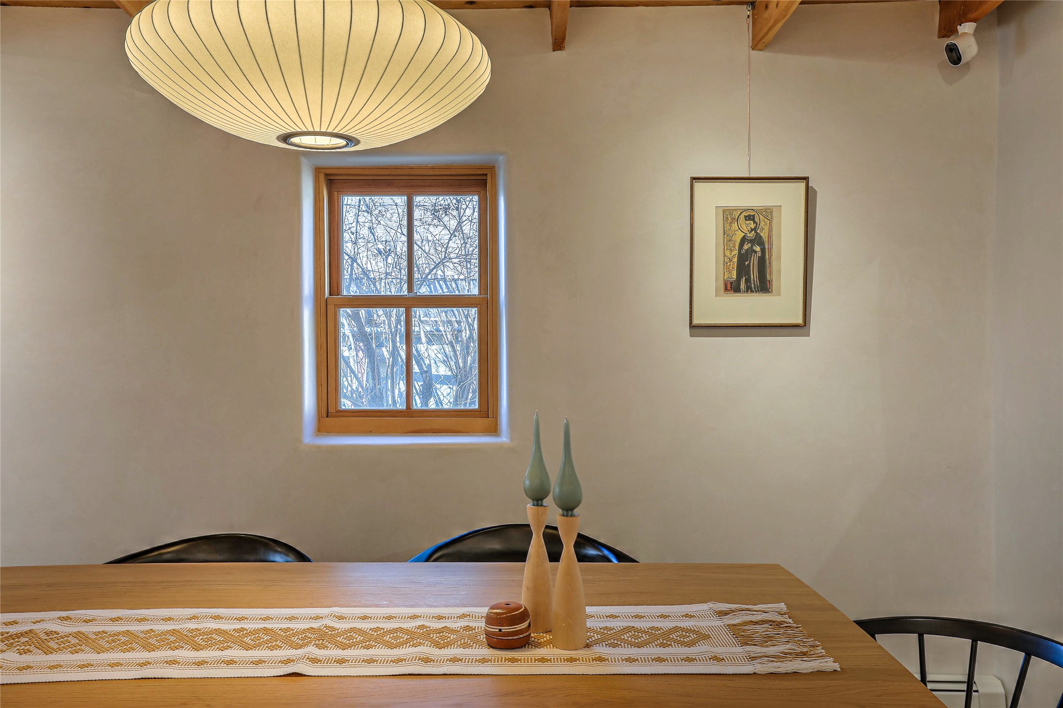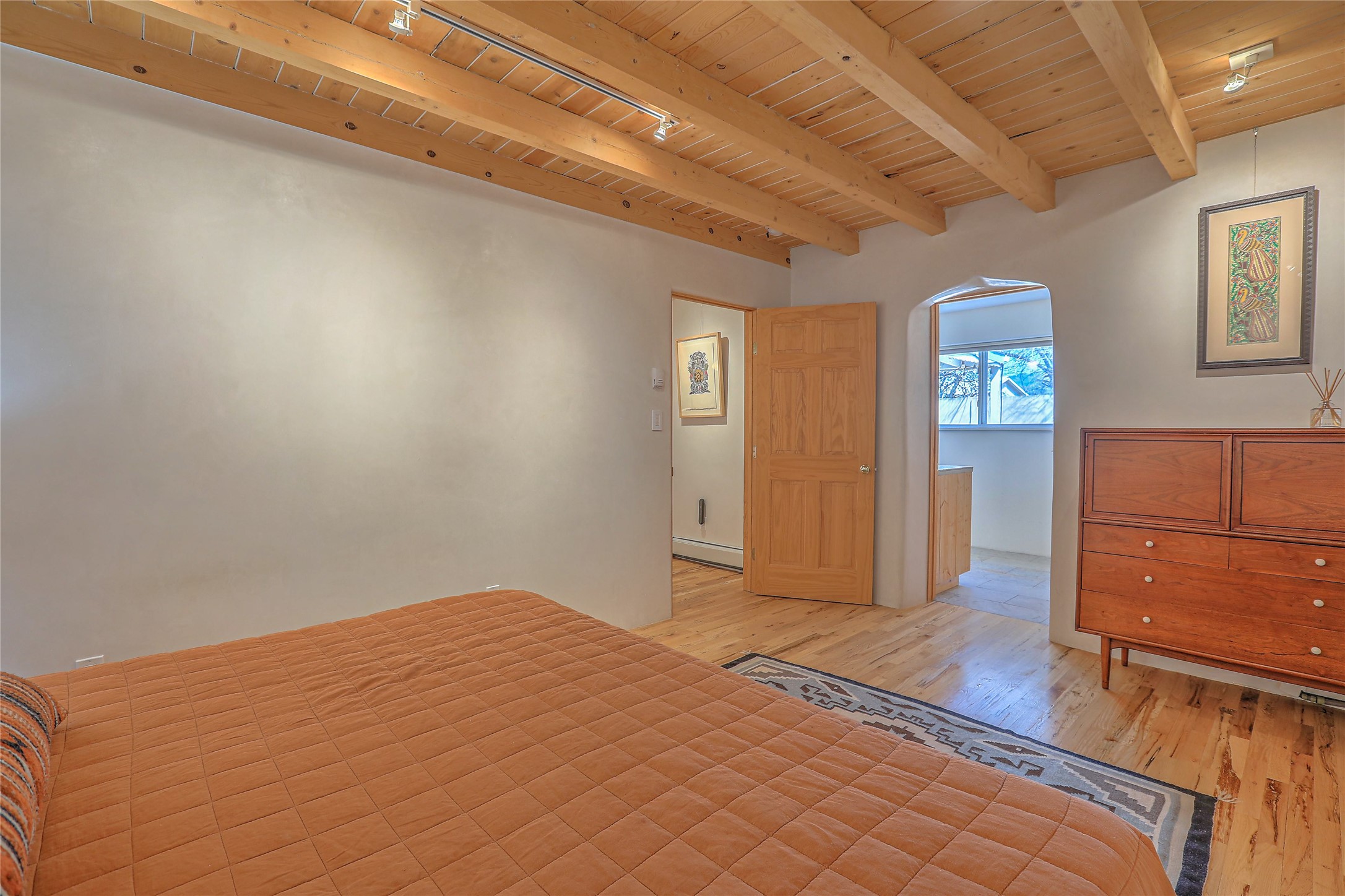 Welcome to your dream retreat in the charming St. Anne's Neighborhood! This beautifully remodeled home is nestled amidst the artistic spirit of Santa Fe, close to the Baca Art District and bustling Railyard. Step inside to discover a delightful blend of historic Santa Fe charm and modern flair, featuring stunning wood ceilings, decorative Spanish nichos, and an open concept kitchen that flows into the living room. Enjoy the abundance of natural light from skylights and relax in the finished basement or the serene walled backyard. The covered porch sets the stage for outdoor gatherings, making this home perfect for entertaining or simply unwinding in your own tranquil escape.