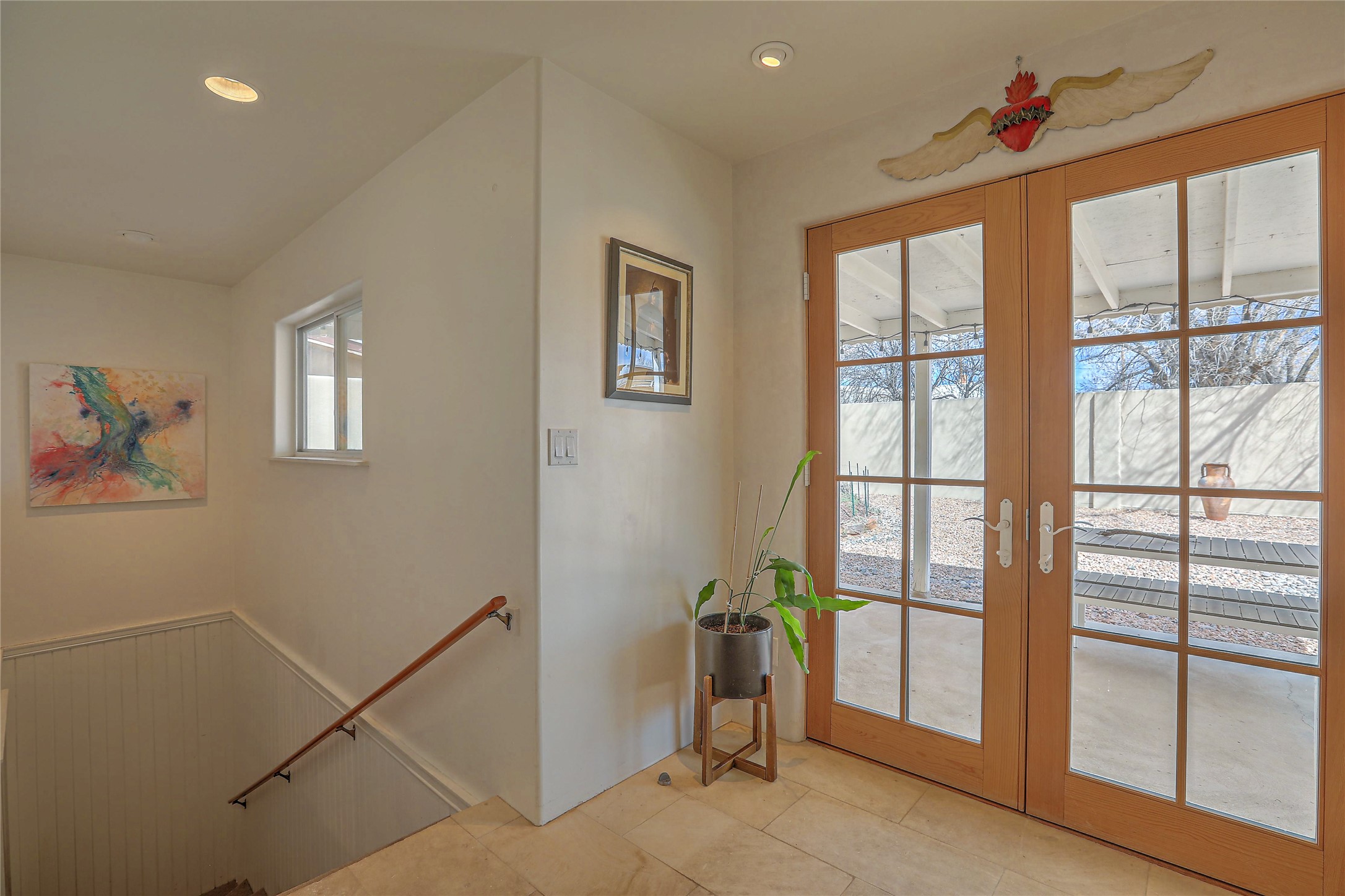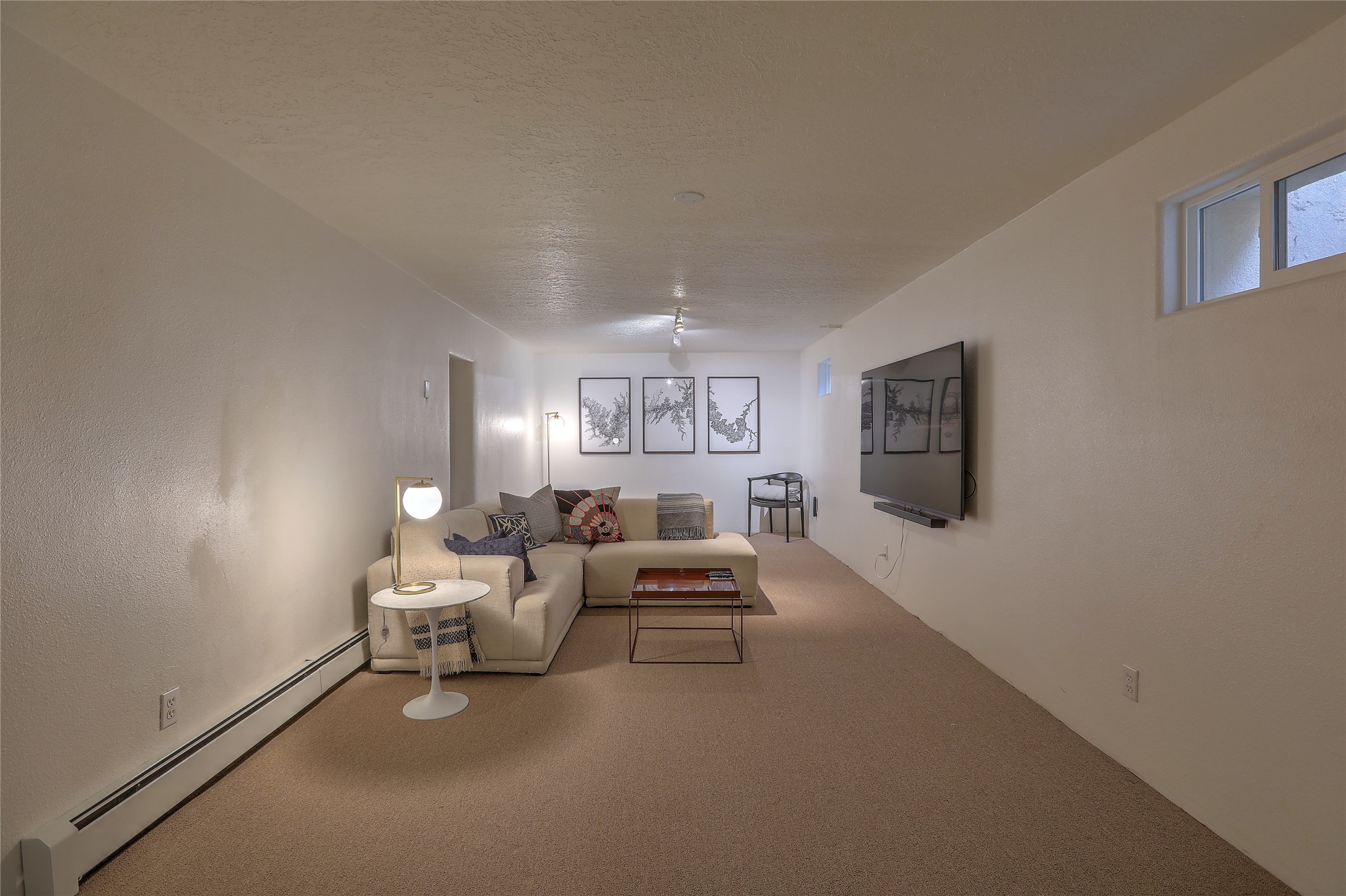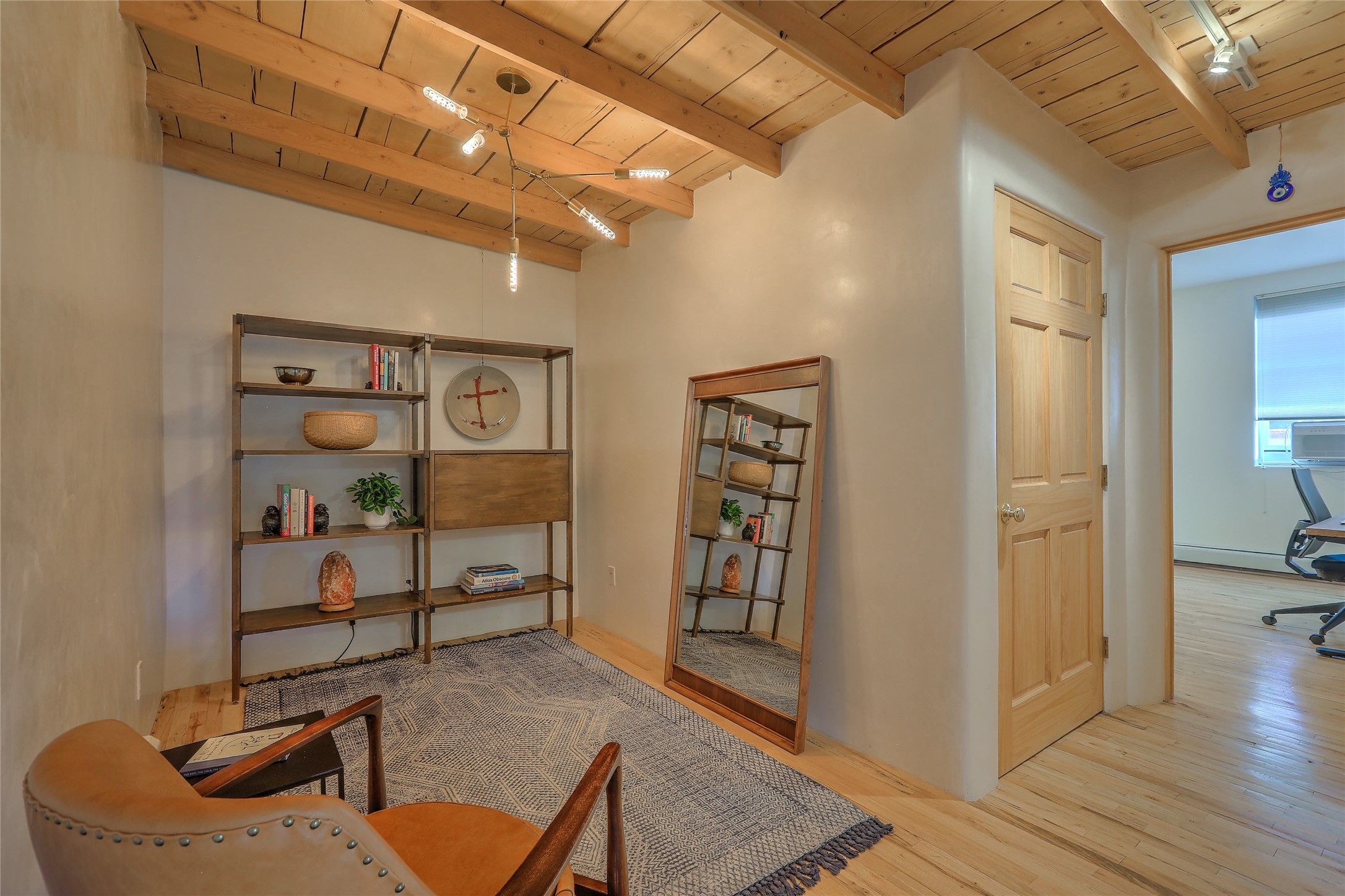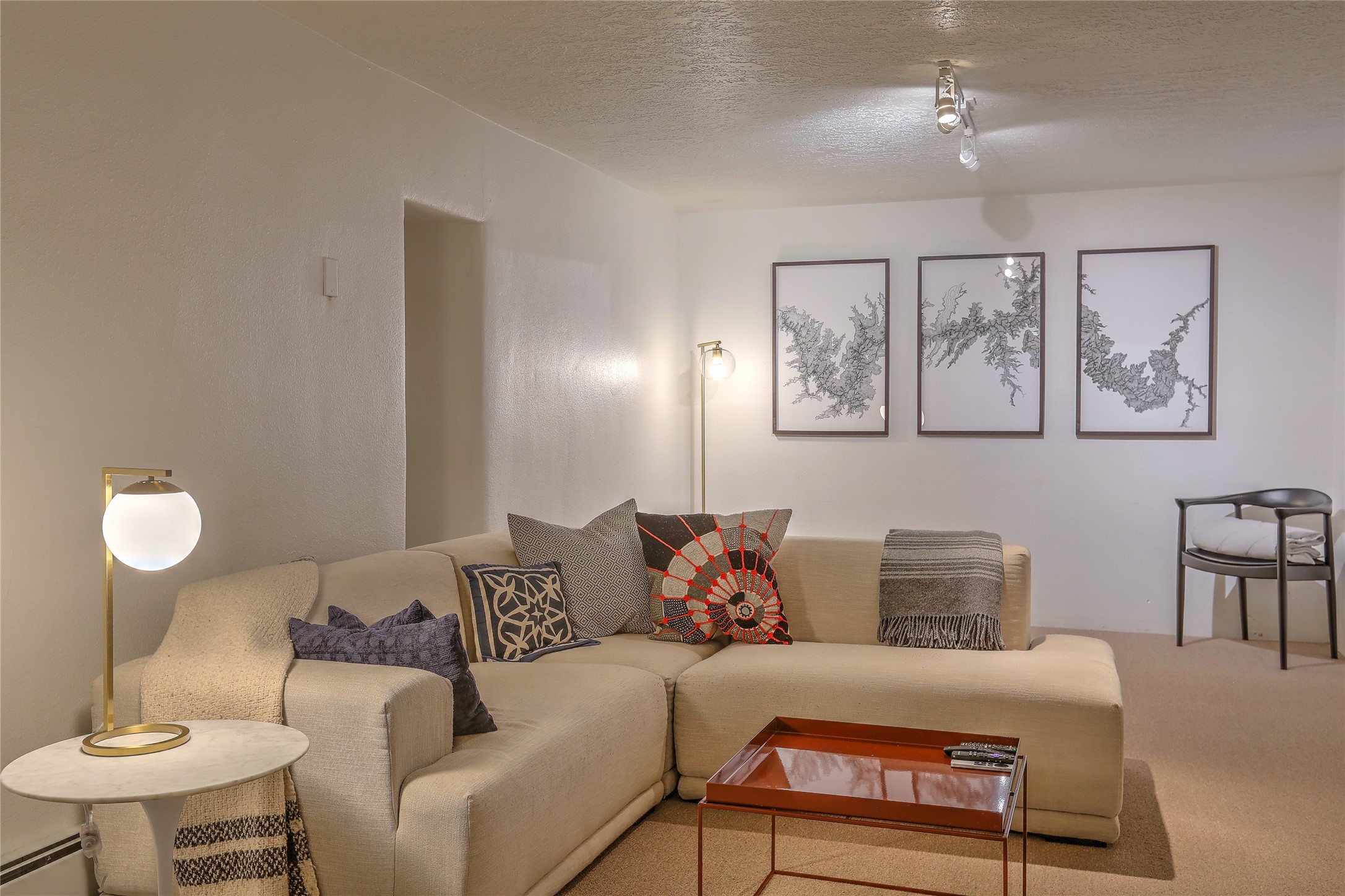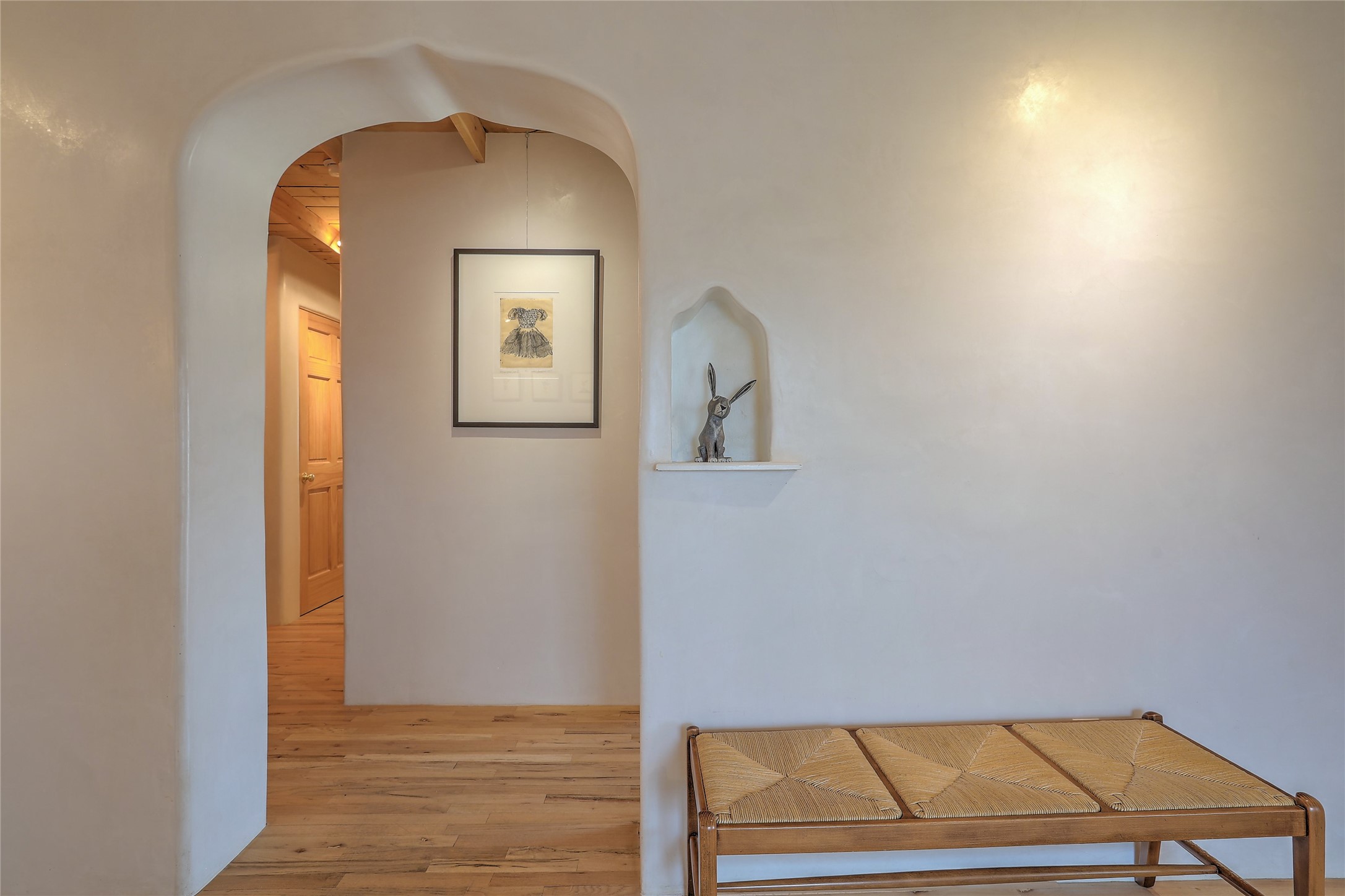 Welcome to your dream retreat in the charming St. Anne's Neighborhood! This beautifully remodeled home is nestled amidst the artistic spirit of Santa Fe, close to the Baca Art District and bustling Railyard. Step inside to discover a delightful blend of historic Santa Fe charm and modern flair, featuring stunning wood ceilings, decorative Spanish nichos, and an open concept kitchen that flows into the living room. Enjoy the abundance of natural light from skylights and relax in the finished basement or the serene walled backyard. The covered porch sets the stage for outdoor gatherings, making this home perfect for entertaining or simply unwinding in your own tranquil escape.