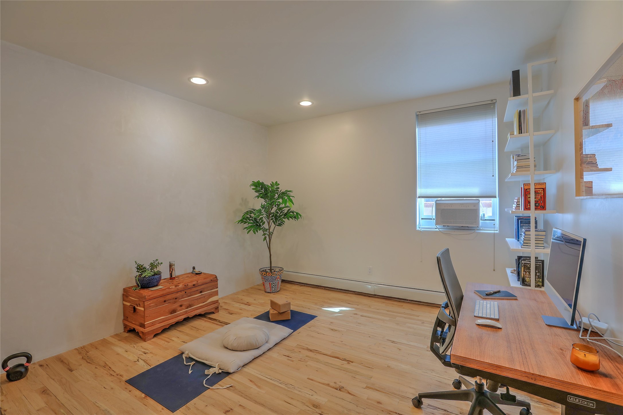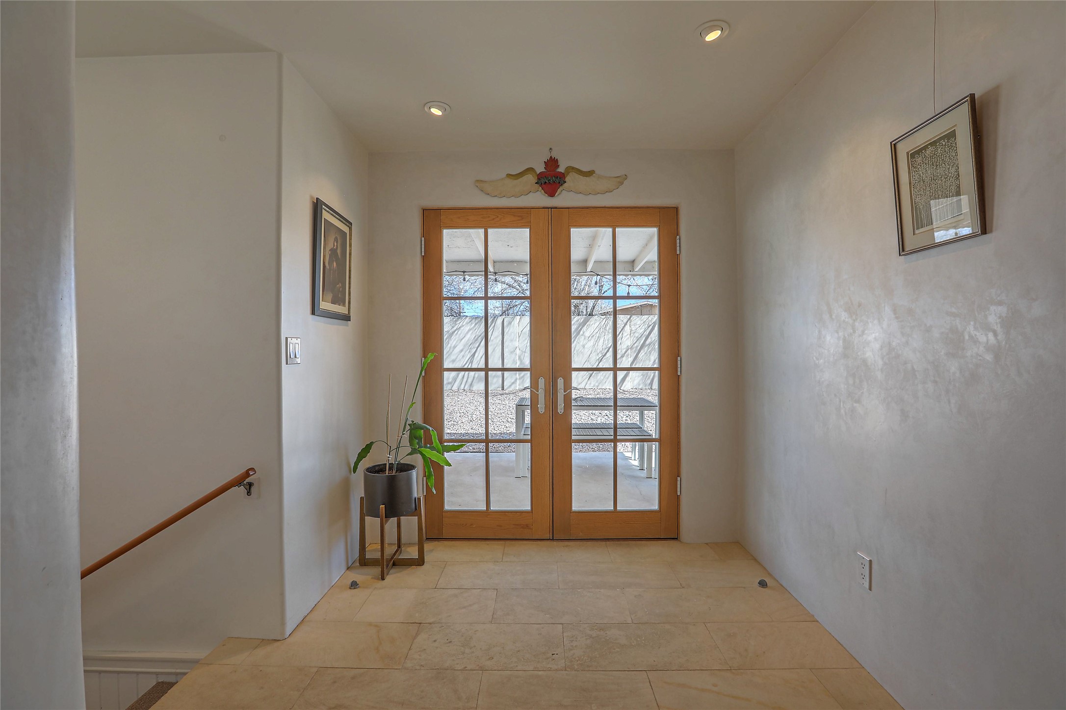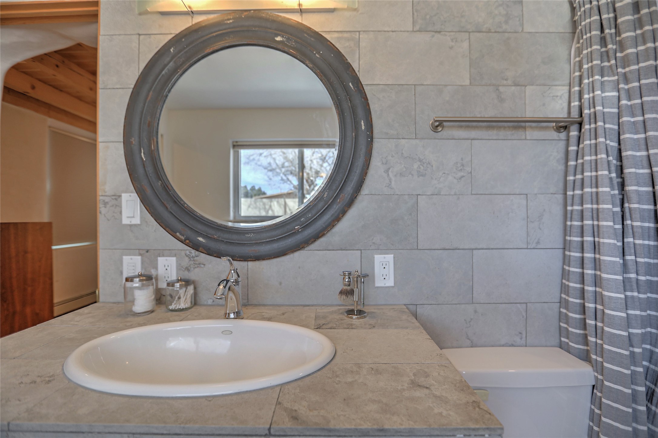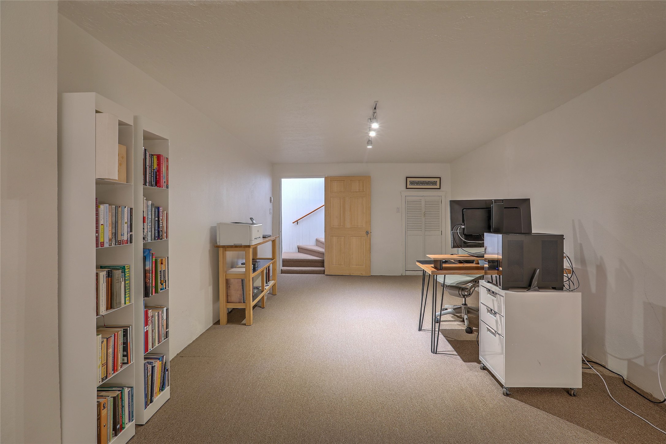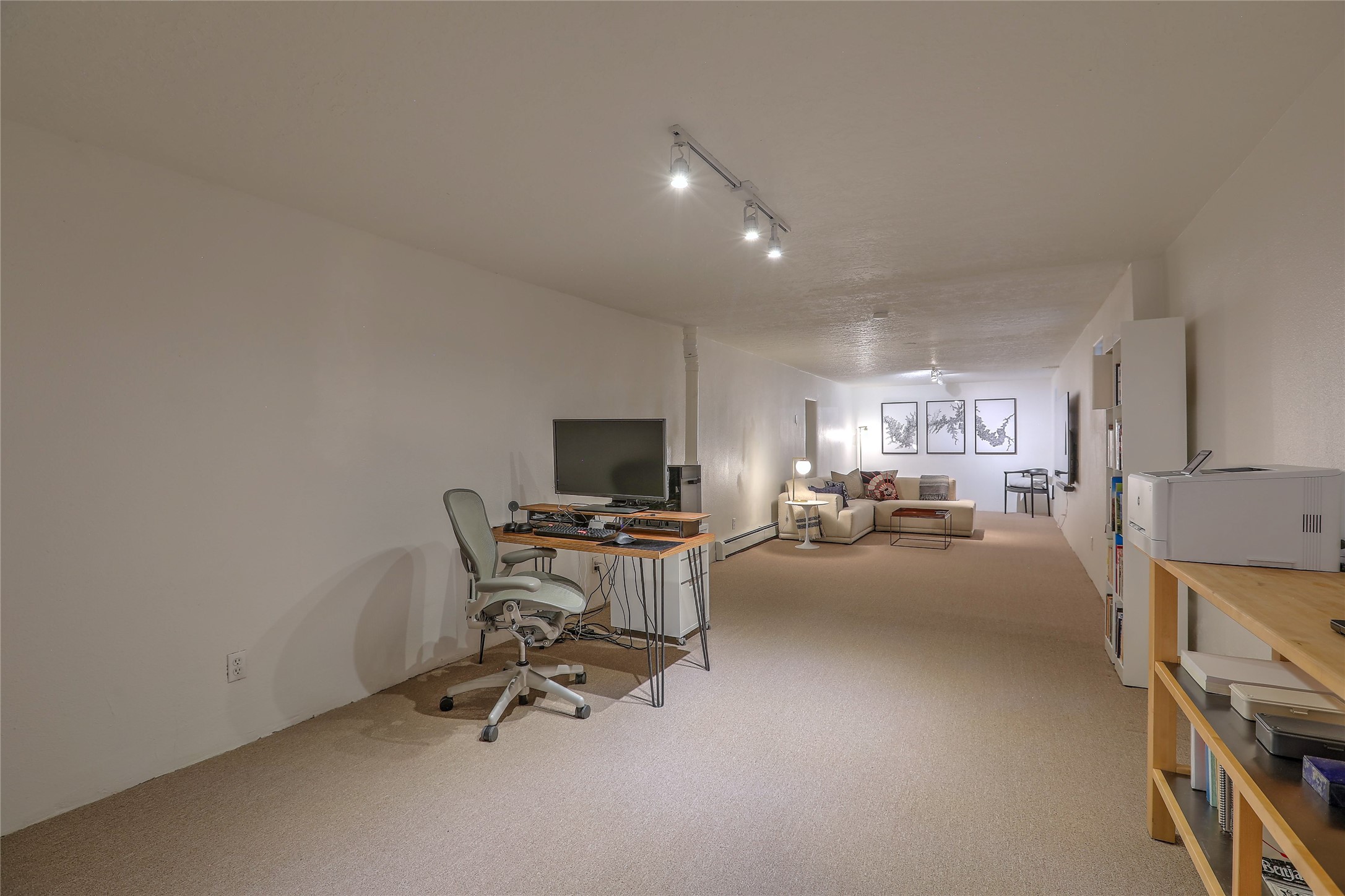 Welcome to your dream retreat in the charming St. Anne's Neighborhood! This beautifully remodeled home is nestled amidst the artistic spirit of Santa Fe, close to the Baca Art District and bustling Railyard. Step inside to discover a delightful blend of historic Santa Fe charm and modern flair, featuring stunning wood ceilings, decorative Spanish nichos, and an open concept kitchen that flows into the living room. Enjoy the abundance of natural light from skylights and relax in the finished basement or the serene walled backyard. The covered porch sets the stage for outdoor gatherings, making this home perfect for entertaining or simply unwinding in your own tranquil escape.