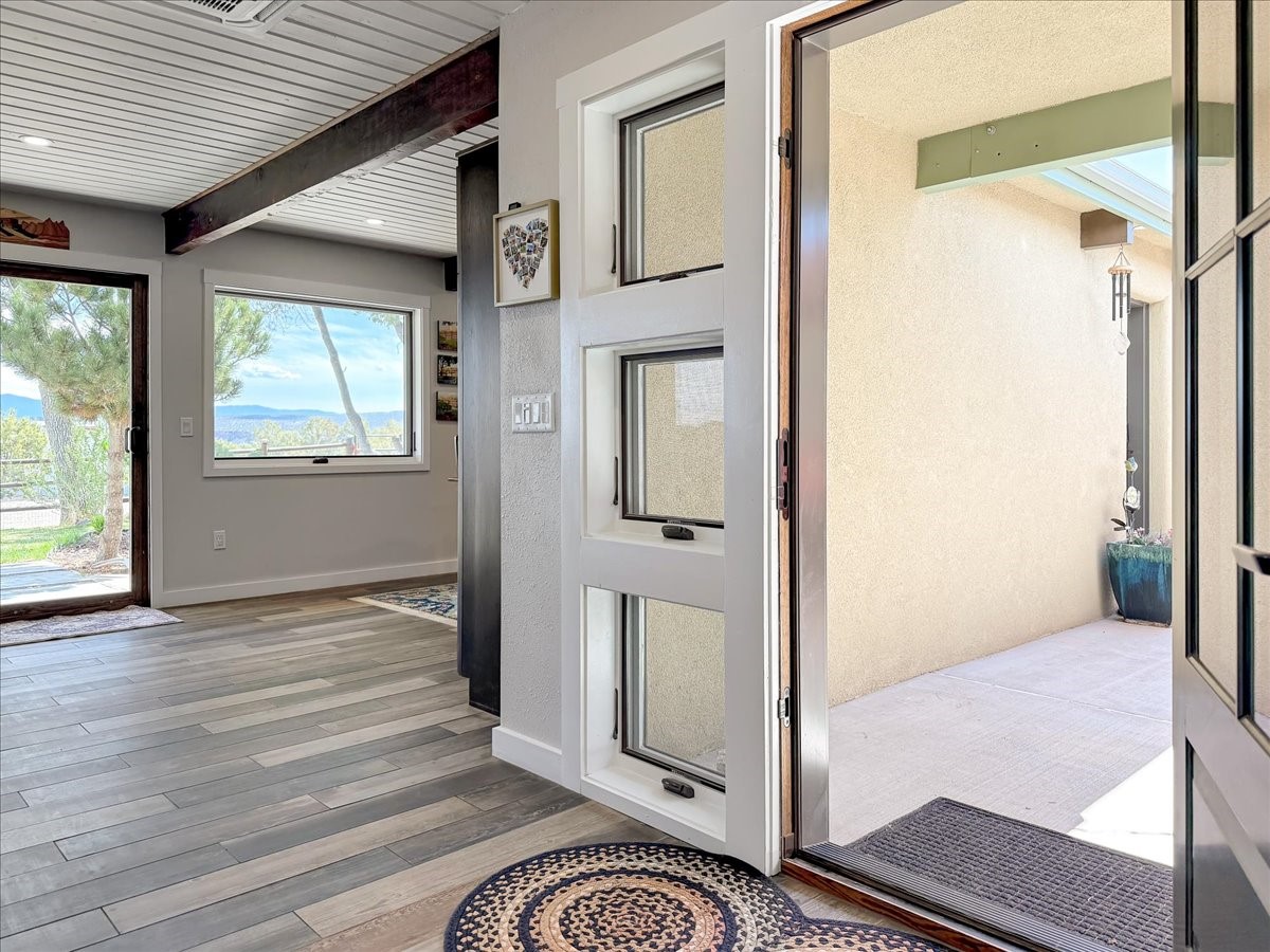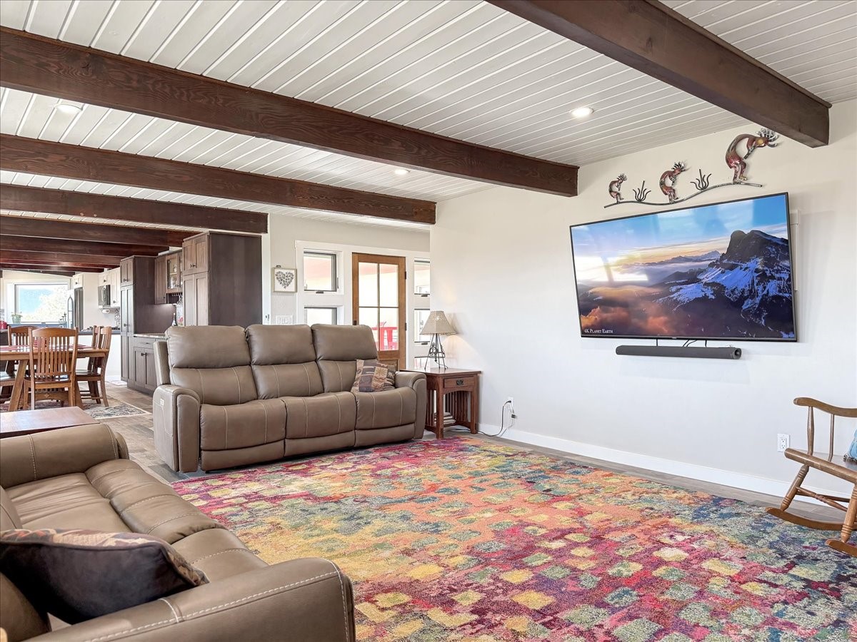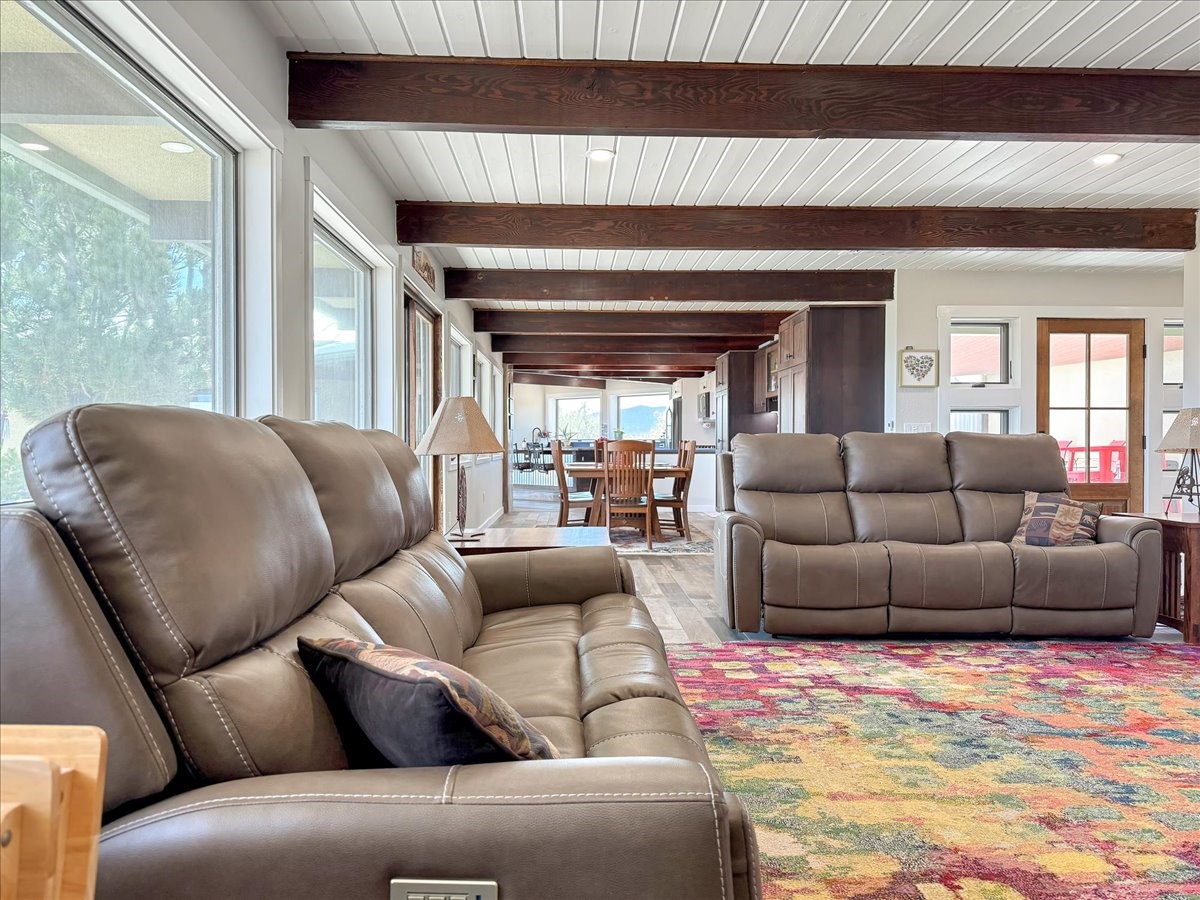 Stunning Cliffside Retreat on just under 3.5 Acres | Fully Remodeled 3BD/2BA Home. Experience serene living in this beautifully remodeled home perched on just under 3.5 acres of breathtaking cliffside property. Featuring approximately 2,000 sq ft of open-concept living, this 3-bedroom, 2-bathroom home offers a harmonious blend of rustic charm and modern luxury. Every detail has been updated: new plumbing, HVAC, electrical, roof, windows, doors, and flooring. Custom barnwood accents, reclaimed from the property, add warmth and character. Wall-to-wall windows capture expansive canyon views and natural light, creating a peaceful, light-filled atmosphere. The thoughtfully designed layout features two bedrooms with a shared full bath (jet tub), while the spacious primary suite includes a luxurious en suite. Enjoy radiant heated floors in both bathrooms, efficient mini-split climate control throughout, a recently serviced Lopi wood stove, and on-demand hot water. The gourmet kitchen includes DeWillis soft-close cabinetry, granite and Corian countertops, abundant storage, and a wine and beer fridge--ideal for entertaining. Additional Features include, Brand-new oversized 2-car garage with blown insulation, Heated outdoor shop with horse stalls - perfect for animal lovers, artists, or hobbyists, Updated electrical in barn, Trek deck with unobstructed views. Enjoy privacy, comfort, and versatile space for living, working, or hosting. This unique property is truly turn-key and move-in ready. Schedule your private showing today!