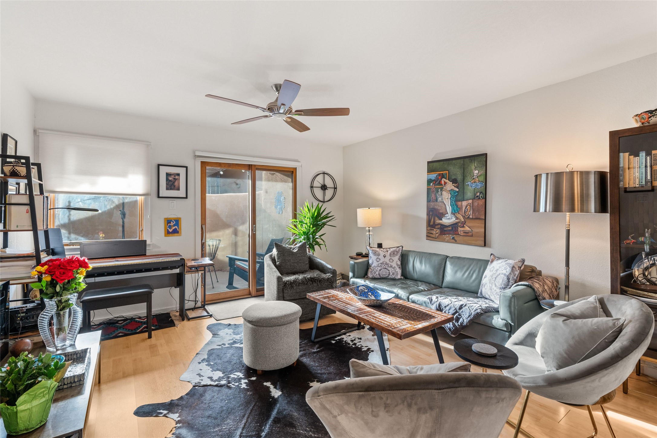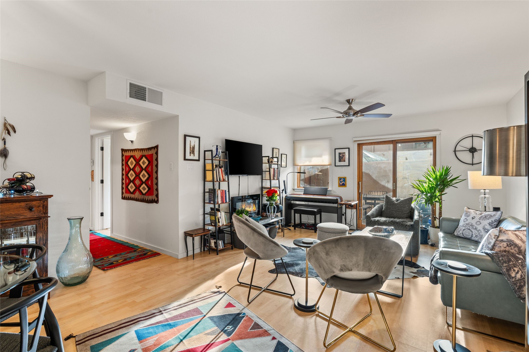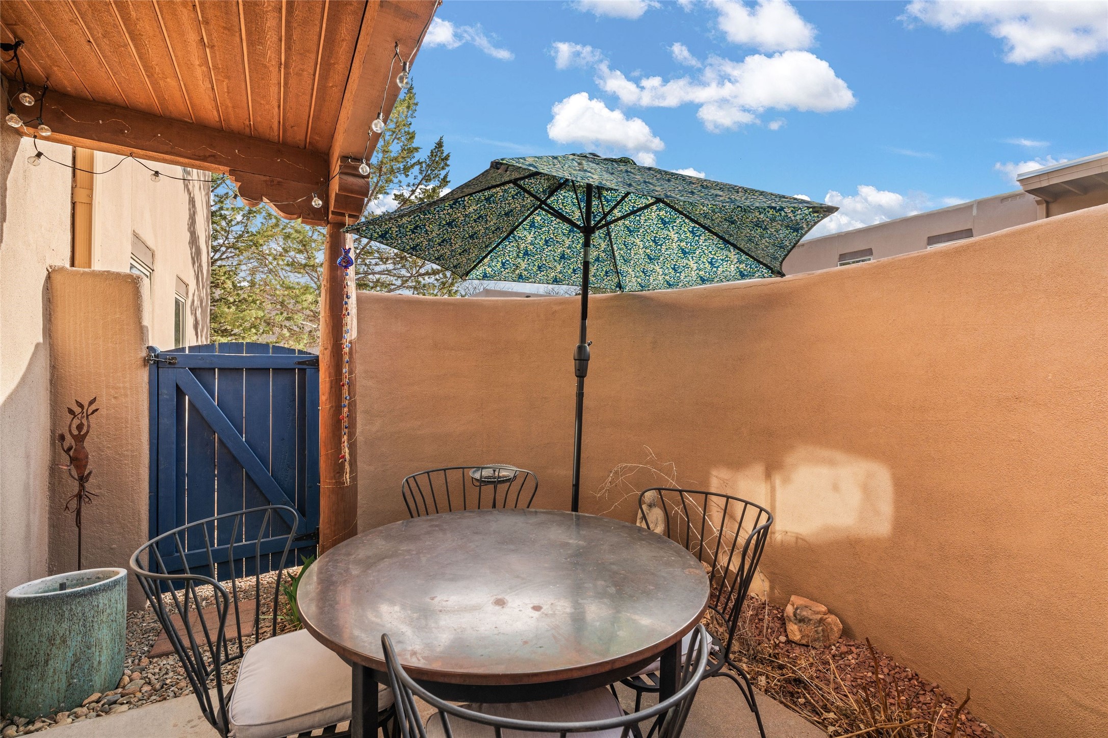 Nestled in the heart of Santa Fe, this charming 2 bedroom, 2 bathroom condo offers a tranquil retreat in an idyllic location. The midtown location is is in close proximity to many local favorite restaurants. The tastefully updated interior exudes a sense of peace and serenity from the moment you step inside with wood floors, granite countertops and stainless steel appliances. Situated on the first floor, this condo provides easy access and convenience. On the quiet side of the compound and not far from the pool and workout facility, you can enjoy leisurely swims and sun-soaked afternoon. The serene private patio offers a quiet sanctuary for morning coffee or evening relaxation, while the calming effect of the home welcomes you with open arms. Embrace the harmonious blend of modern comfort and peaceful surroundings in this gated Santa Fe gem compound.