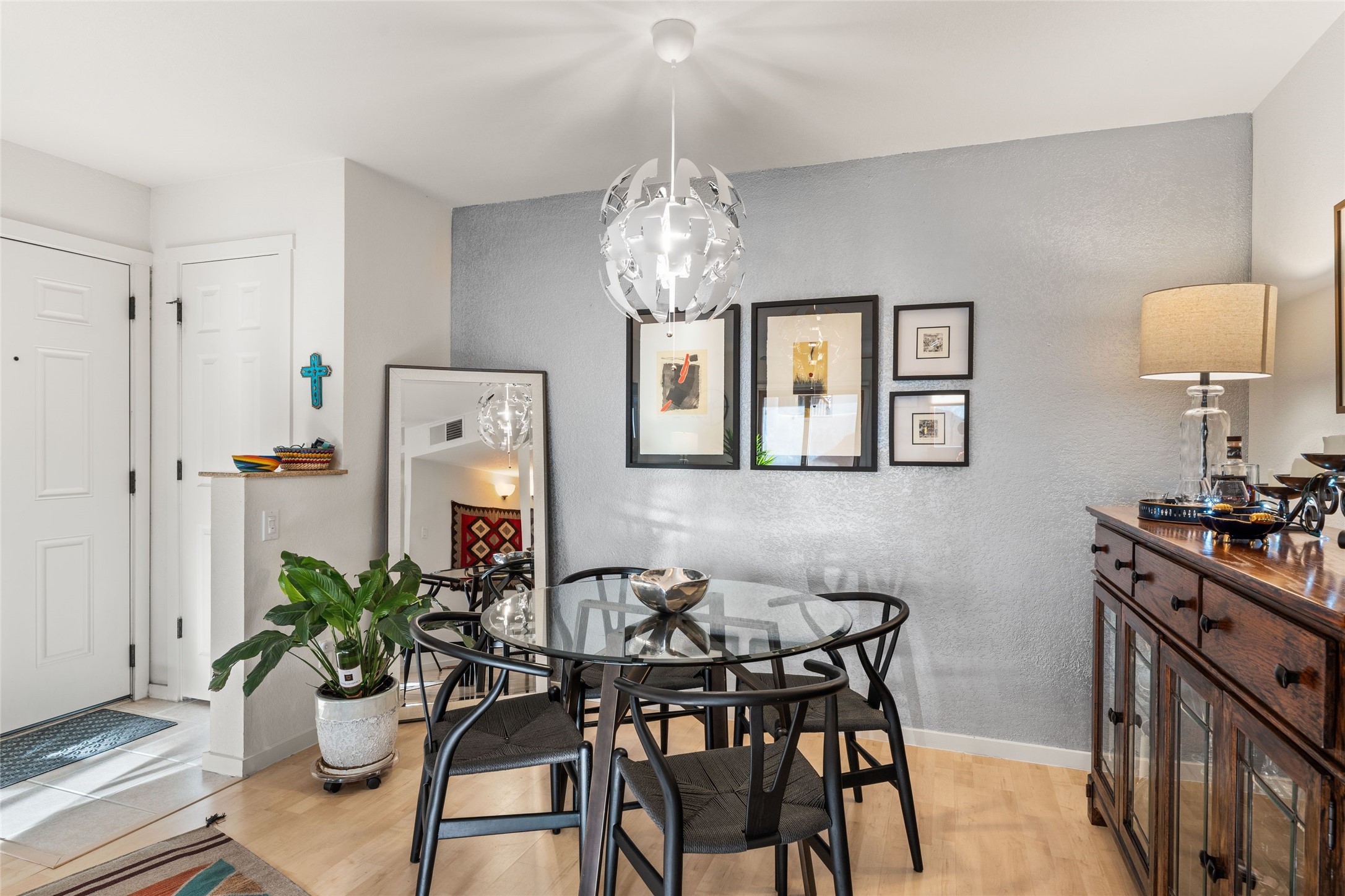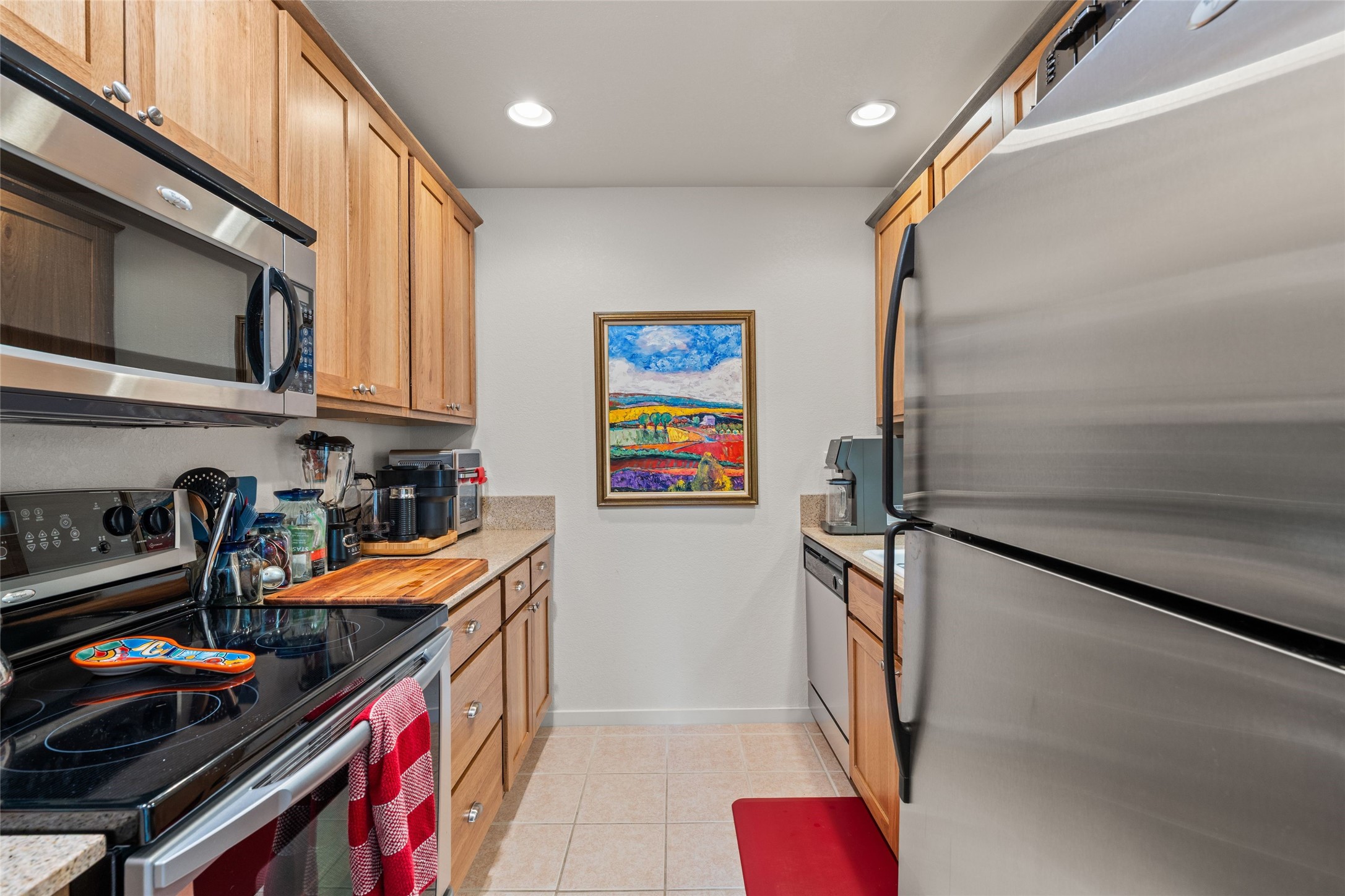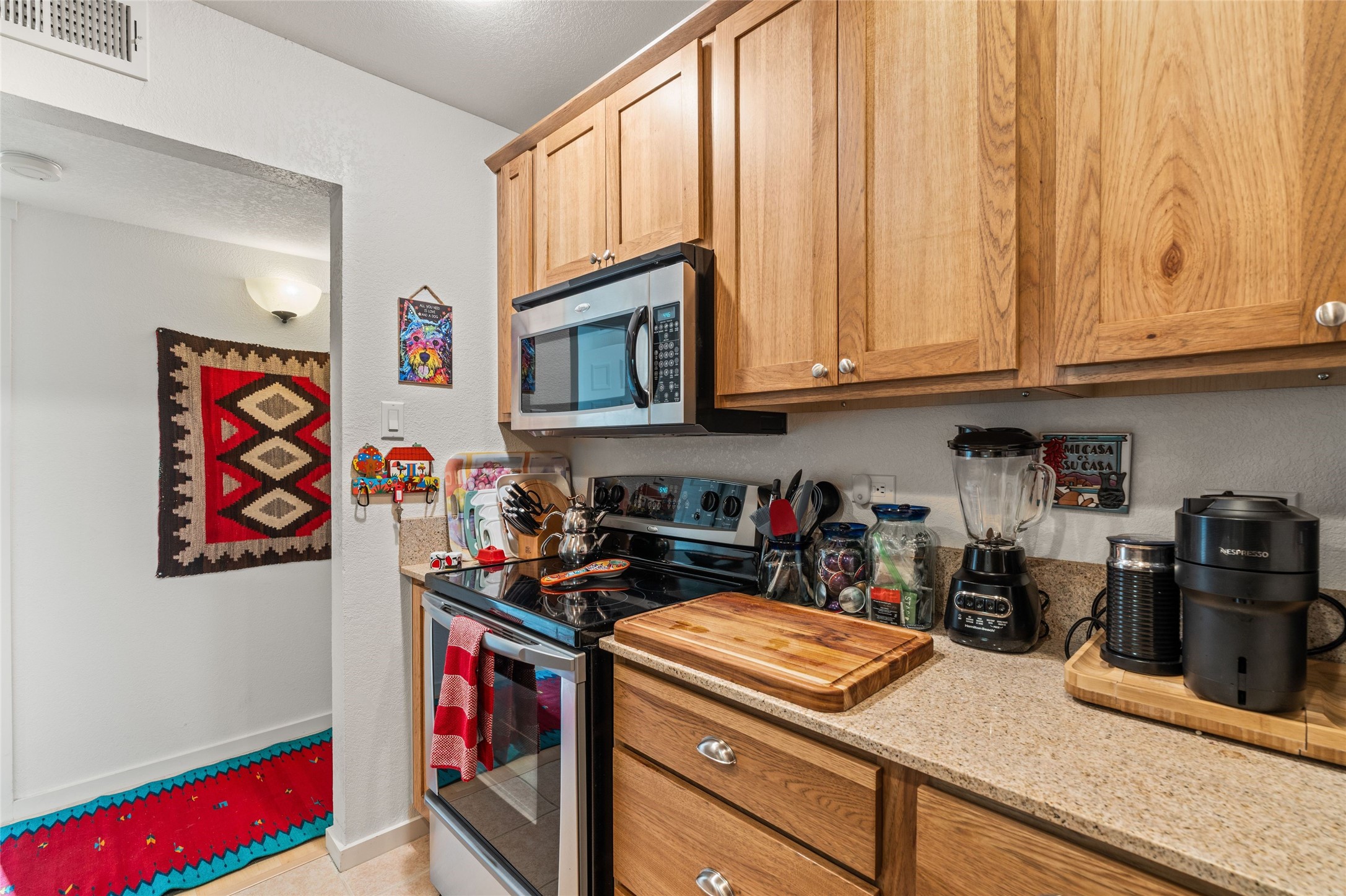 Nestled in the heart of Santa Fe, this charming 2 bedroom, 2 bathroom condo offers a tranquil retreat in an idyllic location. The midtown location is is in close proximity to many local favorite restaurants. The tastefully updated interior exudes a sense of peace and serenity from the moment you step inside with wood floors, granite countertops and stainless steel appliances. Situated on the first floor, this condo provides easy access and convenience. On the quiet side of the compound and not far from the pool and workout facility, you can enjoy leisurely swims and sun-soaked afternoon. The serene private patio offers a quiet sanctuary for morning coffee or evening relaxation, while the calming effect of the home welcomes you with open arms. Embrace the harmonious blend of modern comfort and peaceful surroundings in this gated Santa Fe gem compound.