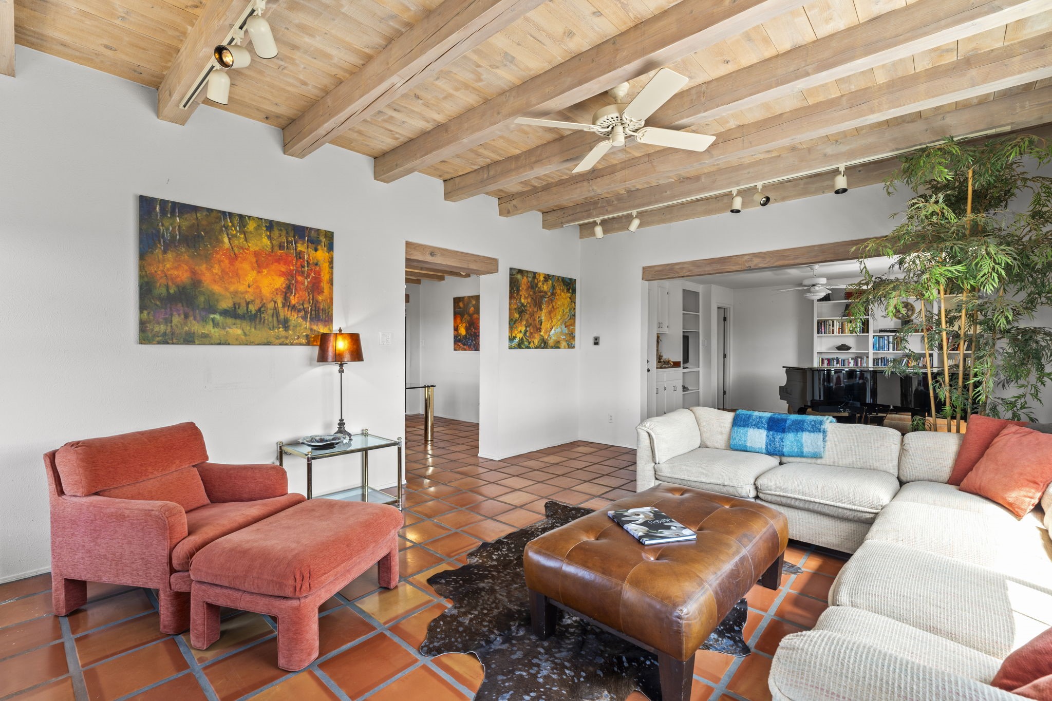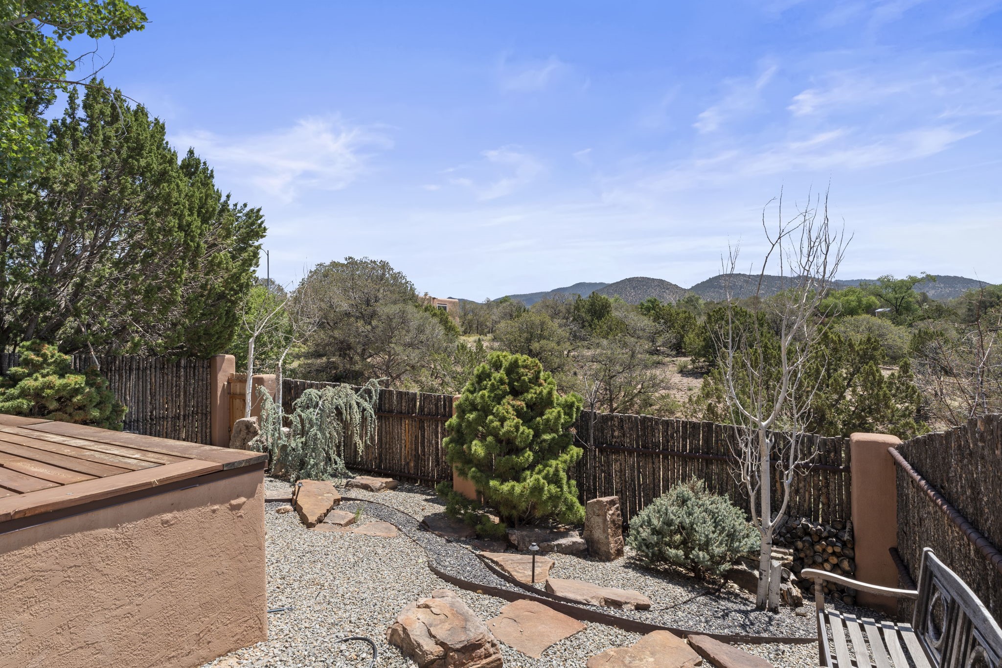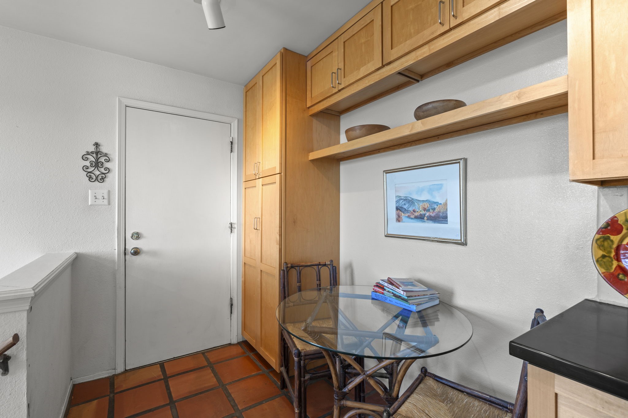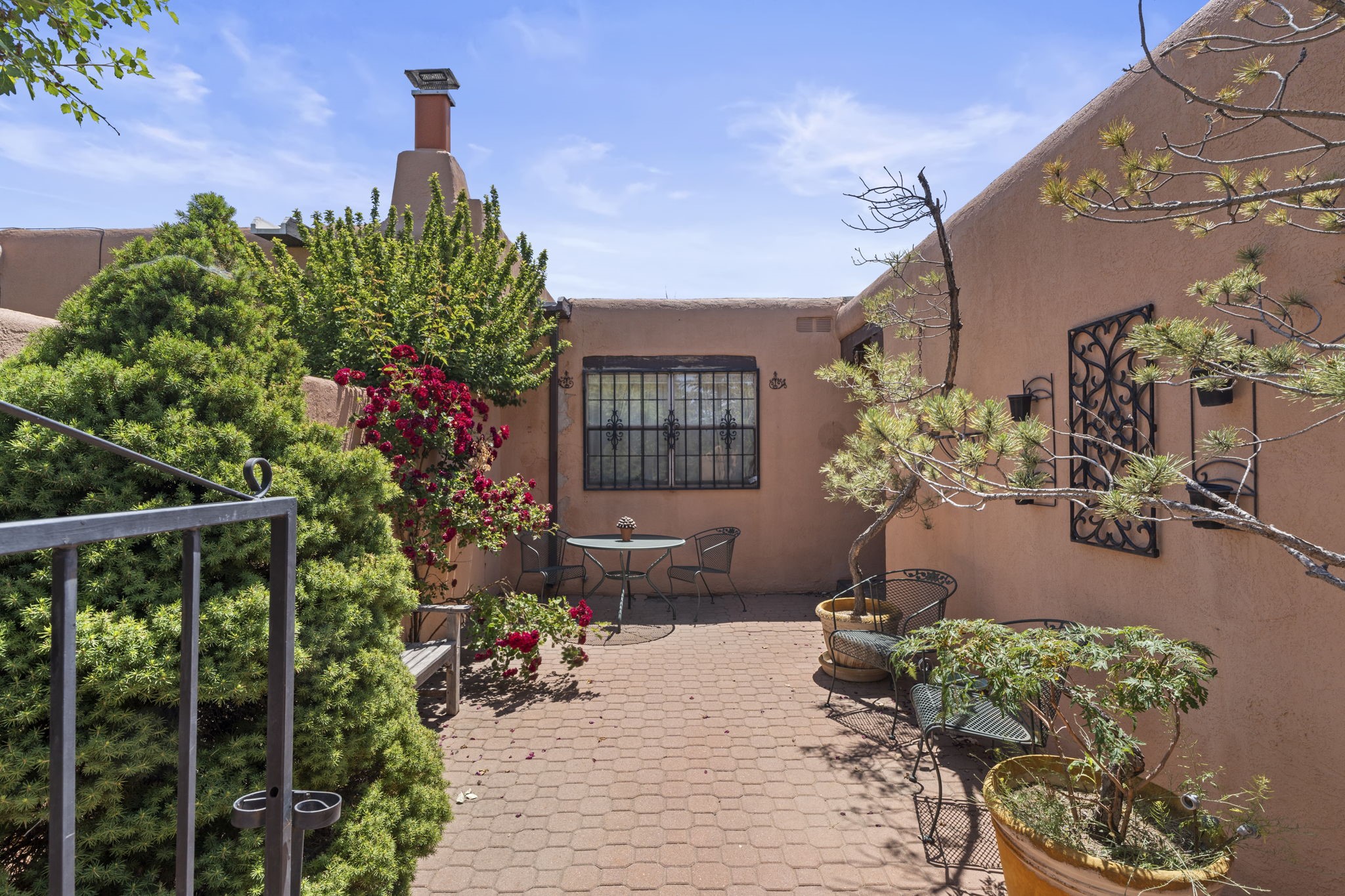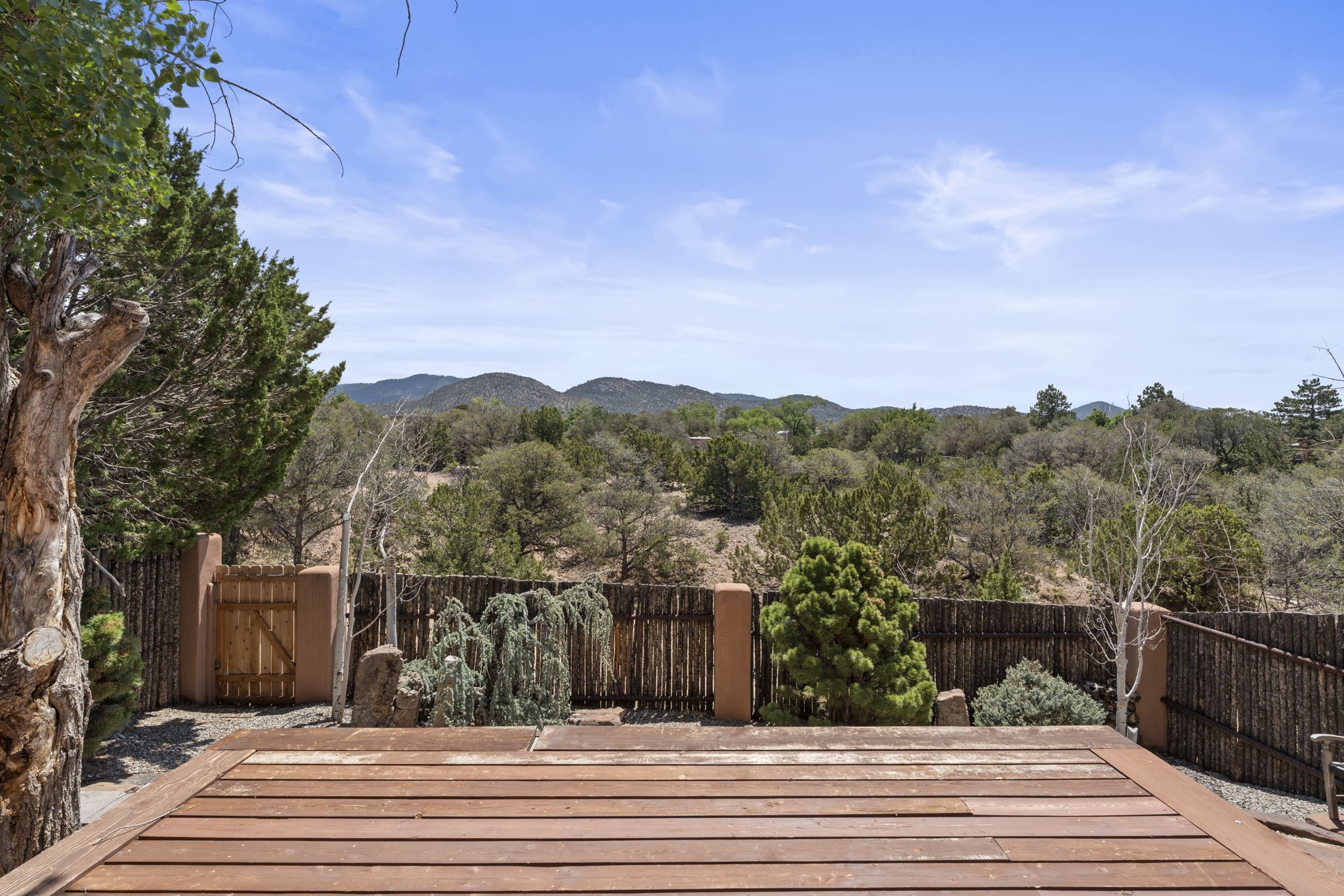 Spacious end-unit townhome with mountain views & exceptional layout. Tucked away at the end of a quiet cul-de-sac, this expansive end-unit townhome offers rare privacy, mountain views to the east and south, and one of the most spacious floorplans in the community. With four bedrooms, multiple living areas, and flexible spaces, this home is ideal for those seeking space, comfort and versatility.Enter through a charming walled courtyard into a warm, light-filled interior. The main floor features a generous living room and a formal dining area that opens to an airy balcony. The galley-style kitchen has countertops, a breakfast nook, and ample cabinetry. Also on the main level is a private en-suite bedroom, along with an open den area with built-in bookshelves and adjacent bath.The lower level offers even more possibilities, with additional bedrooms, a full bath, and a second den/office space featuring a traditional kiva fireplace and direct access to a private deck.Centrally located near downtown, medical care, museums, and shopping, this home seamlessly blends tranquility with accessibility.