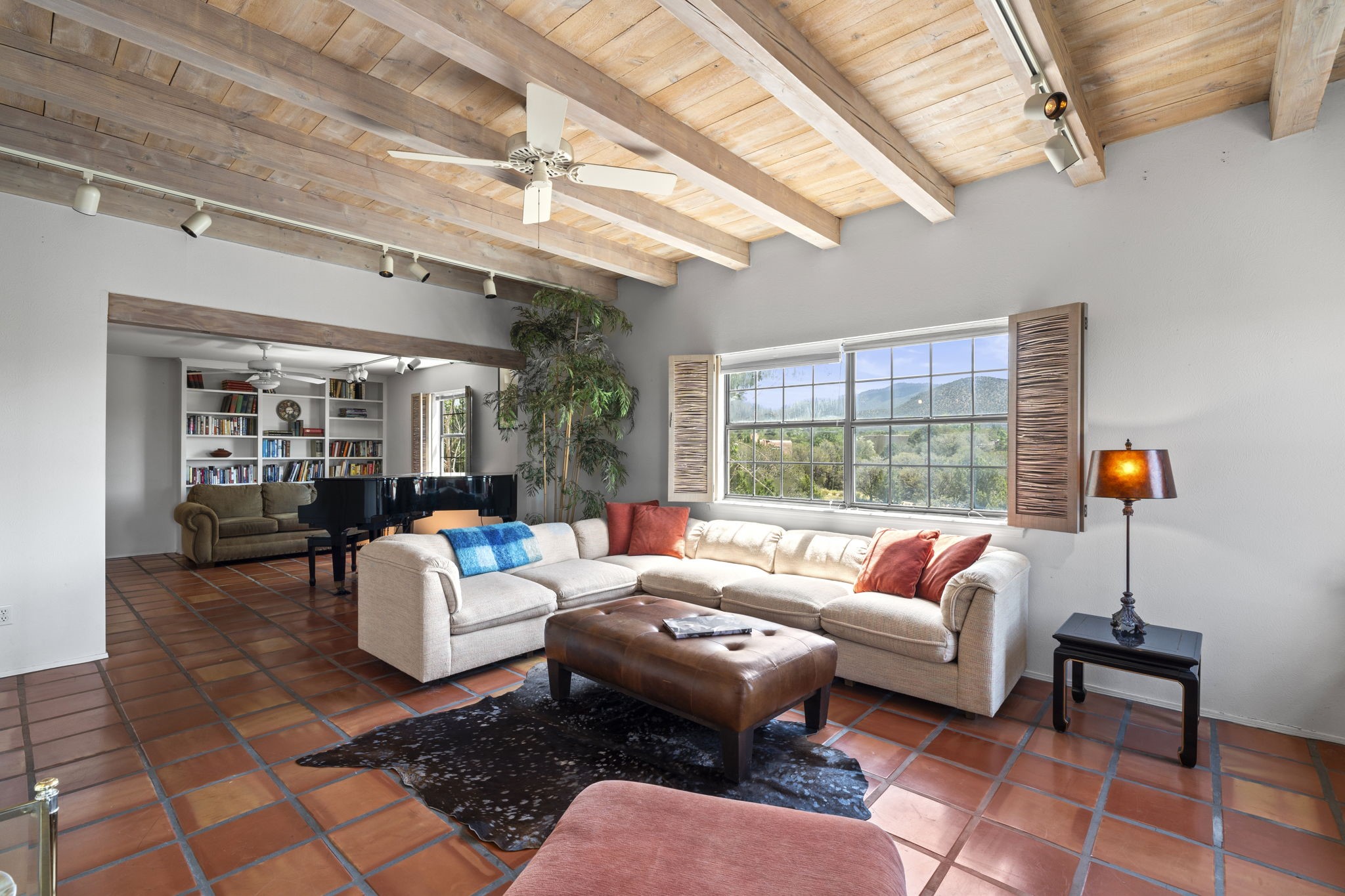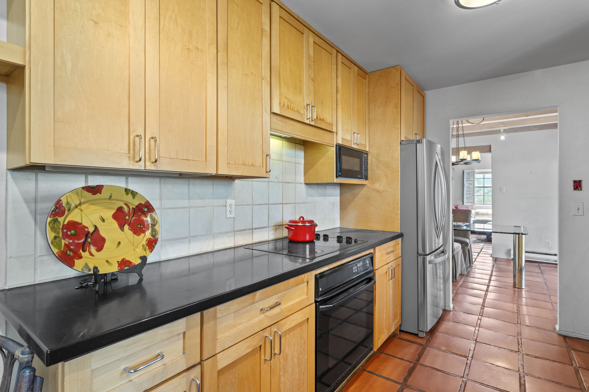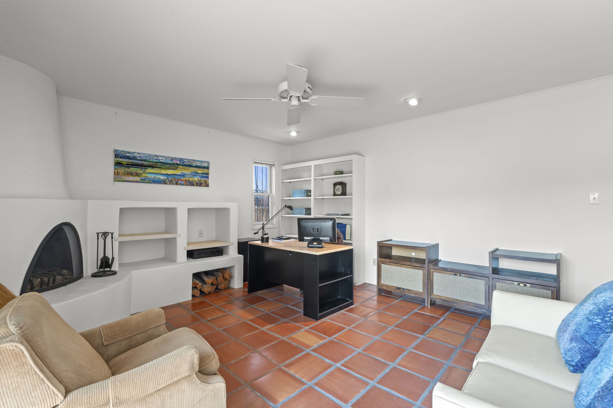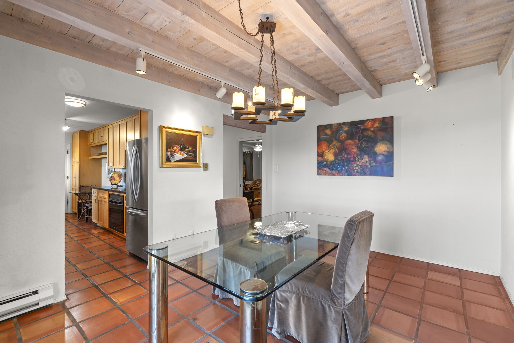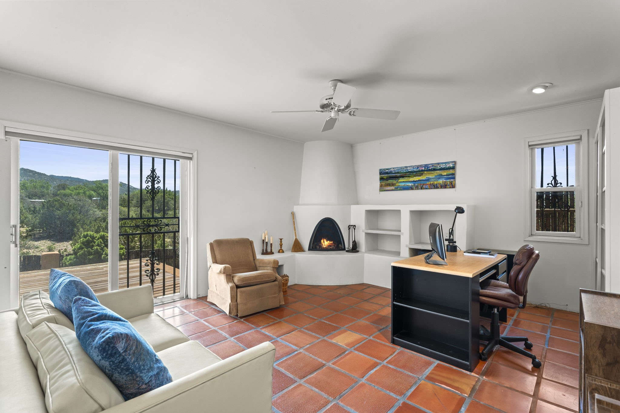 Spacious end-unit townhome with mountain views & exceptional layout. Tucked away at the end of a quiet cul-de-sac, this expansive end-unit townhome offers rare privacy, mountain views to the east and south, and one of the most spacious floorplans in the community. With four bedrooms, multiple living areas, and flexible spaces, this home is ideal for those seeking space, comfort and versatility.Enter through a charming walled courtyard into a warm, light-filled interior. The main floor features a generous living room and a formal dining area that opens to an airy balcony. The galley-style kitchen has countertops, a breakfast nook, and ample cabinetry. Also on the main level is a private en-suite bedroom, along with an open den area with built-in bookshelves and adjacent bath.The lower level offers even more possibilities, with additional bedrooms, a full bath, and a second den/office space featuring a traditional kiva fireplace and direct access to a private deck.Centrally located near downtown, medical care, museums, and shopping, this home seamlessly blends tranquility with accessibility.