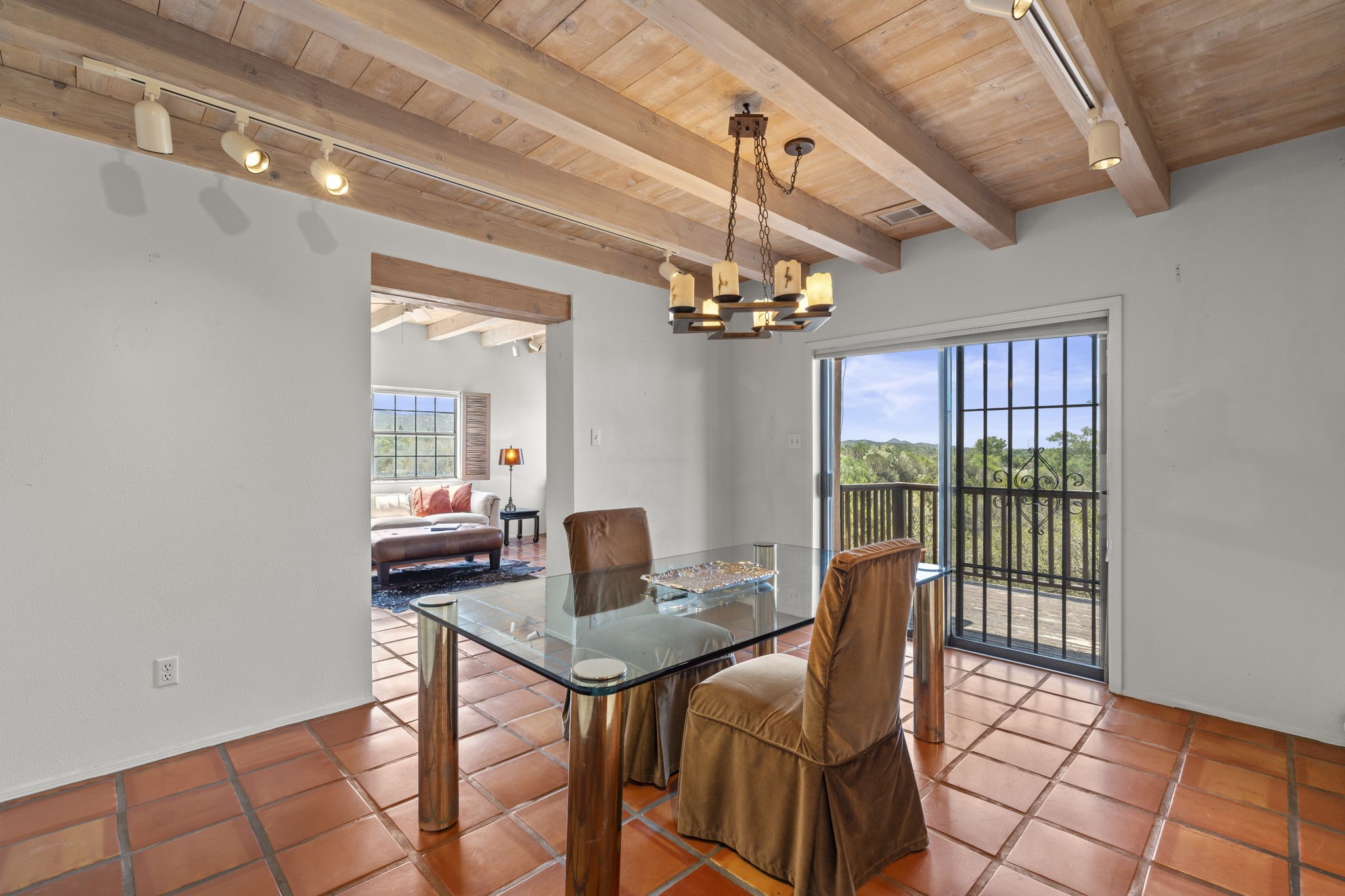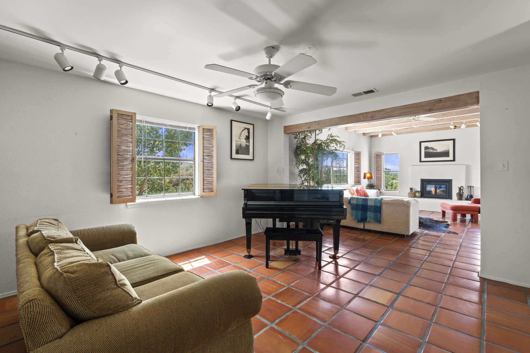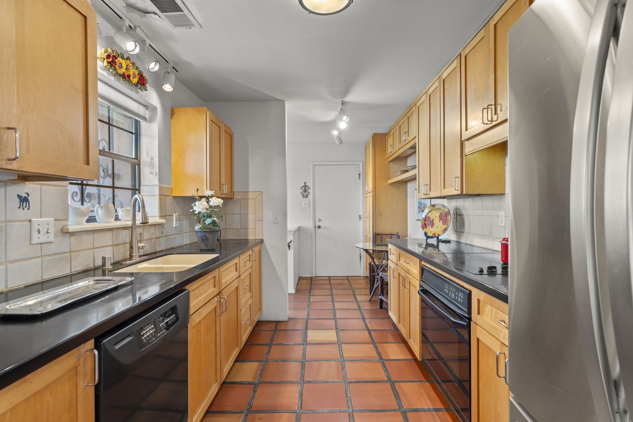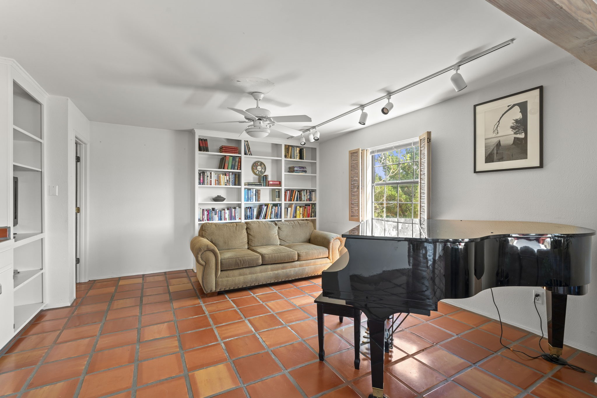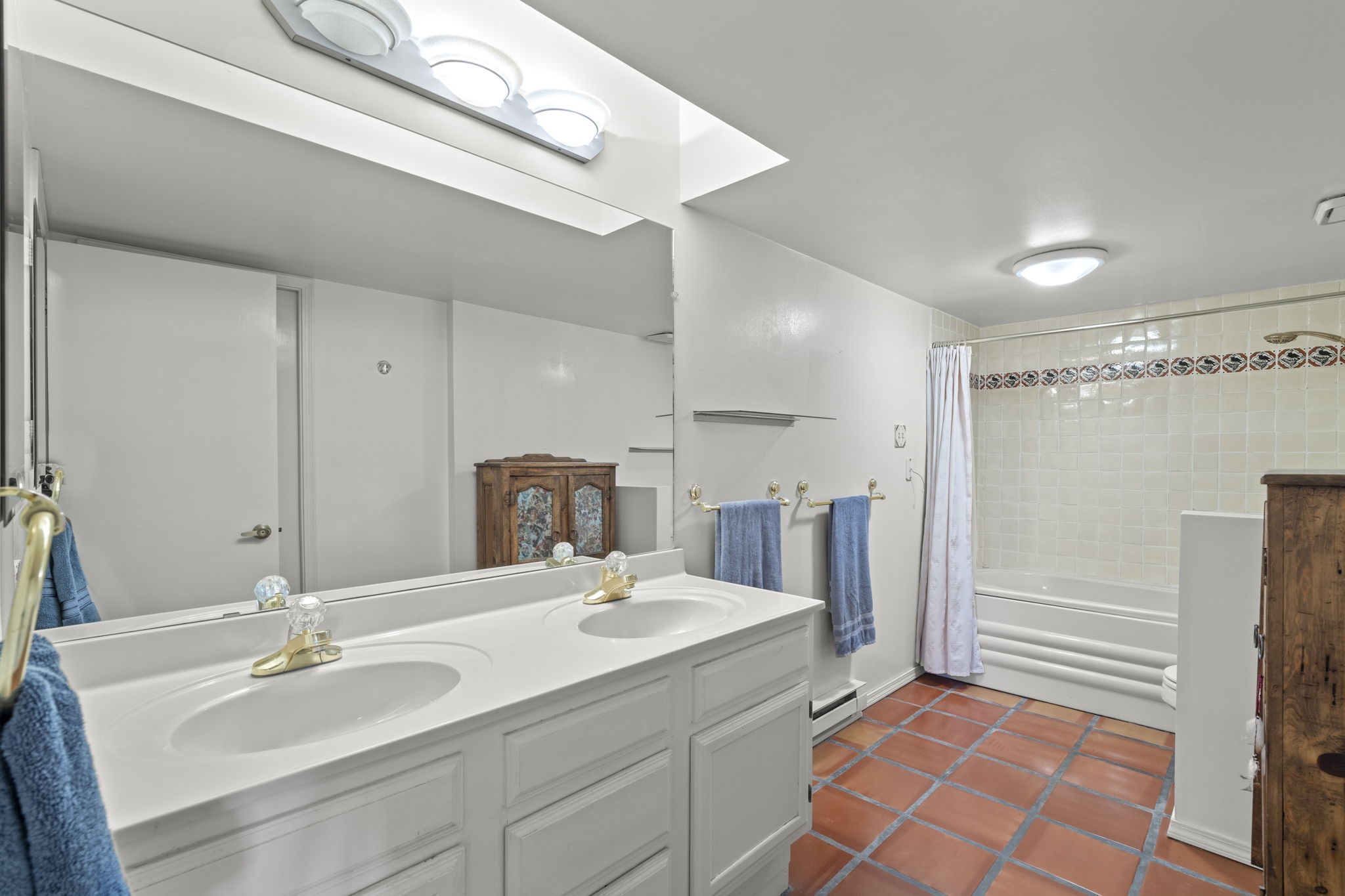 Spacious end-unit townhome with mountain views & exceptional layout. Tucked away at the end of a quiet cul-de-sac, this expansive end-unit townhome offers rare privacy, mountain views to the east and south, and one of the most spacious floorplans in the community. With four bedrooms, multiple living areas, and flexible spaces, this home is ideal for those seeking space, comfort and versatility.Enter through a charming walled courtyard into a warm, light-filled interior. The main floor features a generous living room and a formal dining area that opens to an airy balcony. The galley-style kitchen has countertops, a breakfast nook, and ample cabinetry. Also on the main level is a private en-suite bedroom, along with an open den area with built-in bookshelves and adjacent bath.The lower level offers even more possibilities, with additional bedrooms, a full bath, and a second den/office space featuring a traditional kiva fireplace and direct access to a private deck.Centrally located near downtown, medical care, museums, and shopping, this home seamlessly blends tranquility with accessibility.