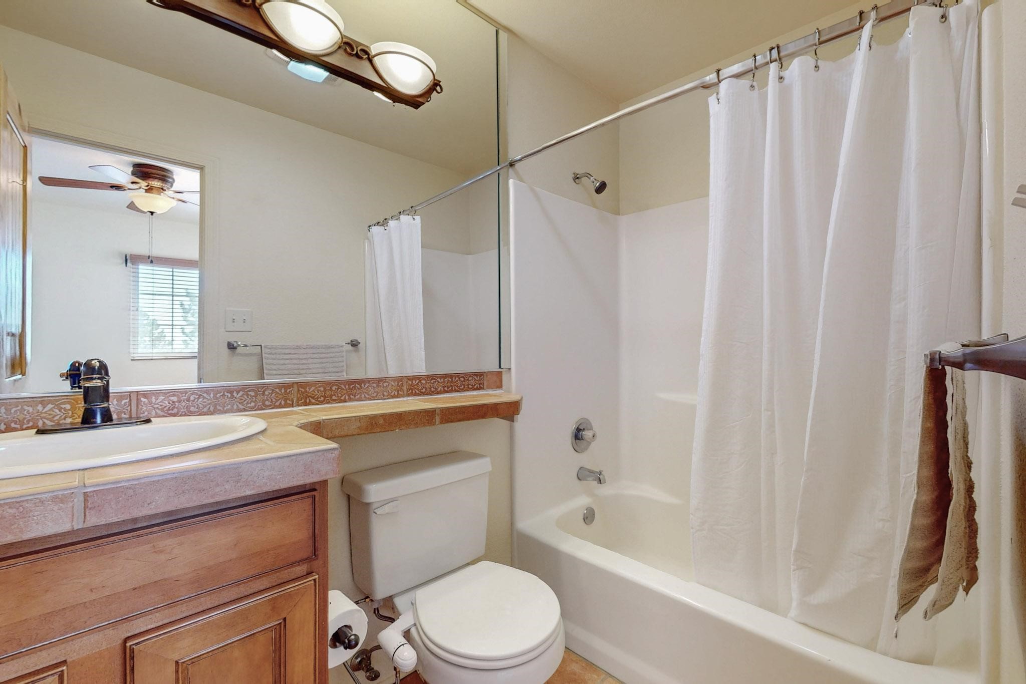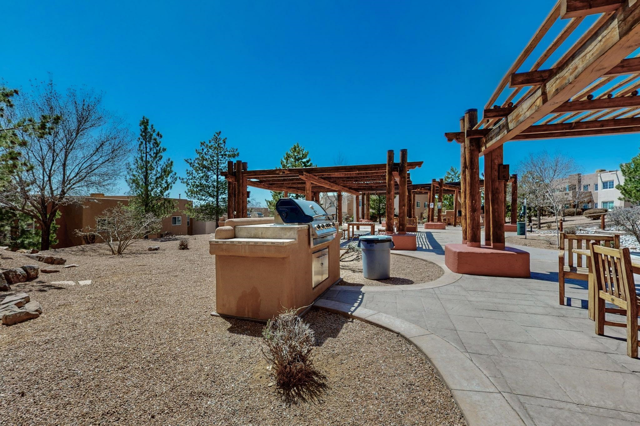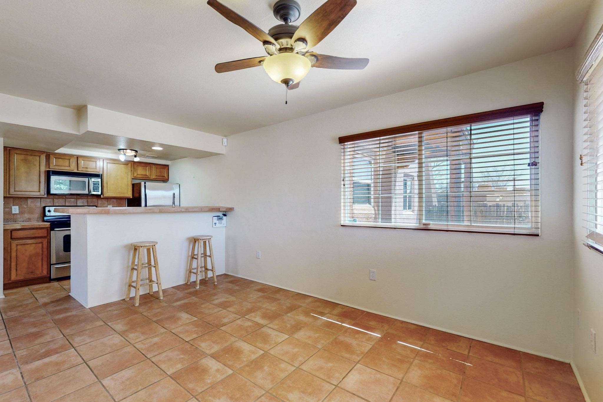 Welcome home to this wonderful, deluxe, end unit, in well maintained Dos Santos! Freshly painted with 2 bedrooms, 2 baths, 950+/- square feet, stainless steel appliances in the kitchen, with Saltillo tile floors and carpet in the bedrooms. This corner unit has a front and side yard located right next to the community area with BBQ grills, the pool and hot tub and the clubhouse! Enjoy this well maintained complex that also includes a dog park and water/sewer that's included in your HOA fees. Schedule your showing today - you won't be disappointed!