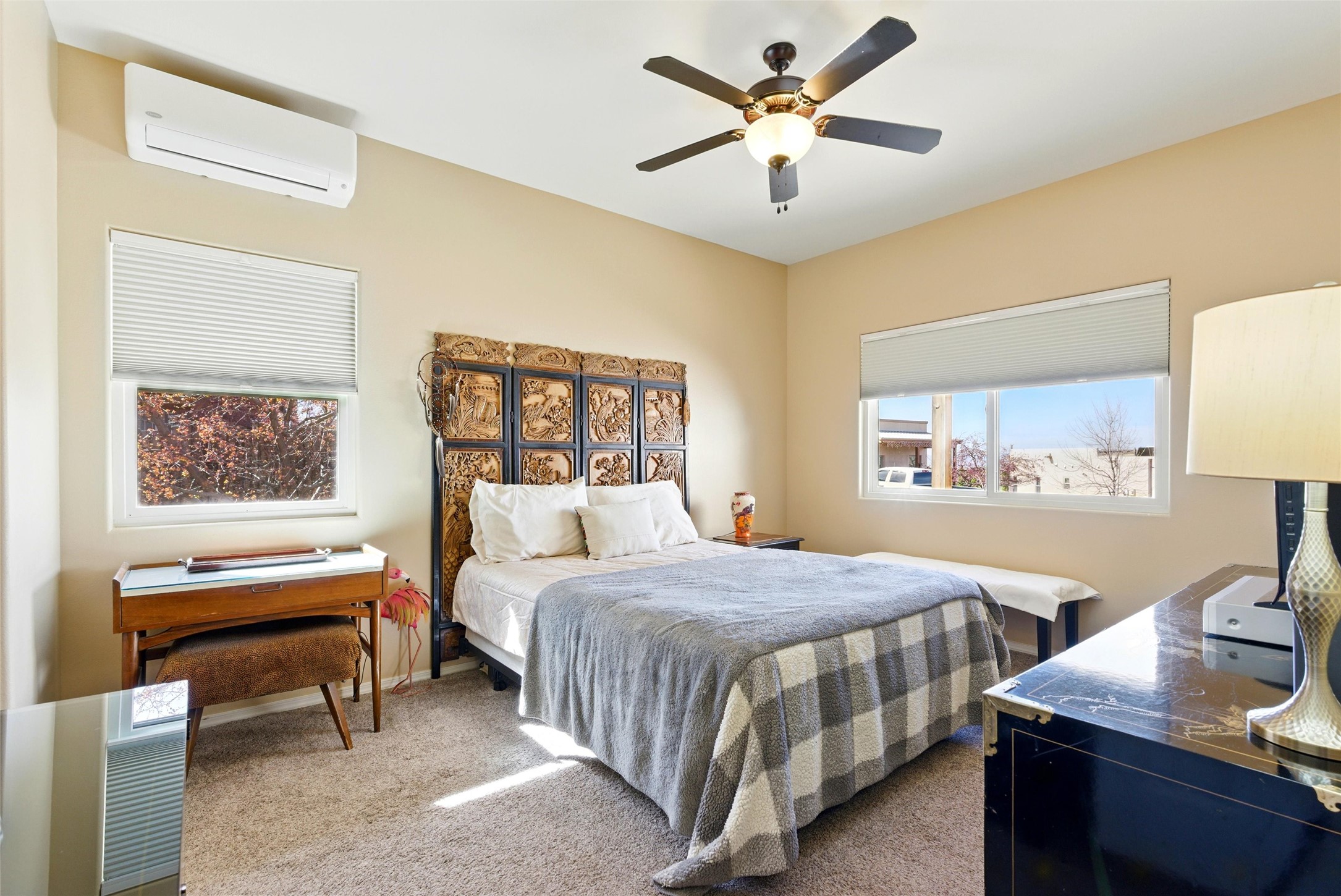 Nestled in a desirable cul-de-sac on a spacious corner lot, this well-maintained home offers privacy, efficiency, and low-maintenance living. Enjoy a serene backyard oasis with no rear neighbors, mature trees for added seclusion, and an irrigation drip system to keep your landscaping lush with minimal effort. The covered patio is perfect for relaxing or entertaining year-round.Step inside to a thoughtfully designed split primary floor plan, ensuring maximum privacy for the owner's suite. Stay comfortable in any season with a newer AC mini-split system, radiant floor heating, and a rebuilt furnace (2024). The home is also equipped with a solar-powered instant hot water heater, providing both eco-friendliness and cost savings.The front yard features a latilla fence, enhancing curb appeal and privacy, while nearby walking trails are just minutes away, offering easy access to nature and outdoor activities. All appliances convey, making this home move-in ready!Don't miss this rare opportunity for privacy, comfort, and efficiency in a prime location--schedule your showing today!!