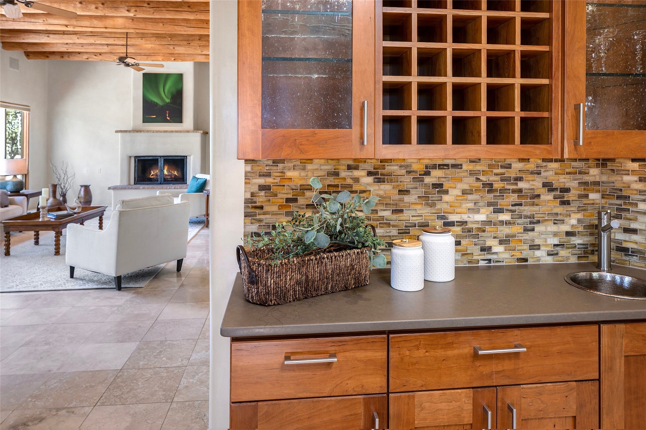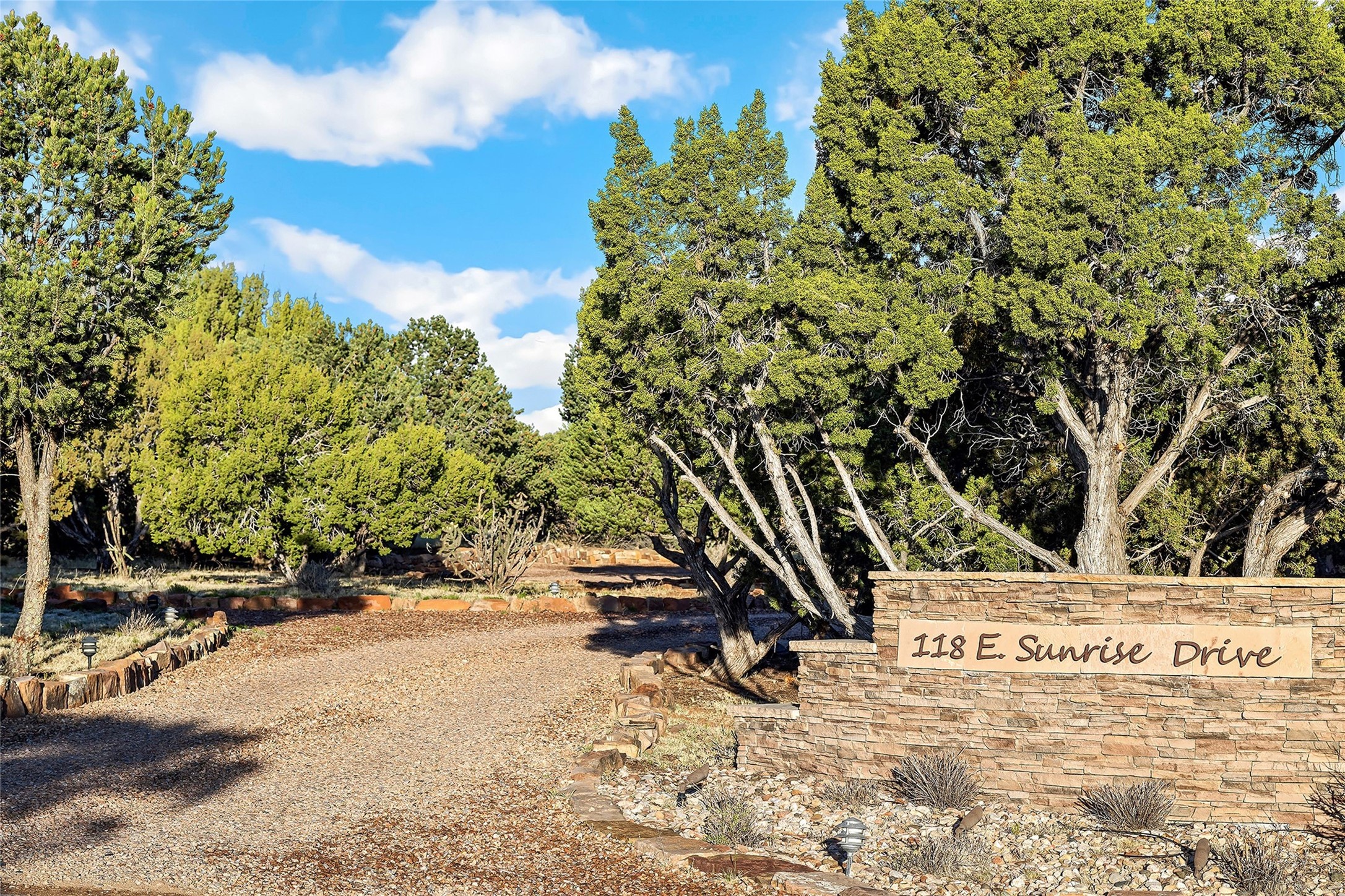 Spacious Luxury, Breathtaking Views & Multigenerational Comfort. Experience Santa Fe living at its finest in this elegant single-level home with an attached two-bedroom guest casita--ideal for extended family, guests, or a private retreat. Set on 1.5 acres in the gated community of Salva Tierra, this property offers stunning views, ultimate privacy, and convenient access to downtown, The Club at Las Campanas, and nearby hiking and biking trails. The main house features three ensuite bedrooms, a den, and an office, while the casita mirrors the main home's high-end finishes, including travertine floors, viga ceilings, and custom cabinetry. Both chef's kitchens are outfitted with Wolf, Sub-Zero, and Dacor appliances, large islands, and easy access to outdoor dining patios--perfect for entertaining under Santa Fe's starry skies. Enjoy peaceful courtyards, multiple portals, and a rooftop hot tub for sunset or stargazing. The primary suite includes a fireplace, spa-like bath, walk-in shower, soaking tub, and mountain views. Quality details throughout: radiant floor heat, mini splits, whole-house generator, new stucco, new TPO roof with warranty, electric shades, and a three-car garage with ample parking. Community amenities include tennis and pickleball courts, private roads, and a welcoming neighborhood atmosphere. Move-in ready and meticulously maintained--this home combines timeless Santa Fe style with modern comfort and flexibility for today's lifestyles. Watch the video and take the virtual tour to see why 118 E. Sunrise Drive is the perfect Santa Fe getaway or multigenerational retreat.