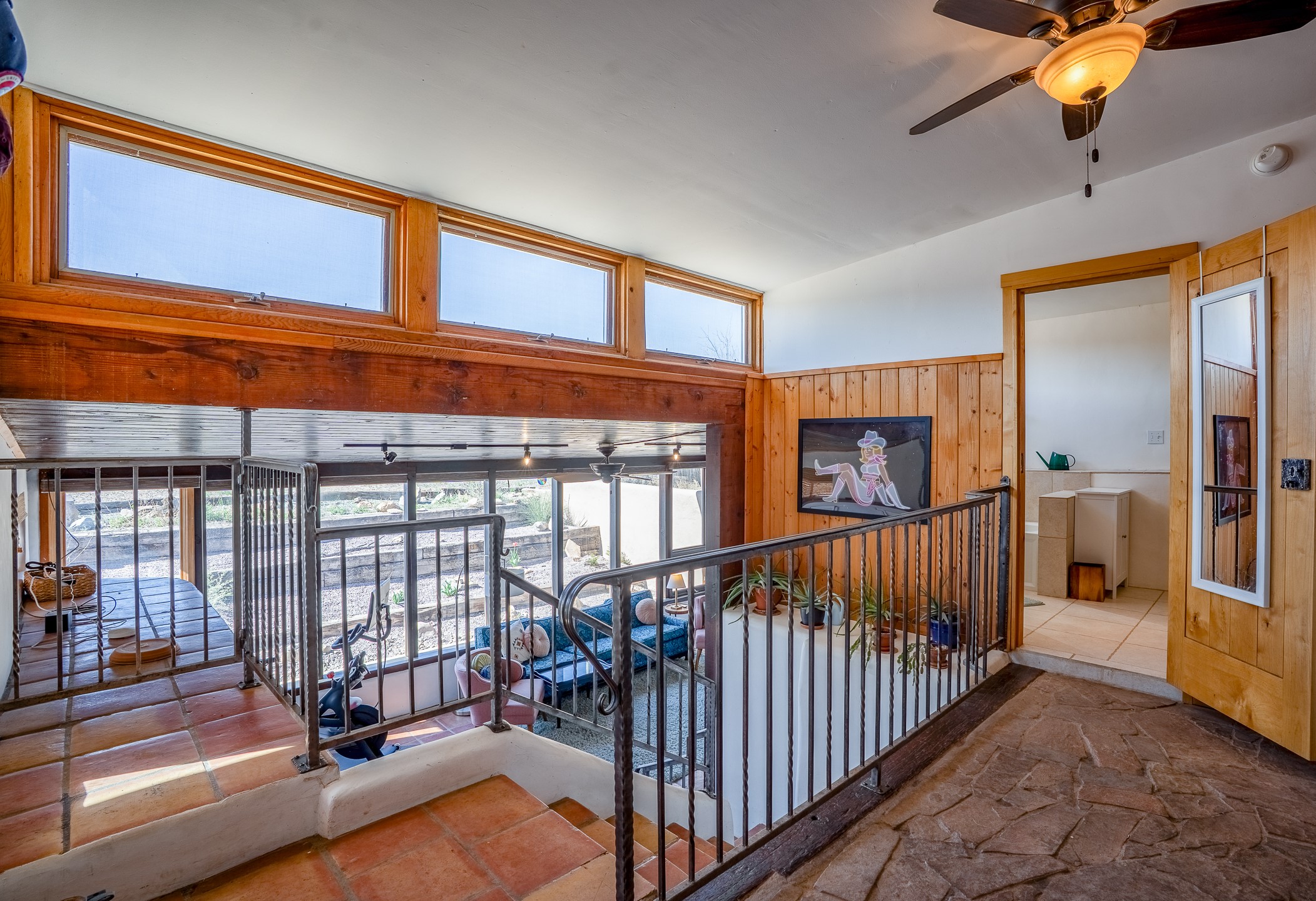 Old West charm abounds in this light filled home just outside of Cerrillos. The original parts of the building are believed to date to 1900, and many vintage details remain intact, including the wood floors and high, stamped metal ceilings. A lower level addition with banks of south facing windows brings in light and solar gain in winter, while mini-splits cool in summer. Outdoor spaces are well delineated, with mature plantings, a pleasant fenced patio space, and an old stone building has been used as a studio. A chicken coop, not currently occupied, doubles as a storage space. Less than a minute from the pavement, and on community water, the home is within walking distance of Cerrillos or a quick drive from Santa Fe.