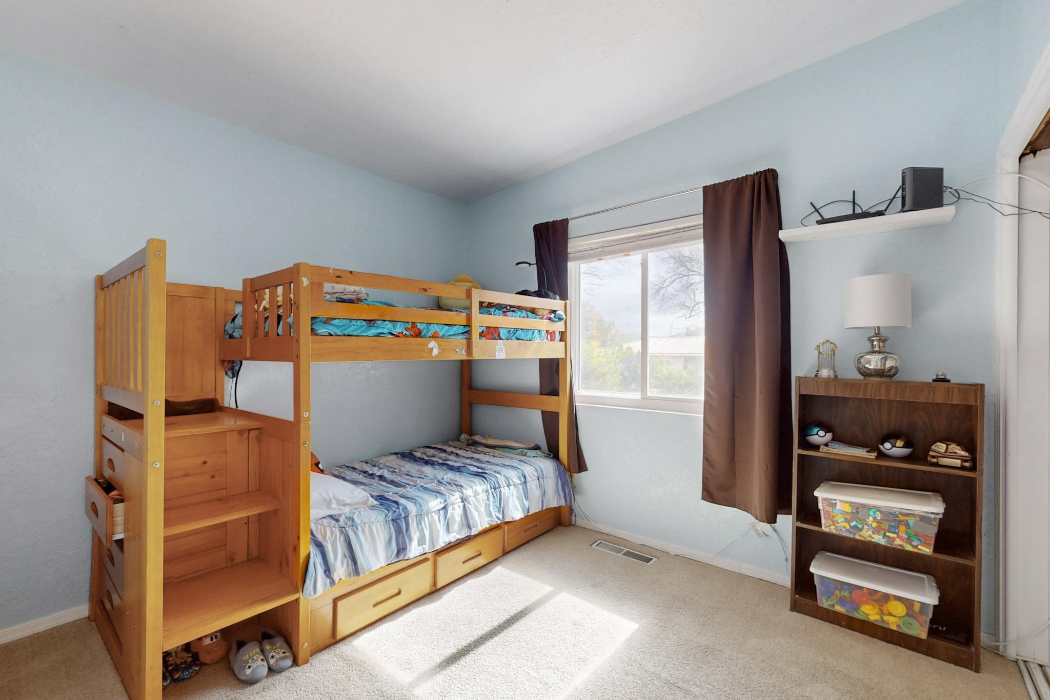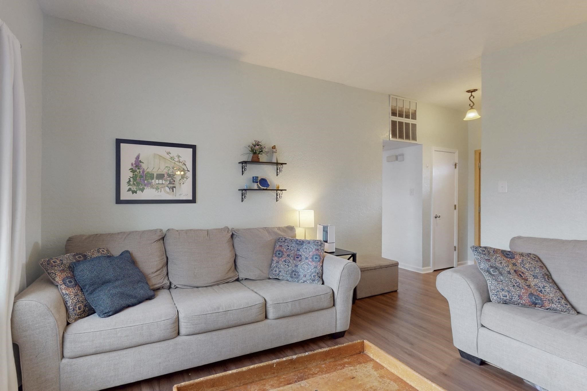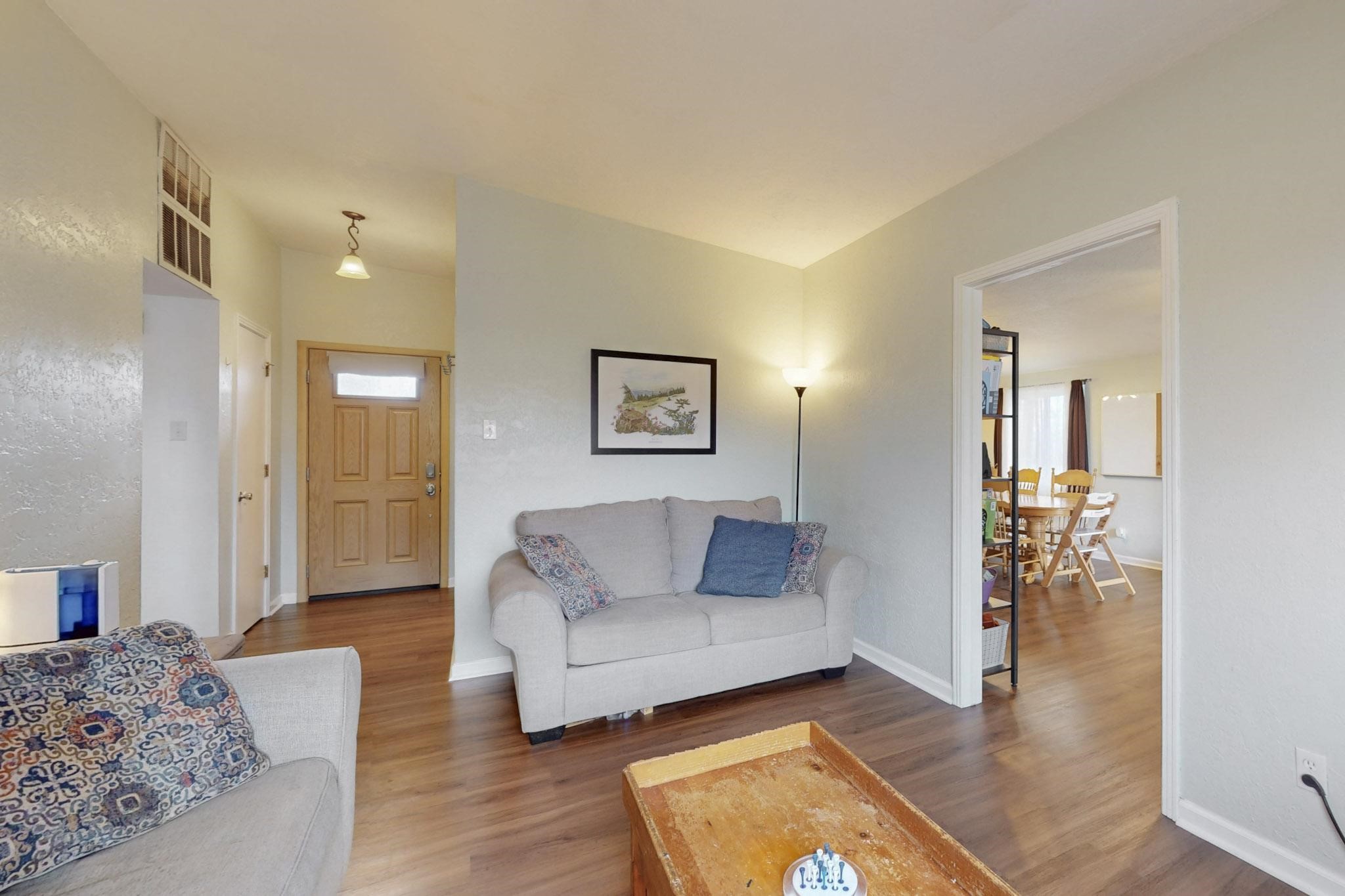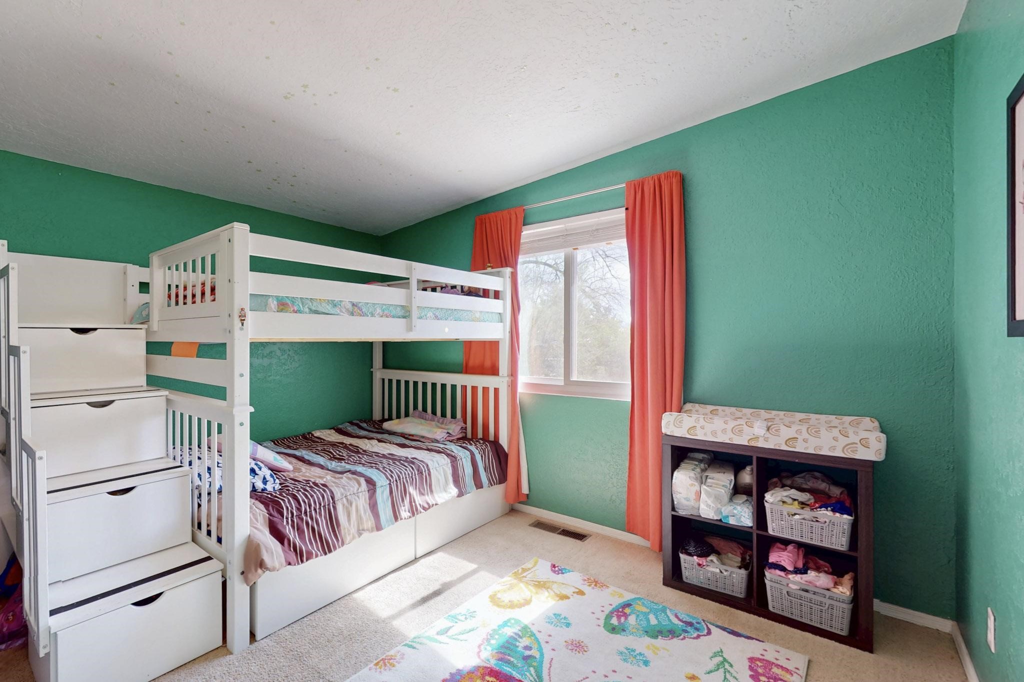 OPEN HOUSE: Saturday, April 19 10-1 Charming home with many amazing updated features and very nicely maintained. Newer roof, windows, doors, gutters and restored ducts. 2024 Cellulose blown-in insulation in ceiling space R-30 on top of current R-19. Cozy all year round with gas fireplace and refrigerated air. Two living areas make it comfortable for the whole family. Vinyl flooring throughout with carpet in the bedrooms. Separate laundry room with shelves and closet. Amazing backyard! Wonderful courtyard and patio, backyard has sprinklers and is shady in the summer, plus has a basketball court. Nice size shed. One car garage has built in shelving to make it very useable. Additional parking pad in front for car or small trailer. Location is ideal on a pleasant cul-de-sac only 2 blocks from the elementary school and walking distance to Overlook and Rover Parks. Make this your new home.