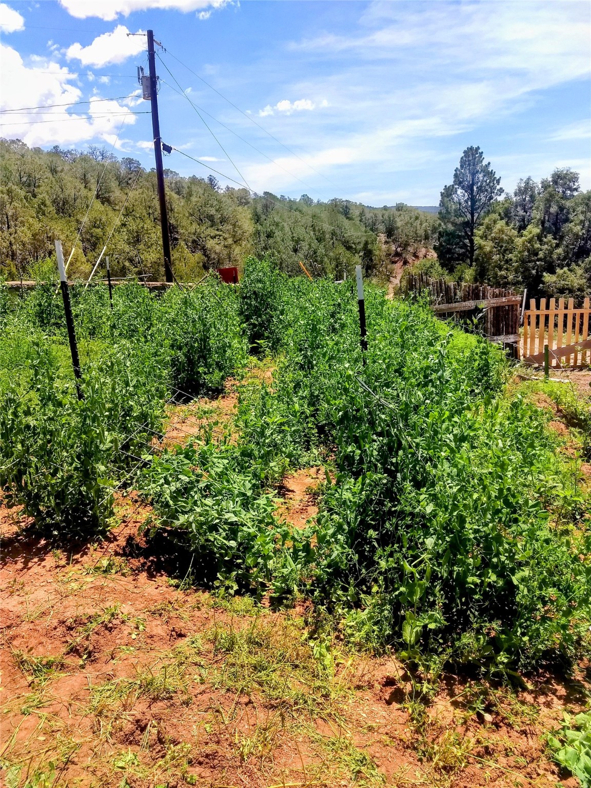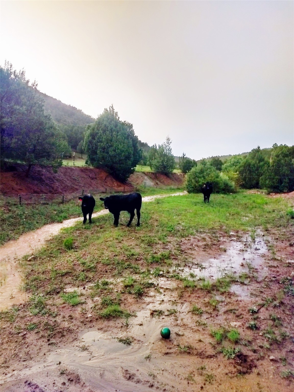 This 27+ acre northern New Mexico homestead features a 3-bed, 2-bath manufactured home, ready for your updates. Recent infrastructure upgrades include a new well pump and updated septic system. Natural water flow is guided by erosion control efforts and engineered drainage that feeds into a small seasonal pond. The property has been lovingly used as a small livestock farm with pens for pigs, goats, and chickens, plus corrals that can accommodate horses. The fenced pasture allows for some rotational grazing (electric fencing may need regular maintenance). A mature grapevine and a young orchard of apple and pear trees near the home offer food production potential, with space for expanded gardening. A large workshop/garage provides excellent storage for vehicles, tools, and ATVs, and includes an electric RV hookup. The acreage rises into a well-maintained pion forest, which has been selectively thinned to provide both grazing and usable timber. The topography is steep in places but accessible from the northern boundary, where a natural shelf offers a potential wooded build site. The property shares a boundary with National Forest and is located near Bull Creek, offering both privacy and direct access to public land. Just 50 minutes from Santa Fe via well-maintained roads, this versatile property is ready for homesteading, recreation, or peaceful rural living with existing agricultural infrastructure and stunning natural surroundings.