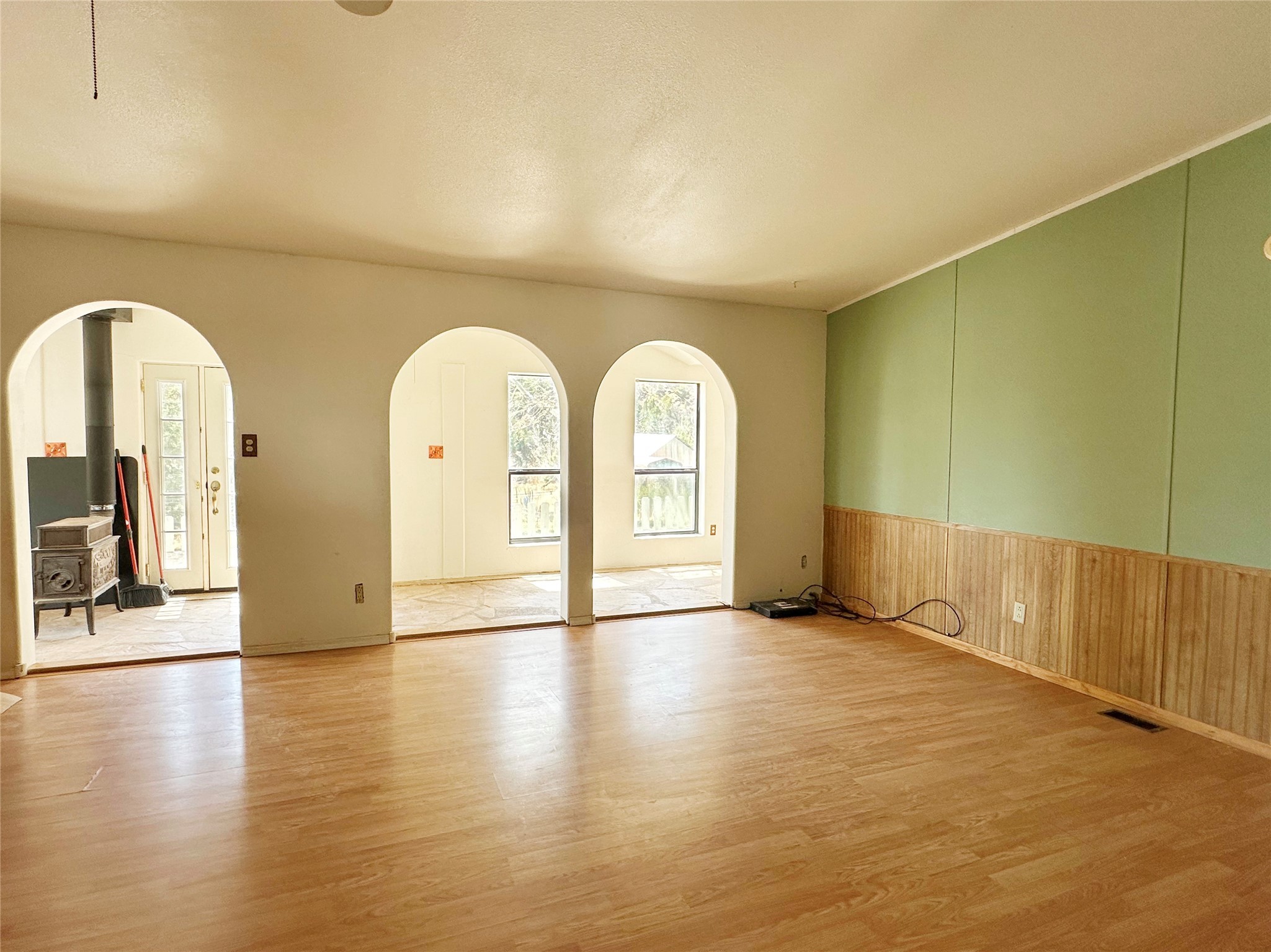 This 27+ acre northern New Mexico homestead features a 3-bed, 2-bath manufactured home, ready for your updates. Recent infrastructure upgrades include a new well pump and updated septic system. Natural water flow is guided by erosion control efforts and engineered drainage that feeds into a small seasonal pond. The property has been lovingly used as a small livestock farm with pens for pigs, goats, and chickens, plus corrals that can accommodate horses. The fenced pasture allows for some rotational grazing (electric fencing may need regular maintenance). A mature grapevine and a young orchard of apple and pear trees near the home offer food production potential, with space for expanded gardening. A large workshop/garage provides excellent storage for vehicles, tools, and ATVs, and includes an electric RV hookup. The acreage rises into a well-maintained pion forest, which has been selectively thinned to provide both grazing and usable timber. The topography is steep in places but accessible from the northern boundary, where a natural shelf offers a potential wooded build site. The property shares a boundary with National Forest and is located near Bull Creek, offering both privacy and direct access to public land. Just 50 minutes from Santa Fe via well-maintained roads, this versatile property is ready for homesteading, recreation, or peaceful rural living with existing agricultural infrastructure and stunning natural surroundings.